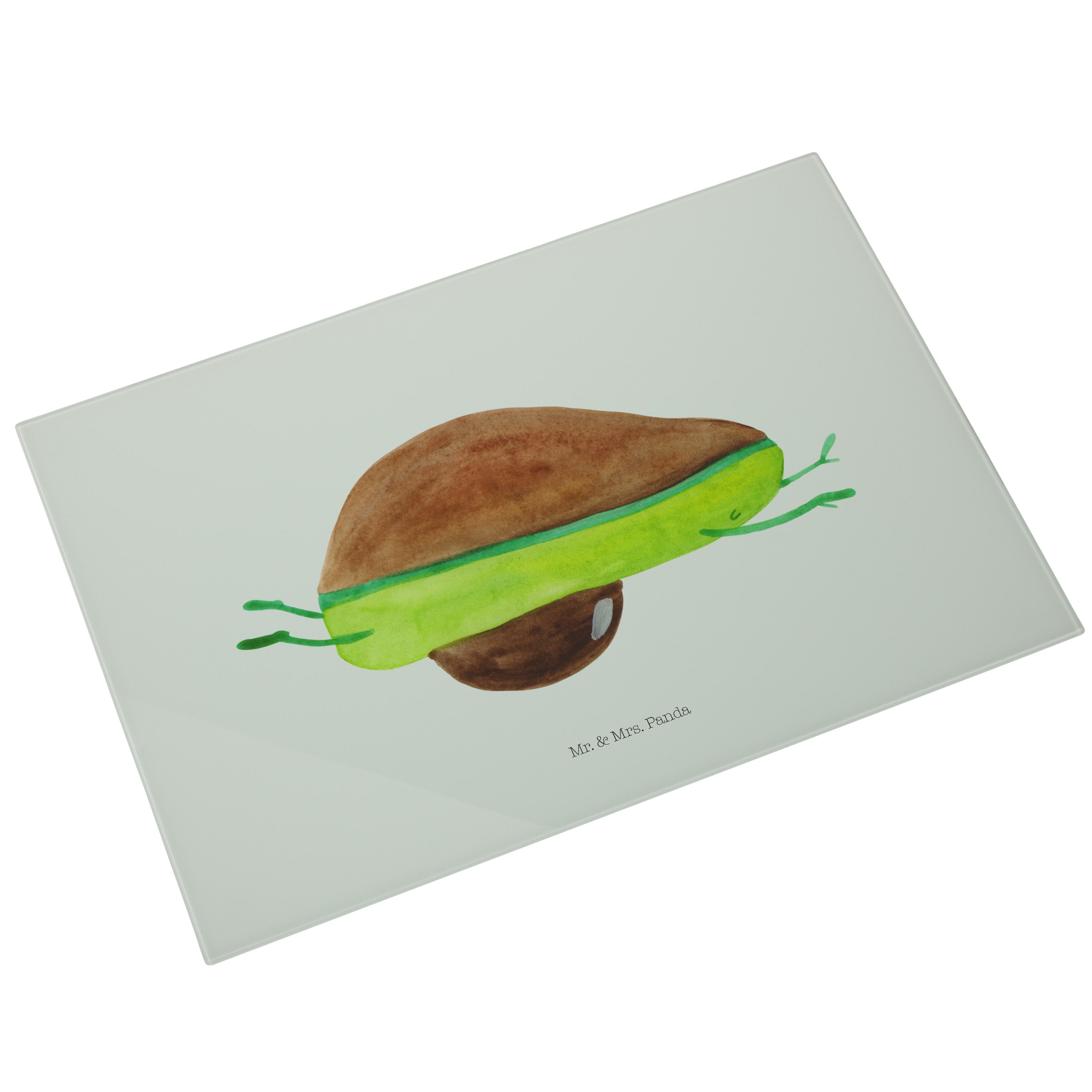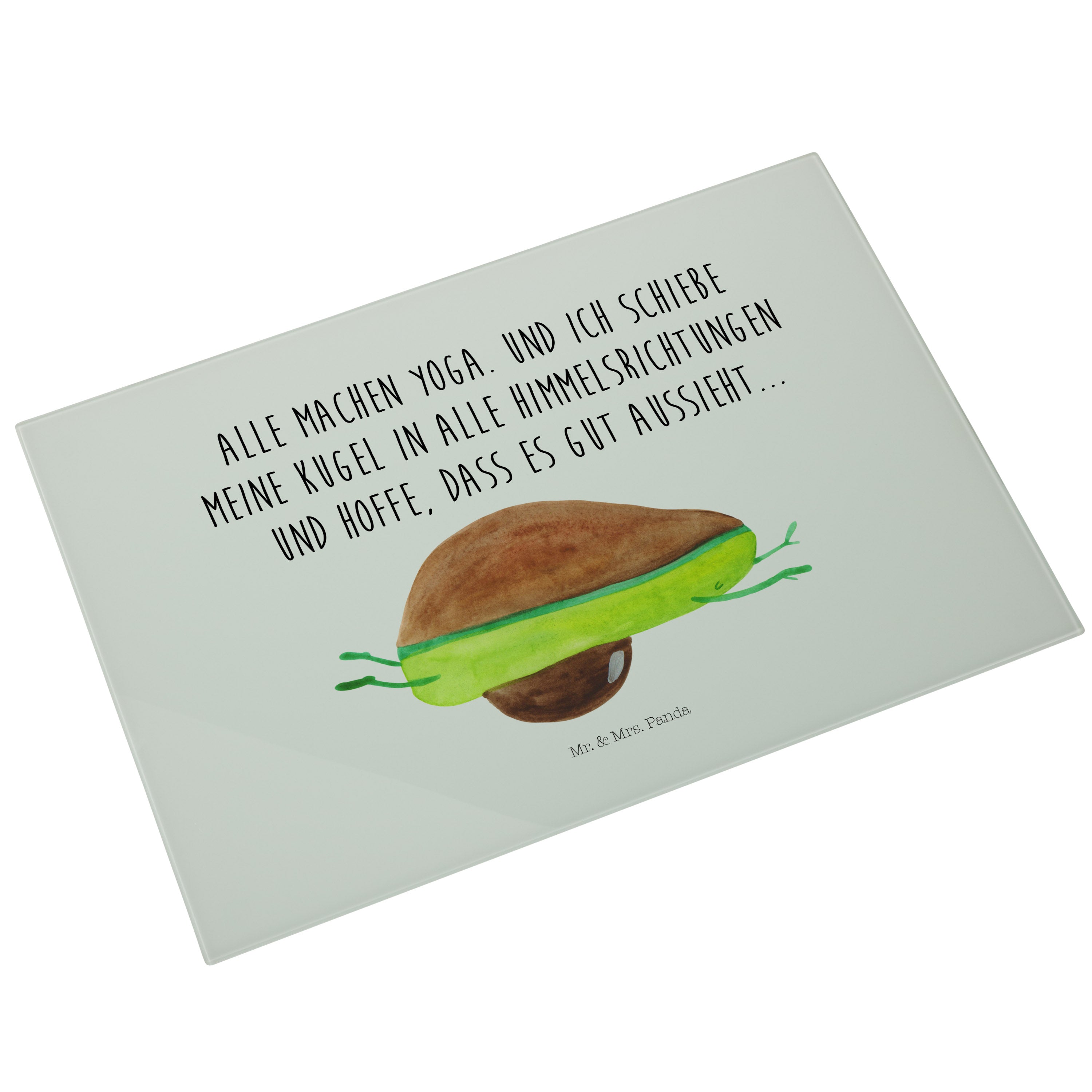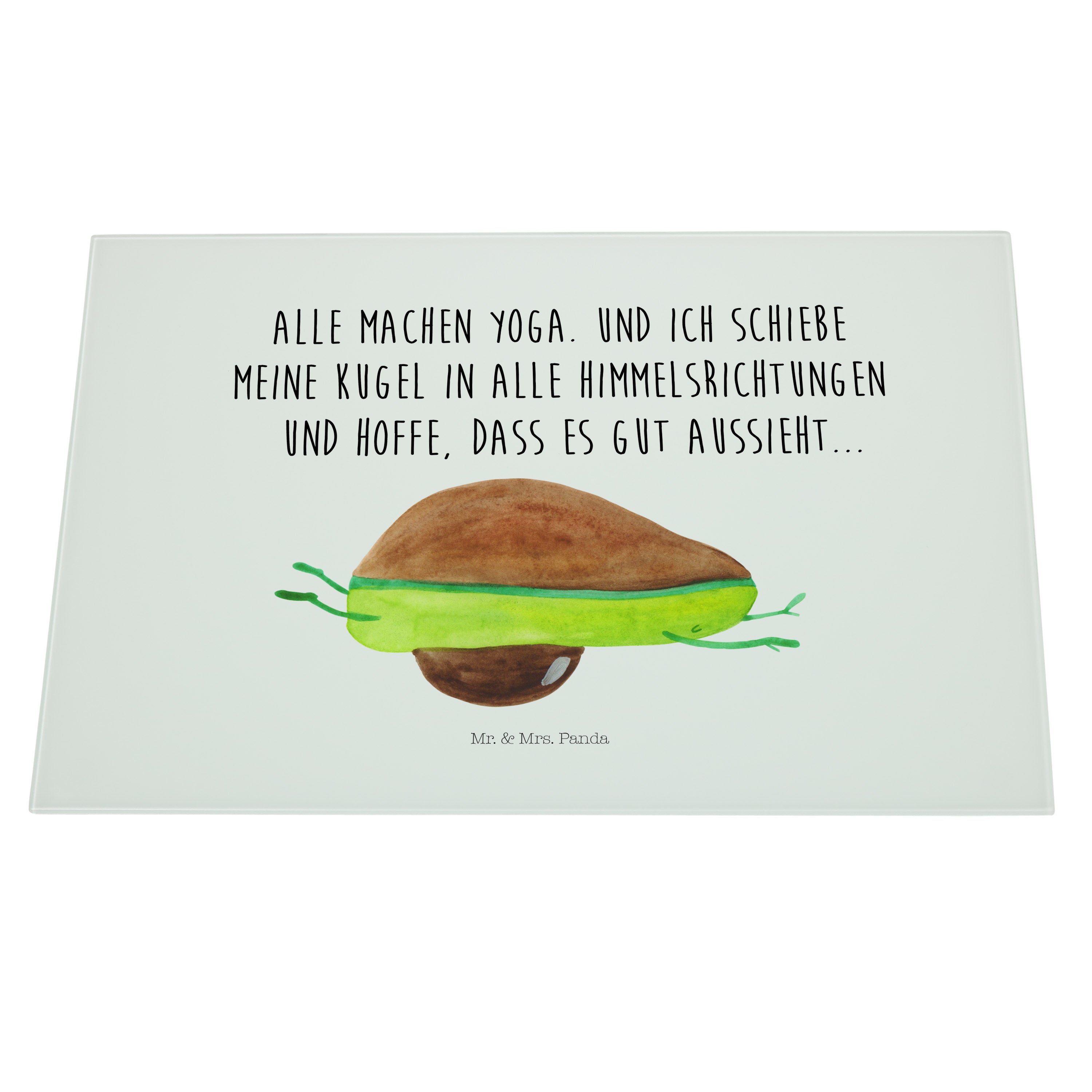 XL Glas Schneidbrett Avocado Yoga - mit Spruch - Gelb Pastell