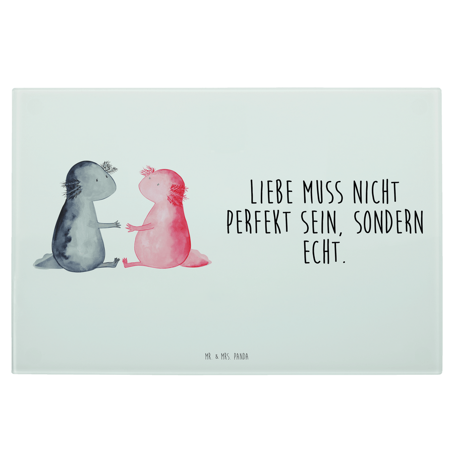 XL Glas Schneidbrett Axolotl Liebe - mit Spruch - Weiß