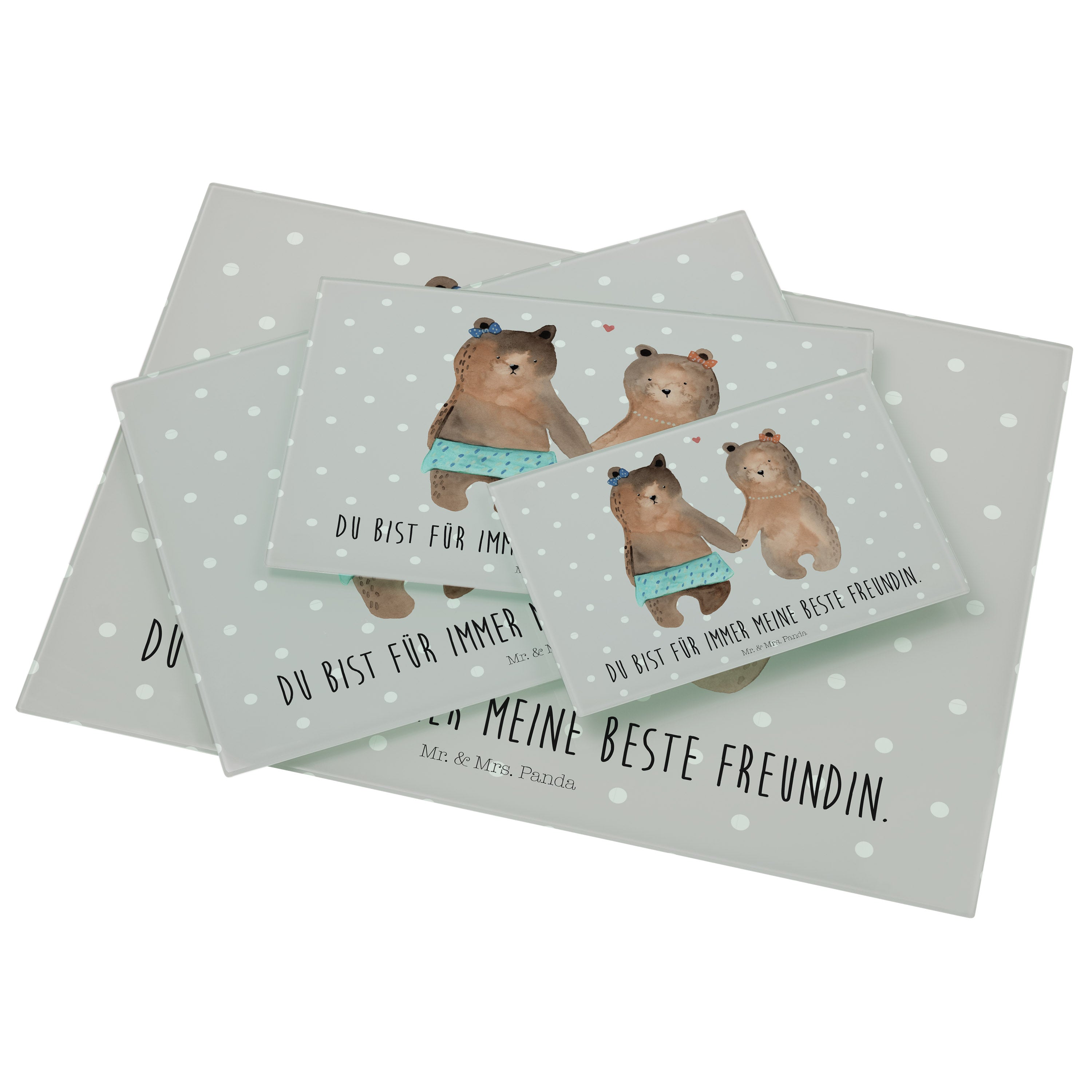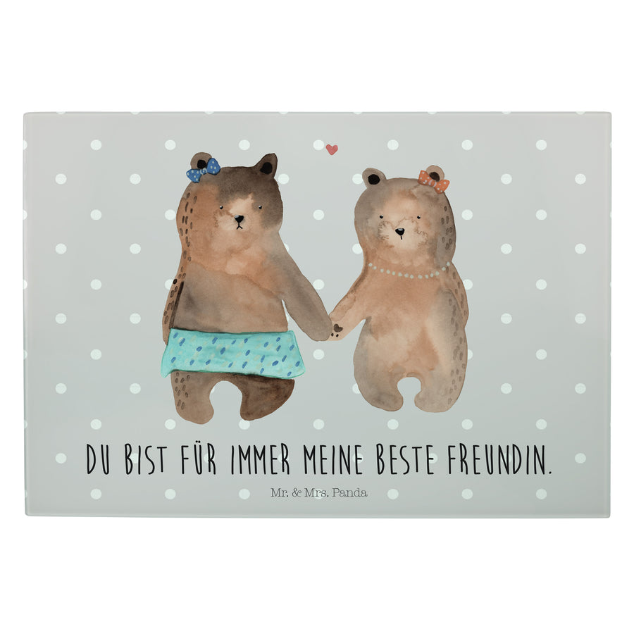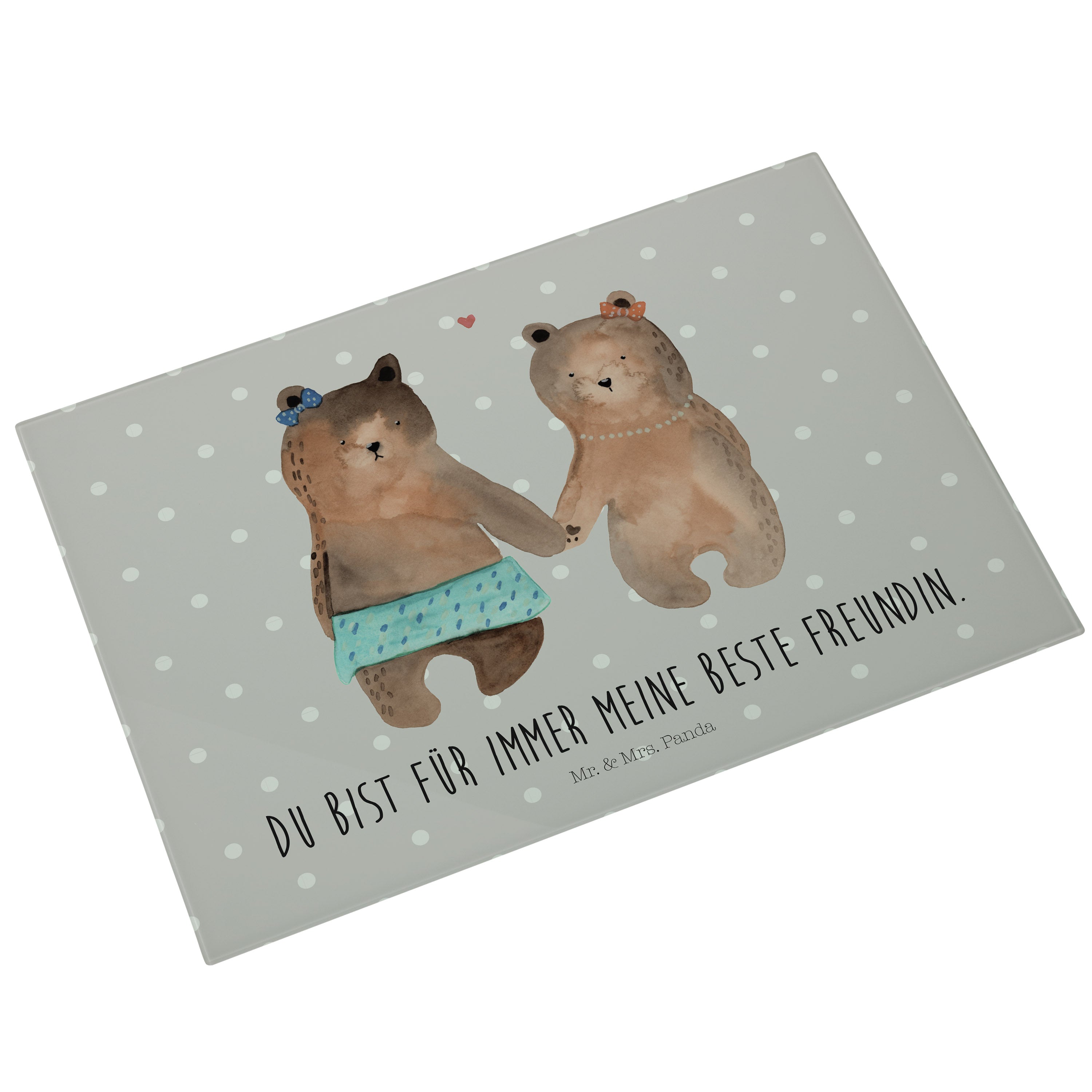 XL Glas Schneidbrett Bär Freundin - mit Spruch - Grau Pastell