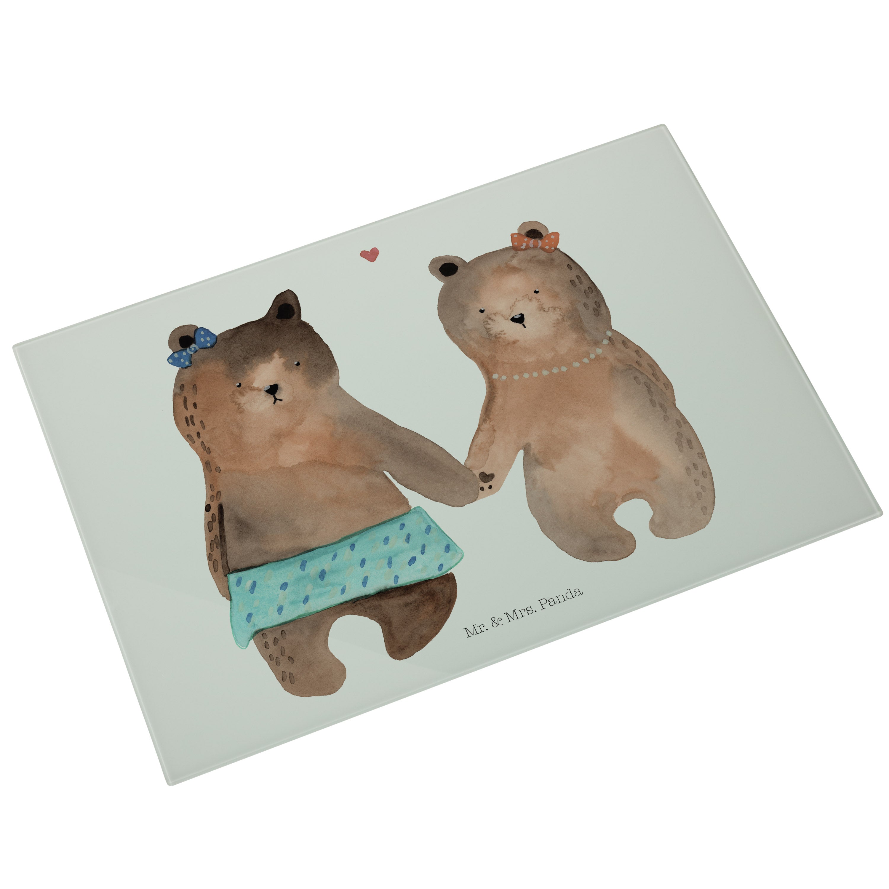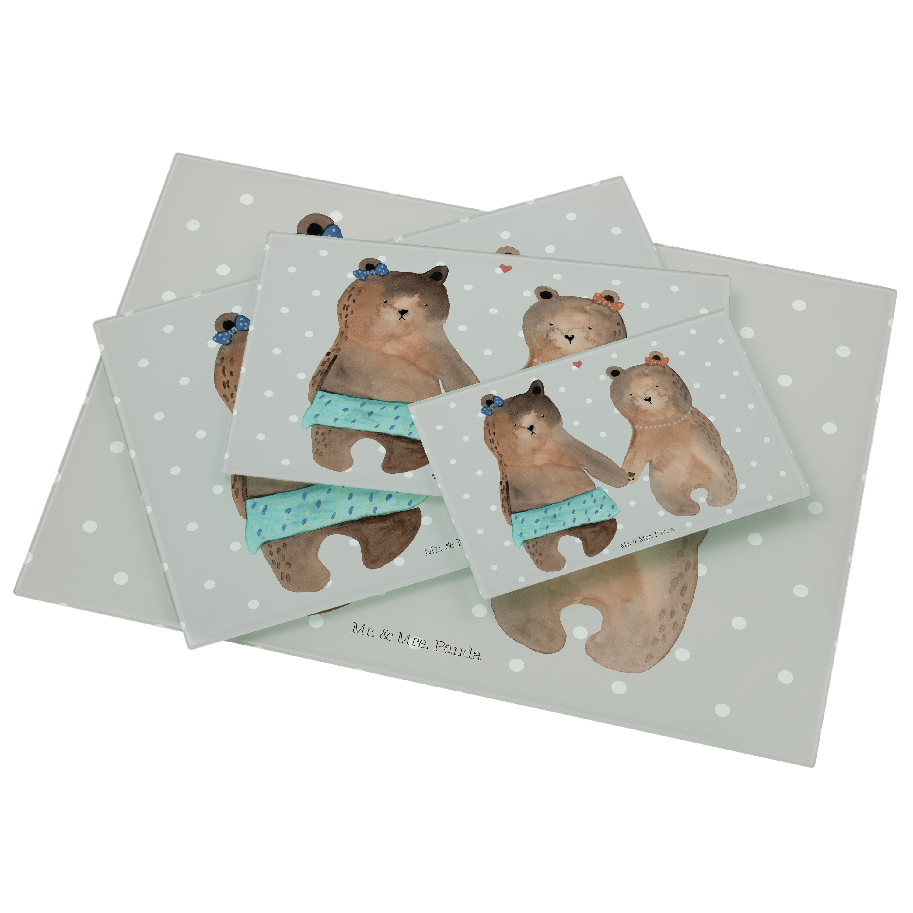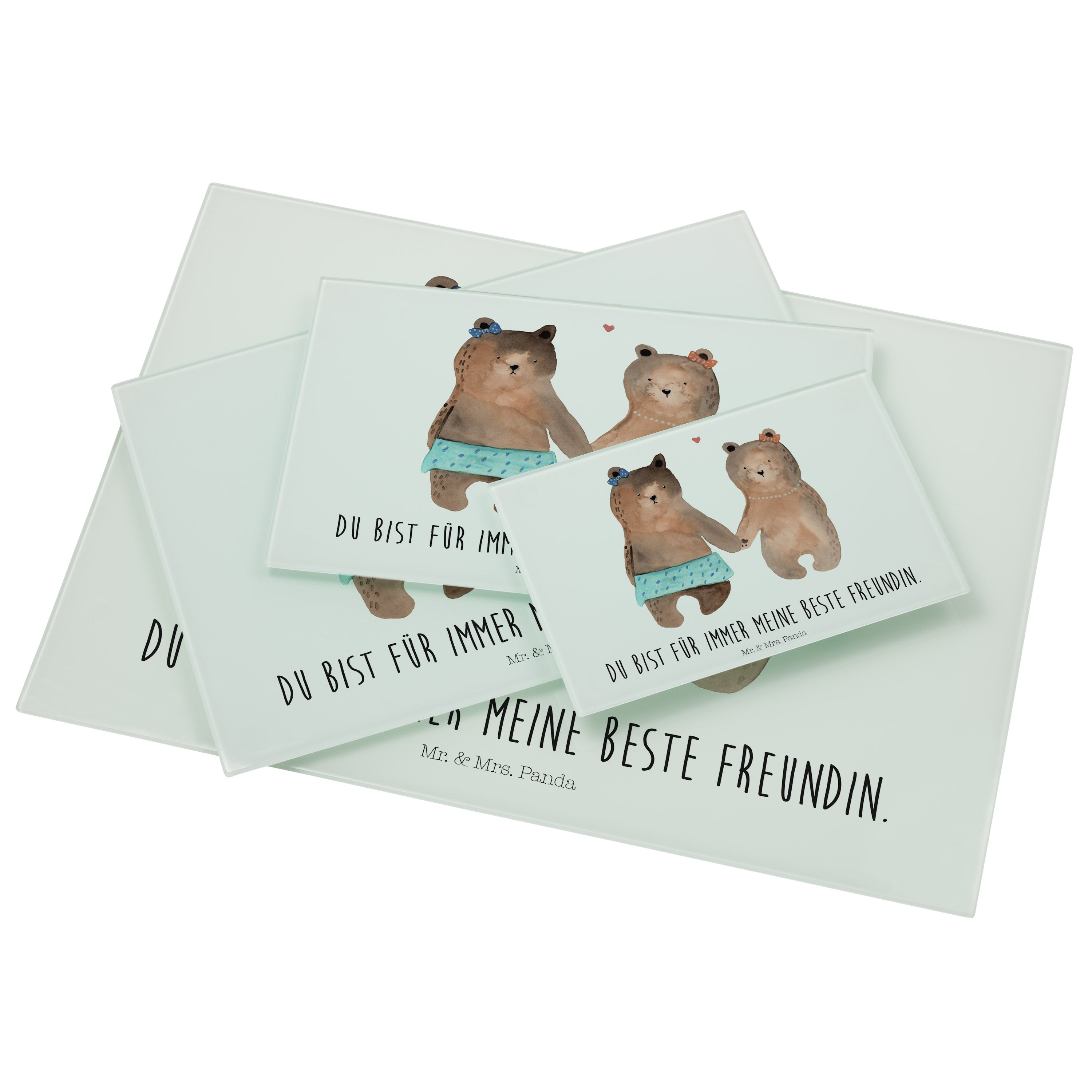 XL Glas Schneidbrett Bär Freundin - mit Spruch - Grau Pastell