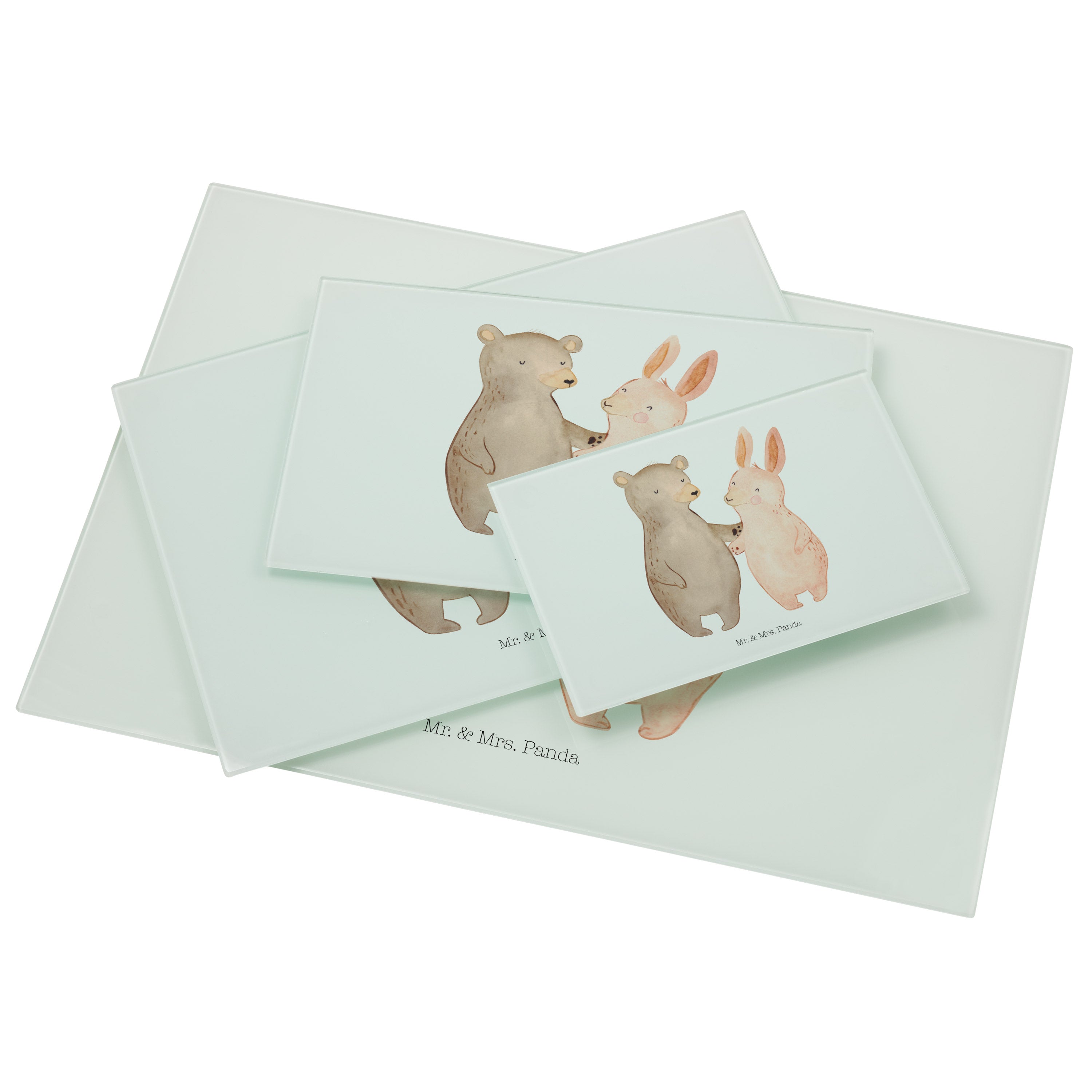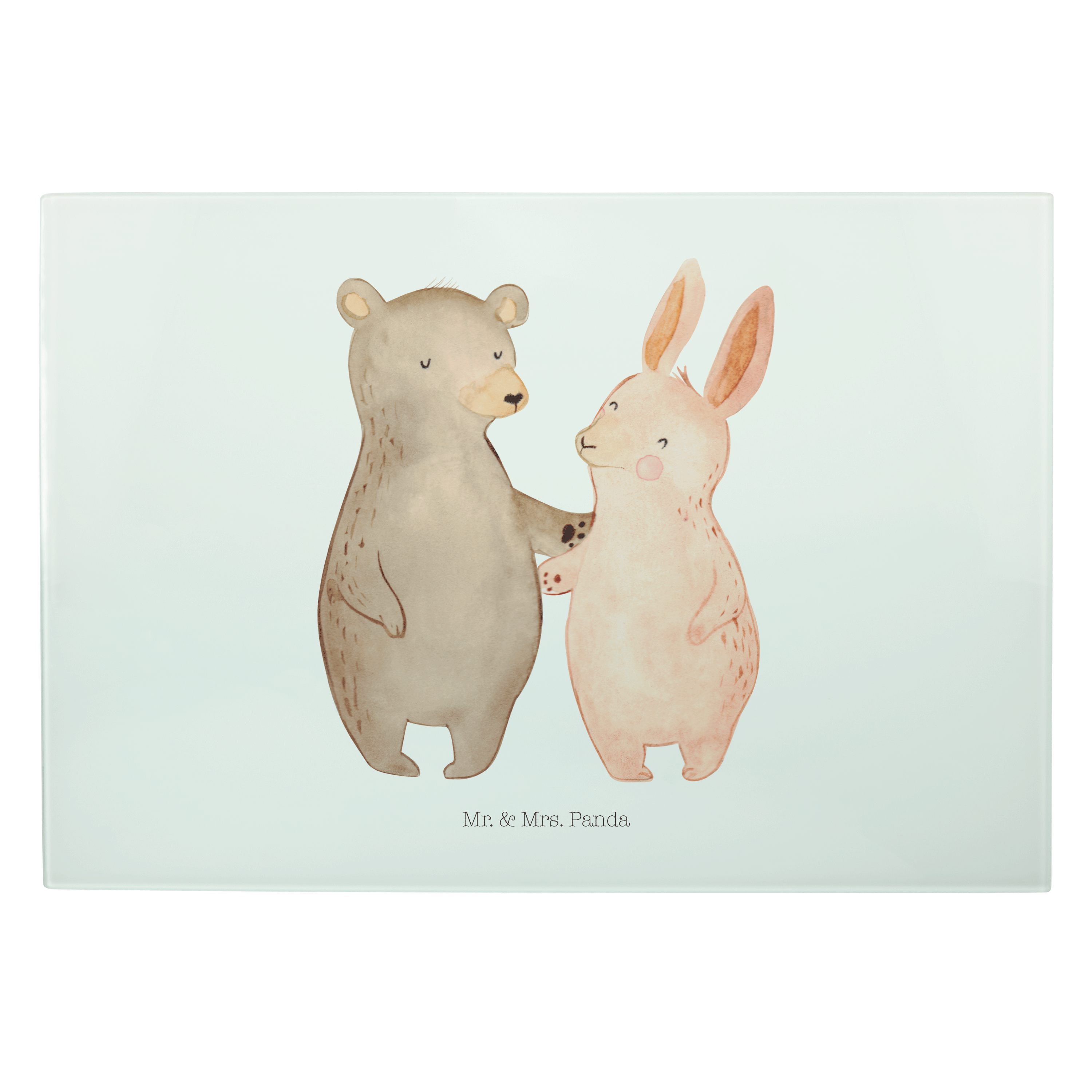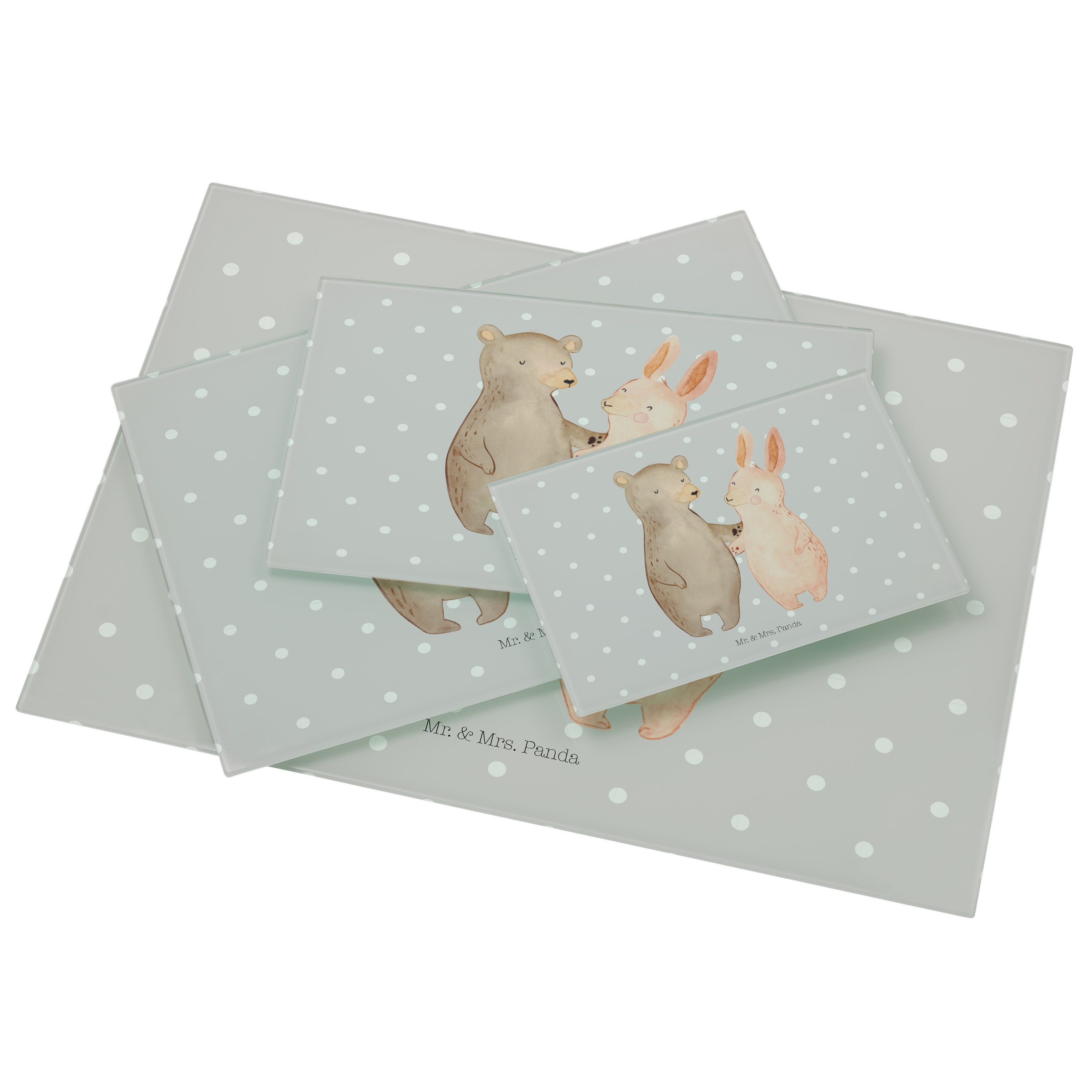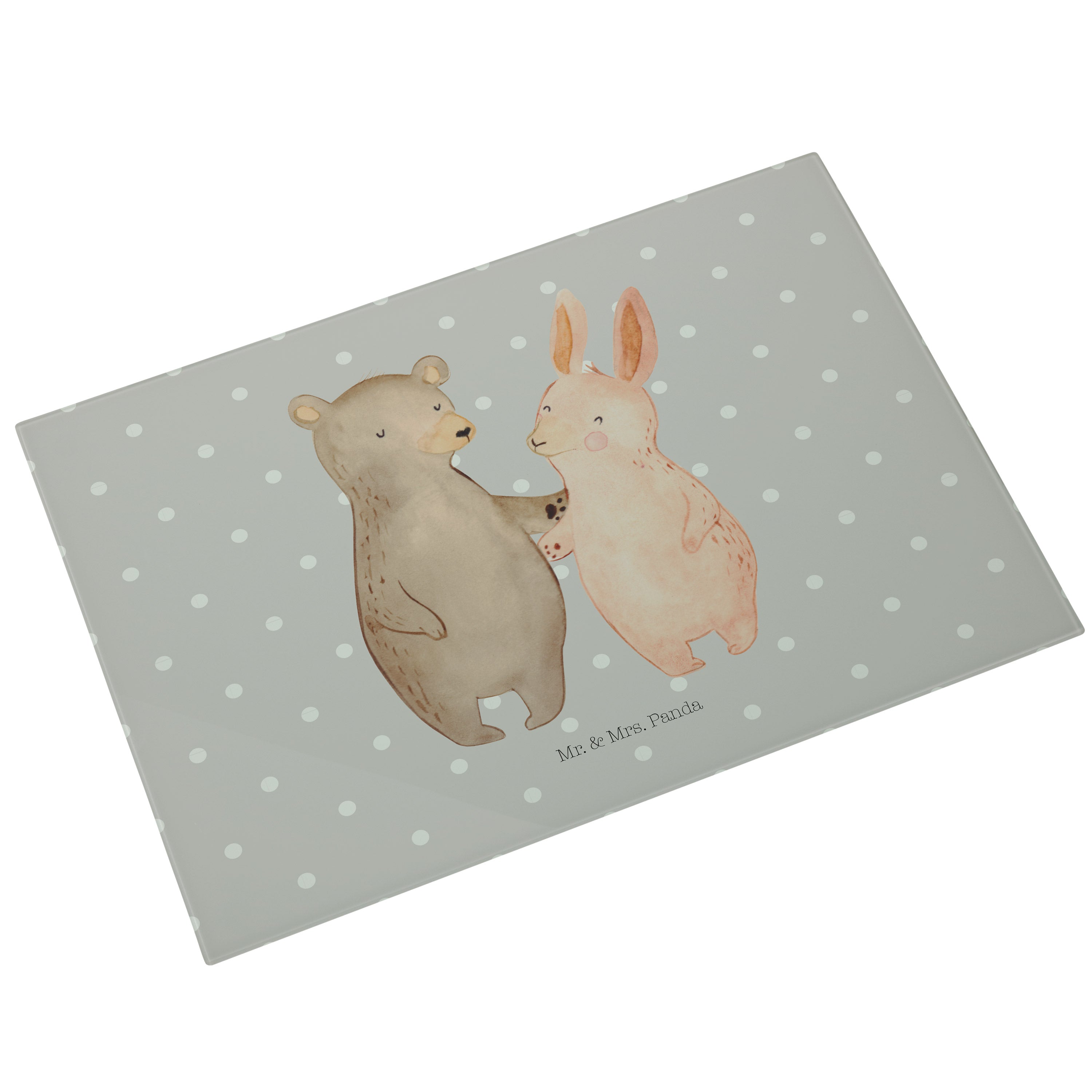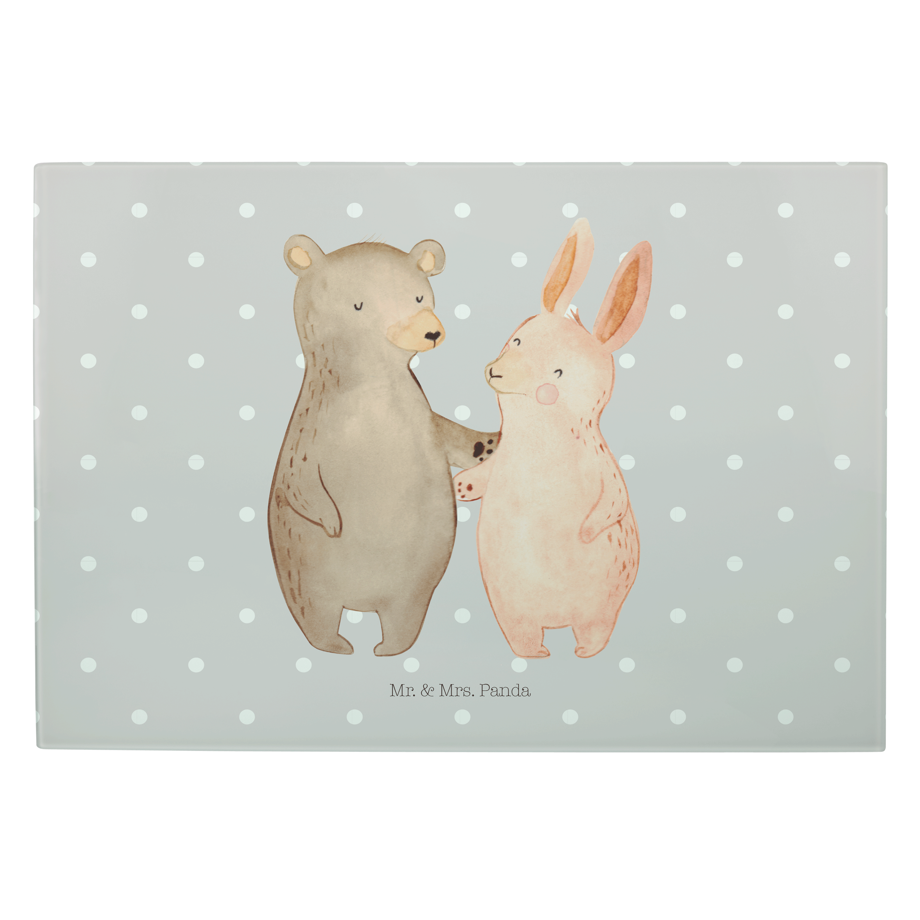 XL Glas Schneidbrett Bär Hase Umarmen - mit Spruch - Grau Pastell