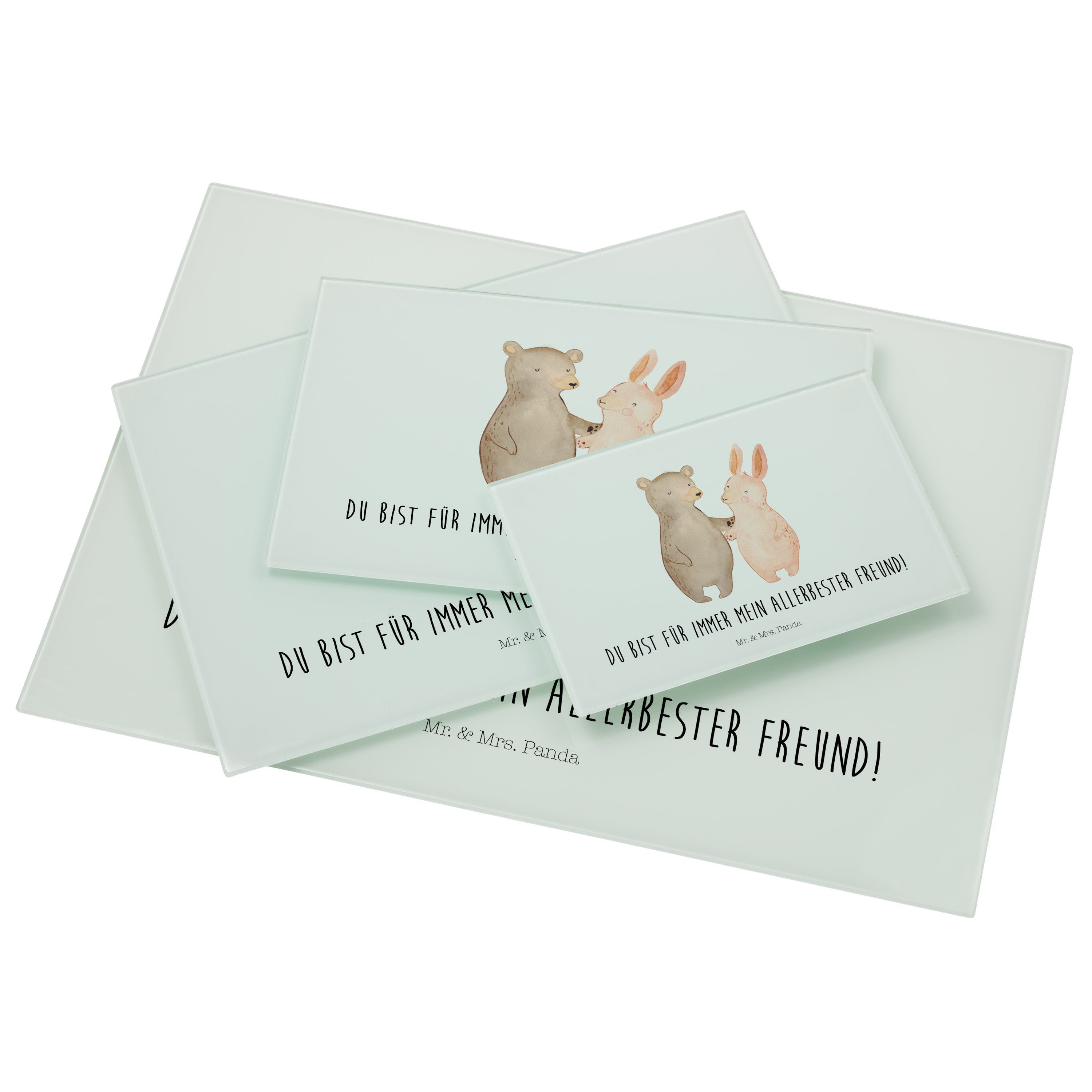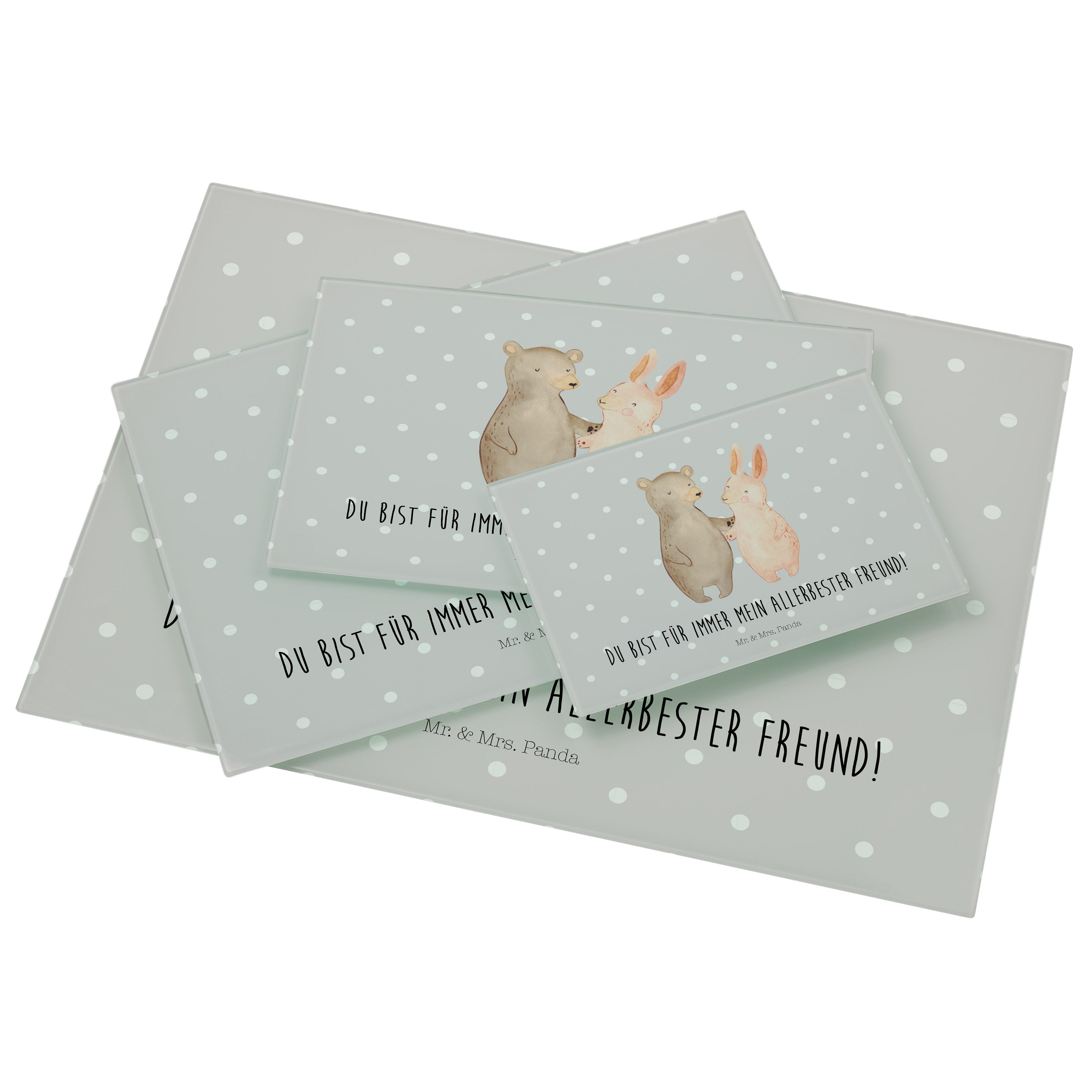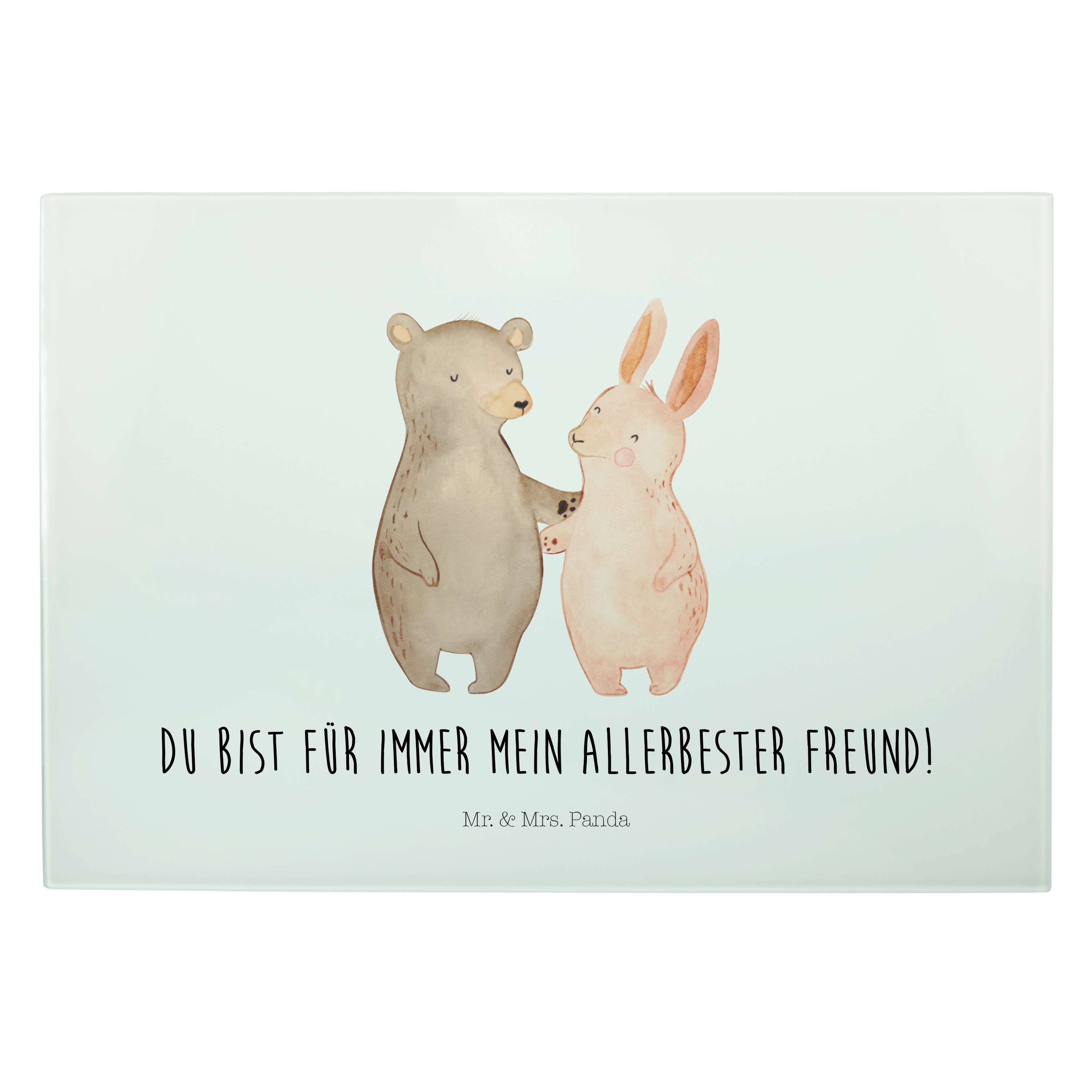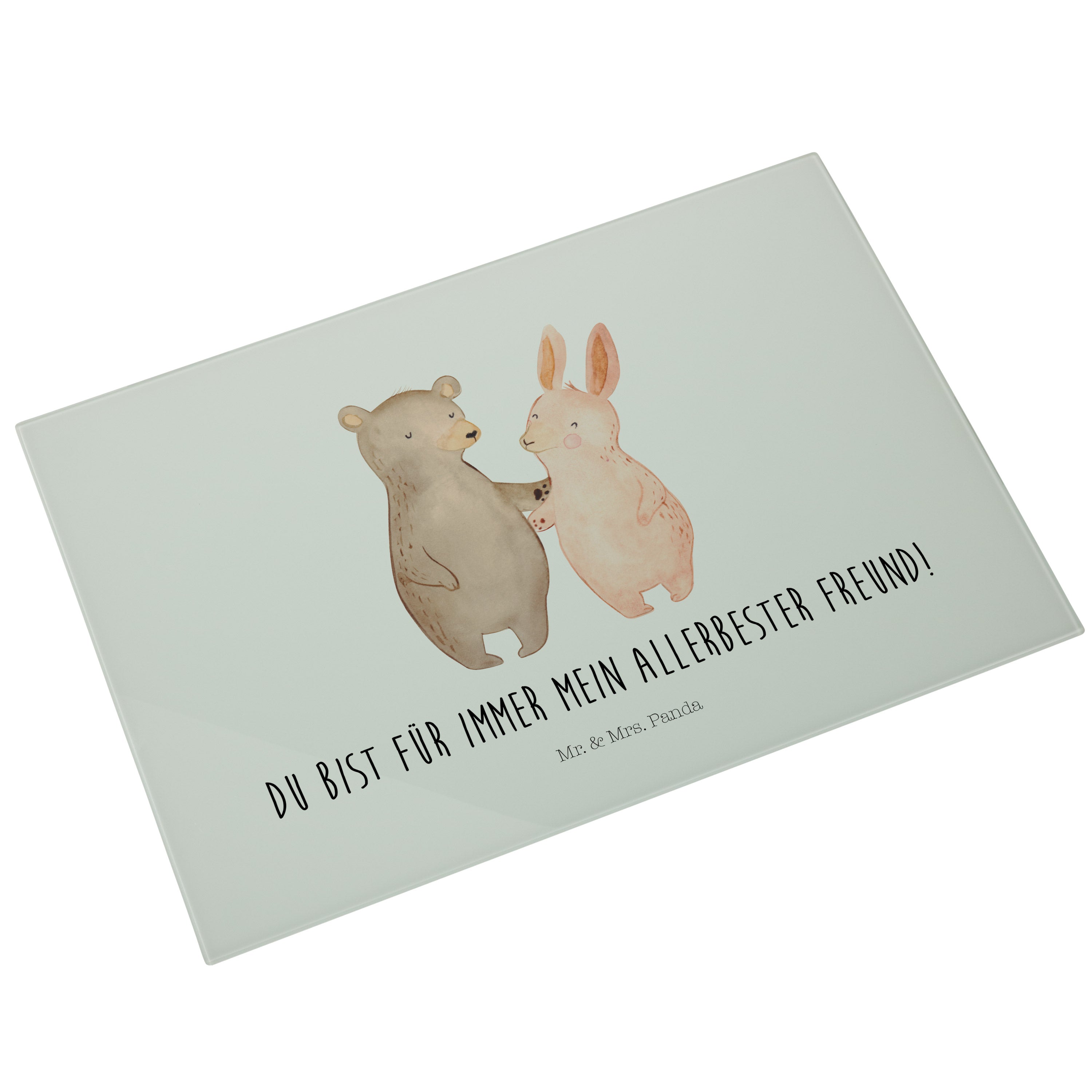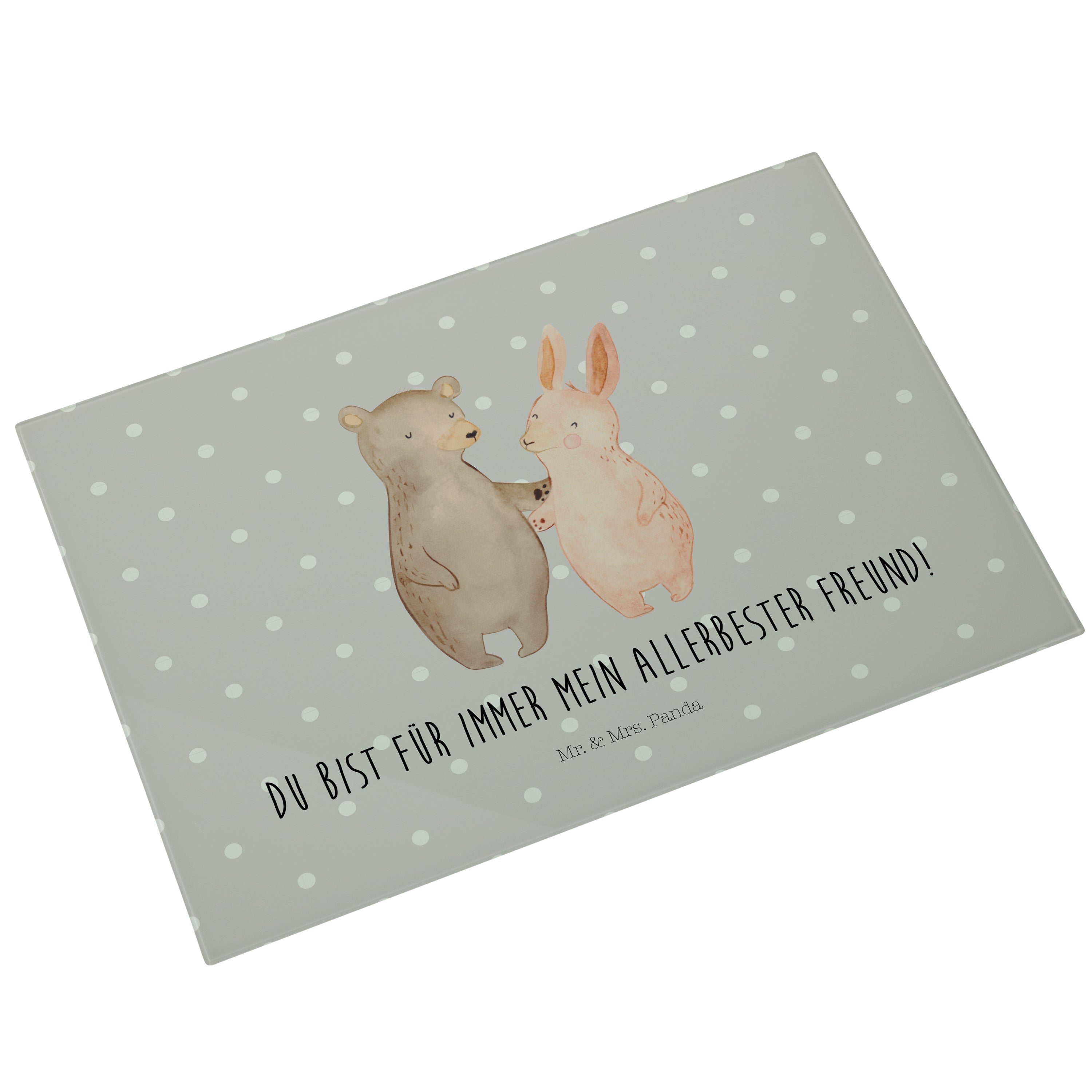 XL Glas Schneidbrett Bär Hase Umarmen - mit Spruch - Grau Pastell