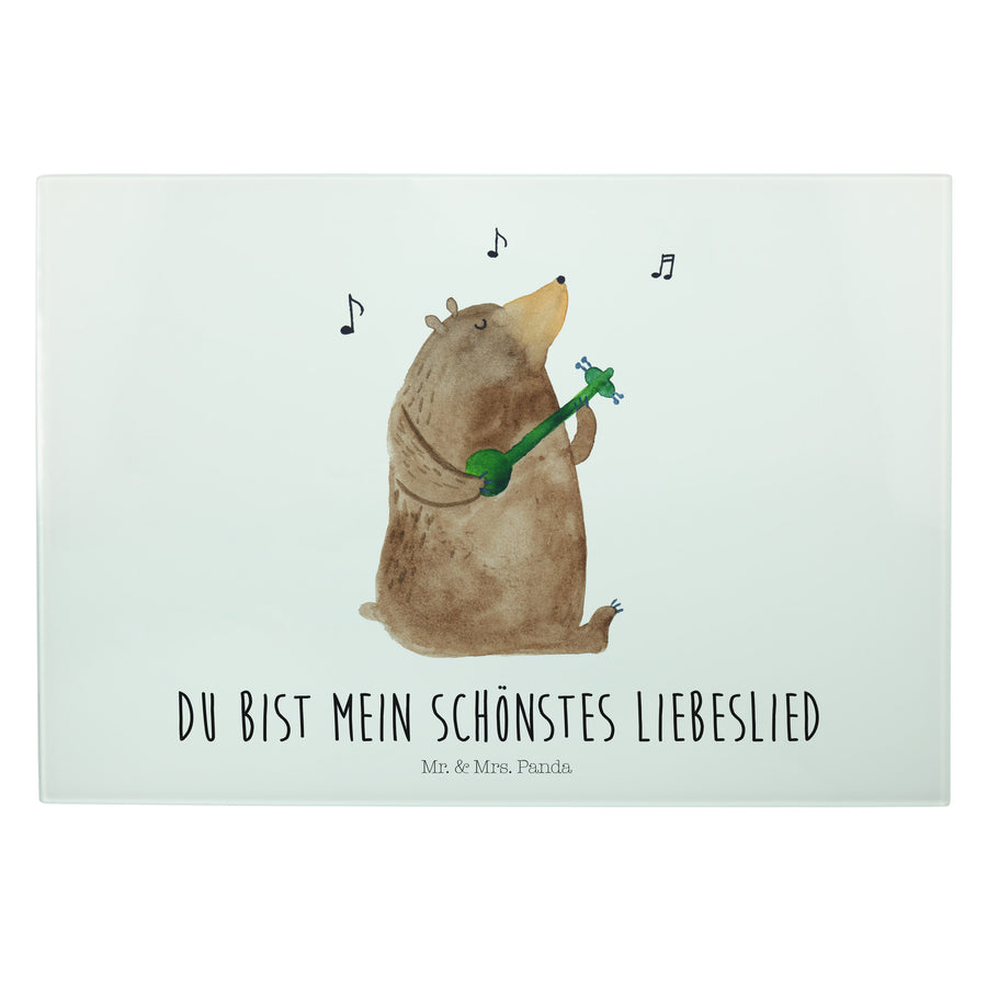 XL Glas Schneidbrett Bär Lied - mit Spruch - Weiß