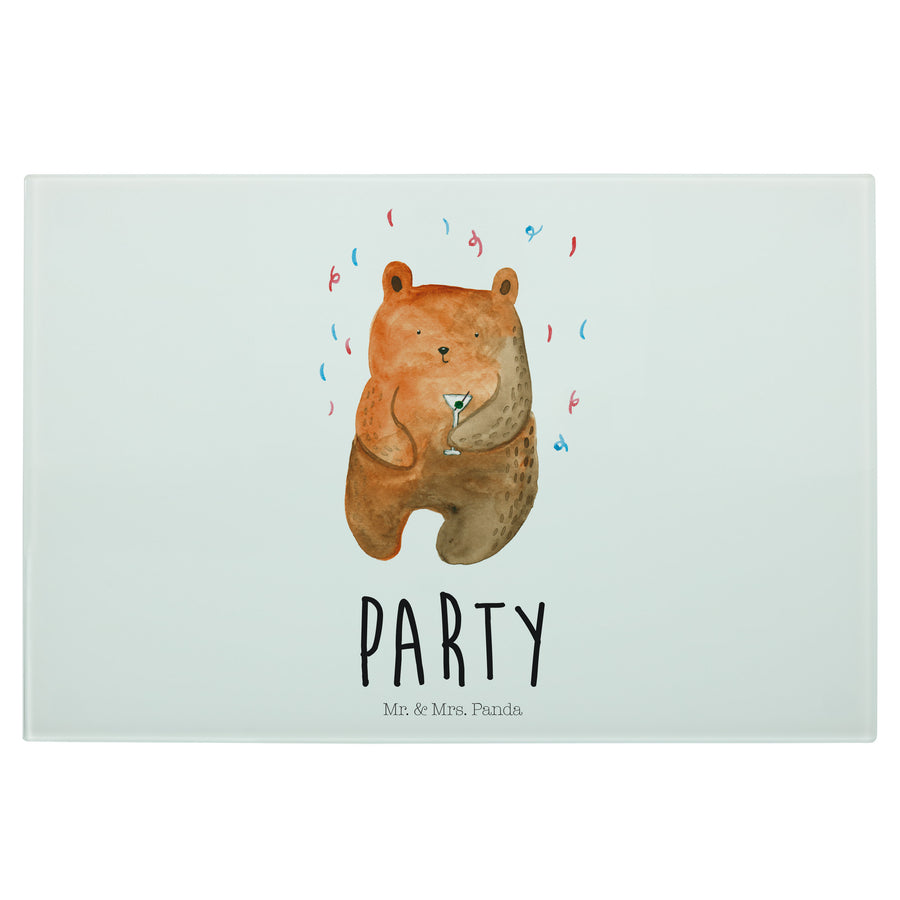 Medium Glas Schneidbrett Bär Party - mit Spruch - Weiß