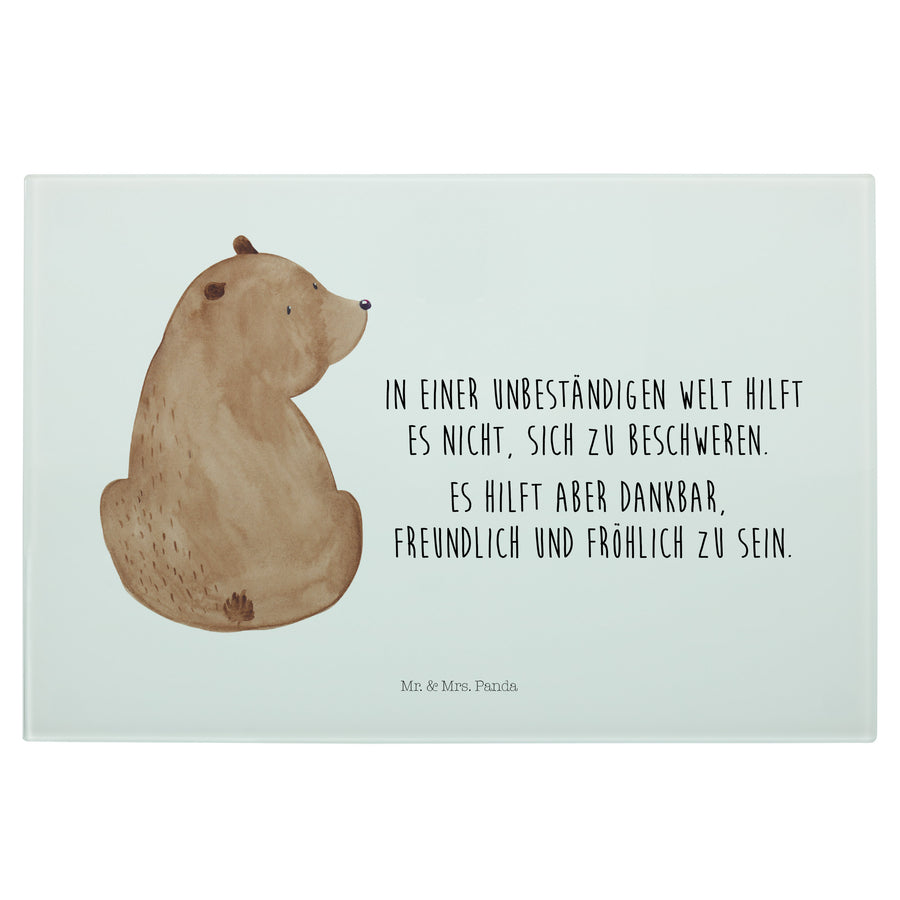 Medium Glas Schneidbrett Bär Schulterblick - mit Spruch - Weiß