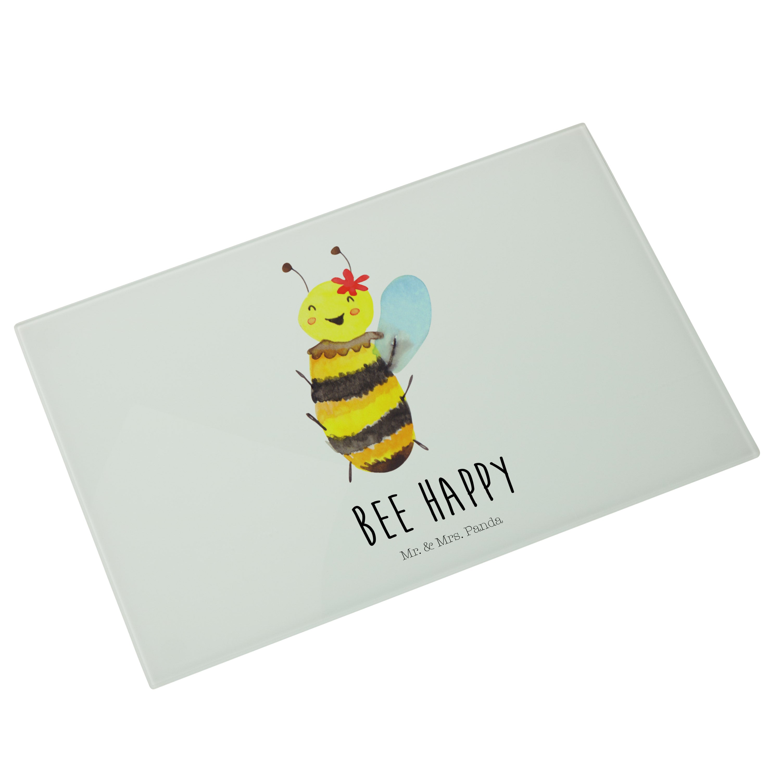 XL Glas Schneidbrett Biene Happy - mit Spruch