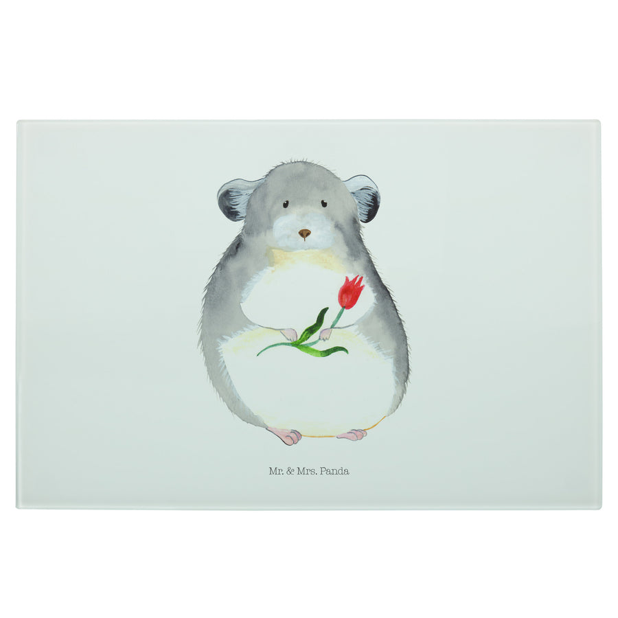 Medium Glas Schneidbrett Chinchilla mit Blume - ohne Spruch - Weiß