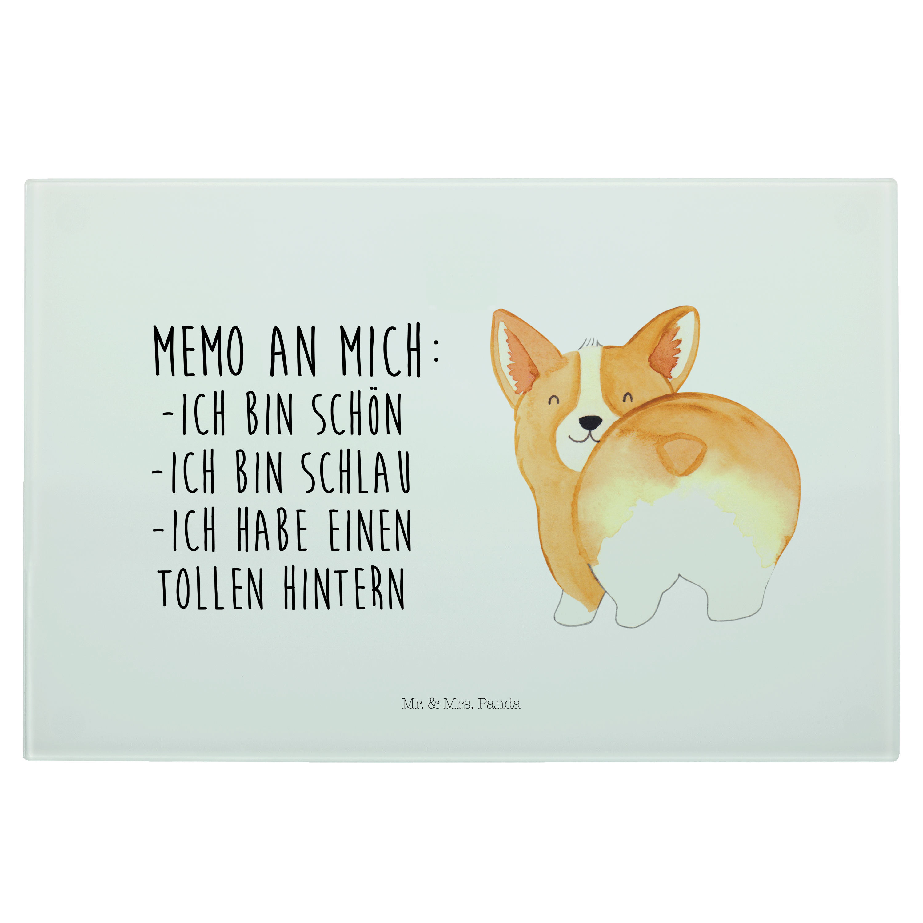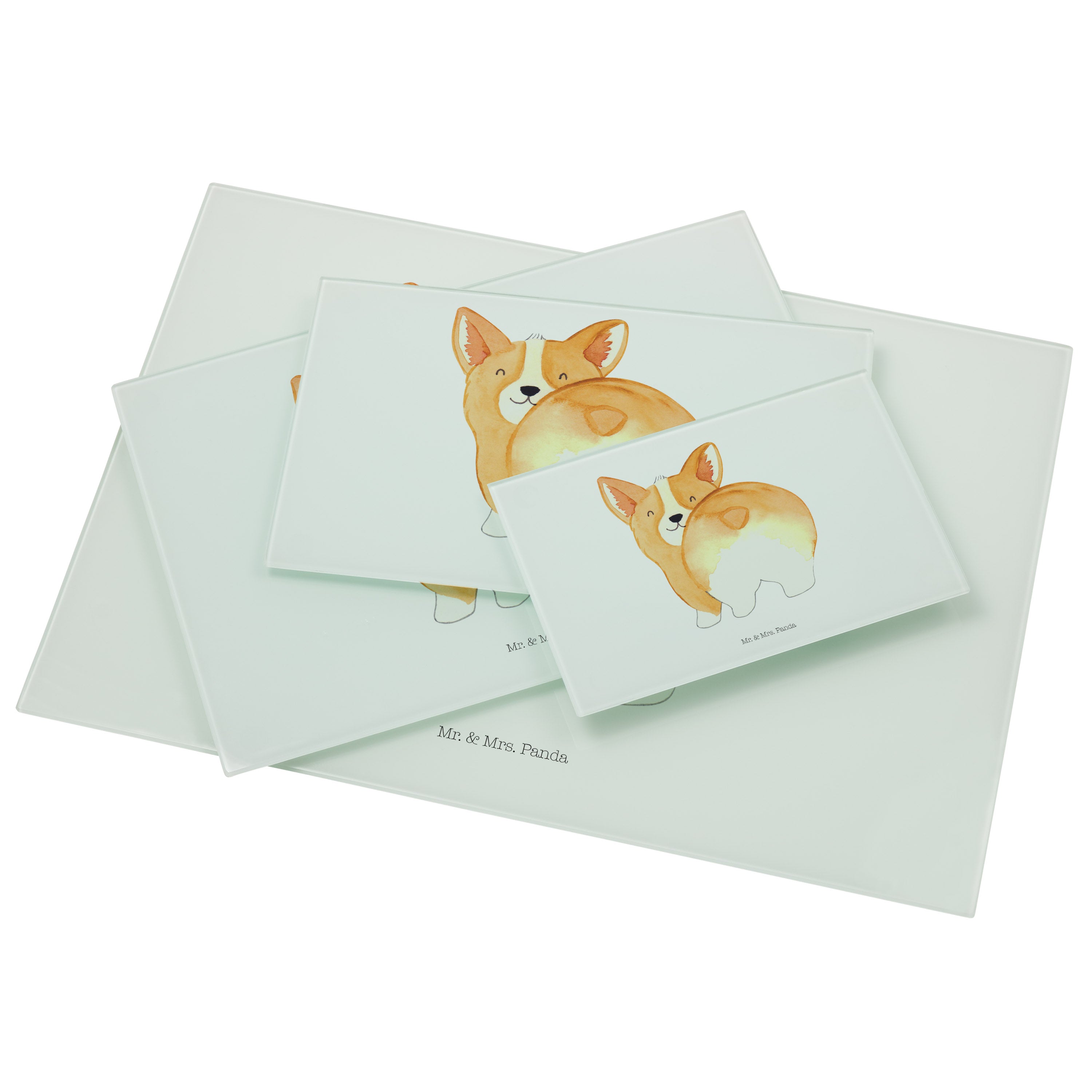 Medium Glas Schneidbrett Corgie Po - mit Spruch - Hundeglück