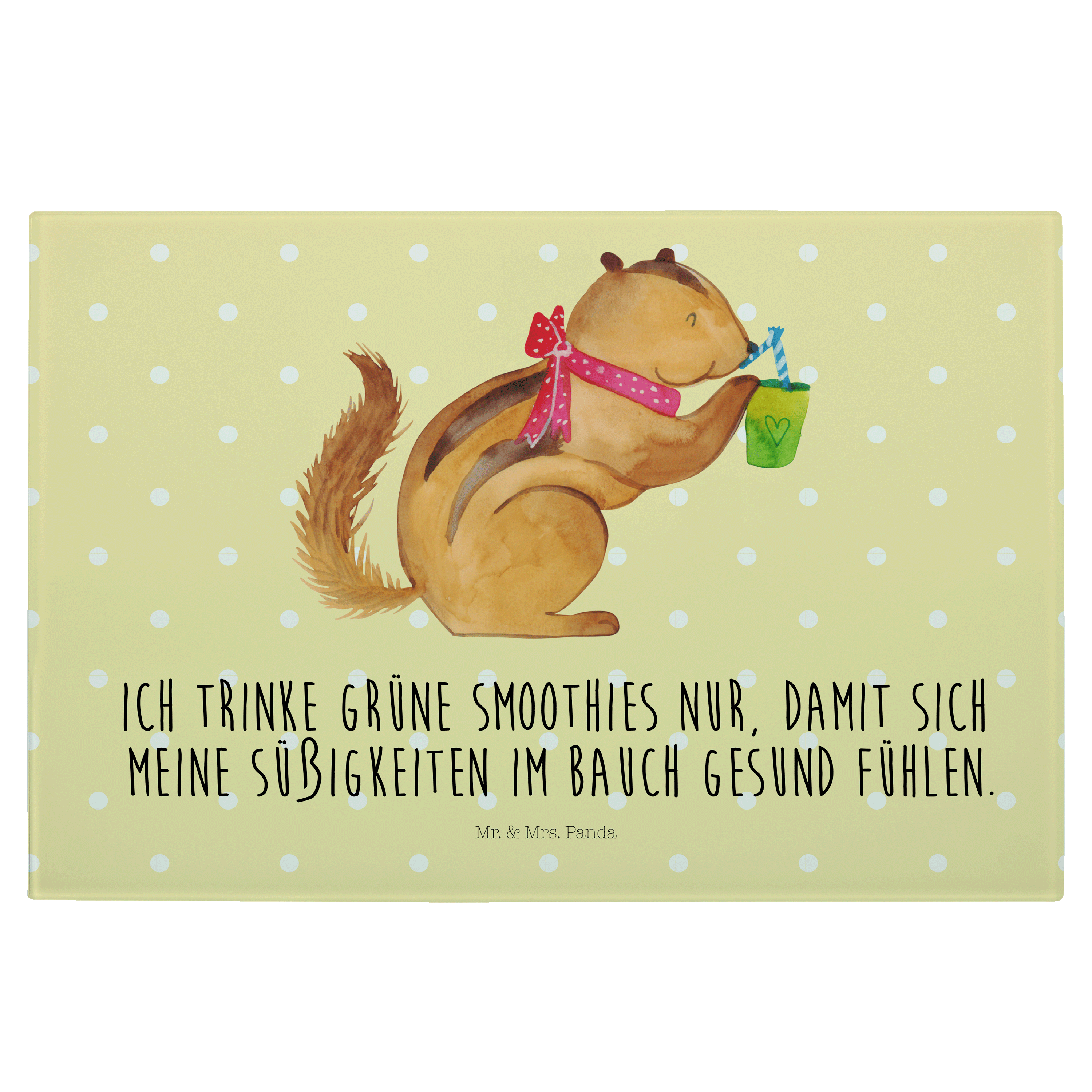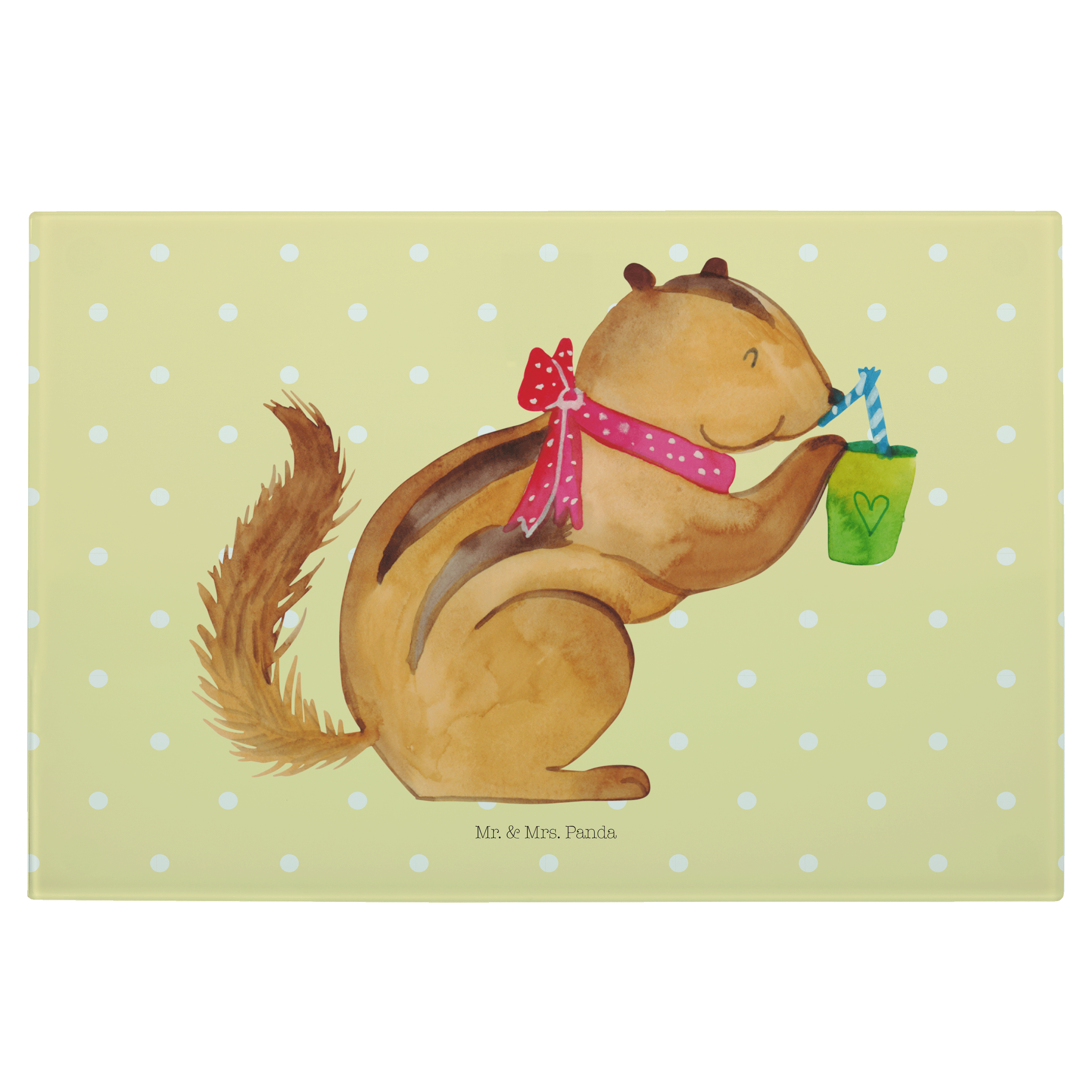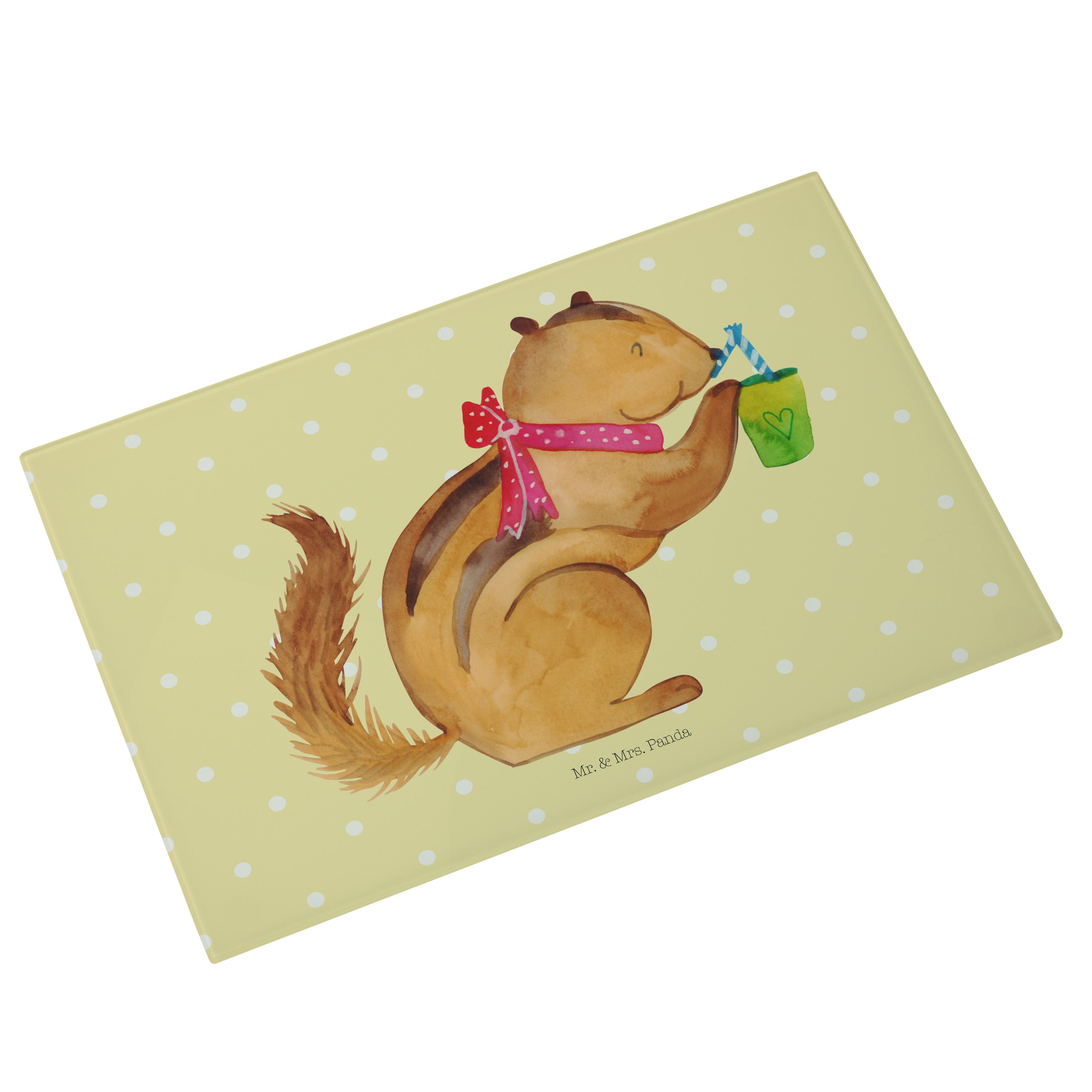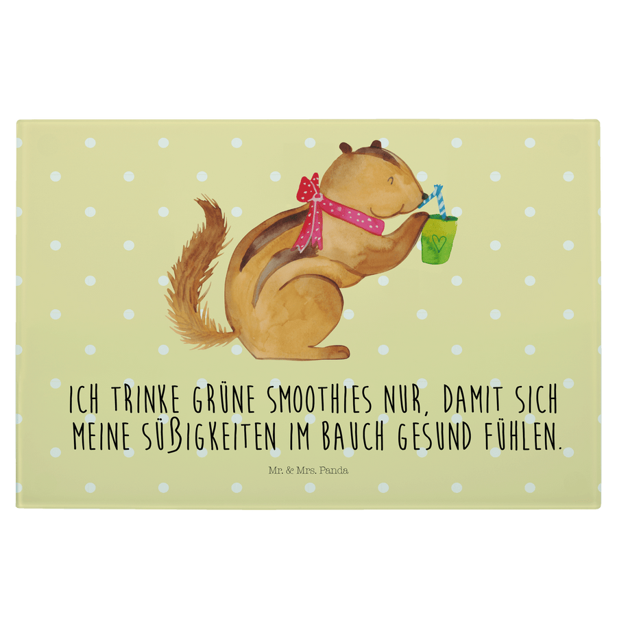 XL Glas Schneidbrett Eichhörnchen Smoothie - mit Spruch - Gelb Pastell