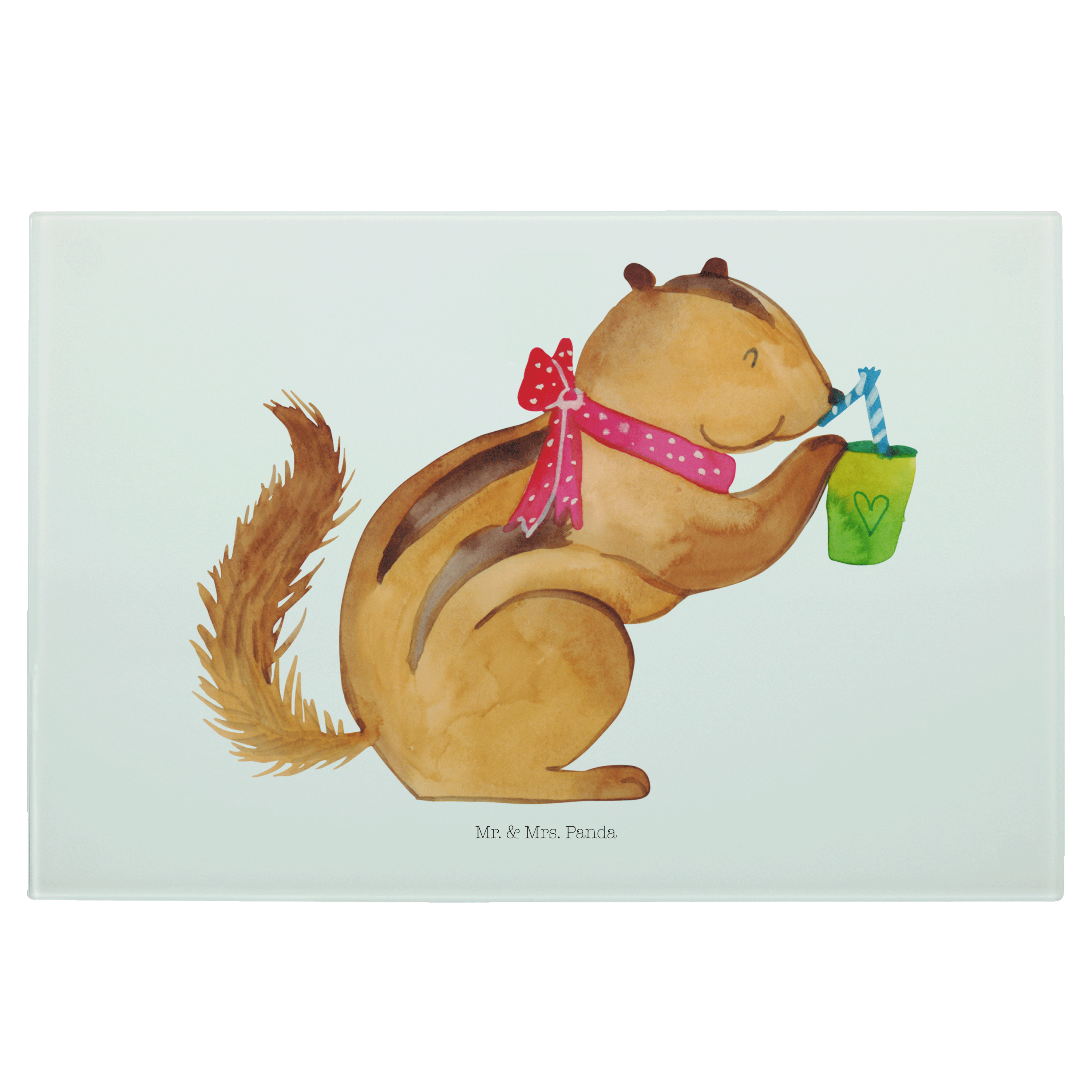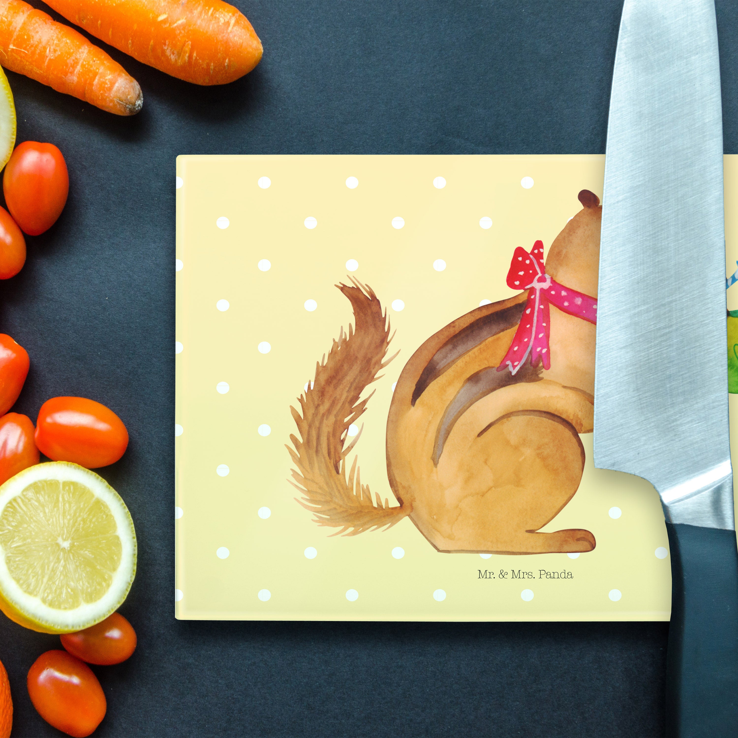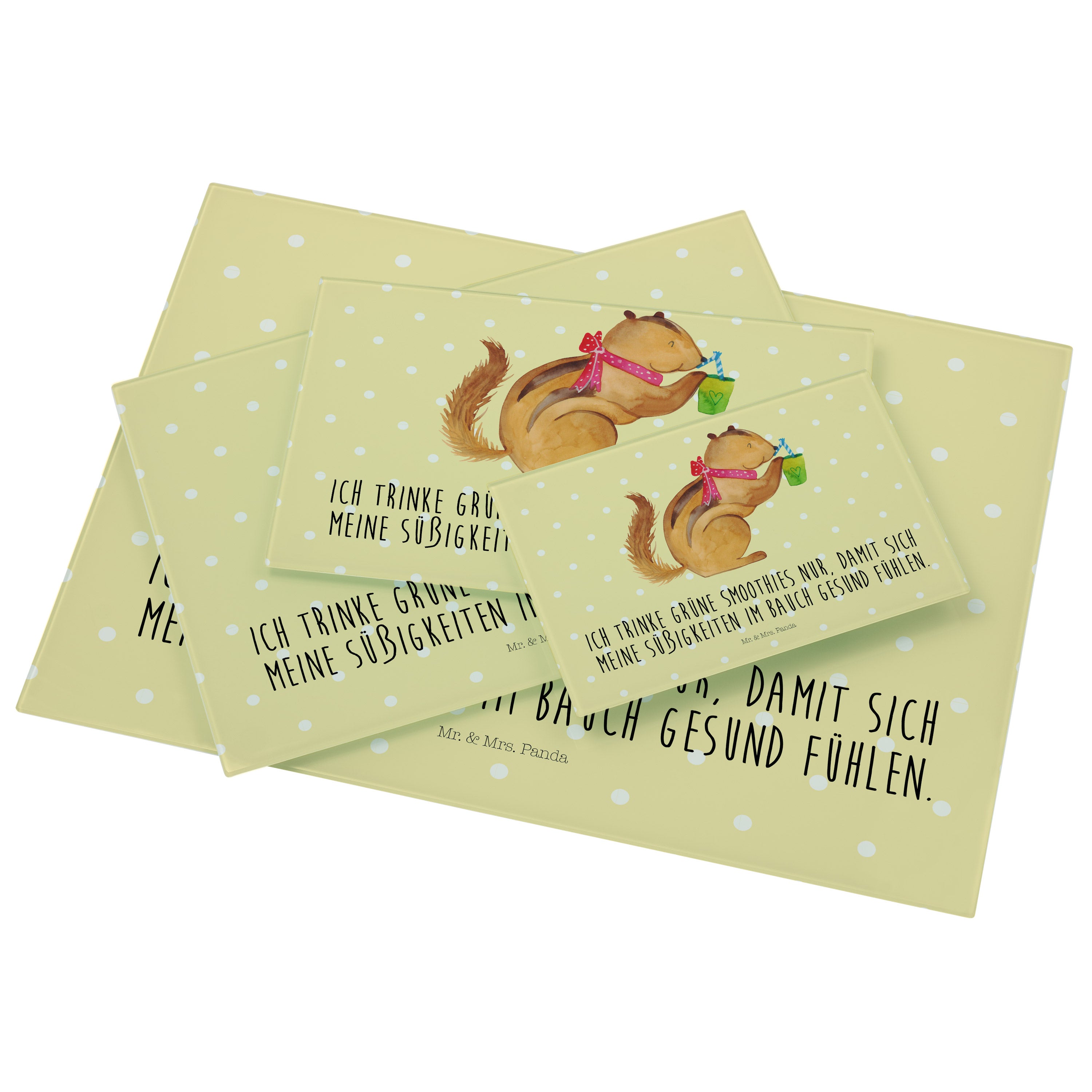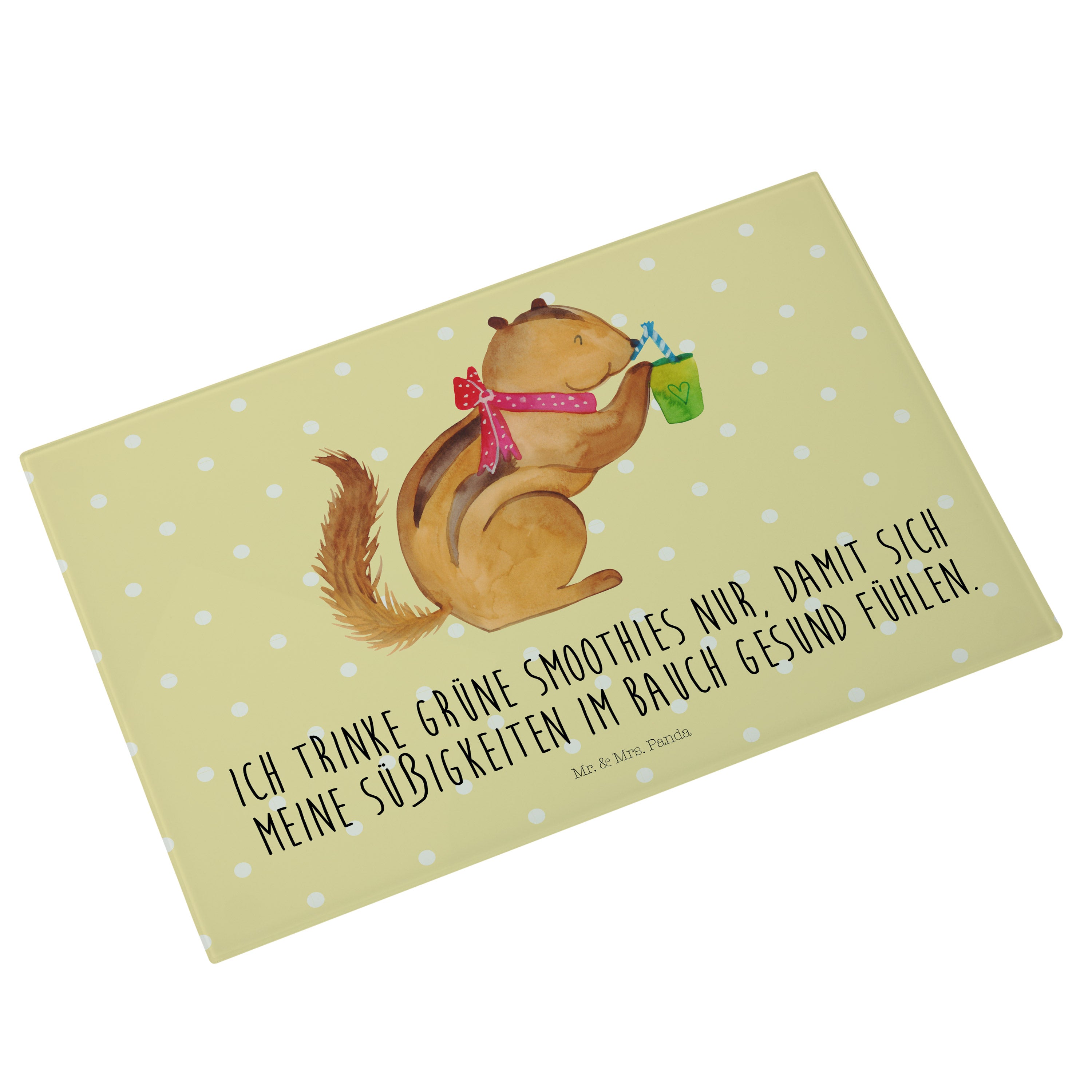 XL Glas Schneidbrett Eichhörnchen Smoothie - mit Spruch - Gelb Pastell