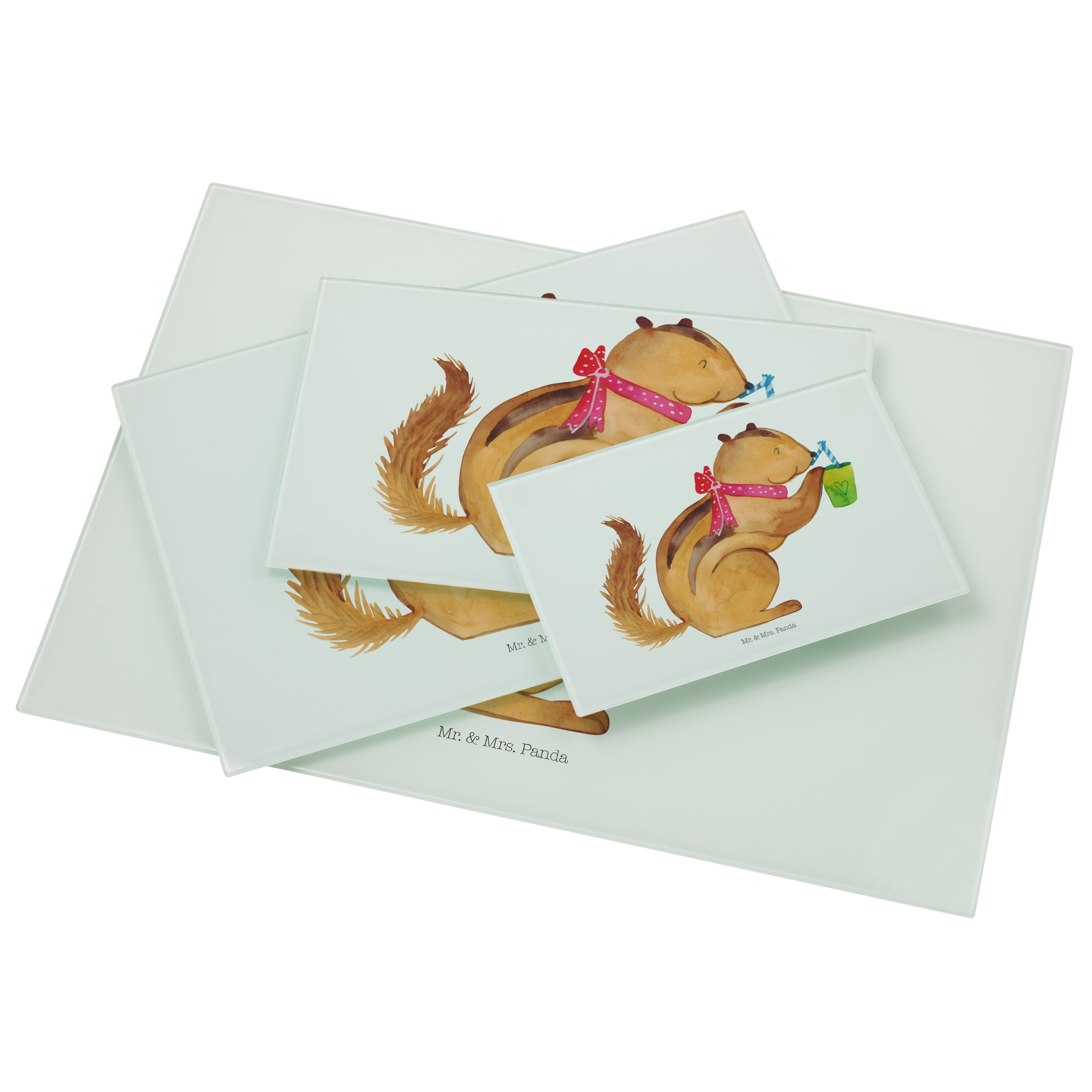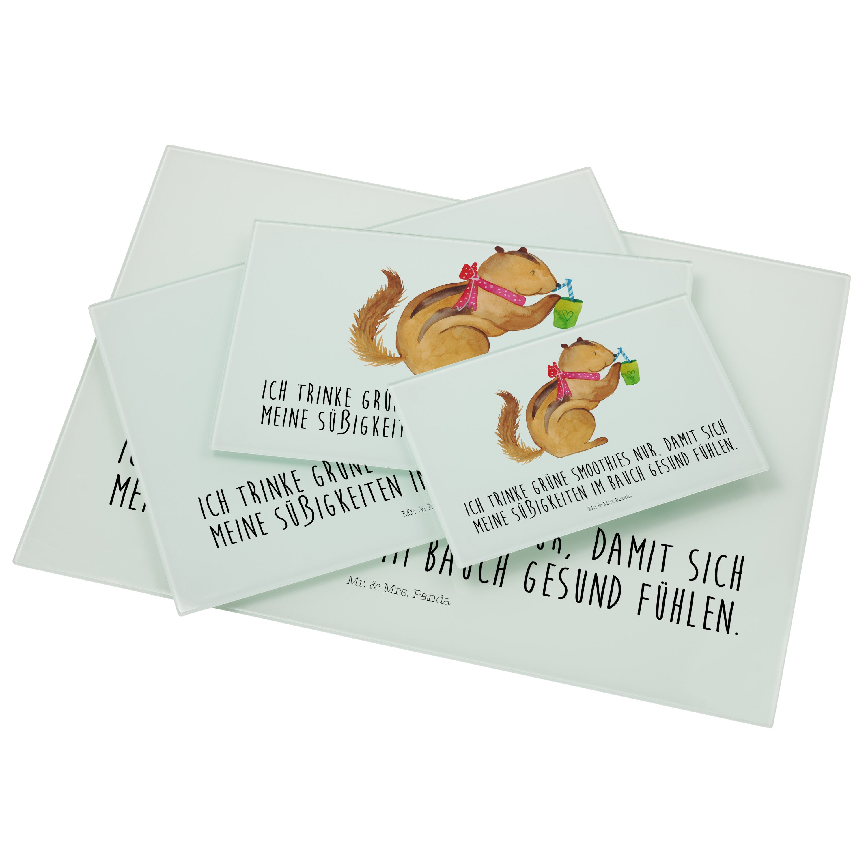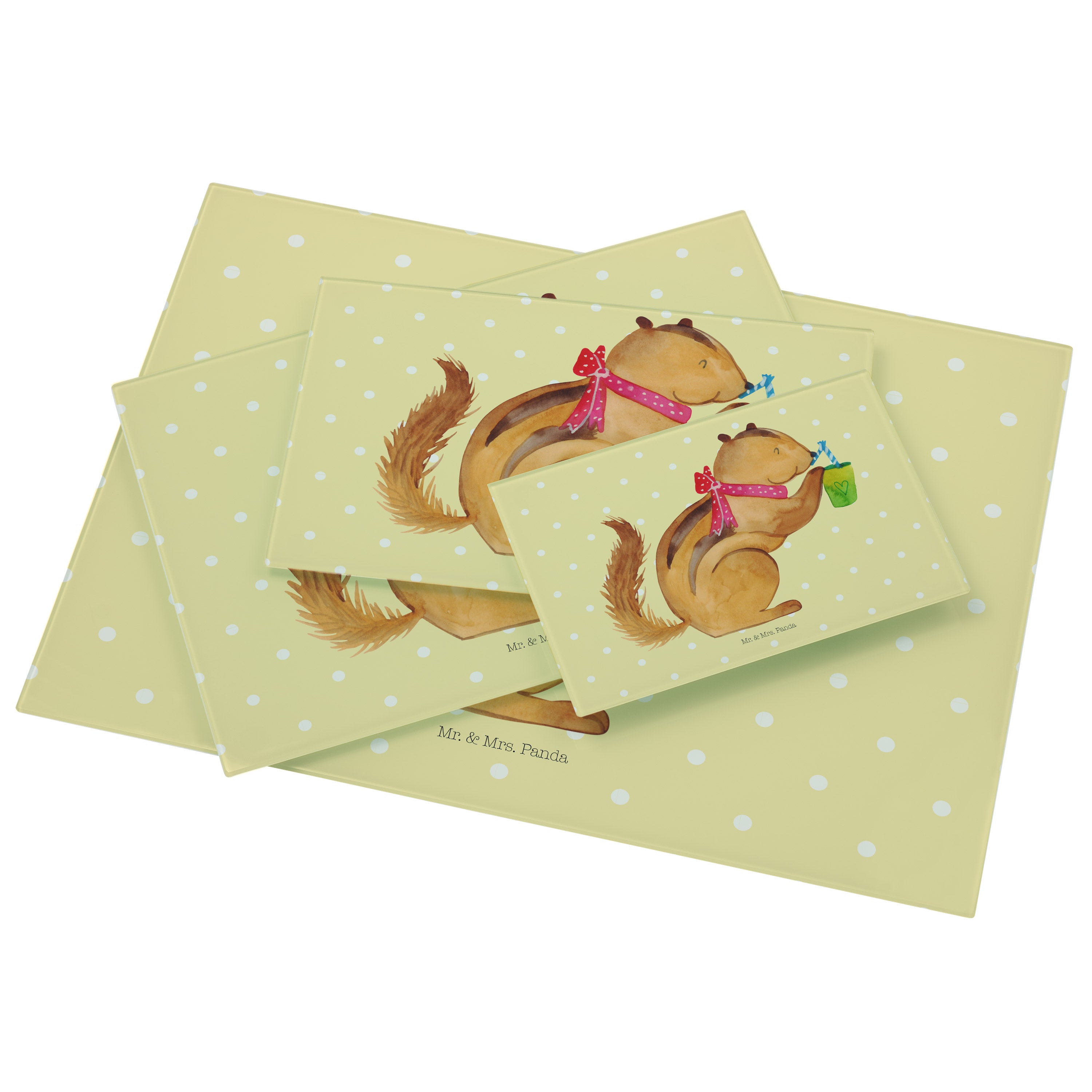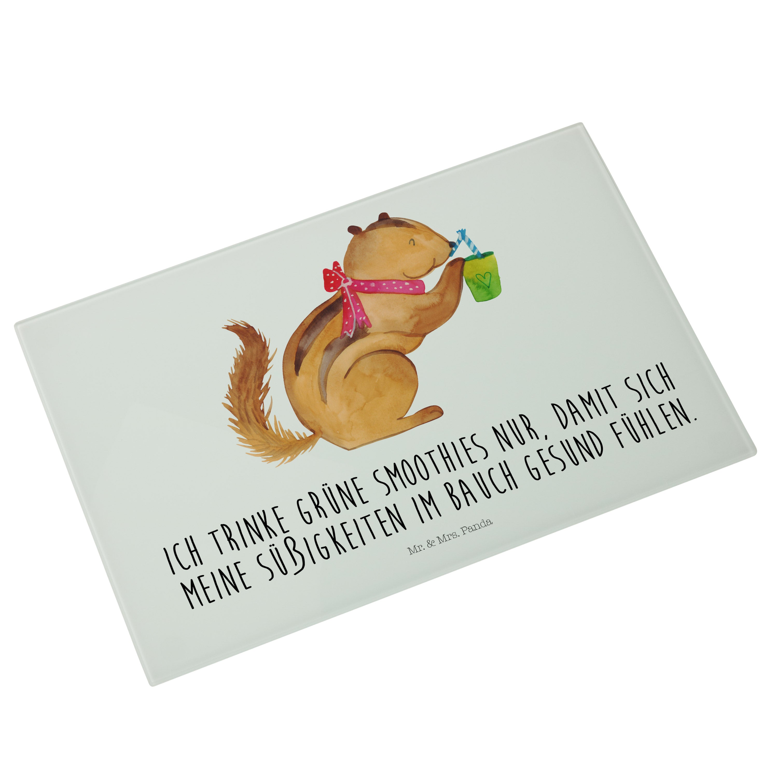 XL Glas Schneidbrett Eichhörnchen Smoothie - mit Spruch - Gelb Pastell