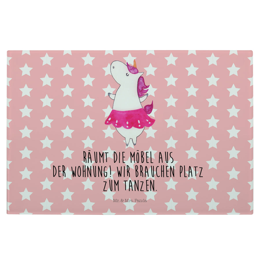 Medium Glas Schneidbrett Einhorn Ballerina - mit Spruch - Rot Pastell