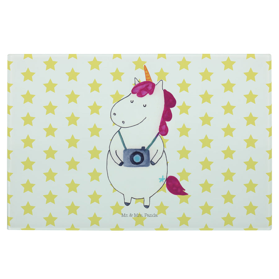 Medium Glas Schneidbrett Einhorn Fotograf - ohne Spruch - Weiß