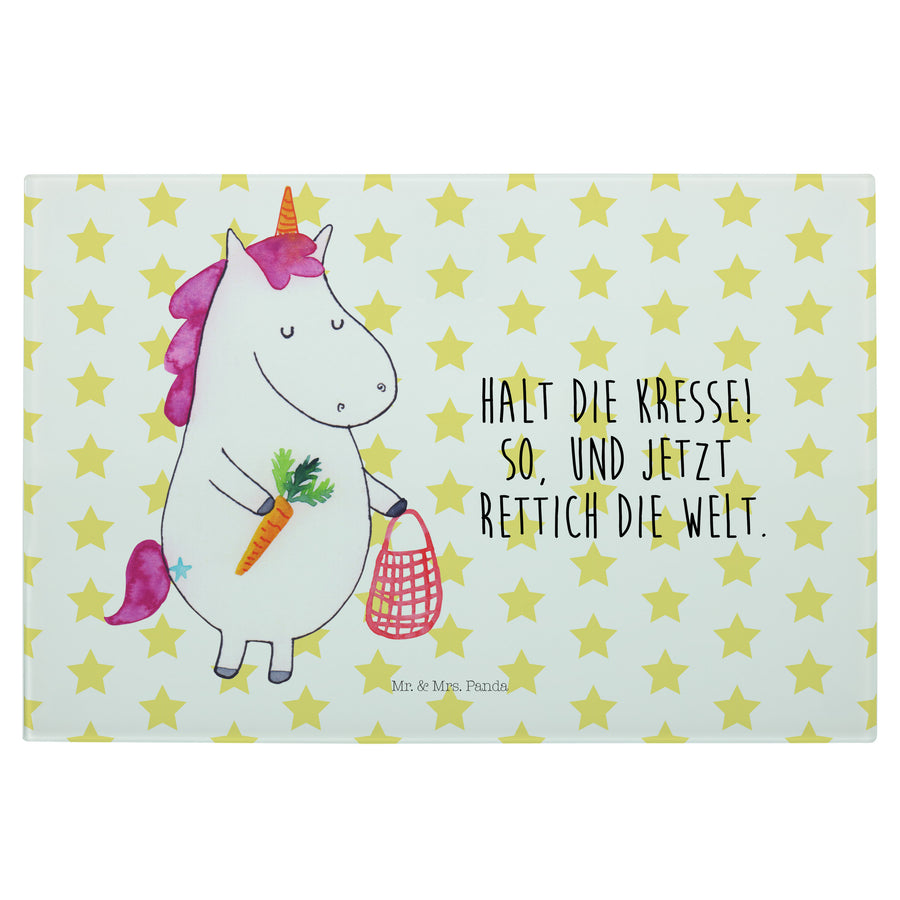 Medium Glas Schneidbrett Einhorn Gemüse - mit Spruch - Weiß