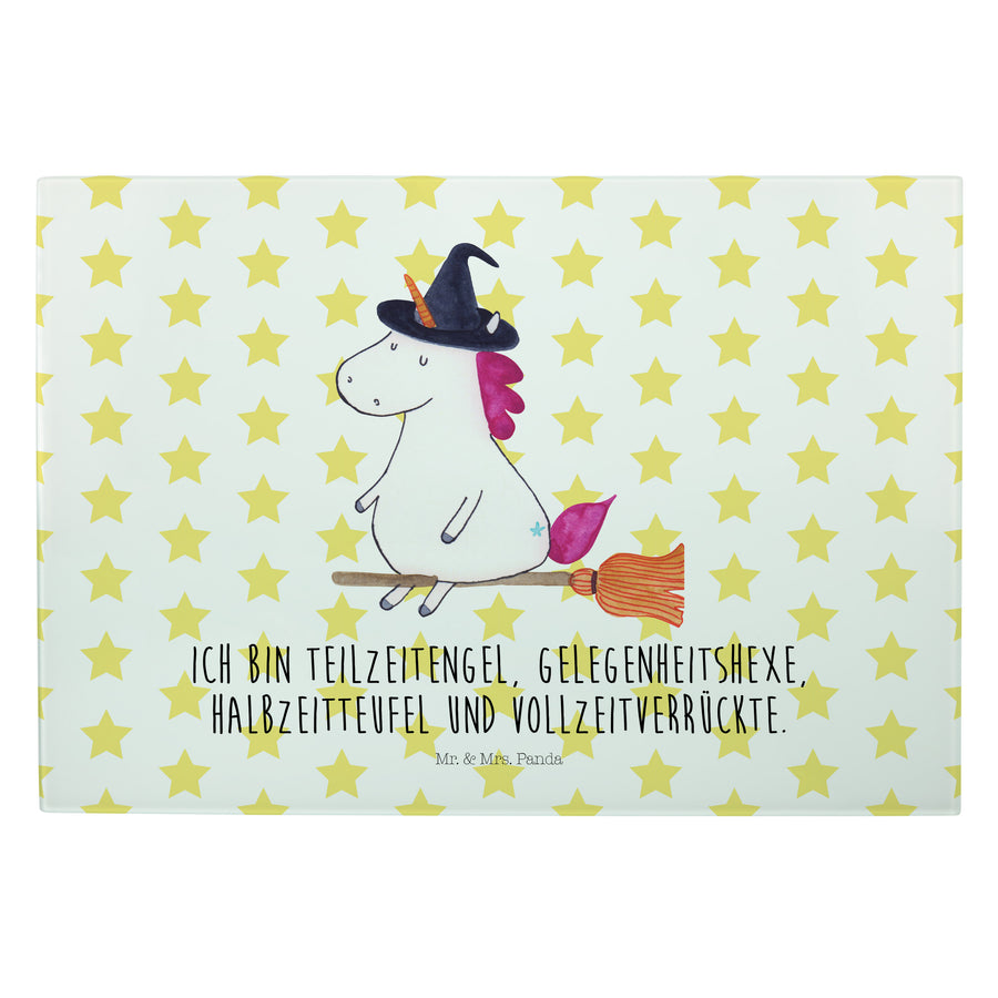 XL Glas Schneidbrett Einhorn Hexe - mit Spruch - Weiß