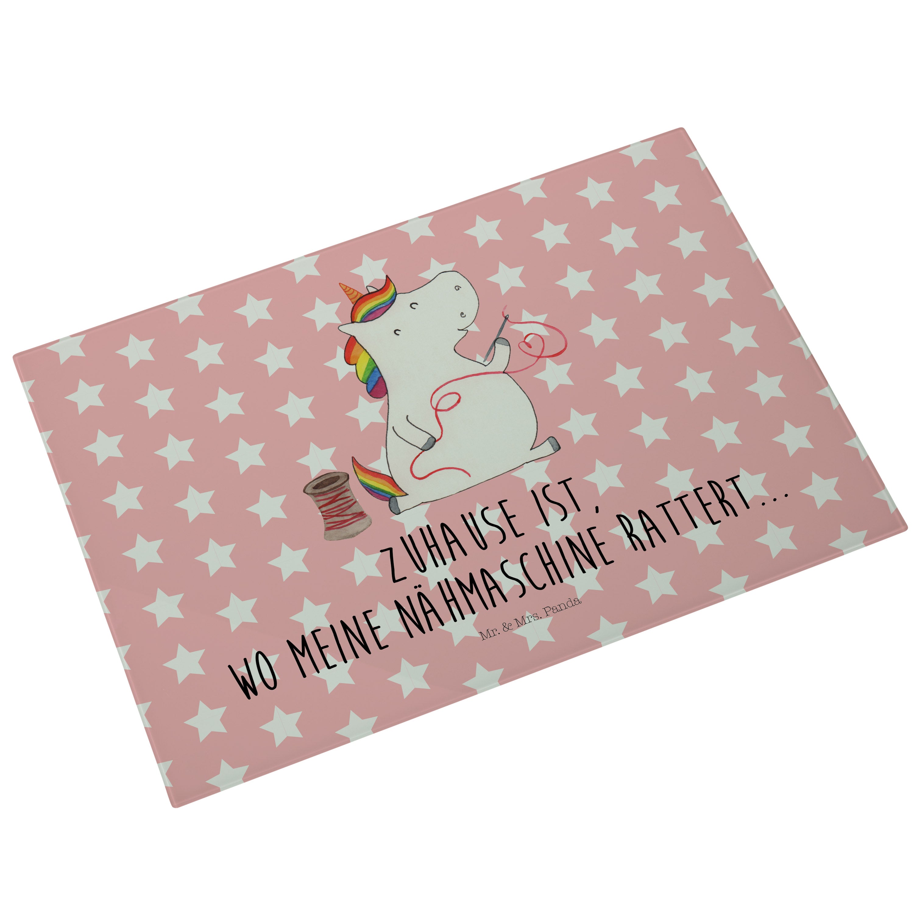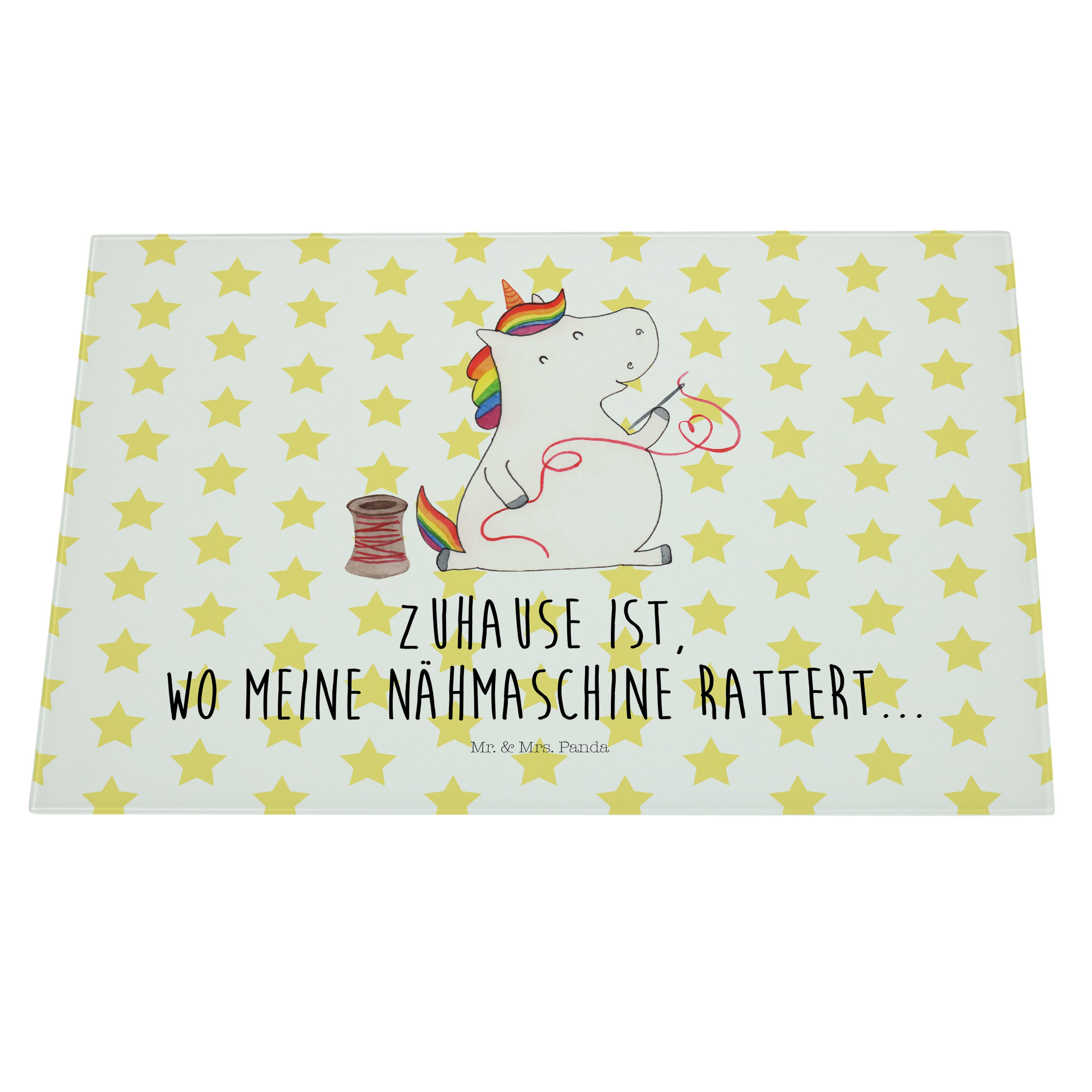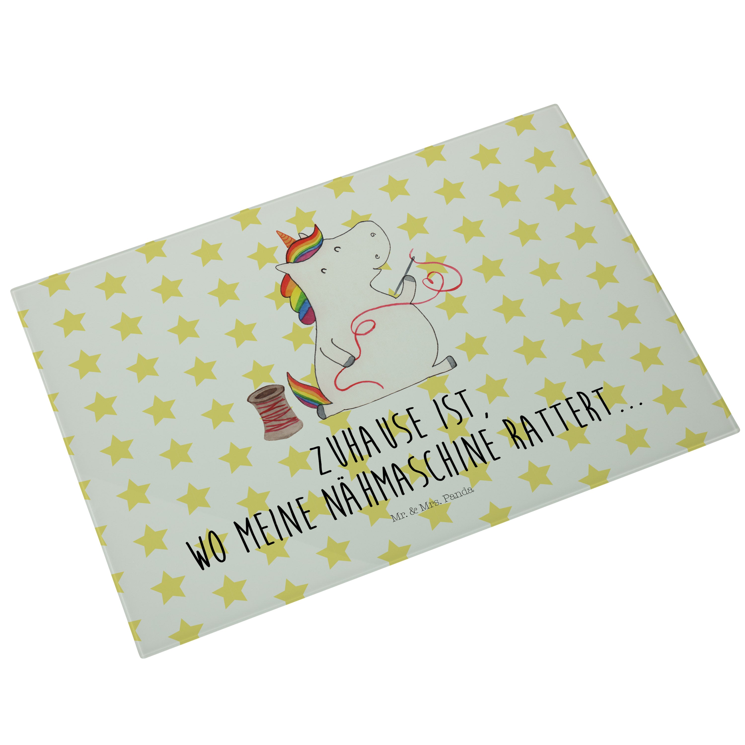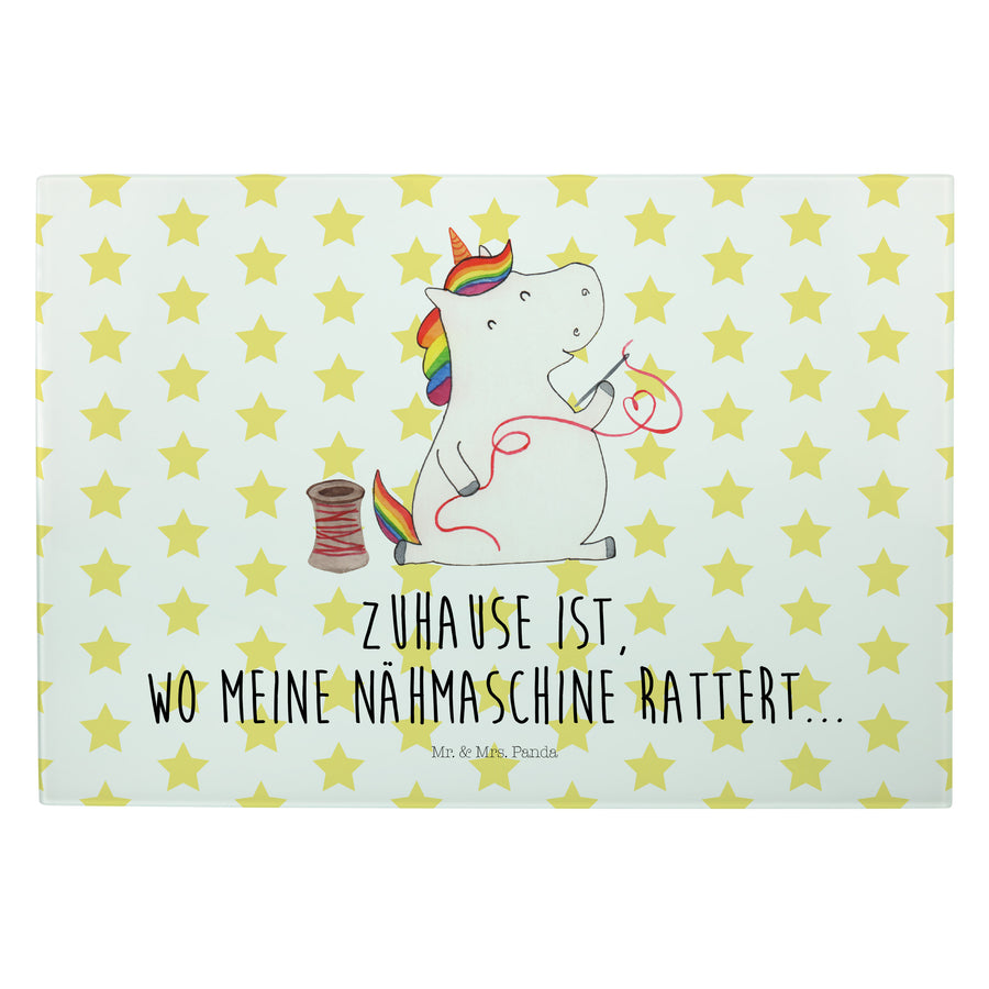 XL Glas Schneidbrett Einhorn Näherin - mit Spruch - Weiß