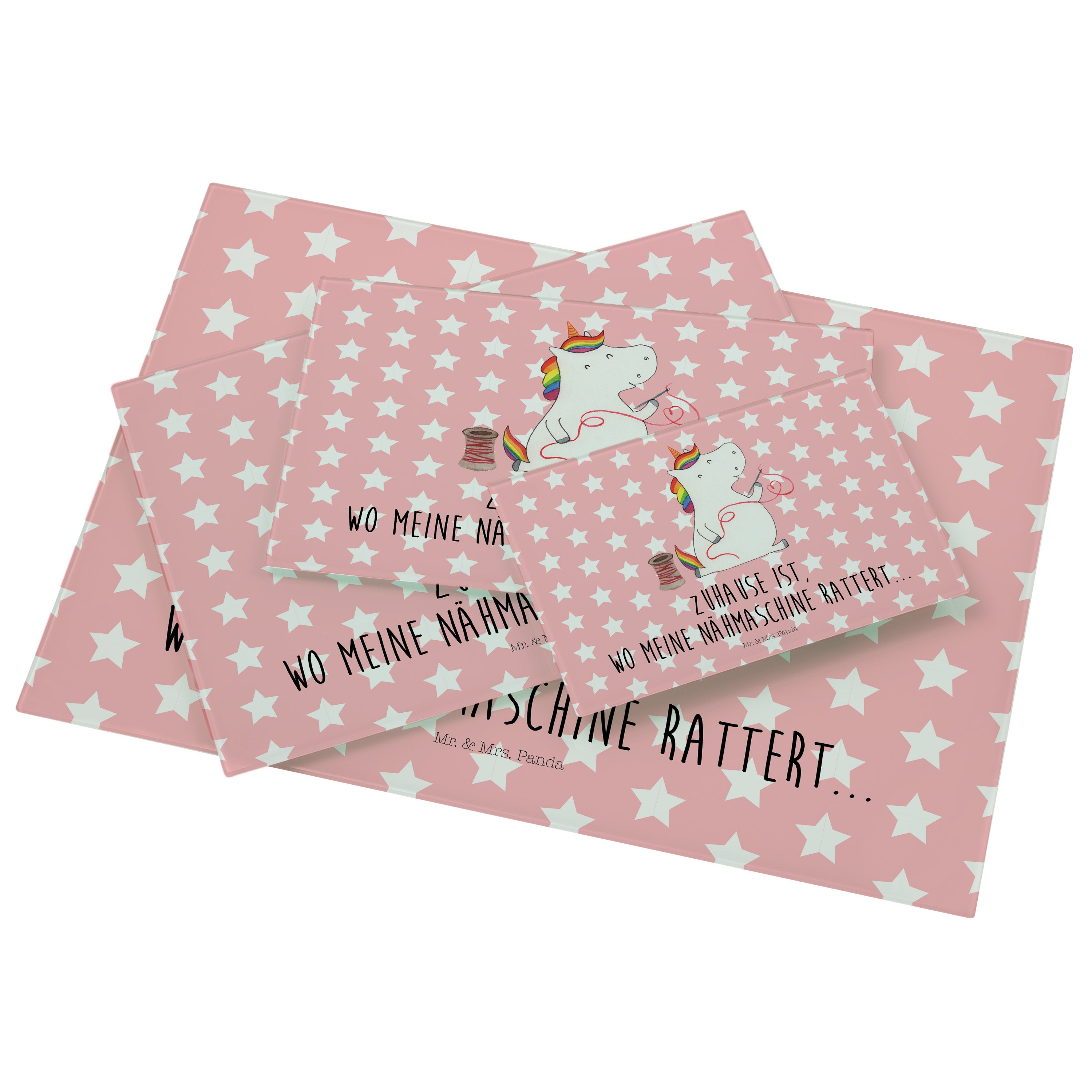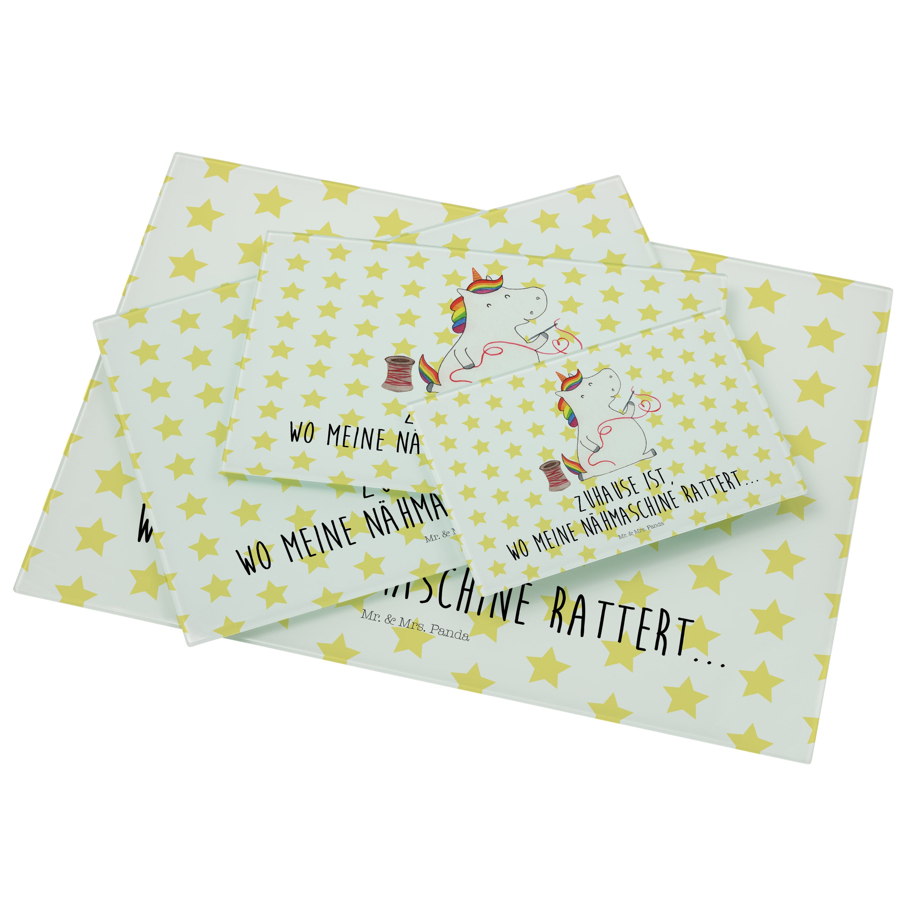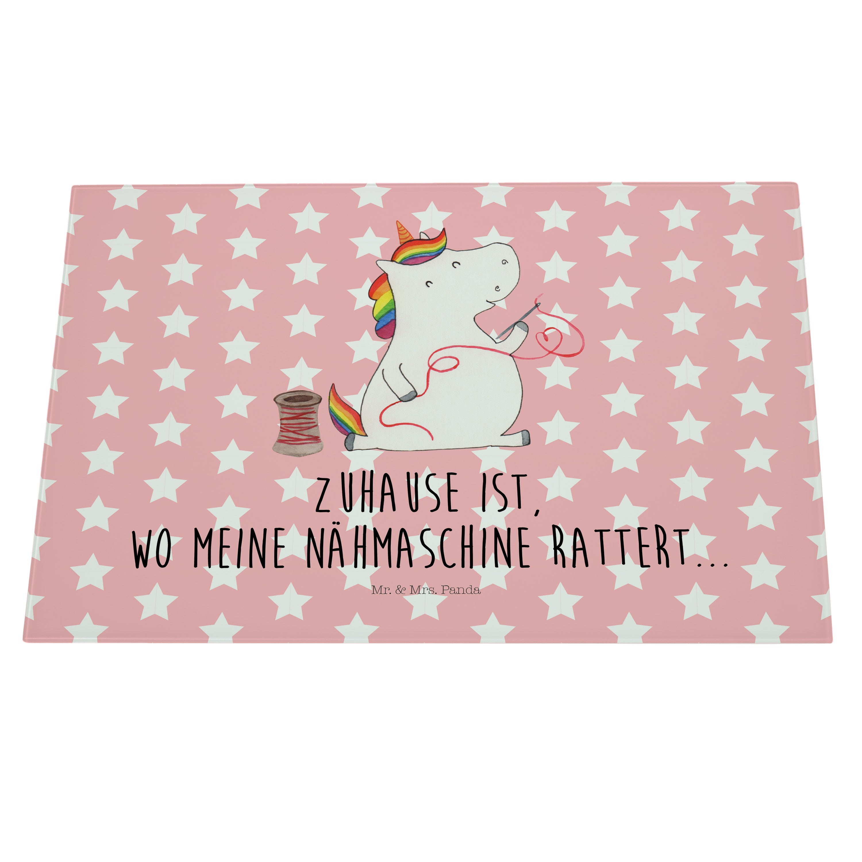 XL Glas Schneidbrett Einhorn Näherin - mit Spruch - Weiß