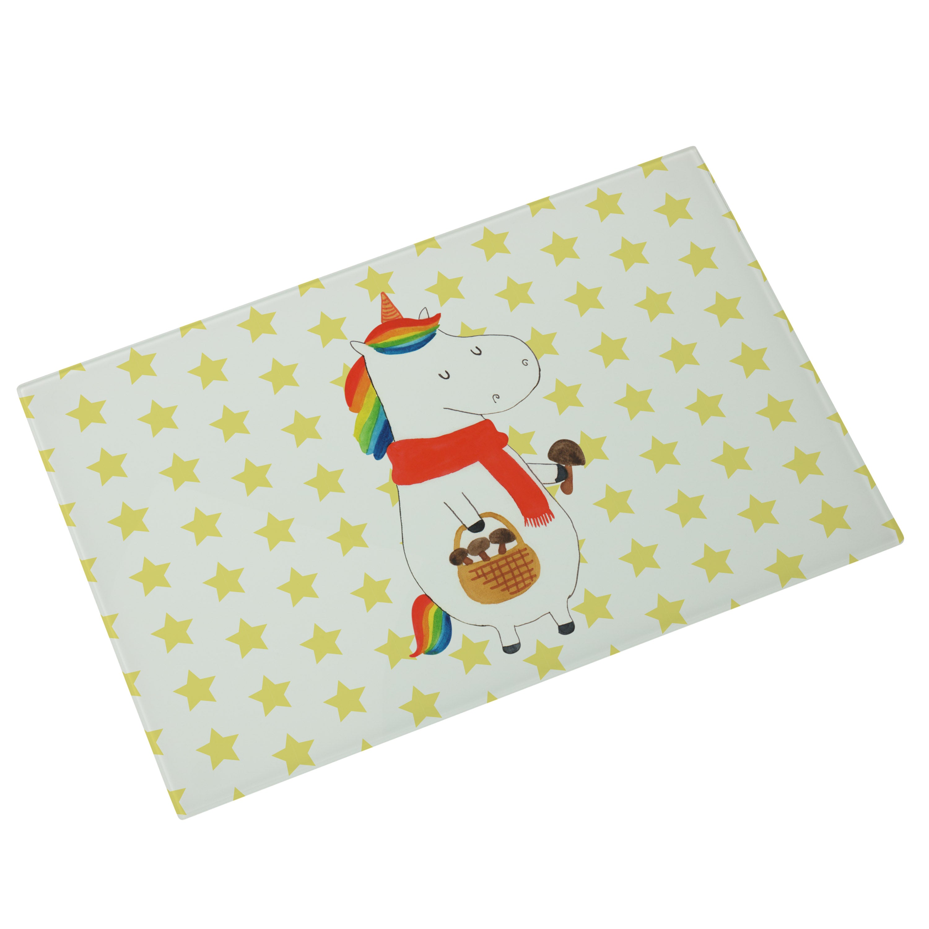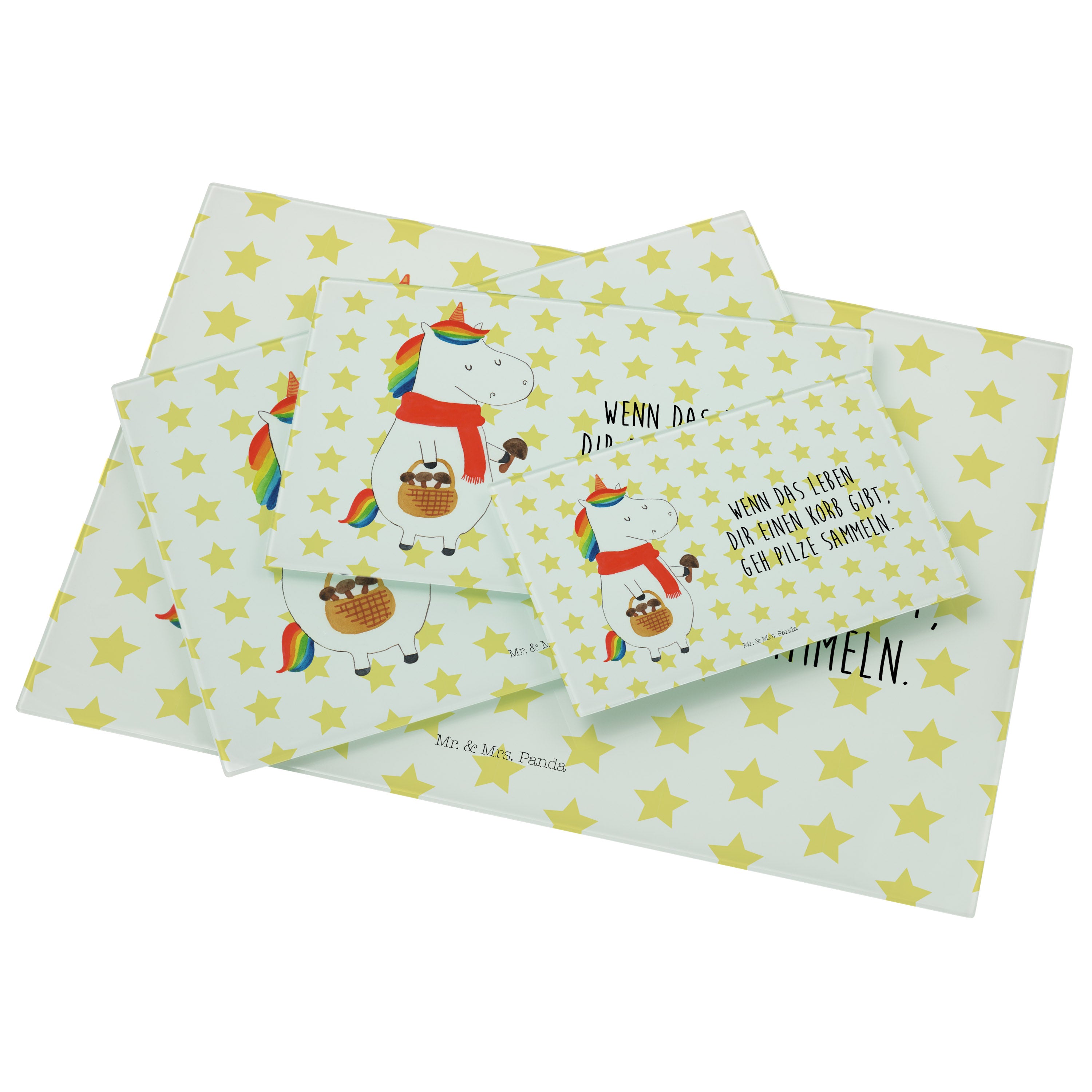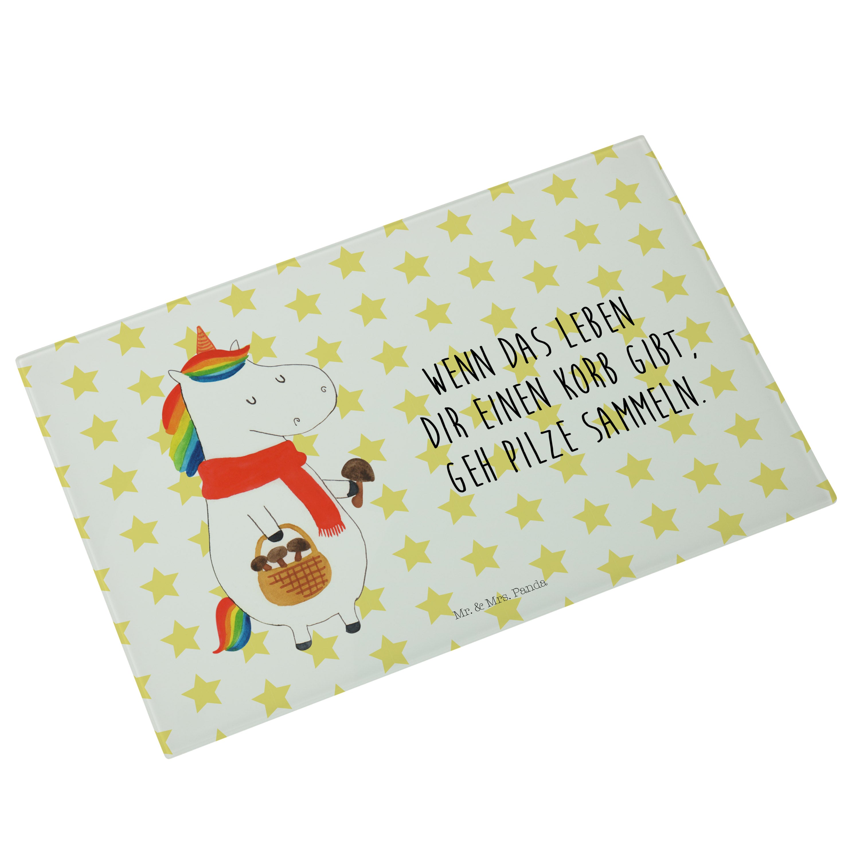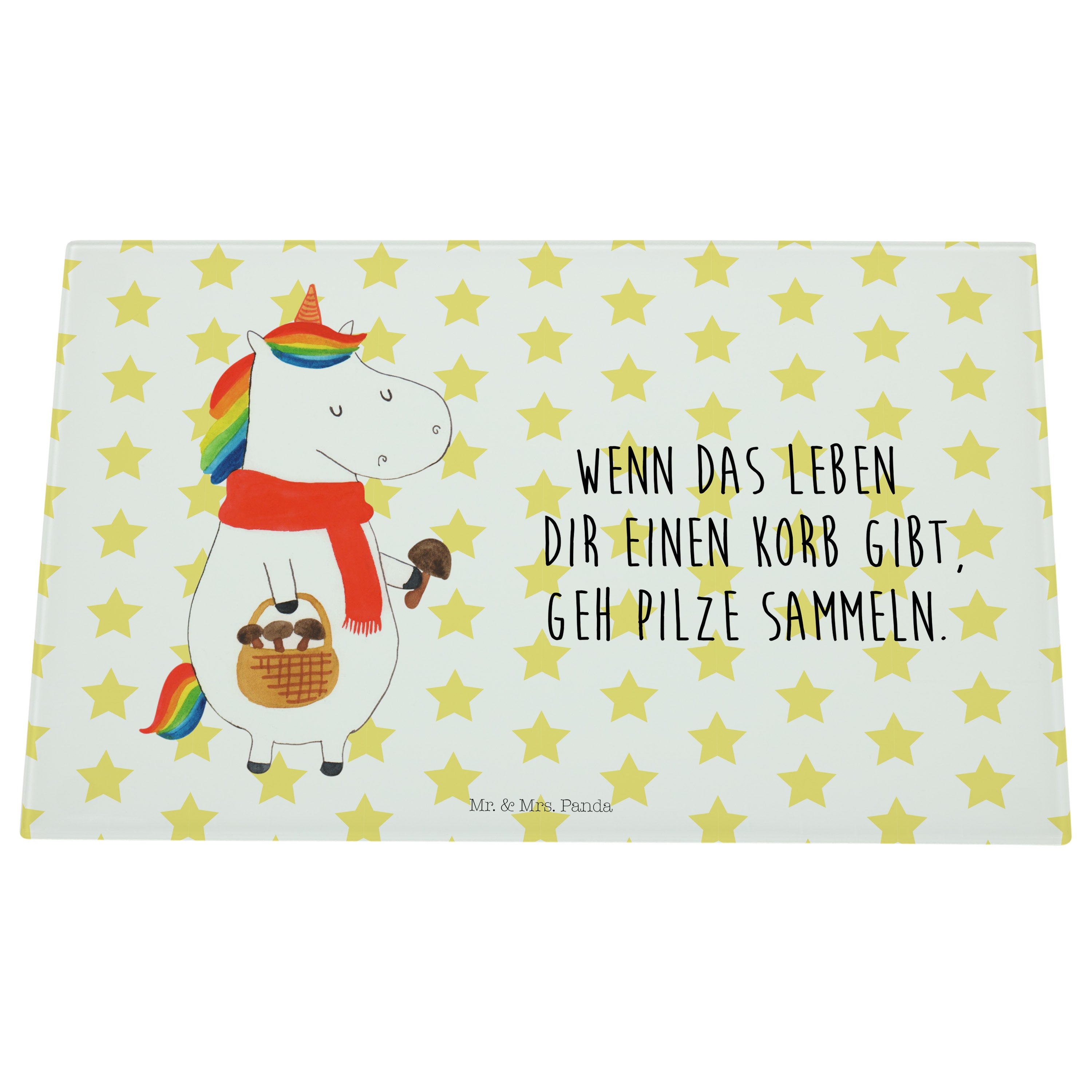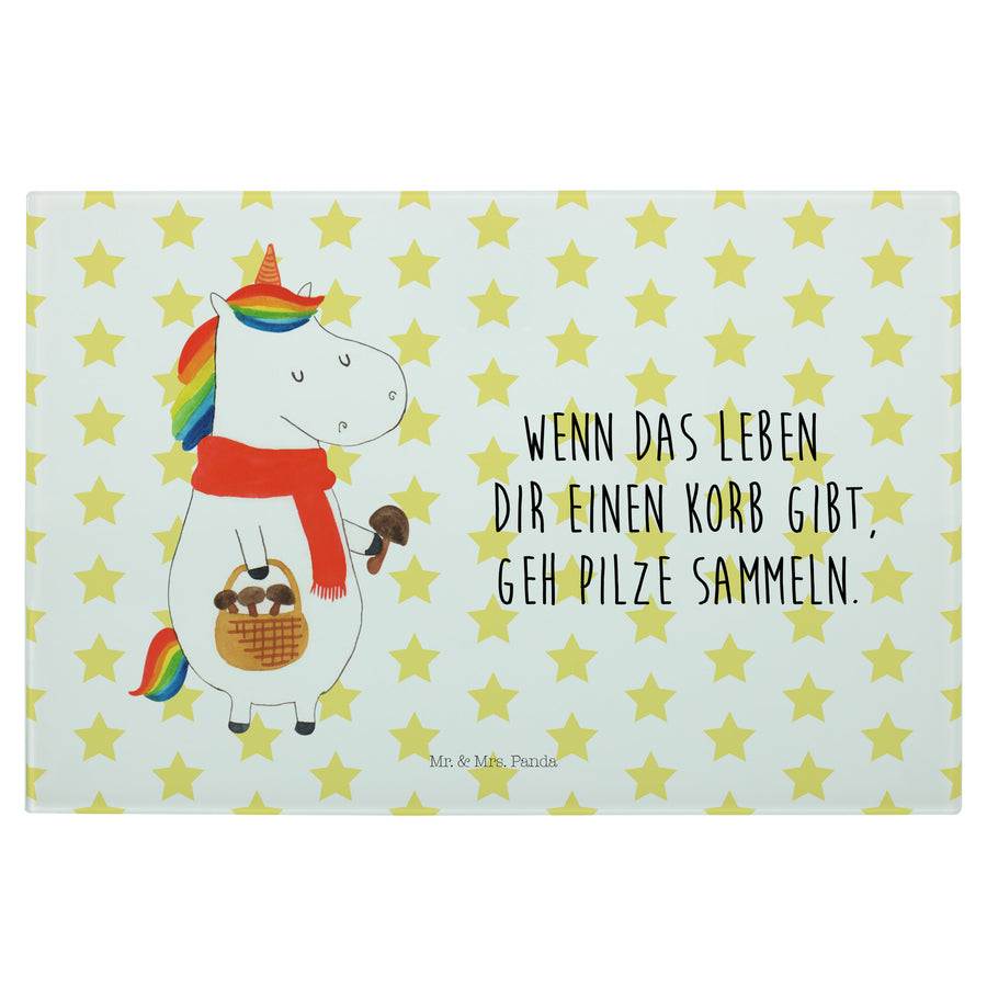Medium Glas Schneidbrett Einhorn Pilz - mit Spruch - Weiß