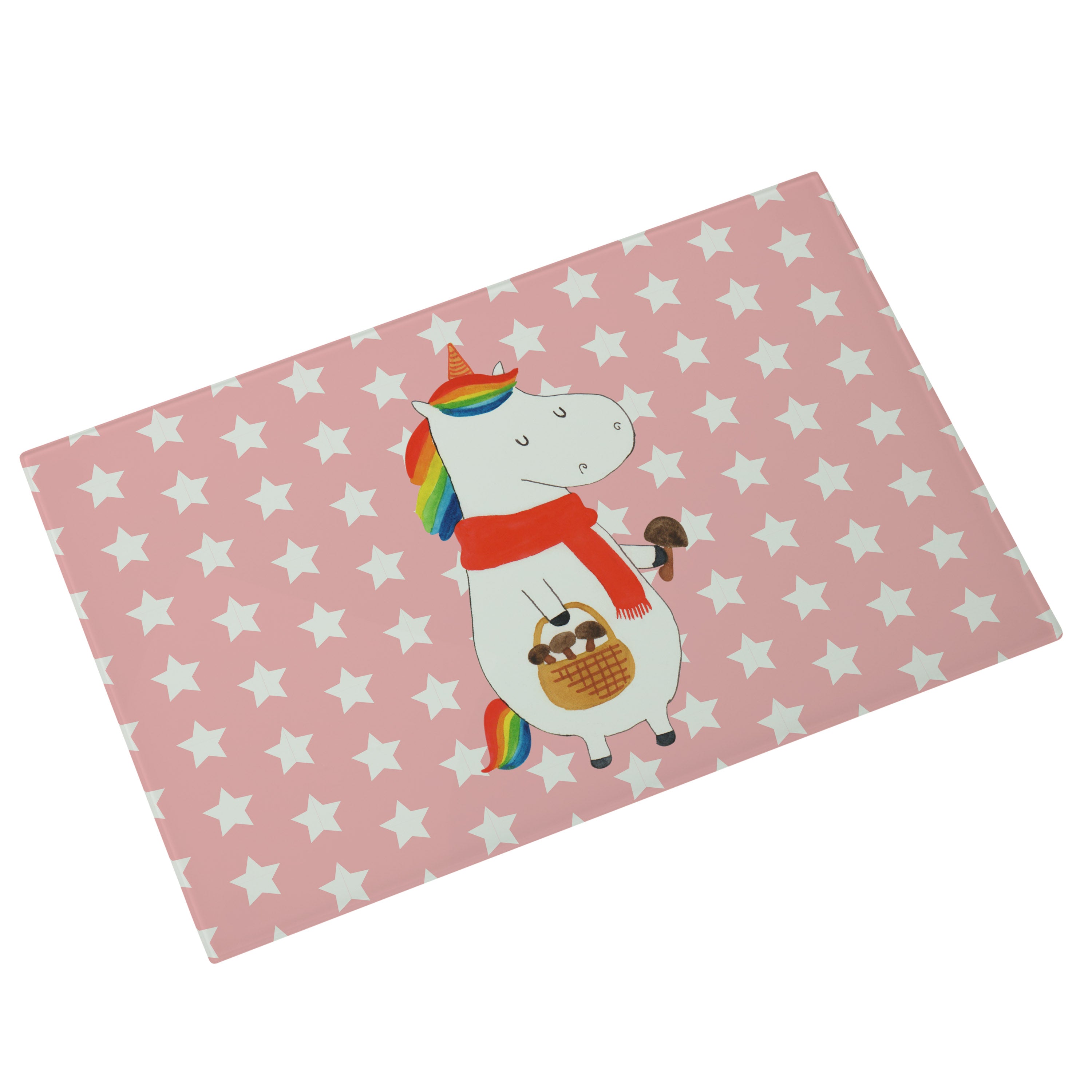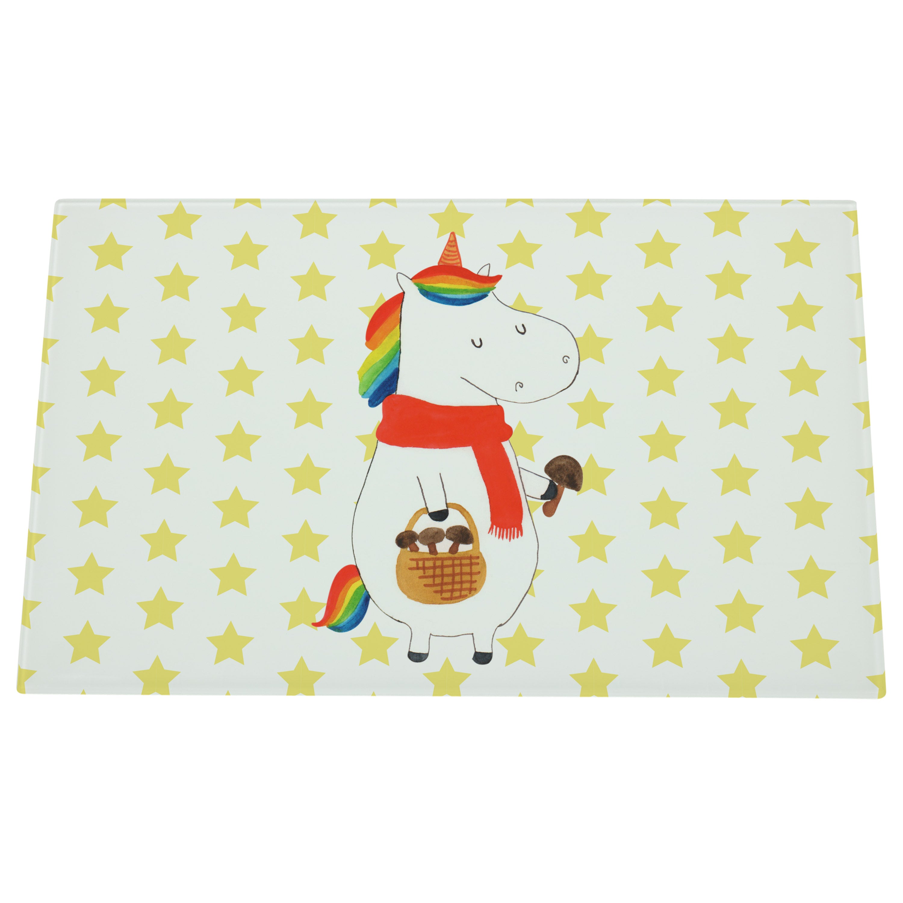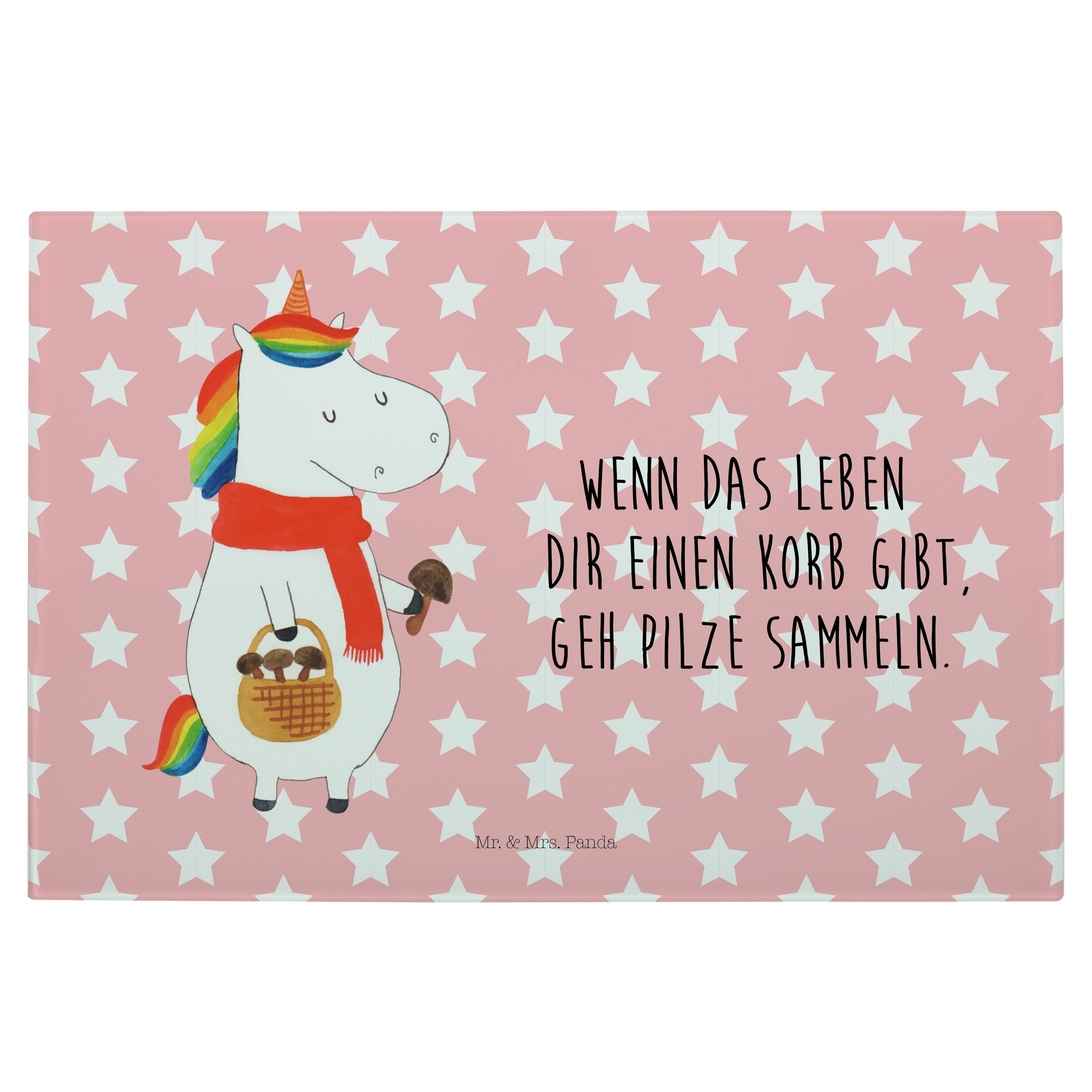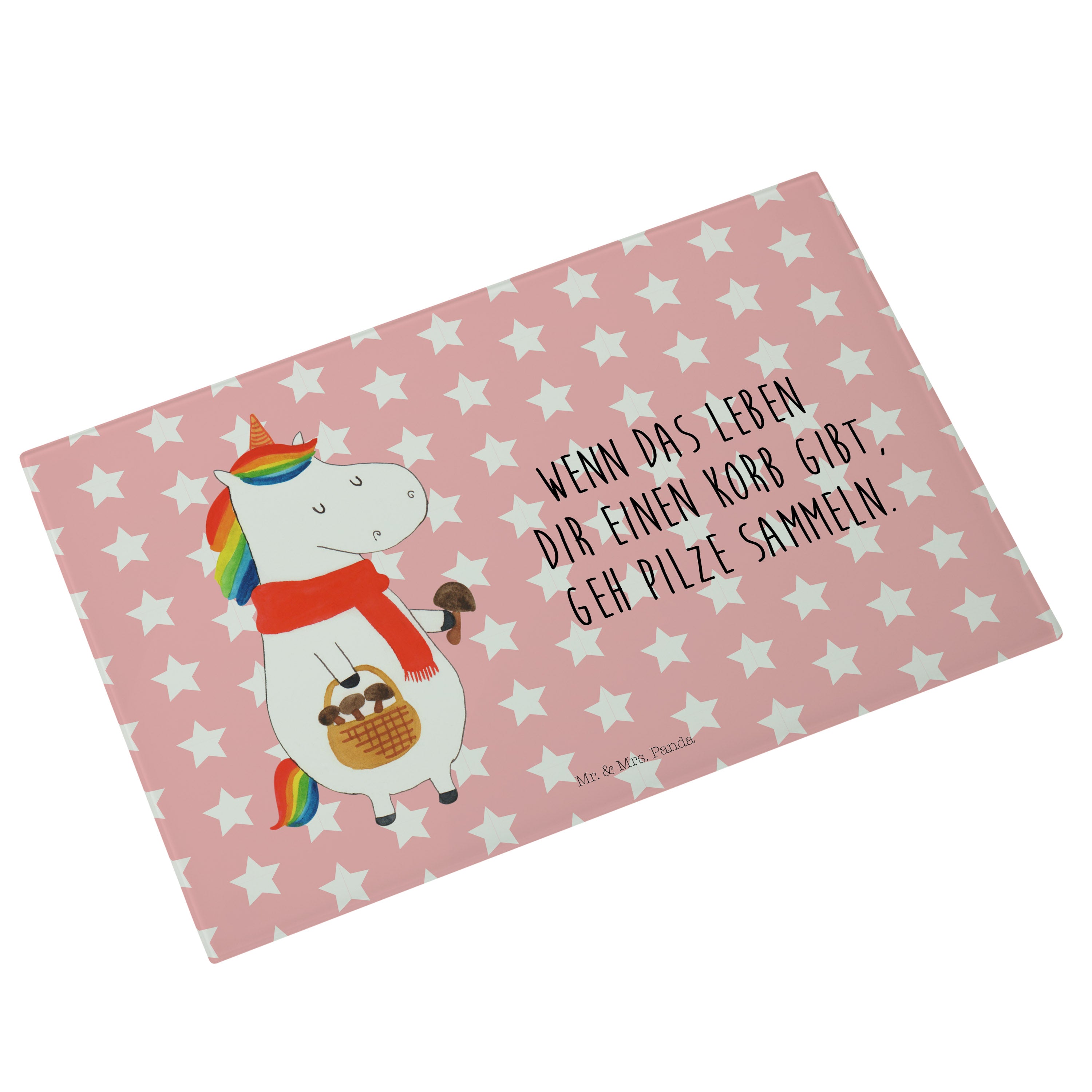 Medium Glas Schneidbrett Einhorn Pilz - mit Spruch - Weiß
