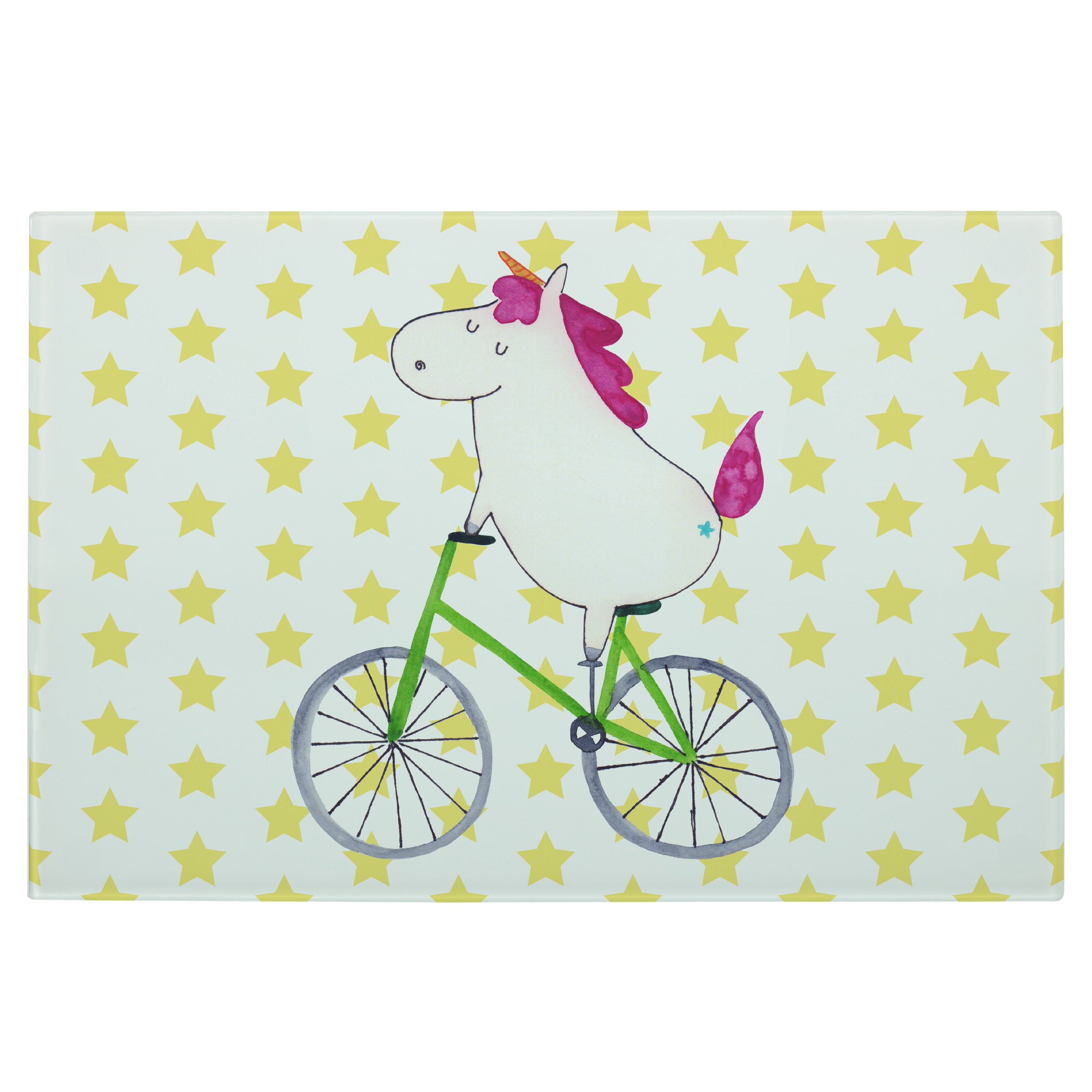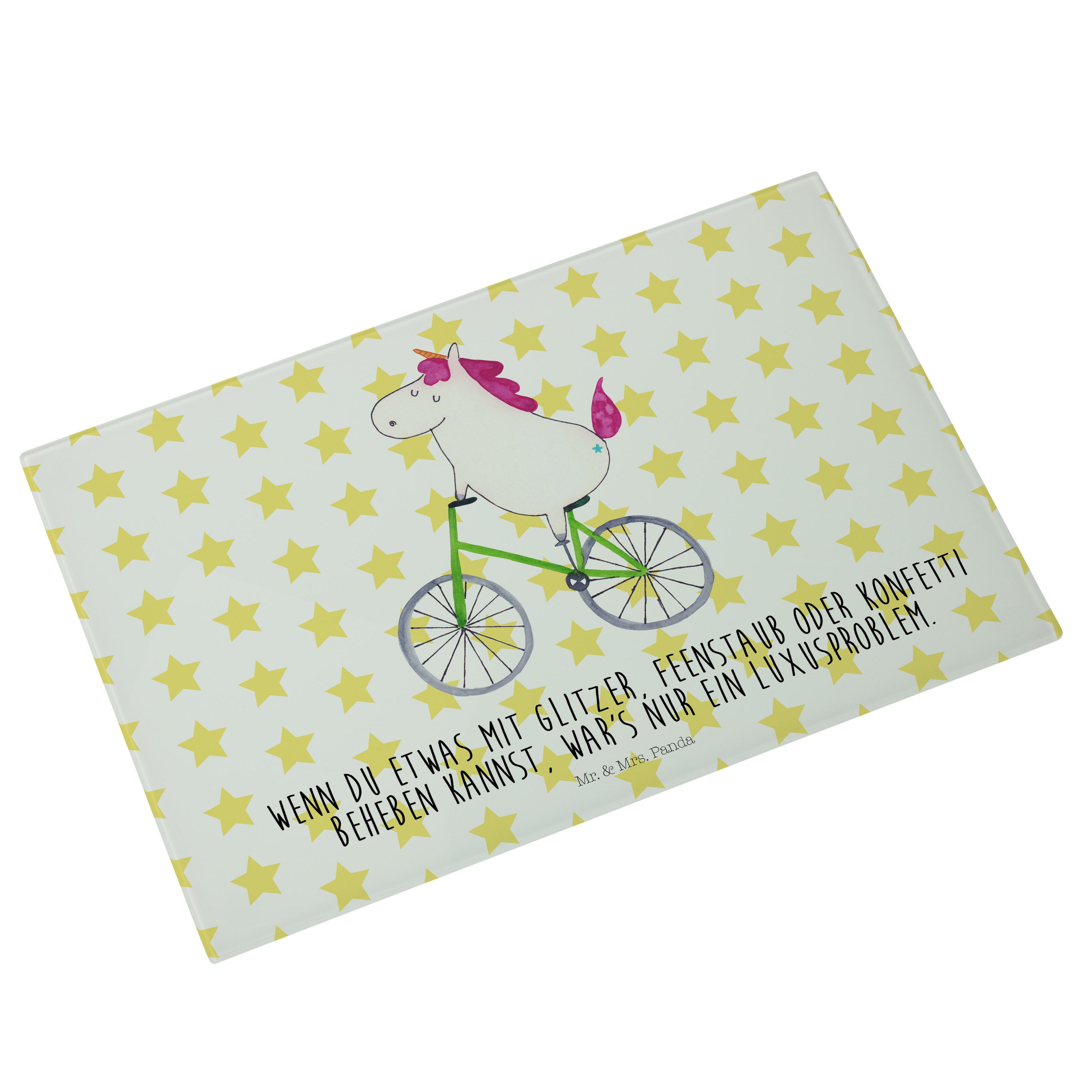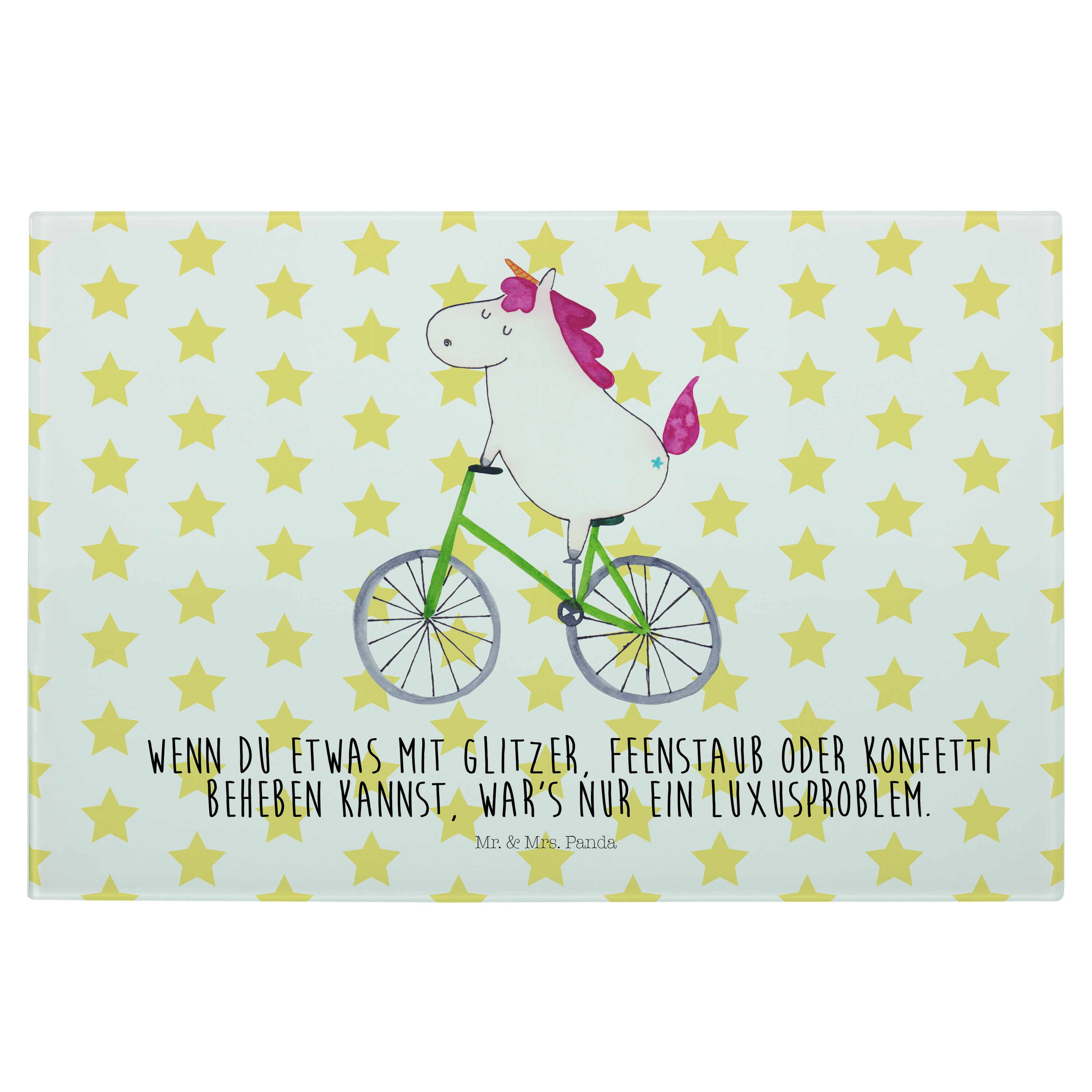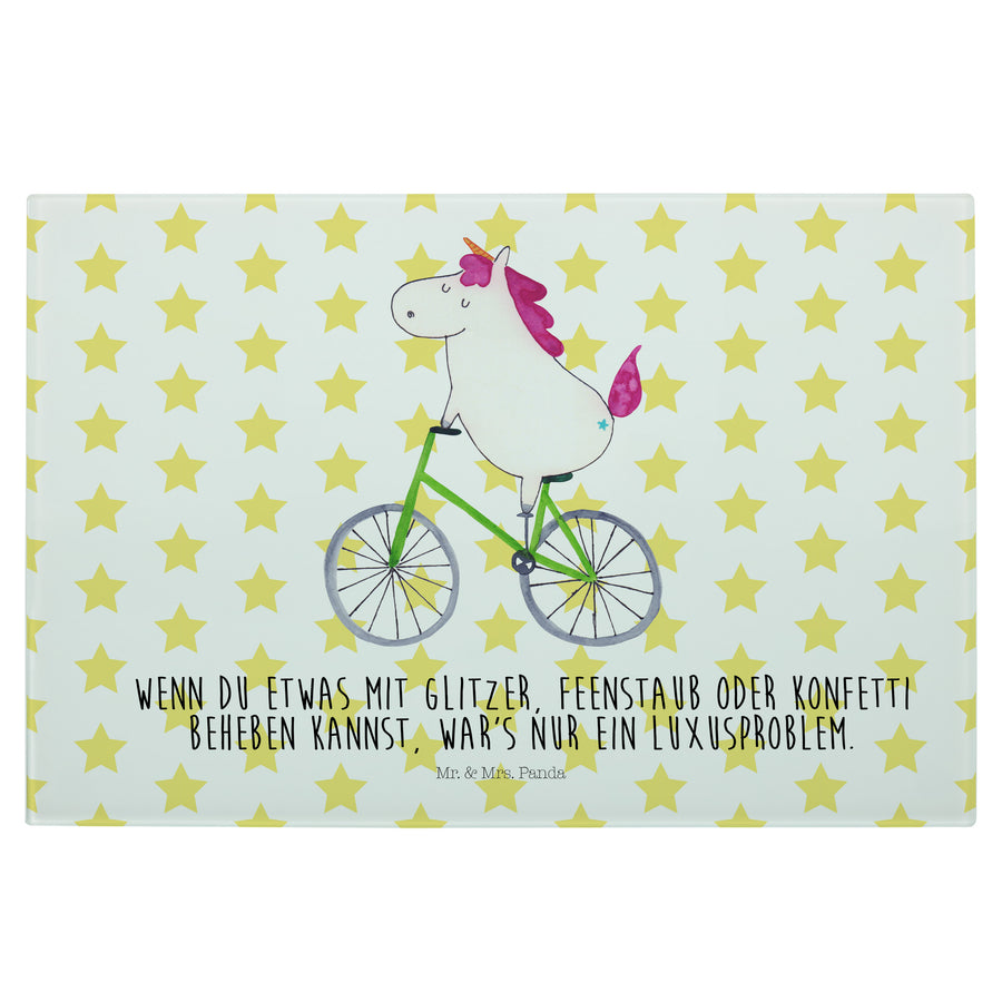 Medium Glas Schneidbrett Einhorn Radfahrer - mit Spruch - Weiß