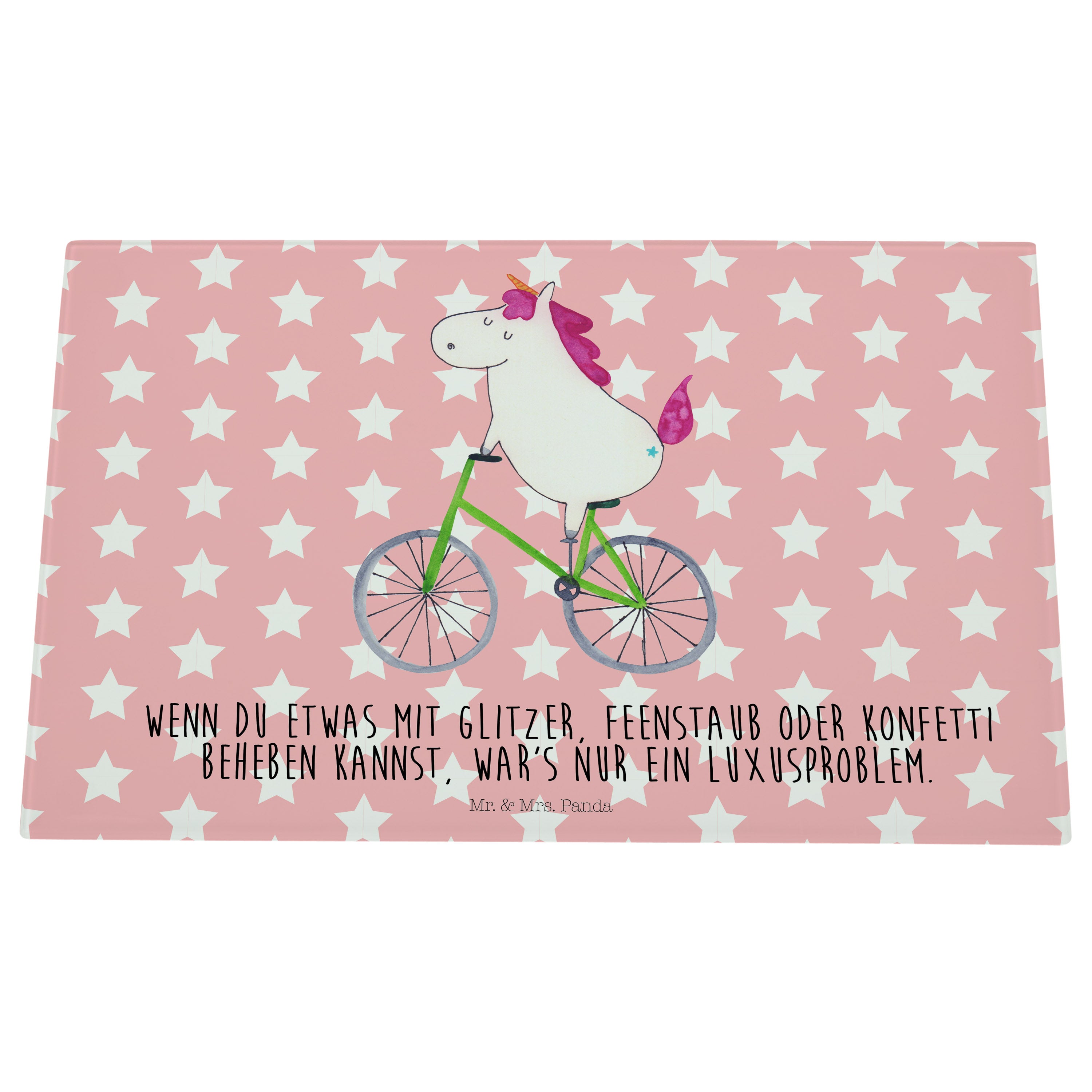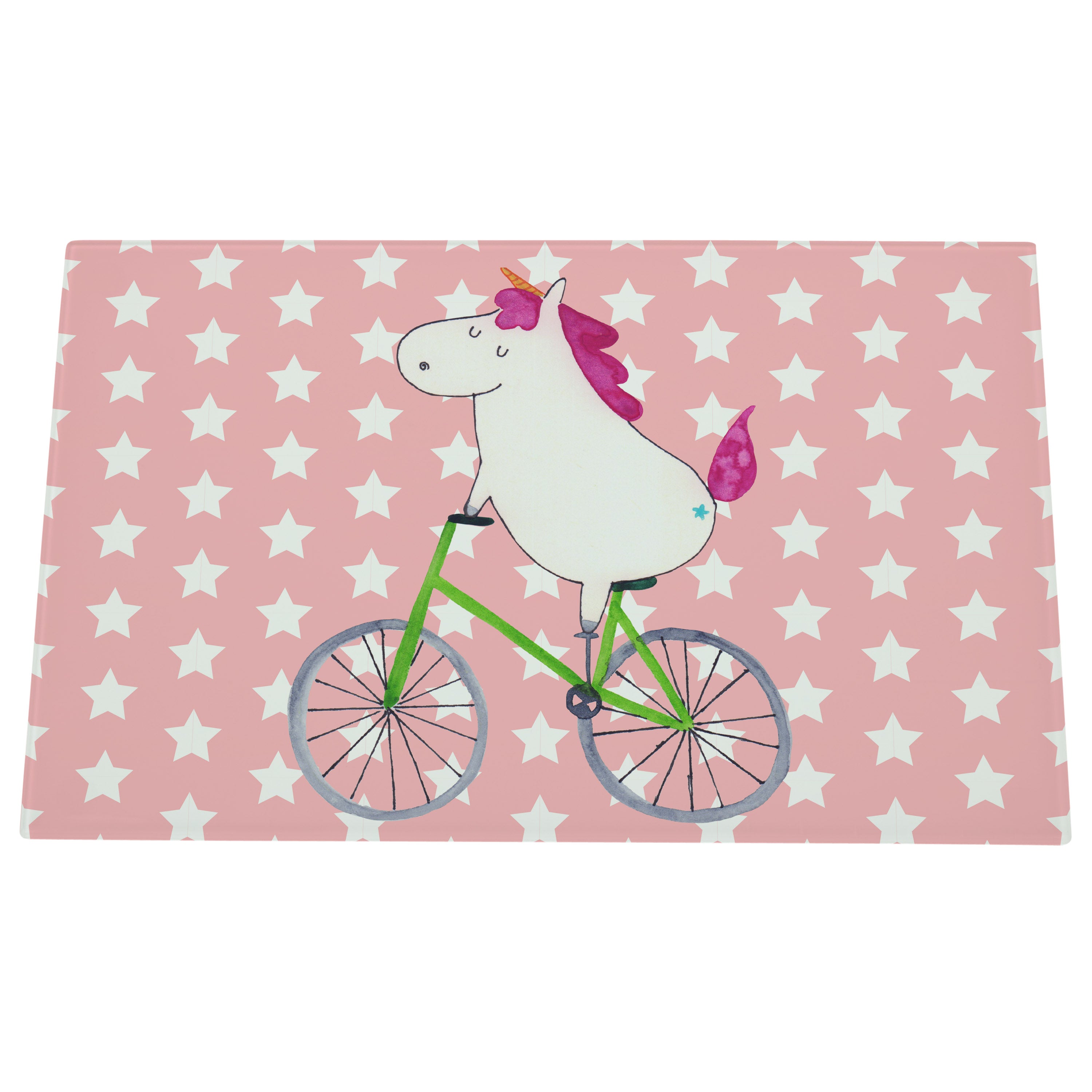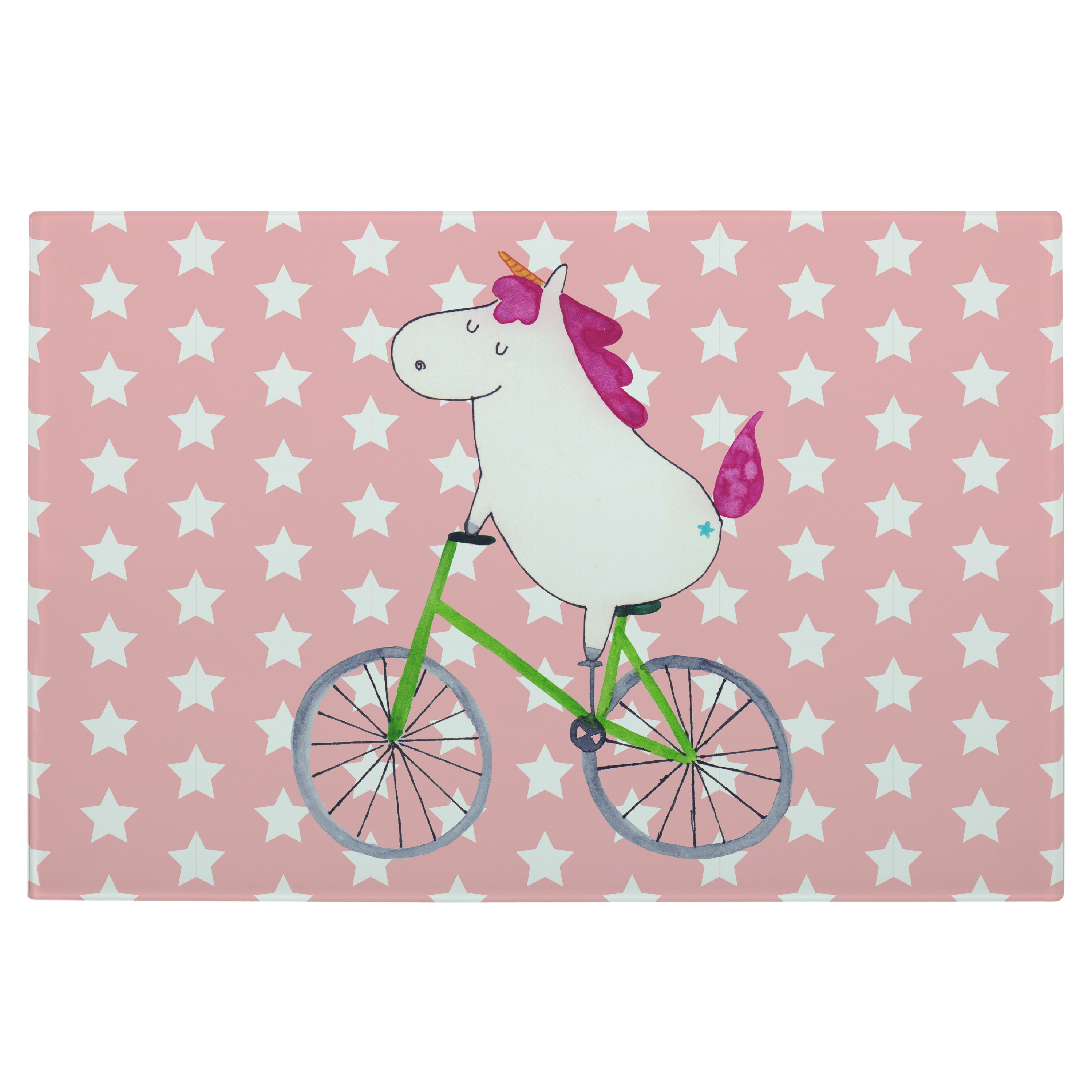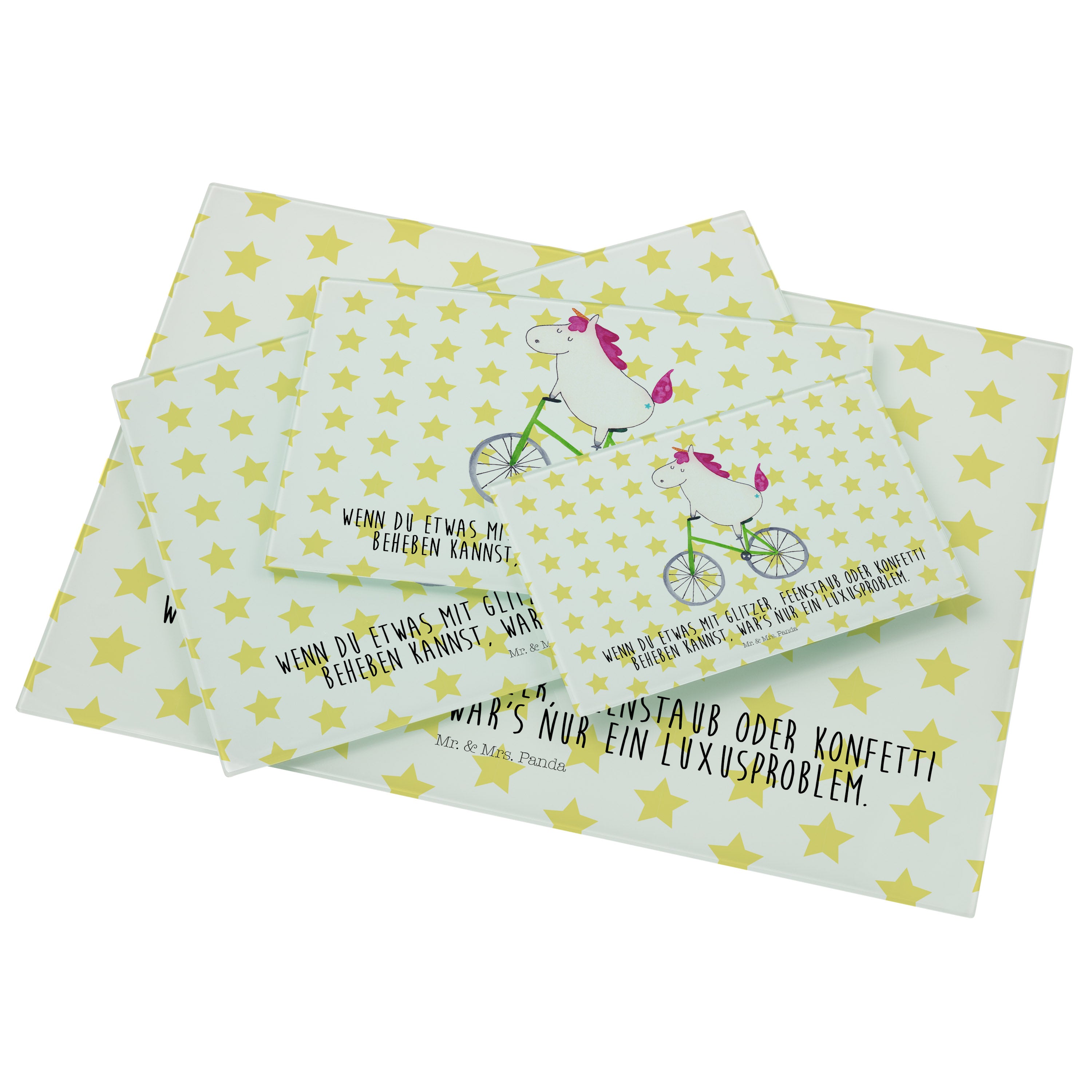 Medium Glas Schneidbrett Einhorn Radfahrer - mit Spruch - Weiß