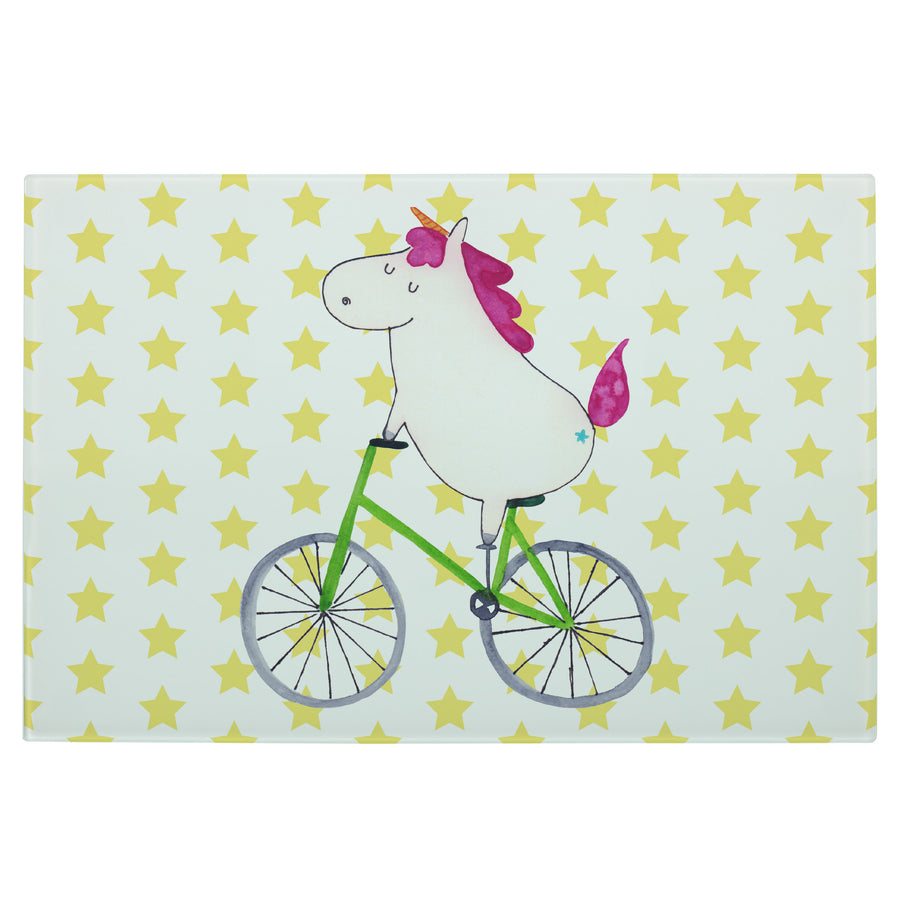 Medium Glas Schneidbrett Einhorn Radfahrer - ohne Spruch - Weiß