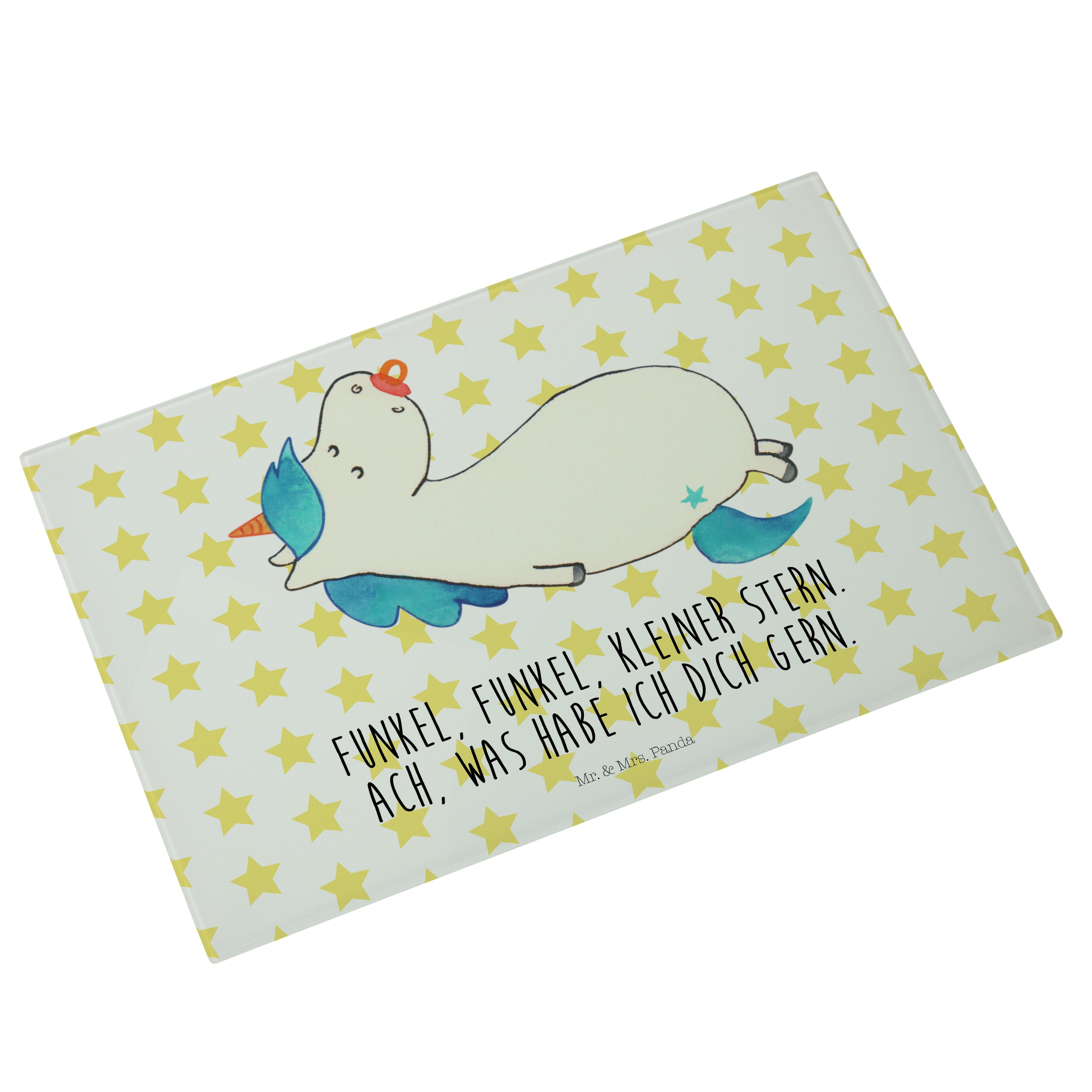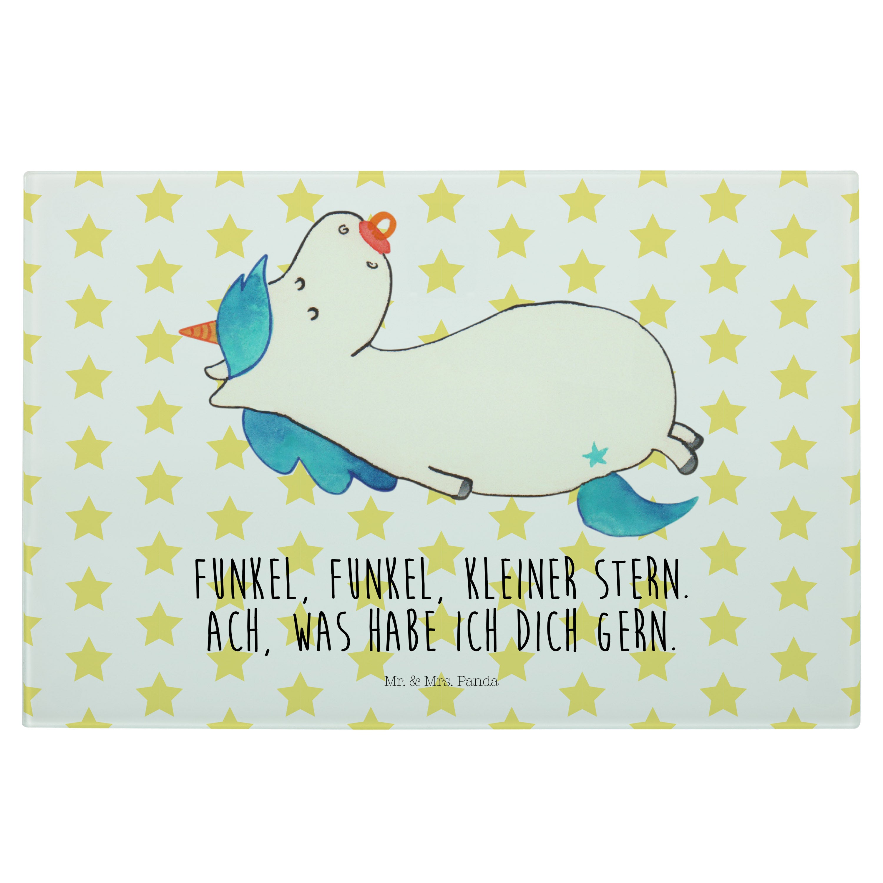 Medium Glas Schneidbrett Einhorn Schnullie - mit Spruch - Weiß