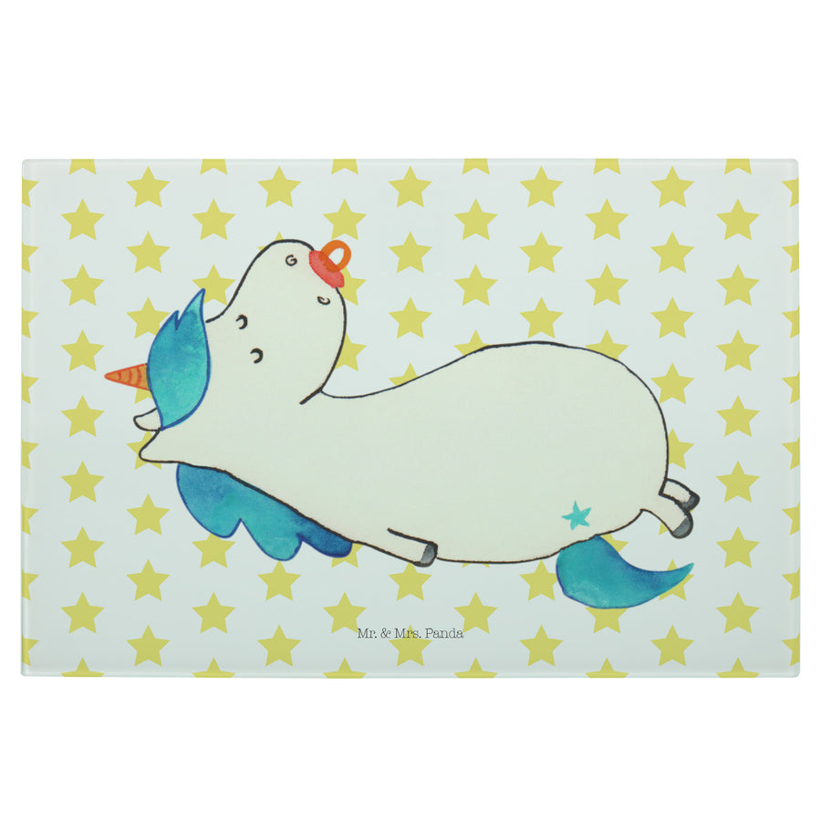 Medium Glas Schneidbrett Einhorn Schnullie - ohne Spruch - Weiß