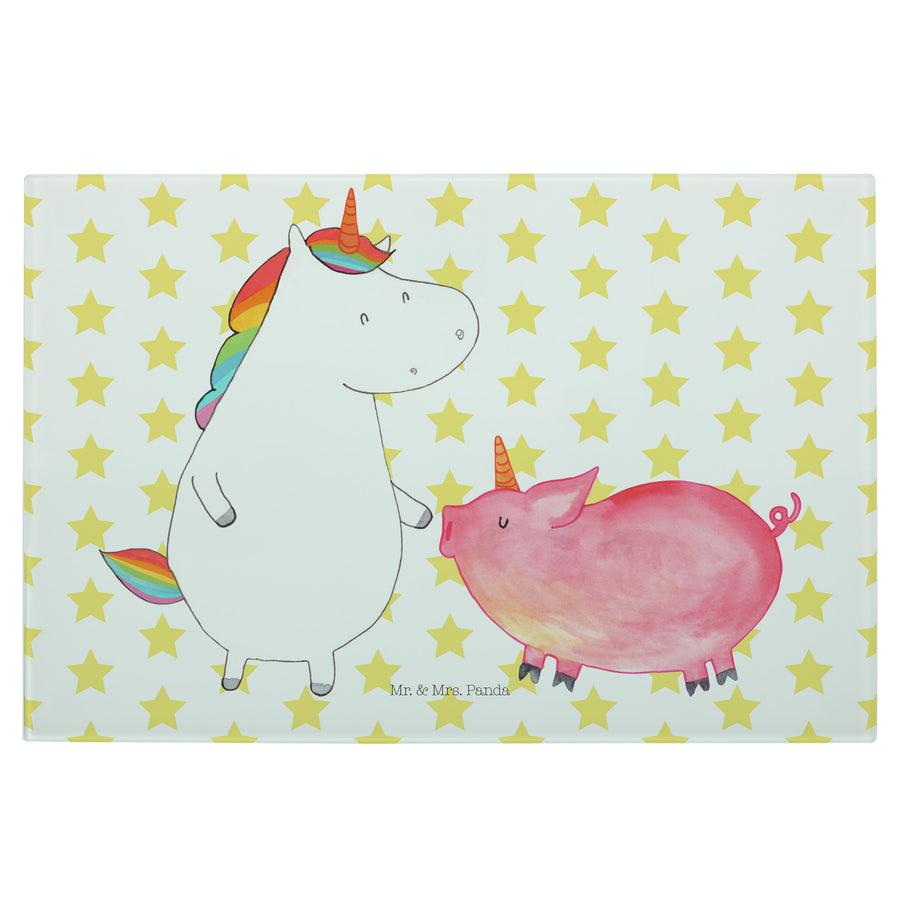 Medium Glas Schneidbrett Einhorn + Schweinhorn - ohne Spruch - Weiß