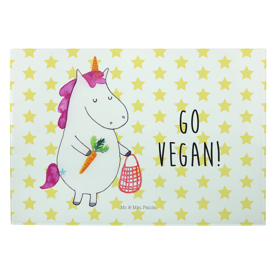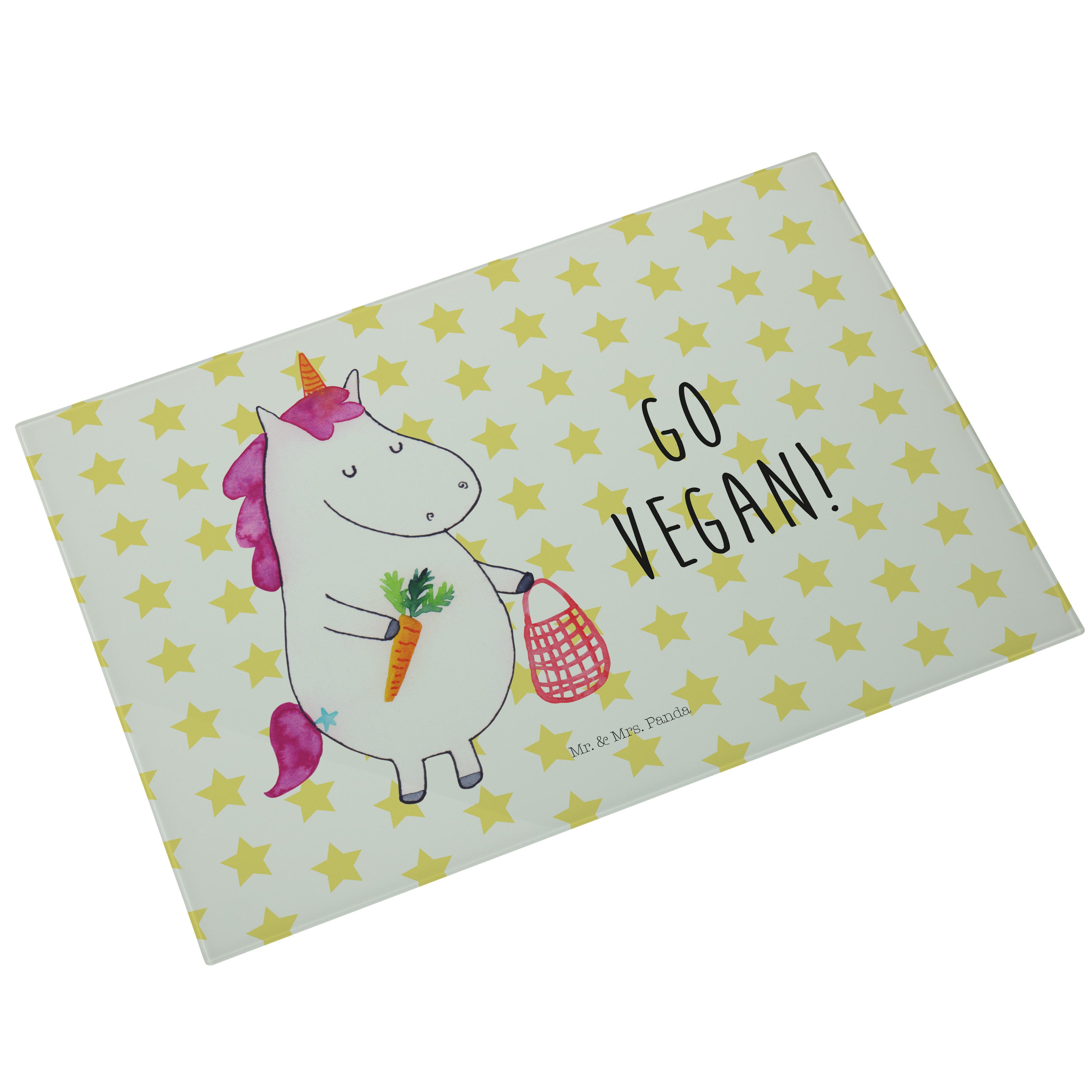 XL Glas Schneidbrett Einhorn Vegan - mit Spruch - Weiß