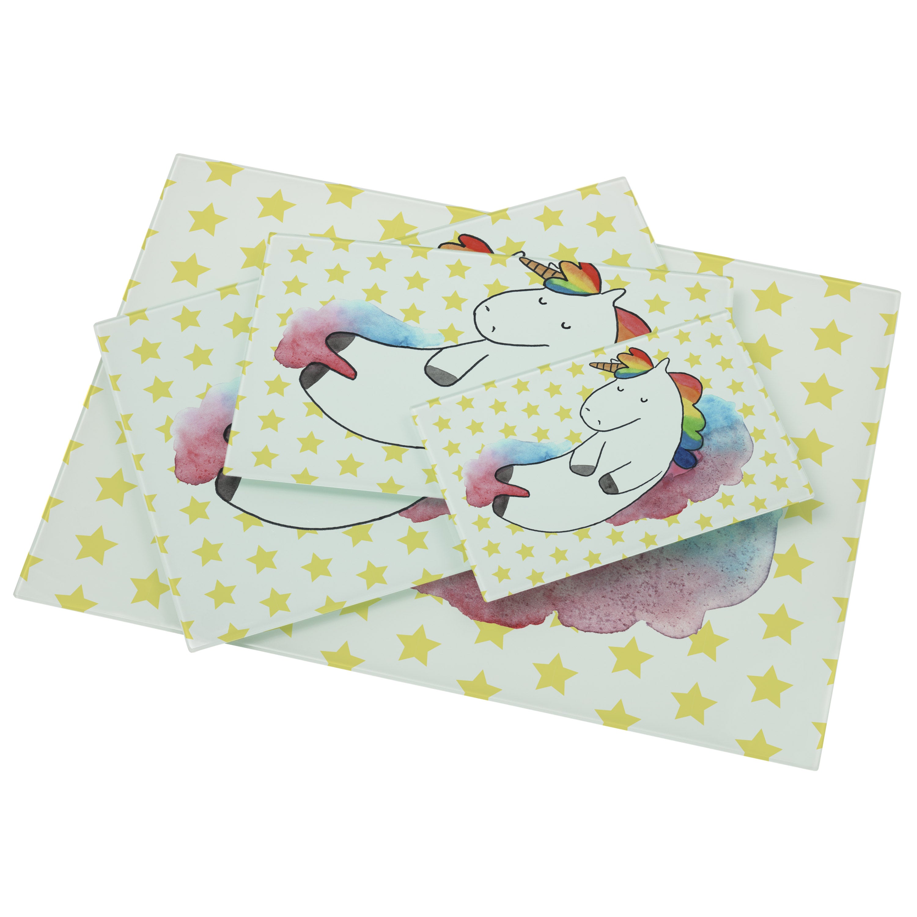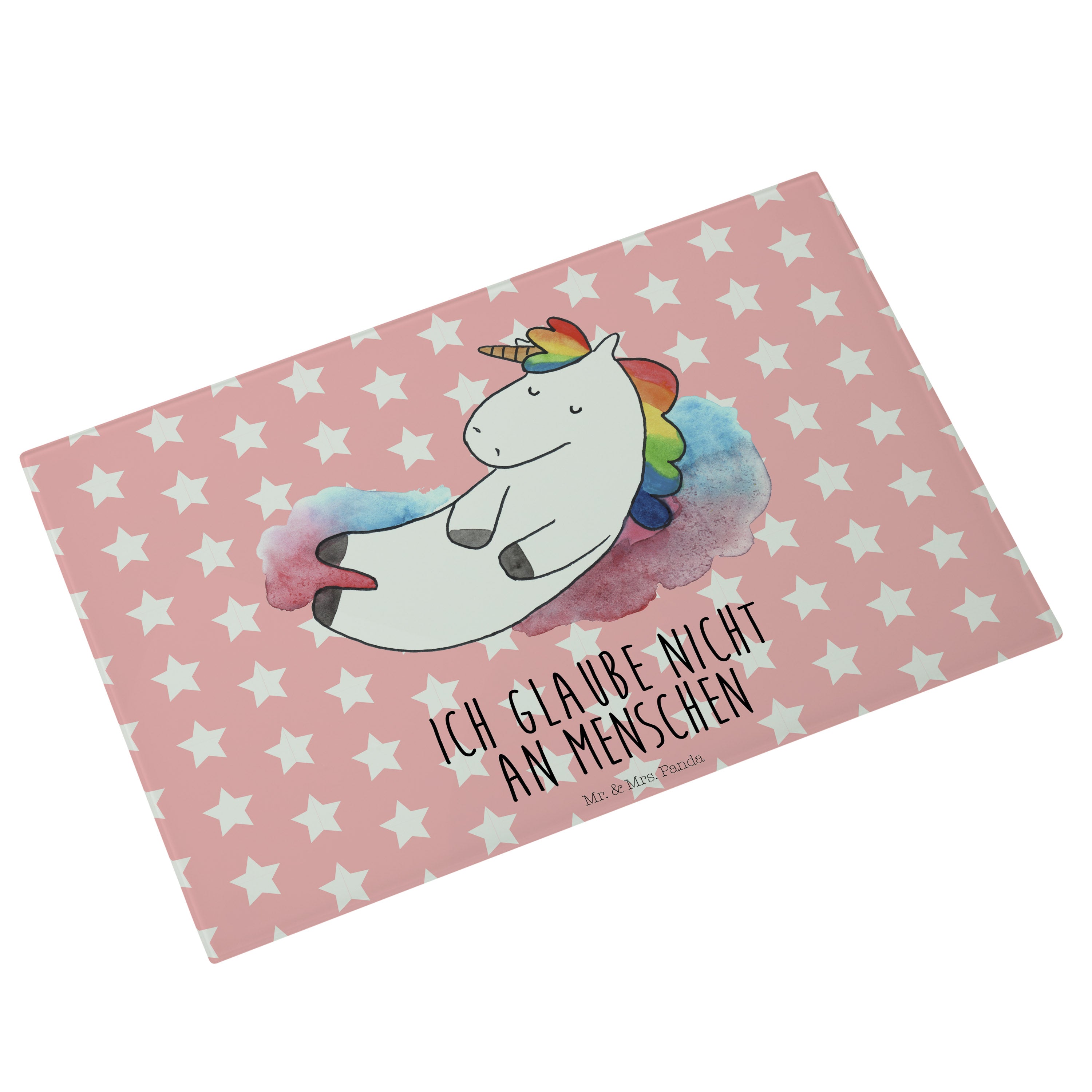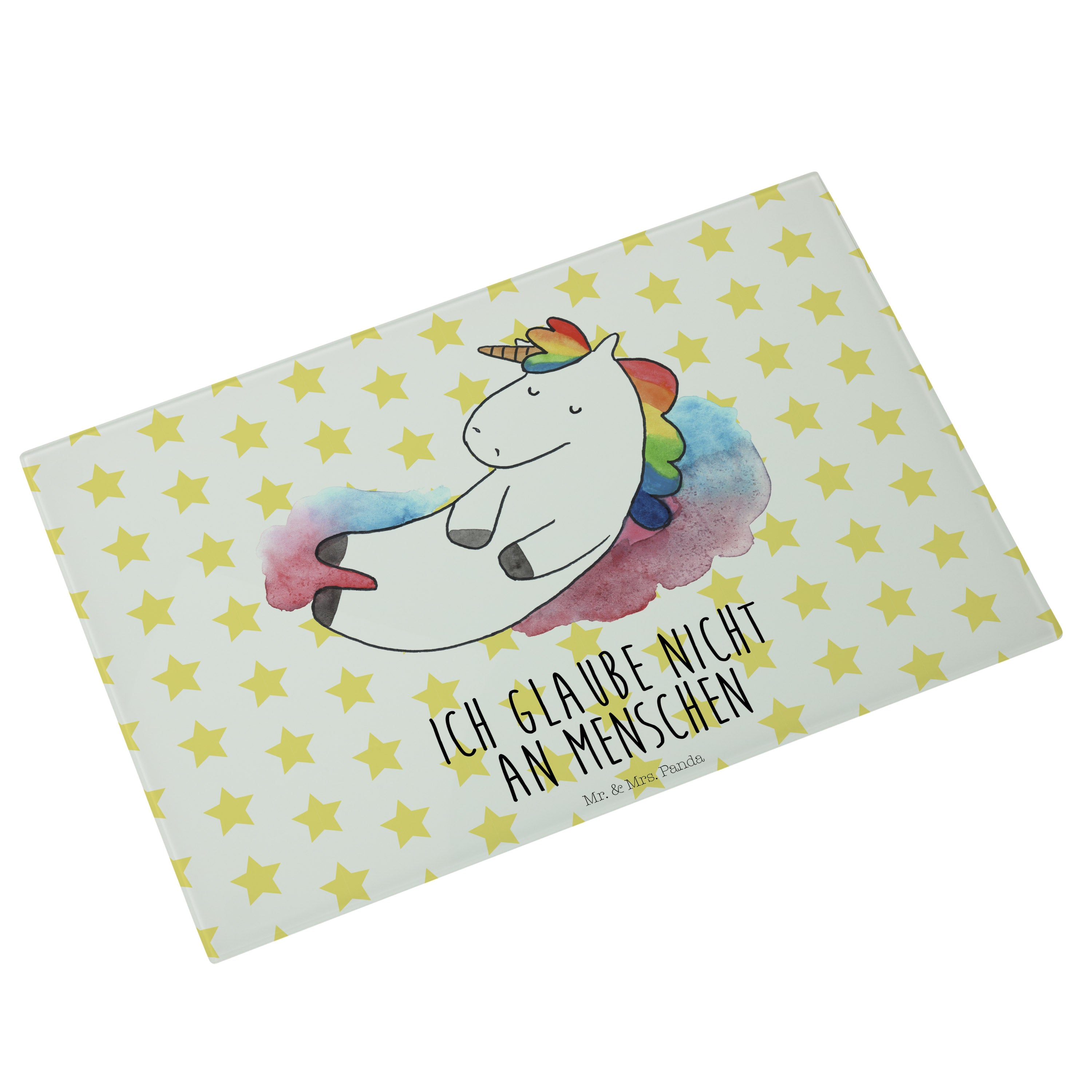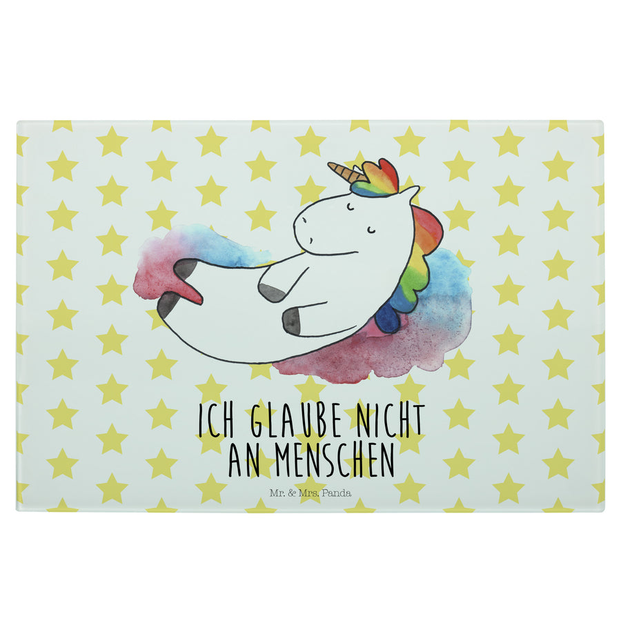 Medium Glas Schneidbrett Einhorn Wolke 7 - mit Spruch - Weiß