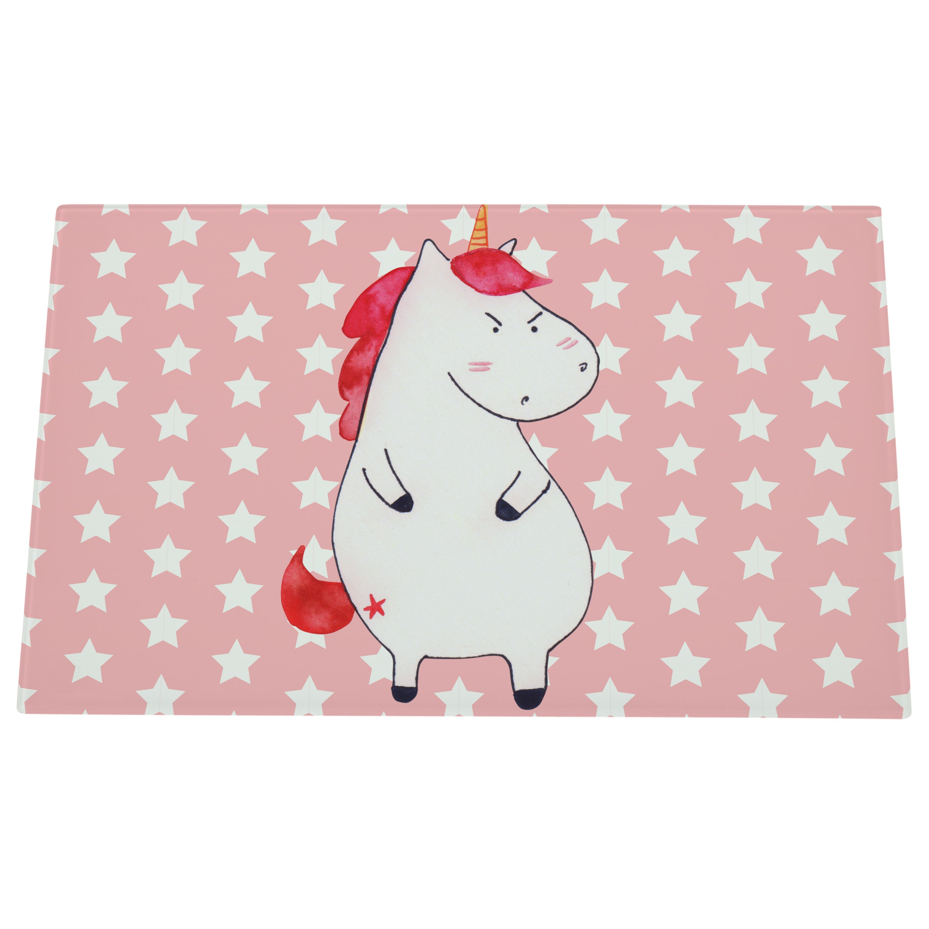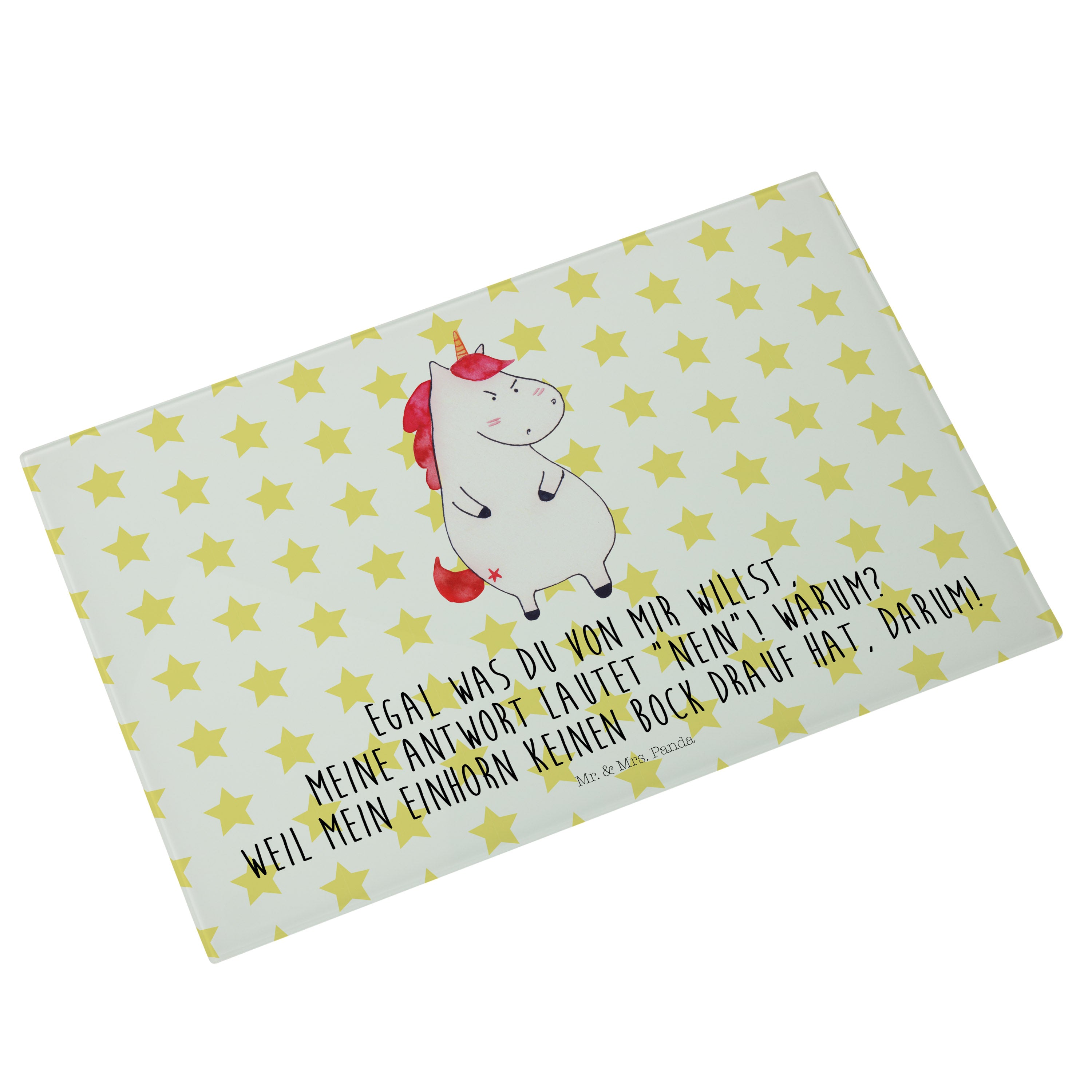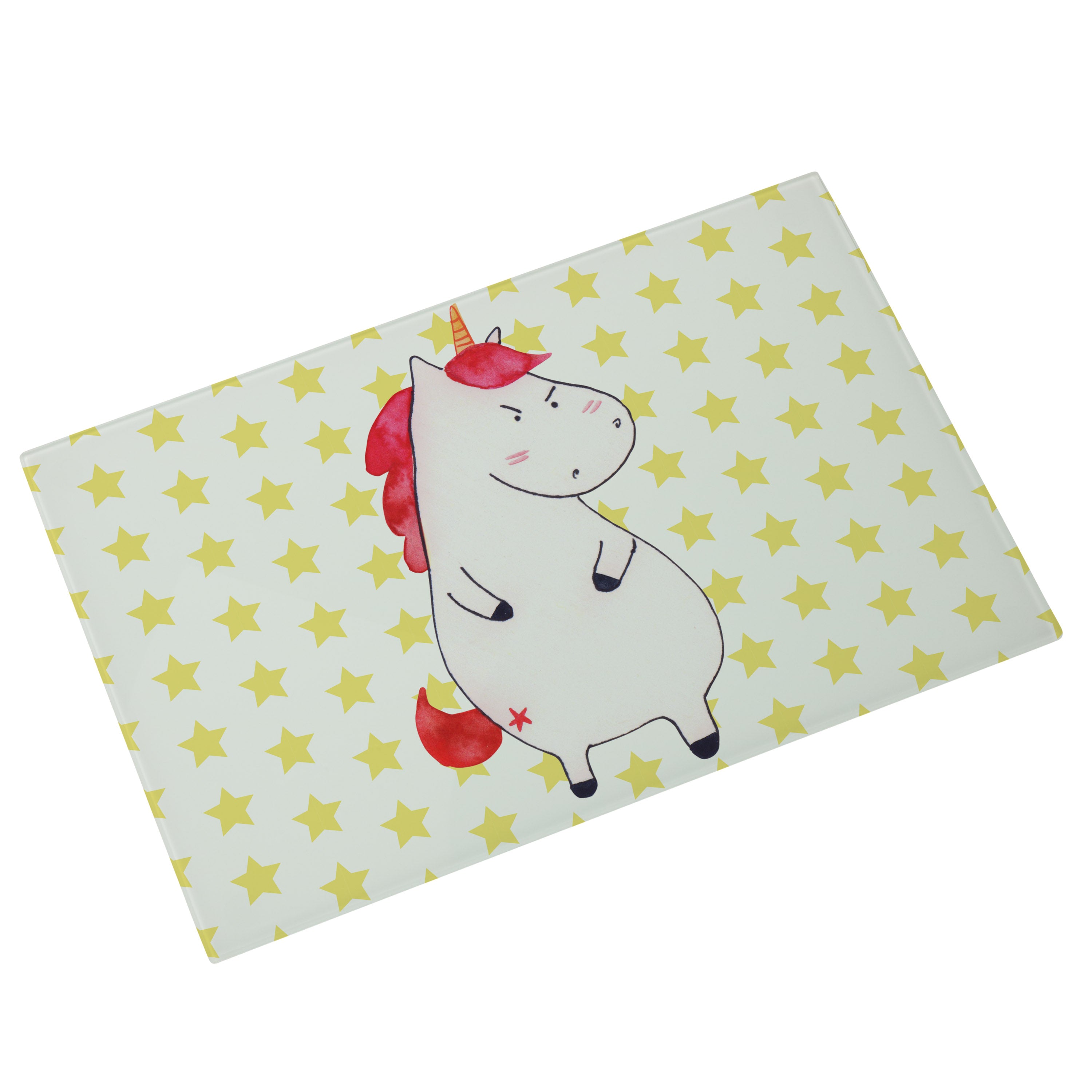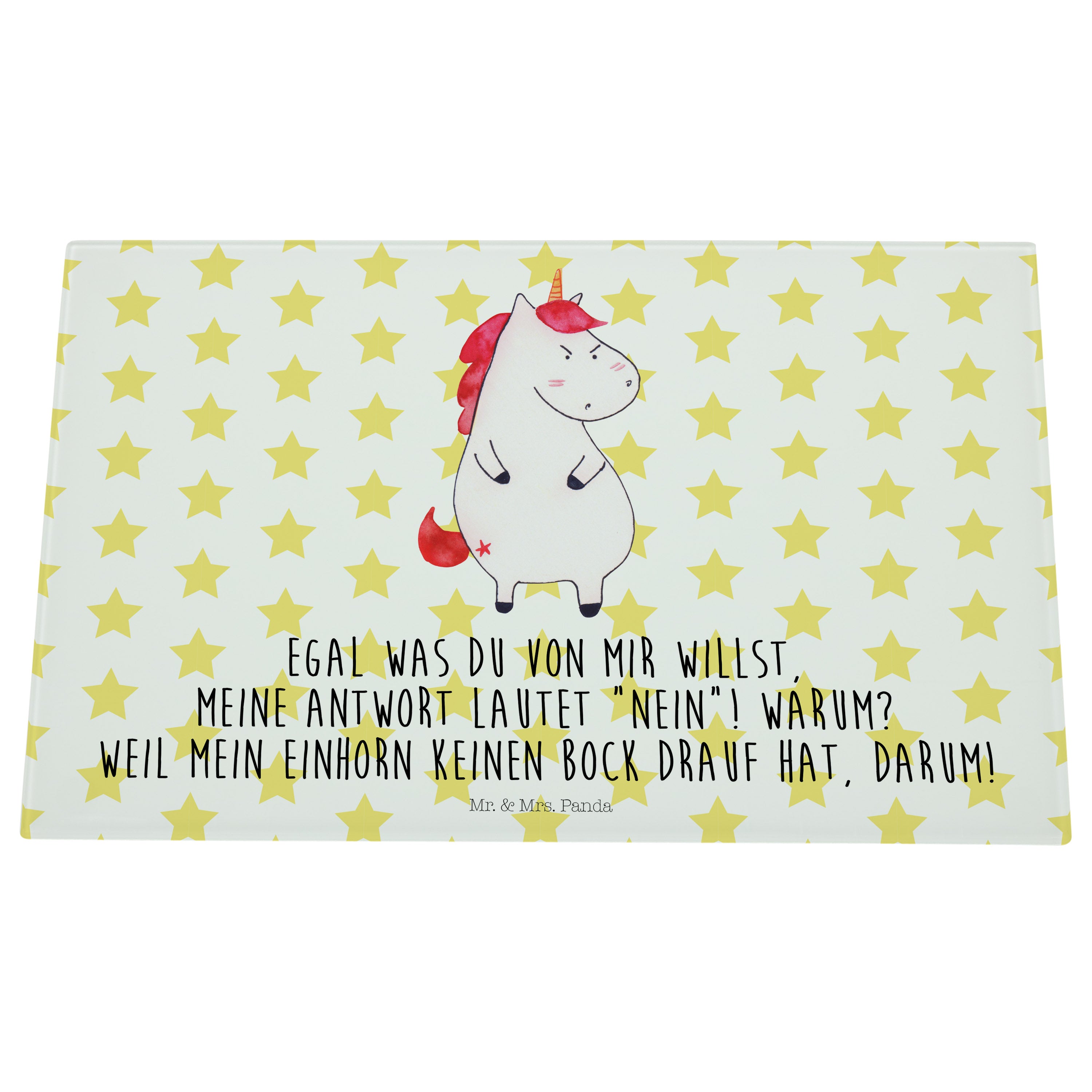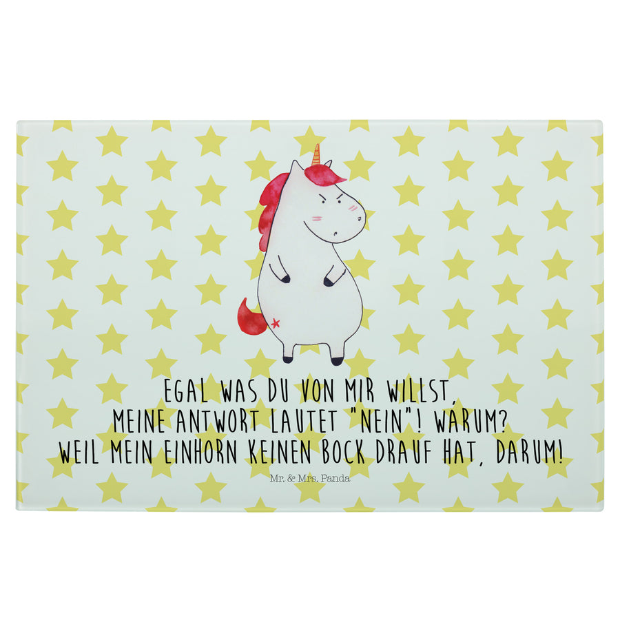 Medium Glas Schneidbrett Einhorn wütend - mit Spruch - Weiß
