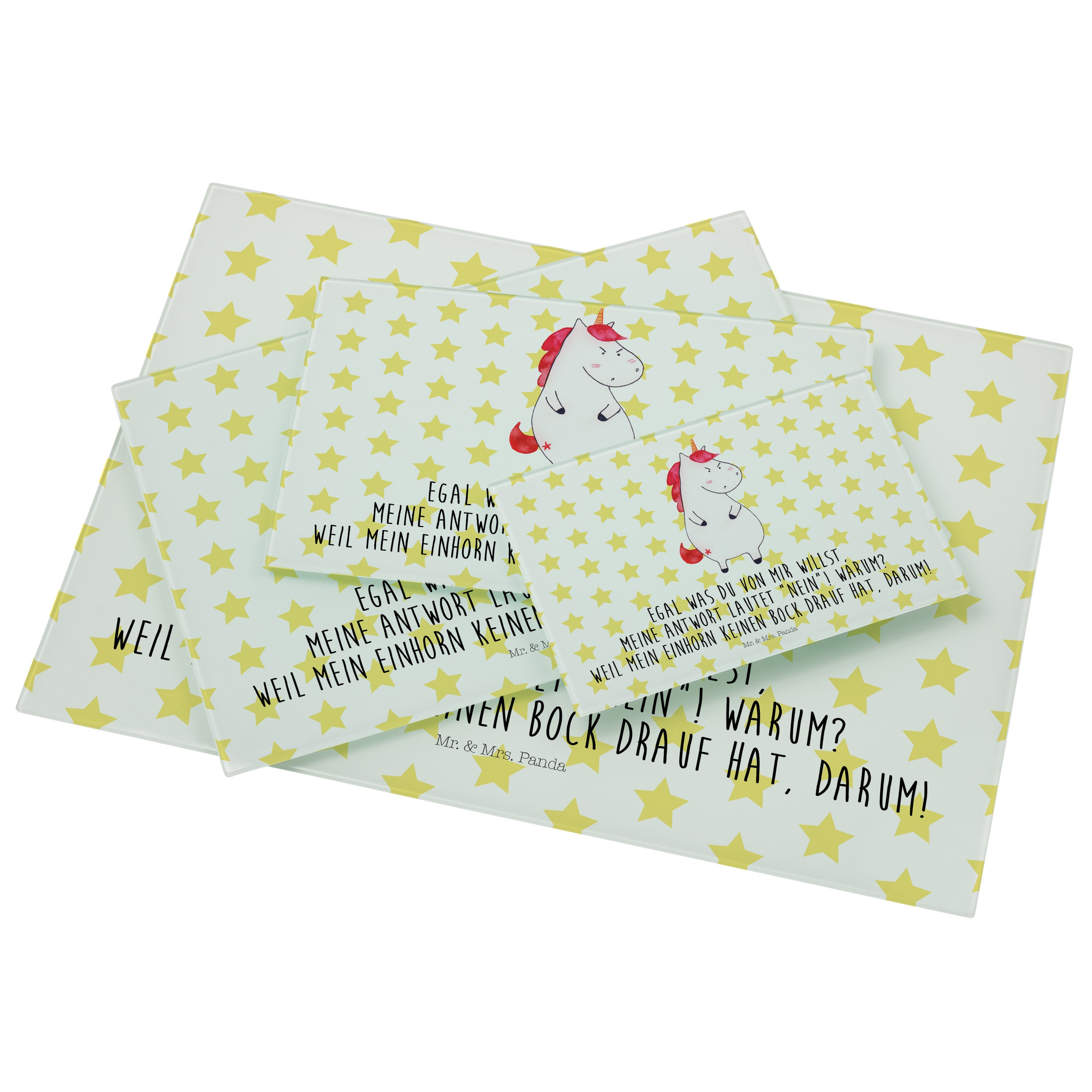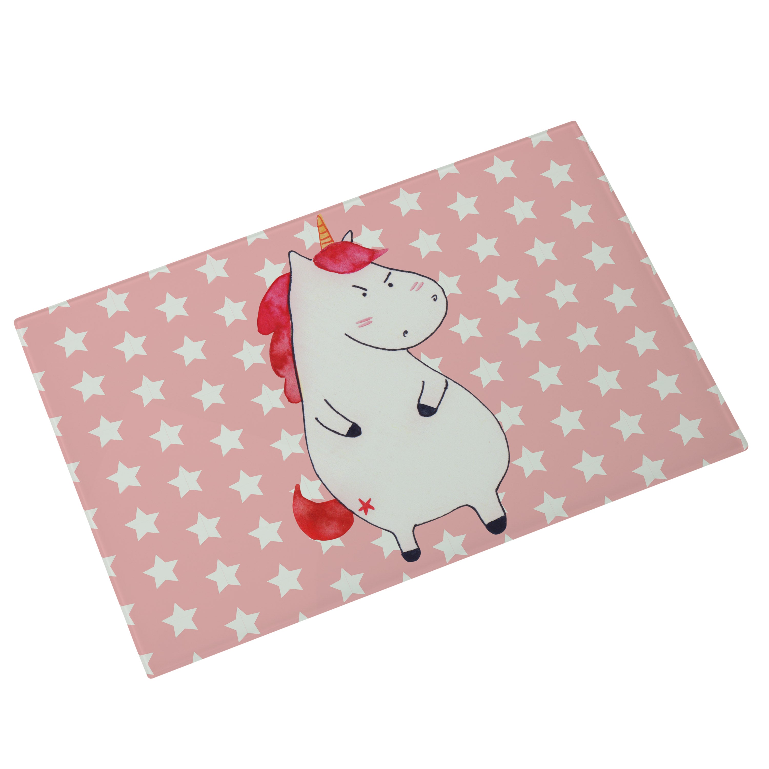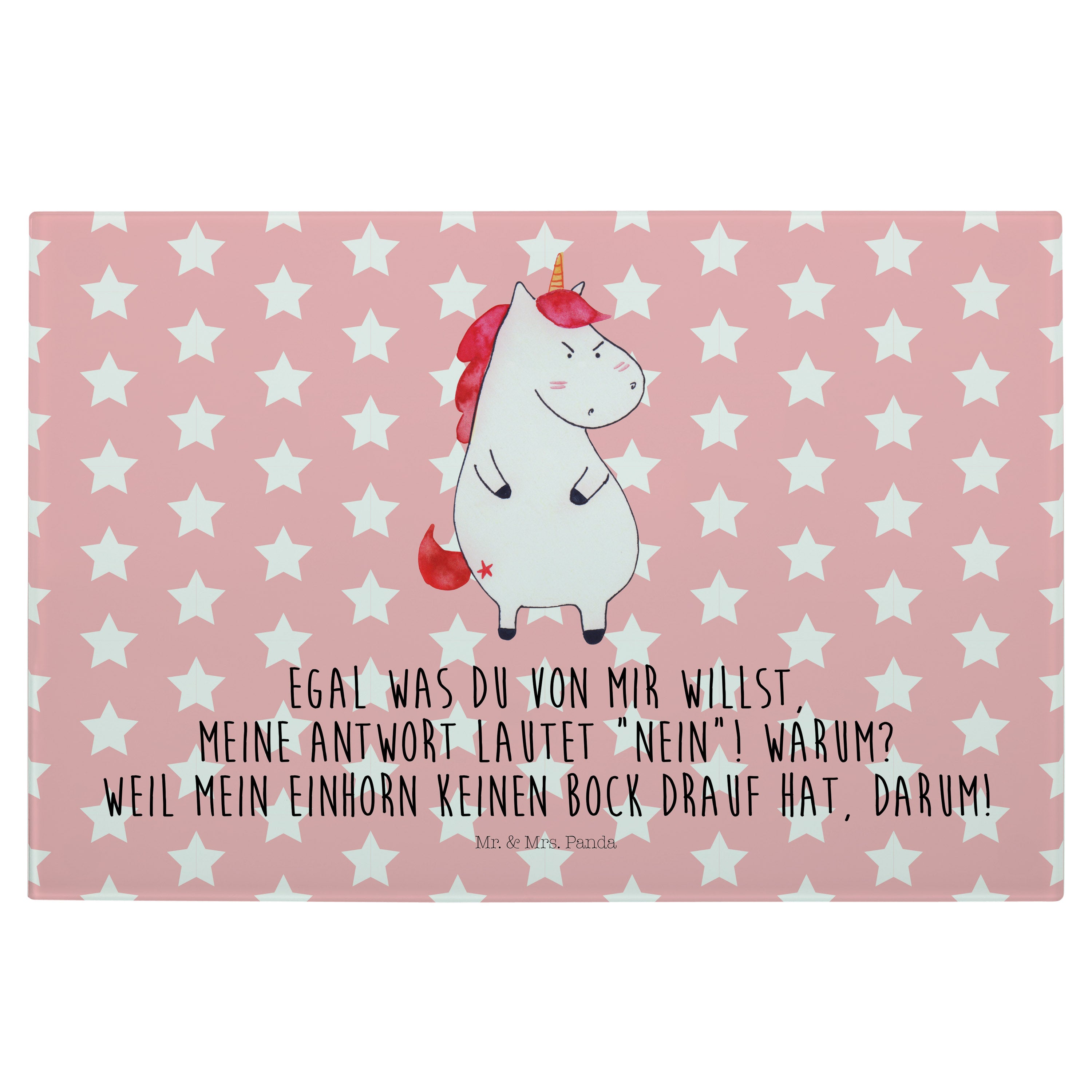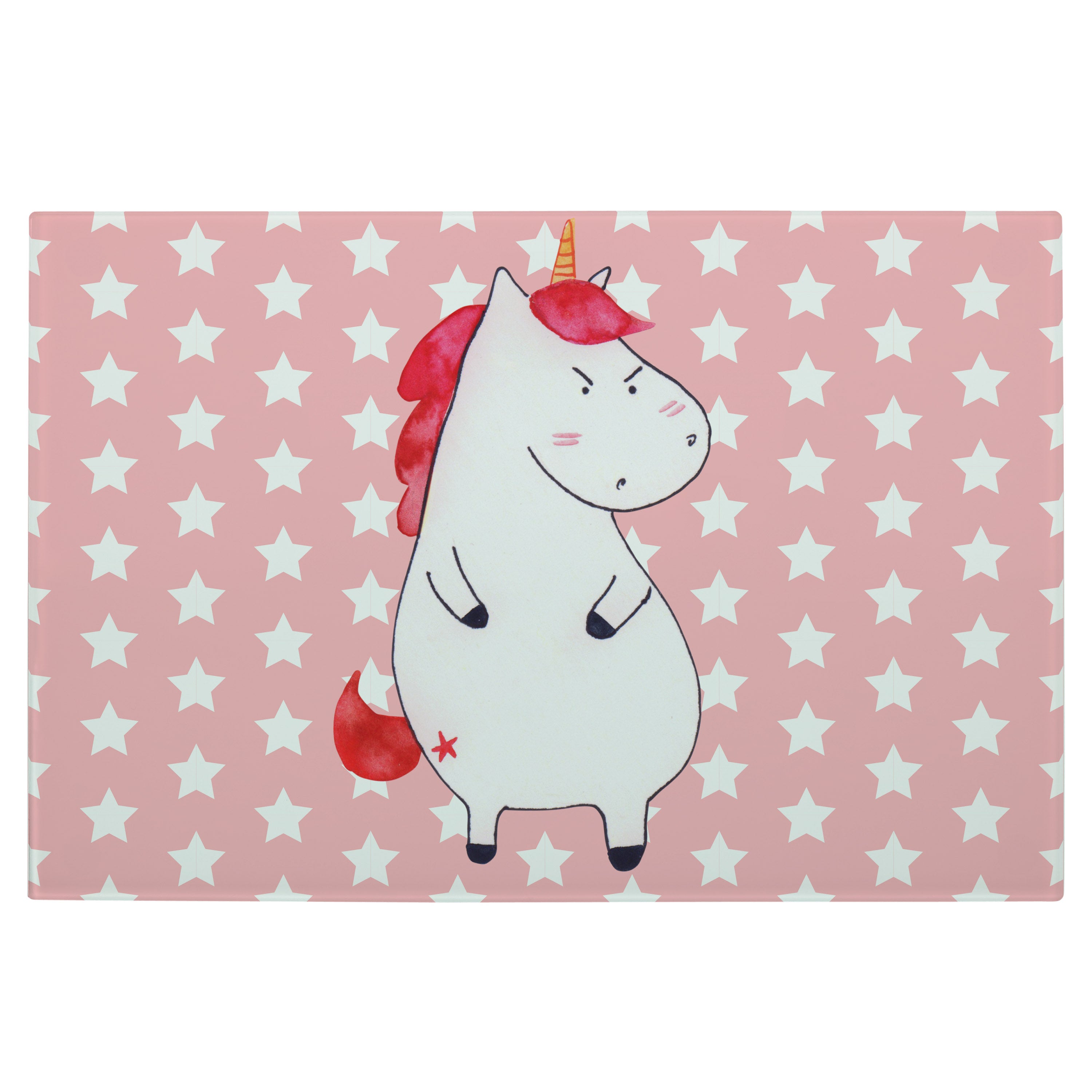 Medium Glas Schneidbrett Einhorn wütend - mit Spruch - Weiß