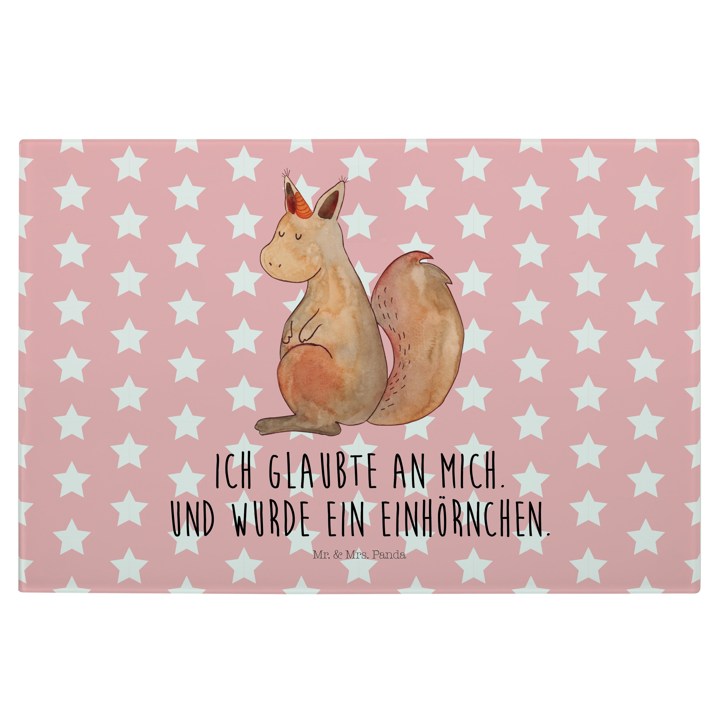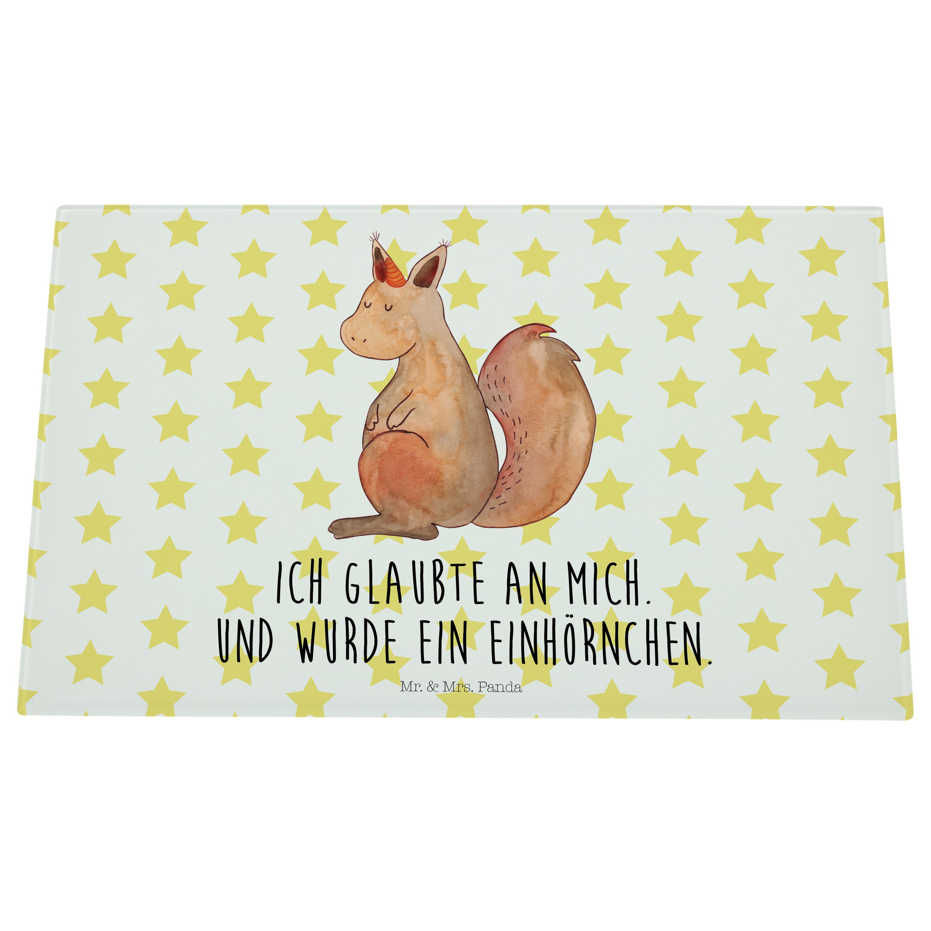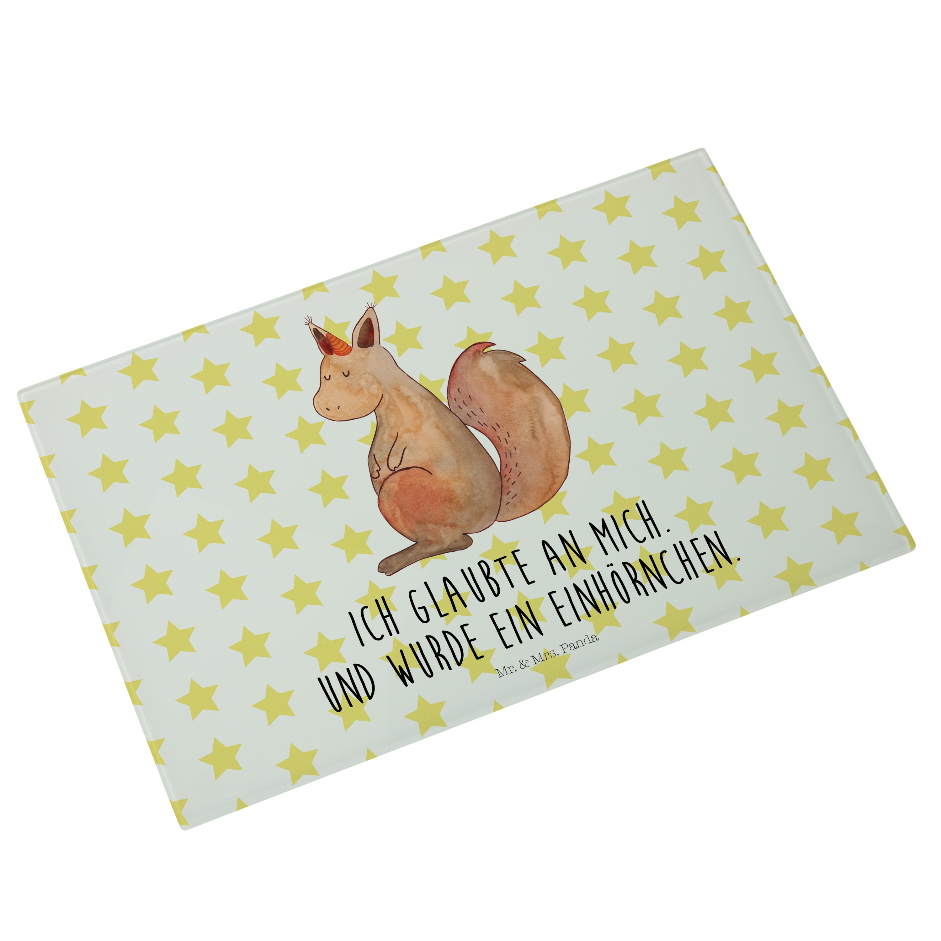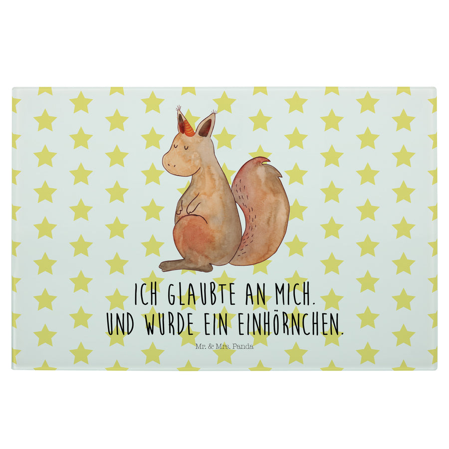 Medium Glas Schneidbrett Einhörnchen Glaube - mit Spruch - Weiß
