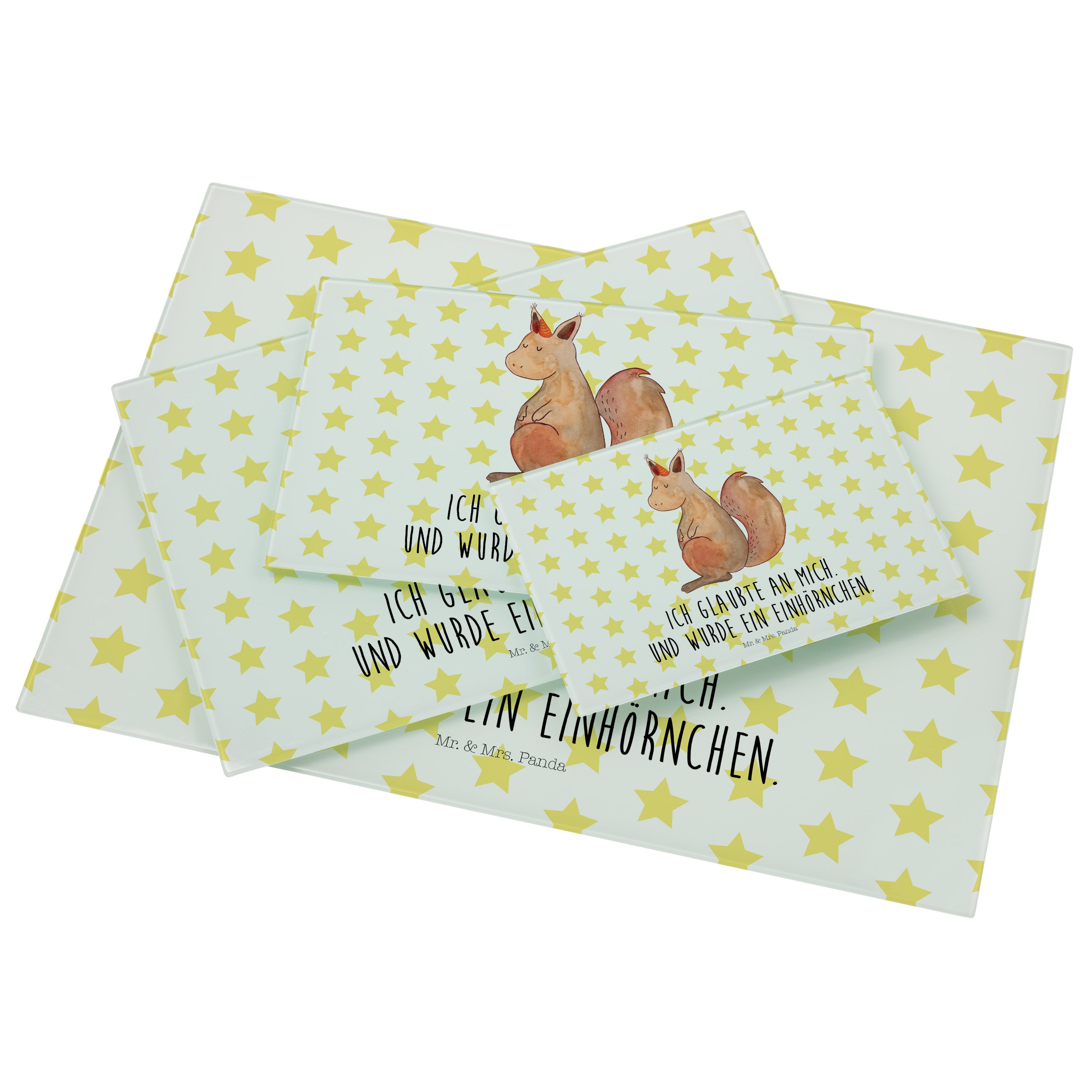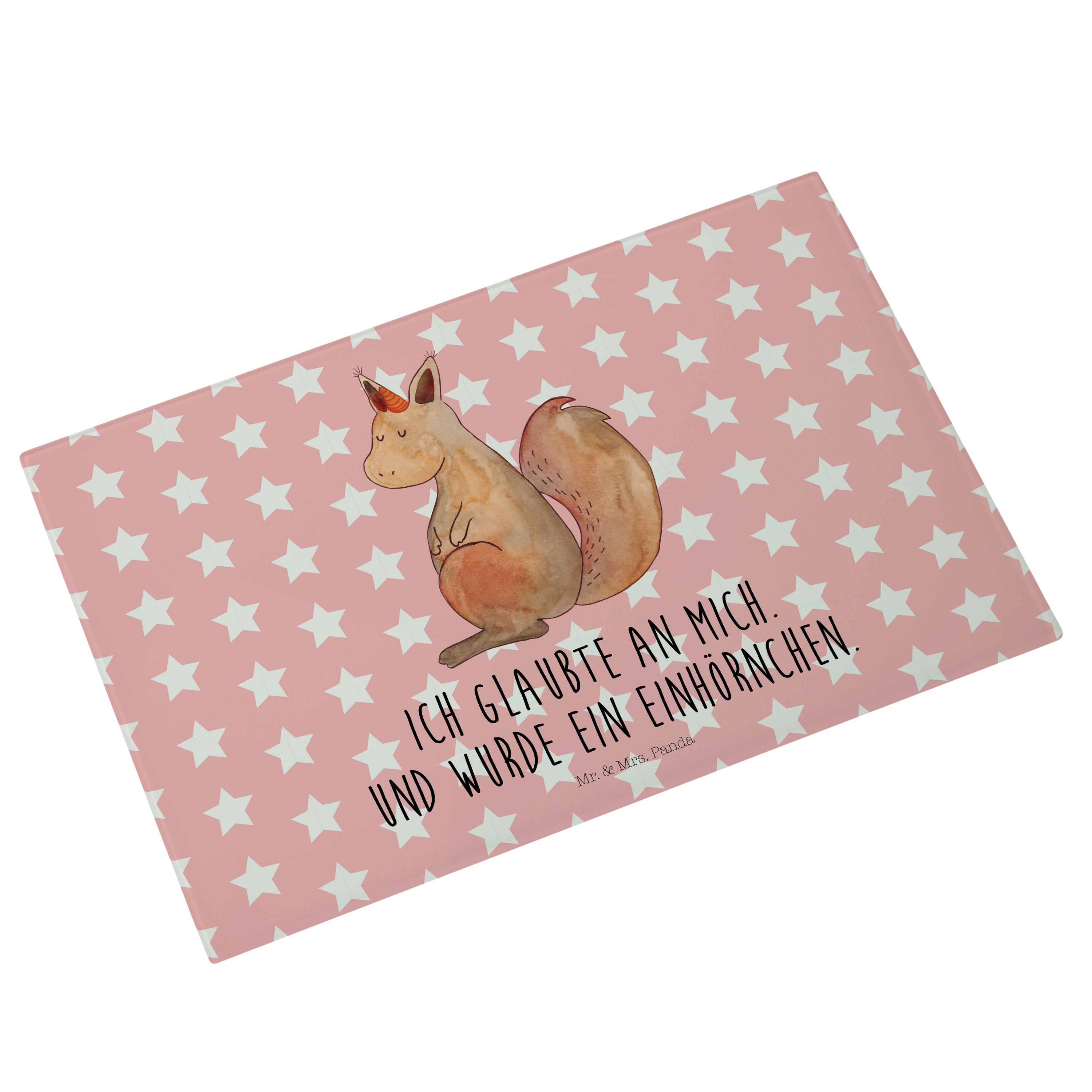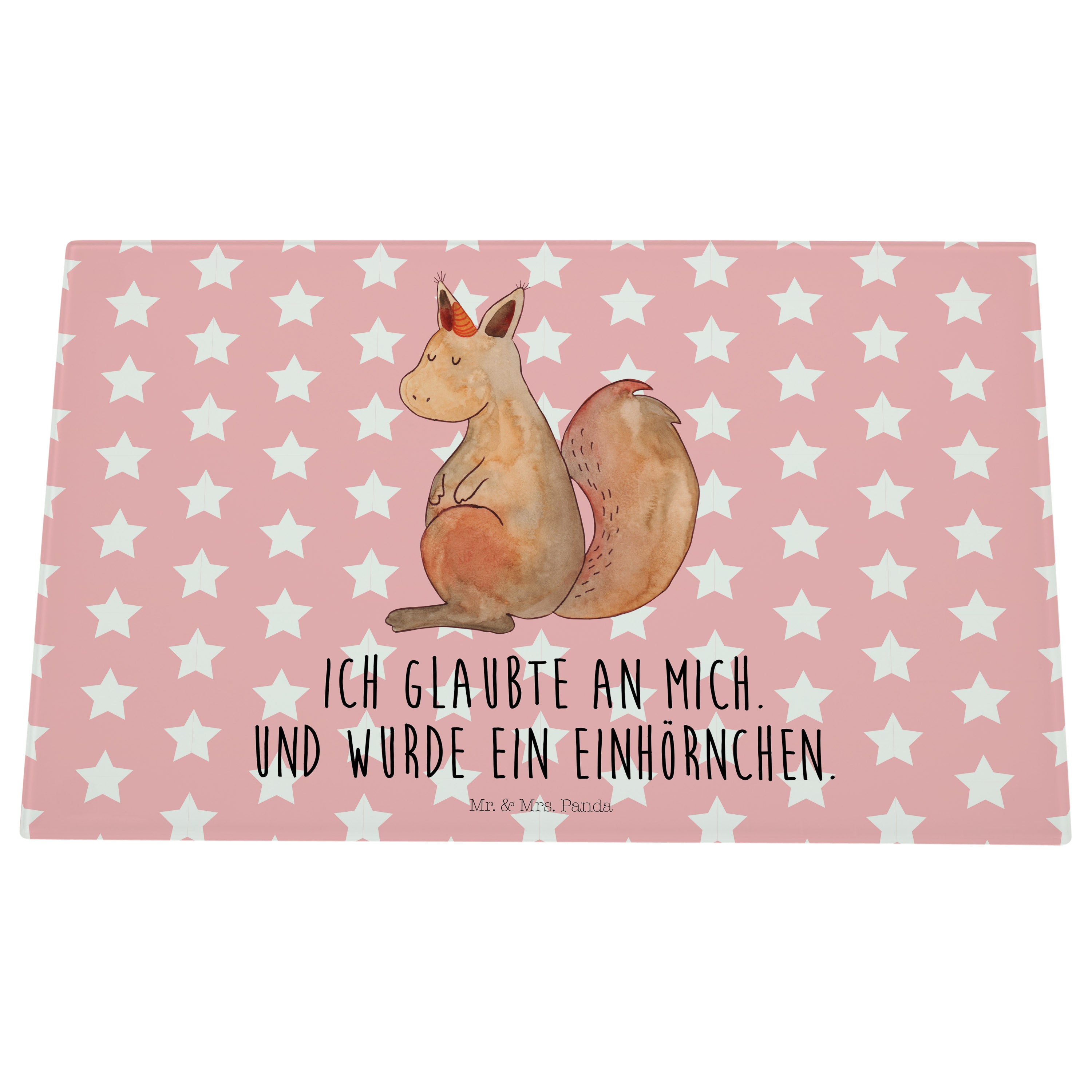 Medium Glas Schneidbrett Einhörnchen Glaube - mit Spruch - Weiß