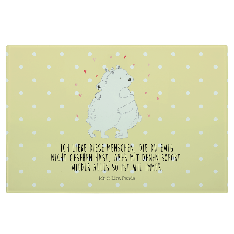 Medium Glas Schneidbrett Eisbär Umarmen - mit Spruch - Gelb Pastell
