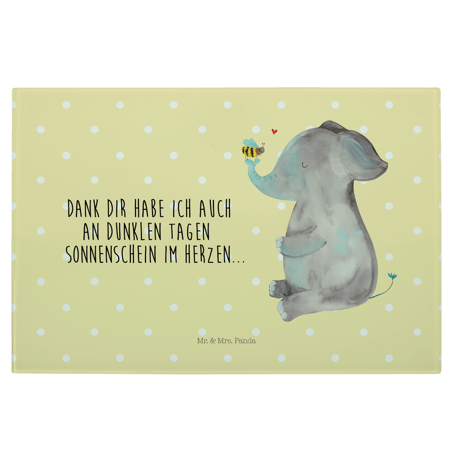 XL Glas Schneidbrett Elefant & Biene - mit Spruch - Gelb Pastell