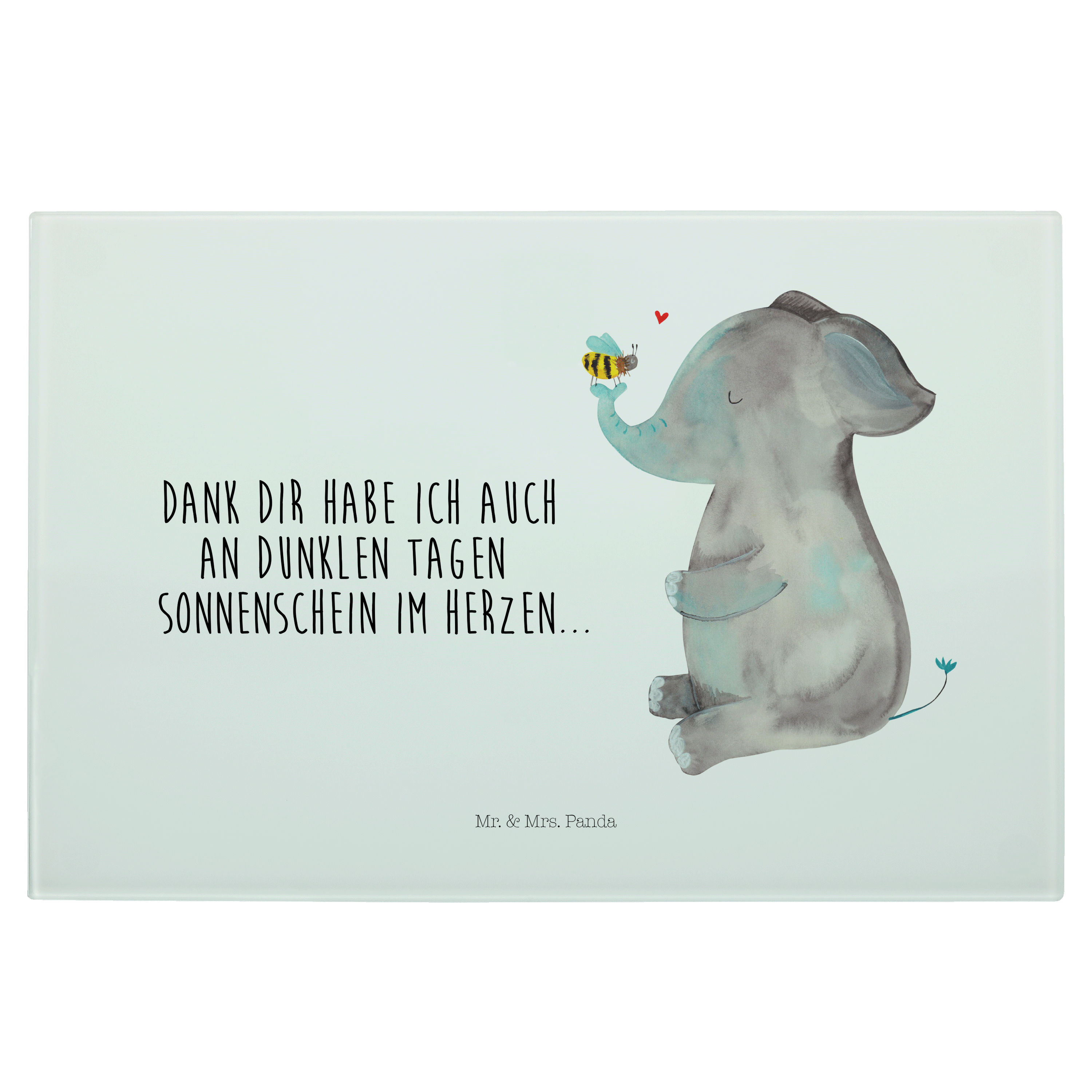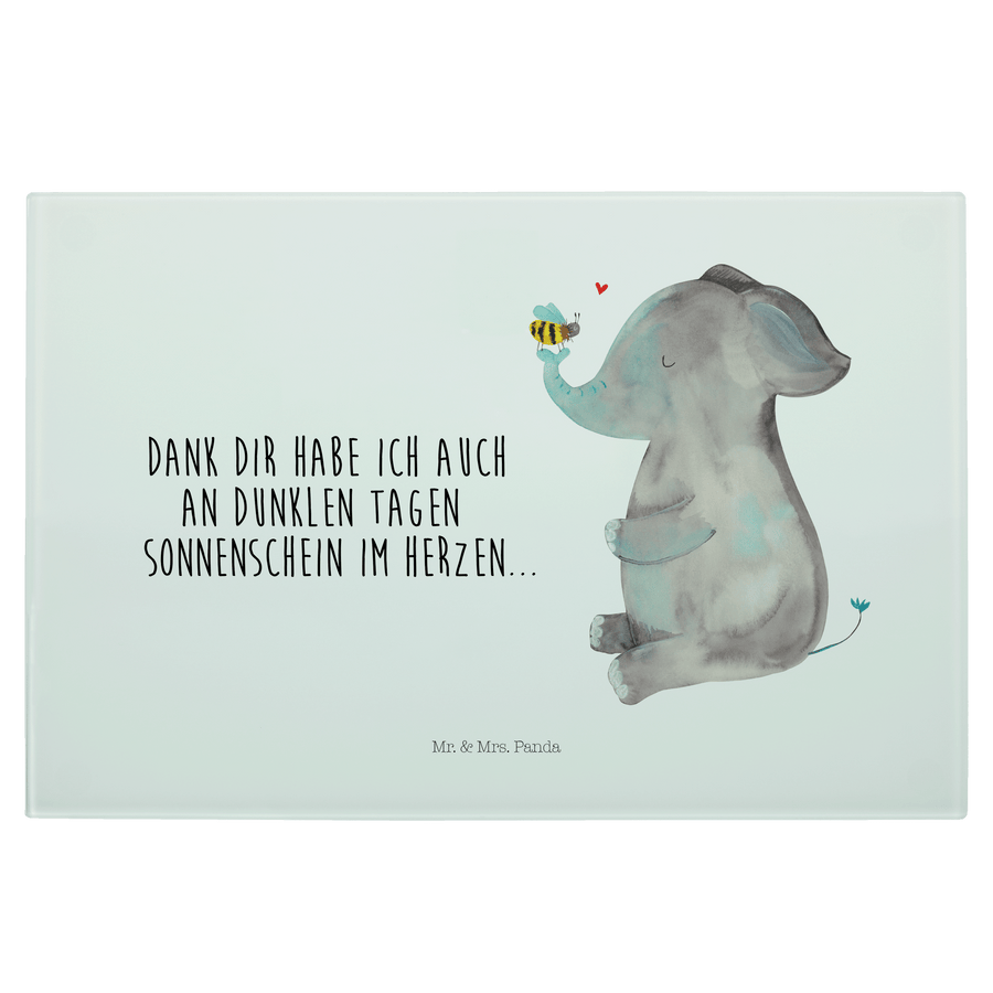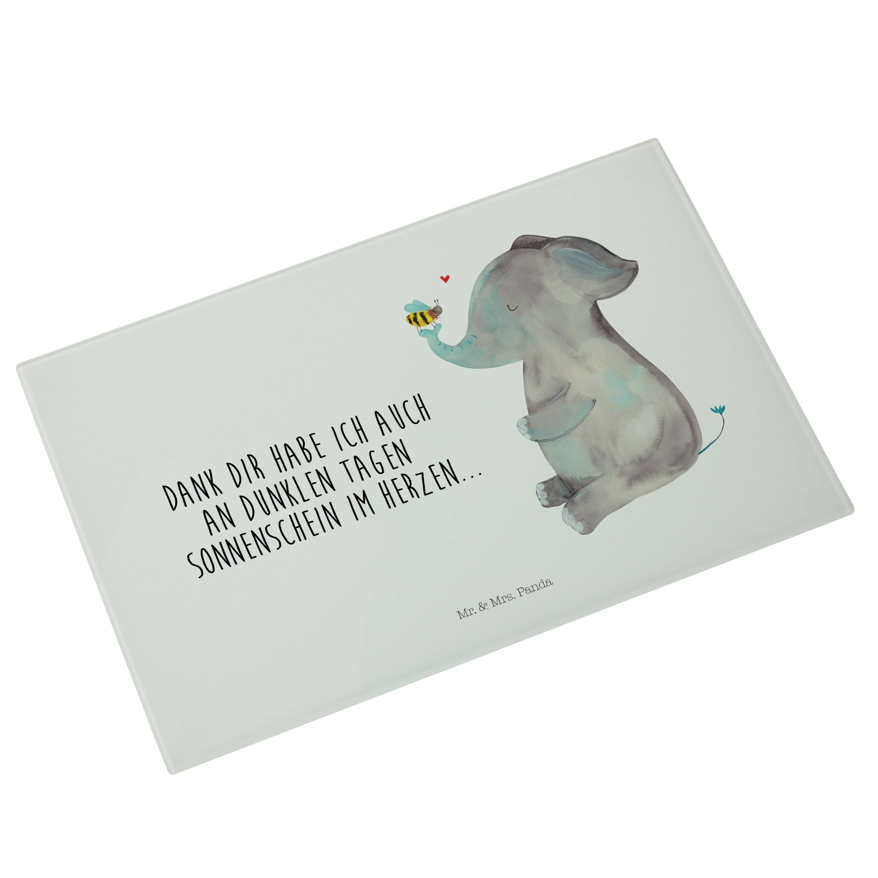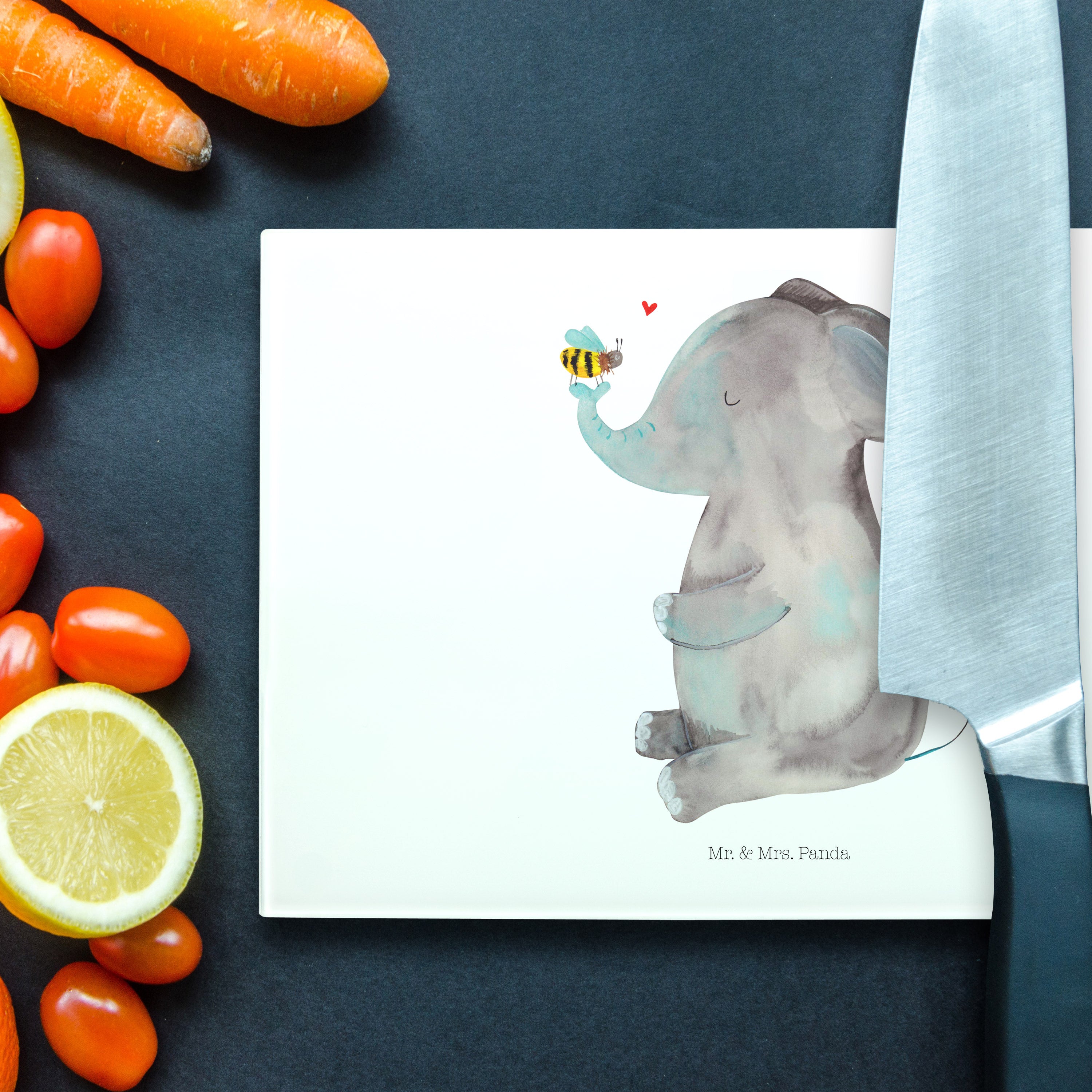 XL Glas Schneidbrett Elefant & Biene - mit Spruch - Weiß