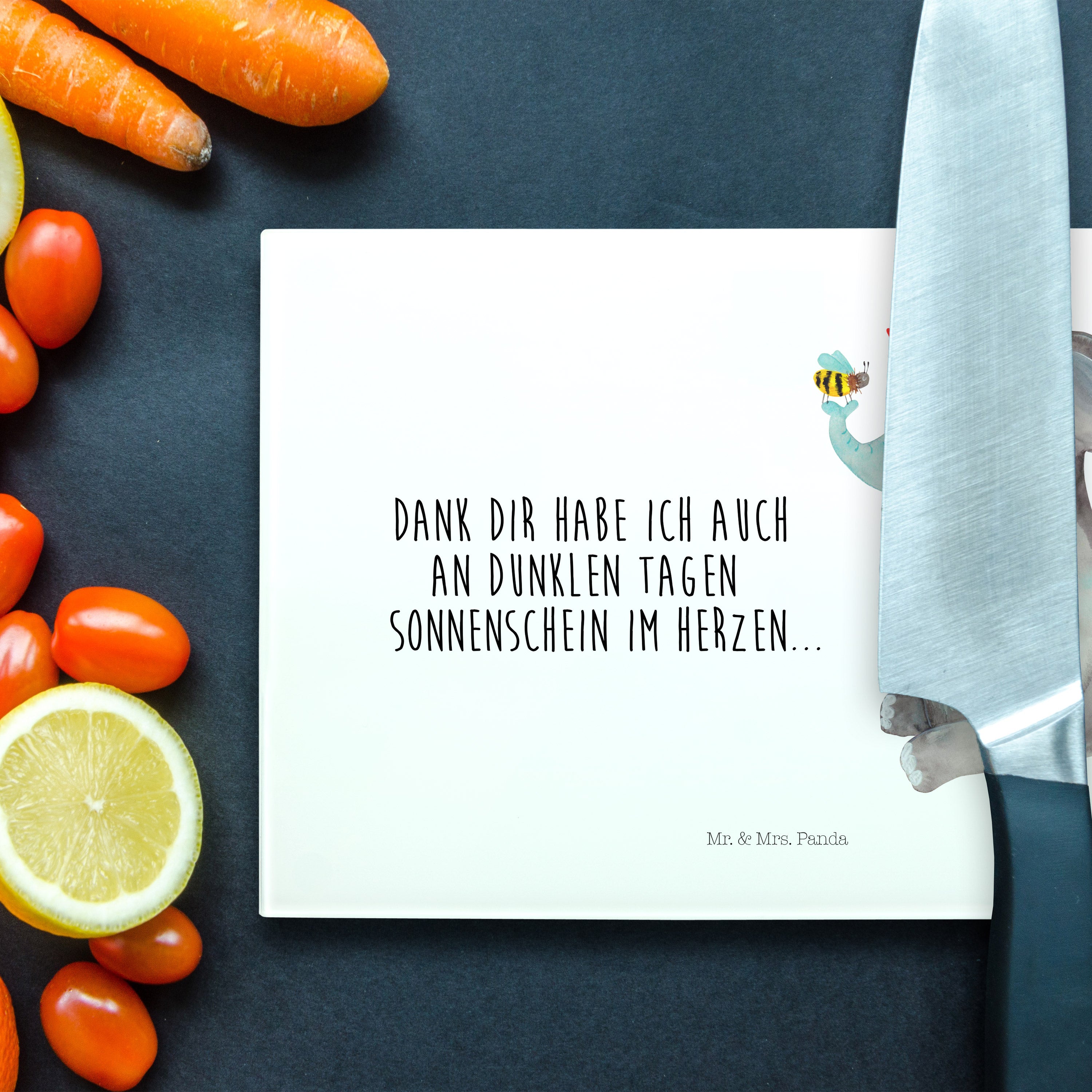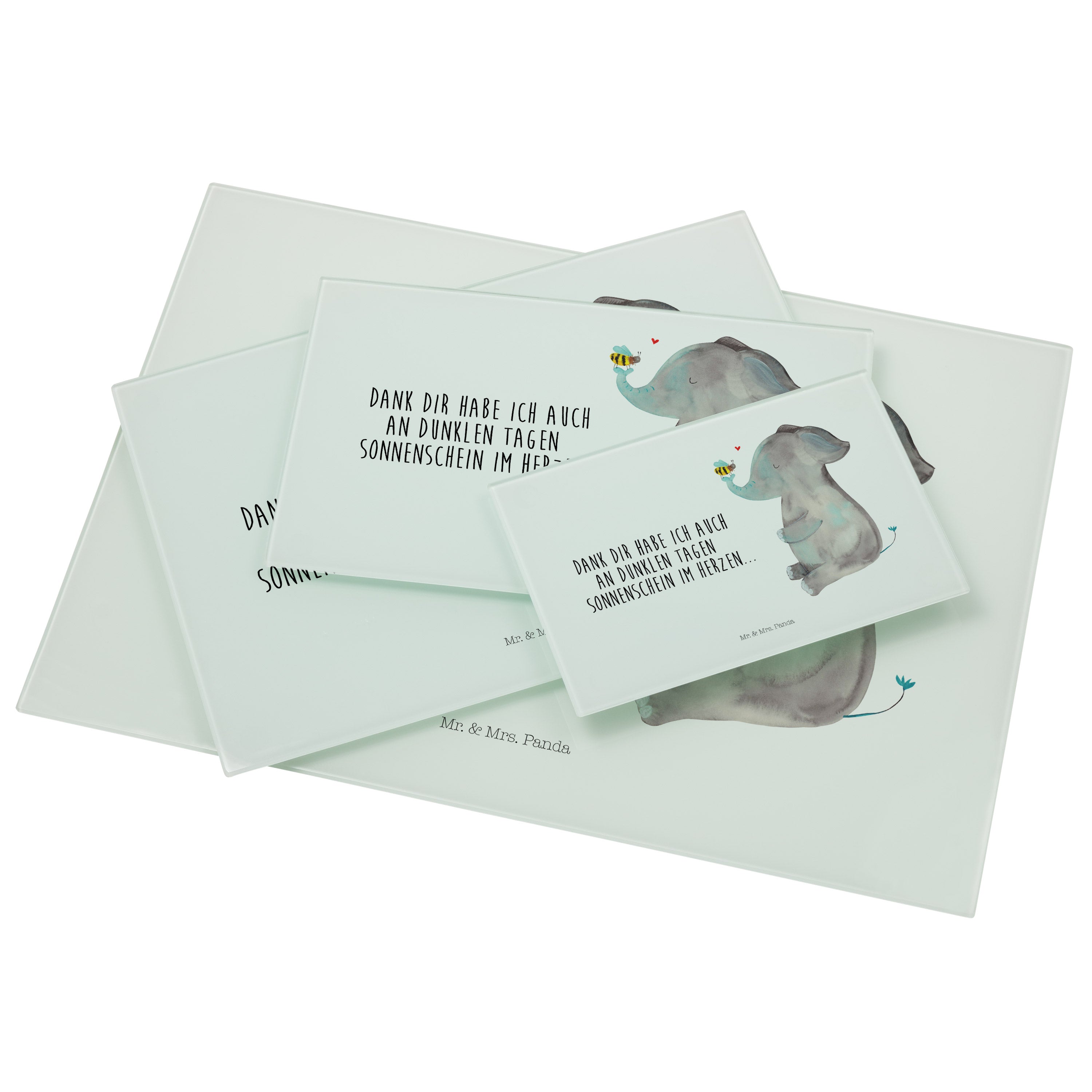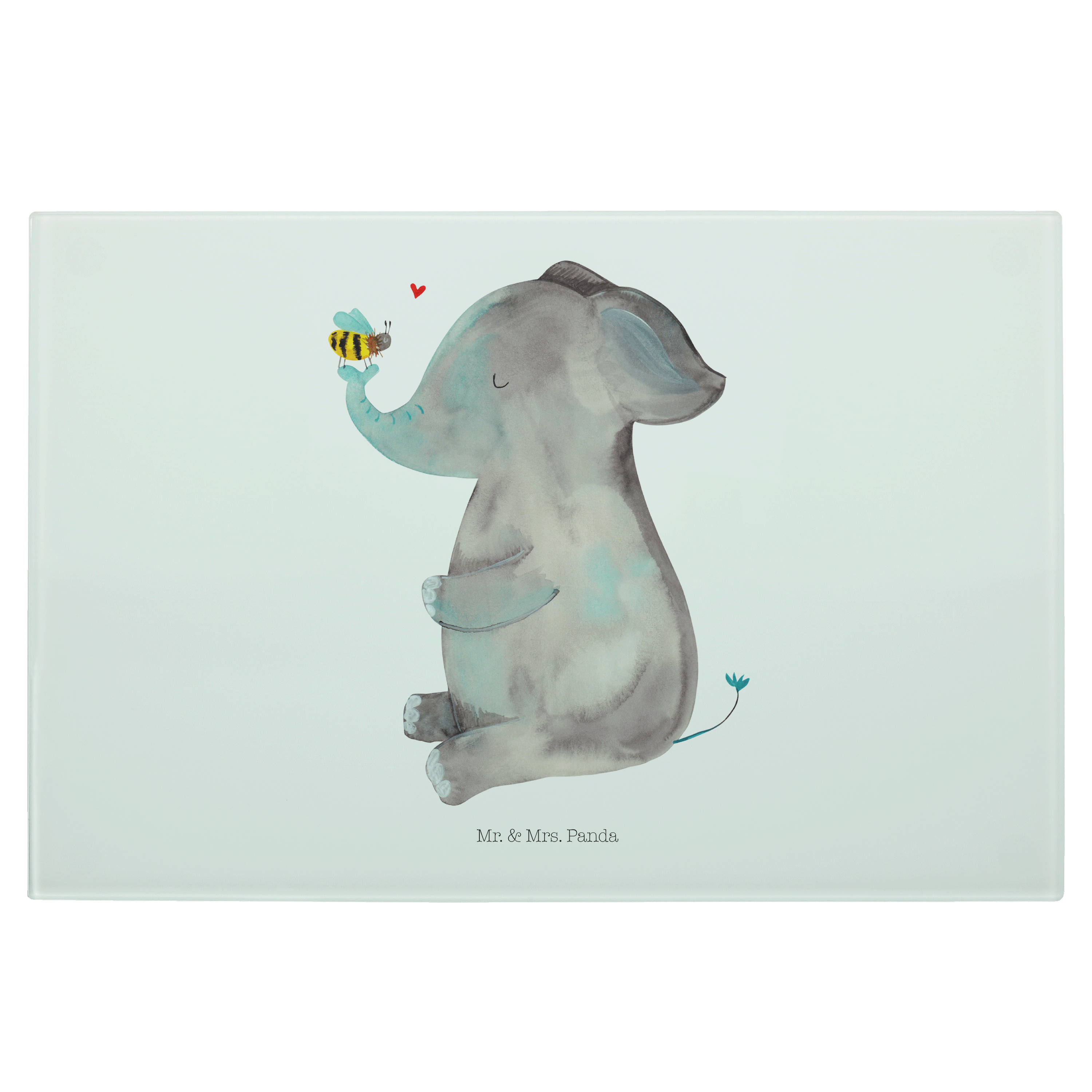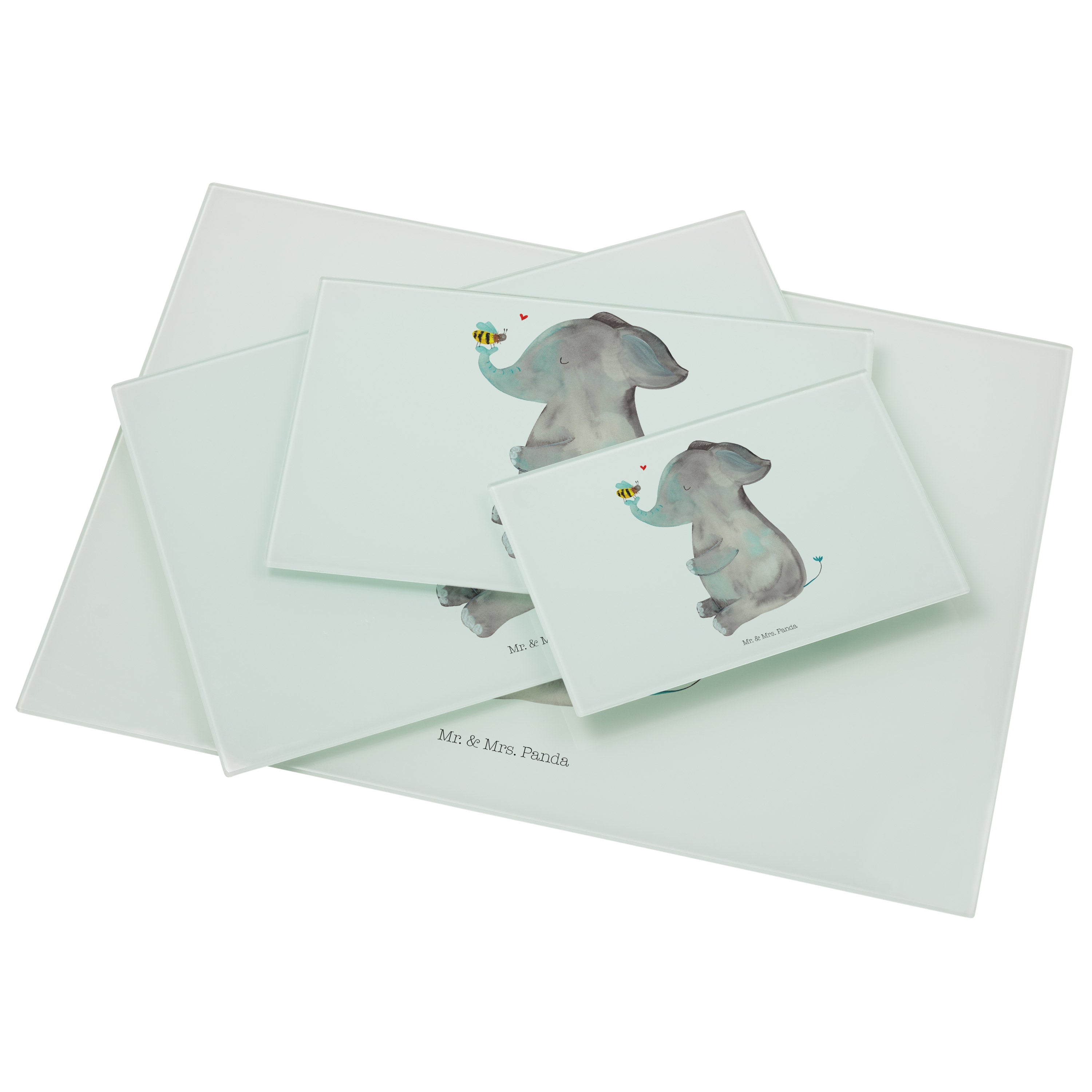 XL Glas Schneidbrett Elefant & Biene - mit Spruch - Weiß