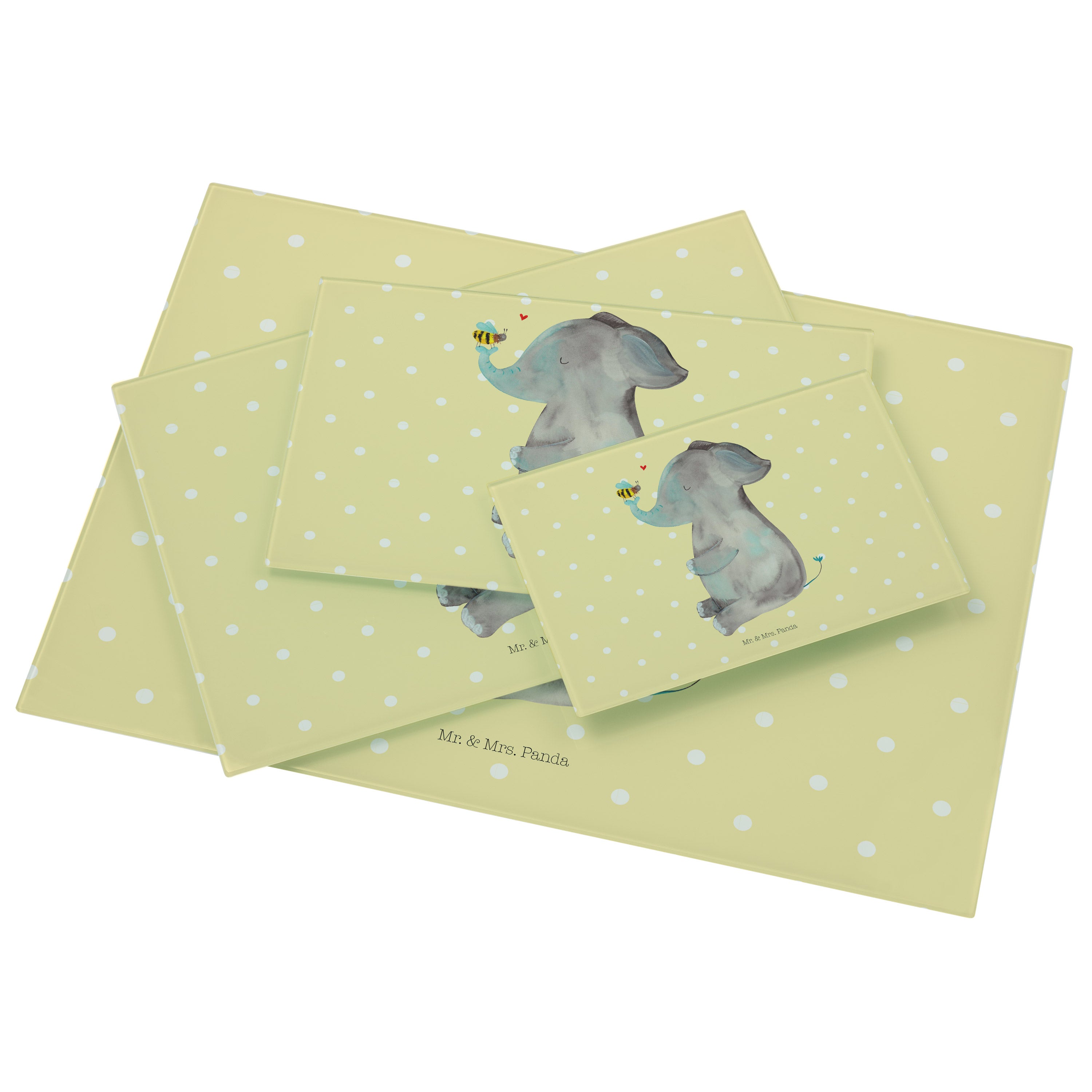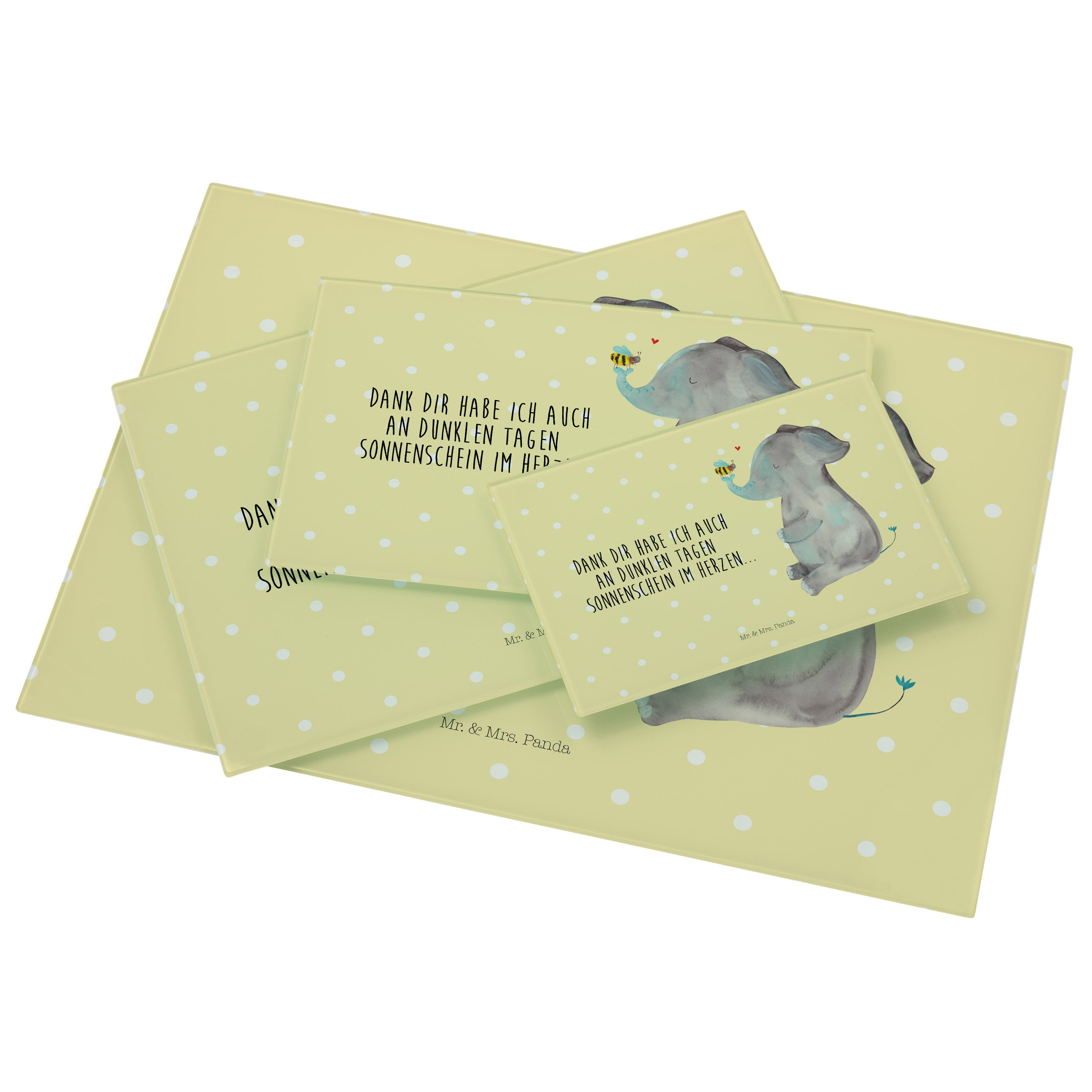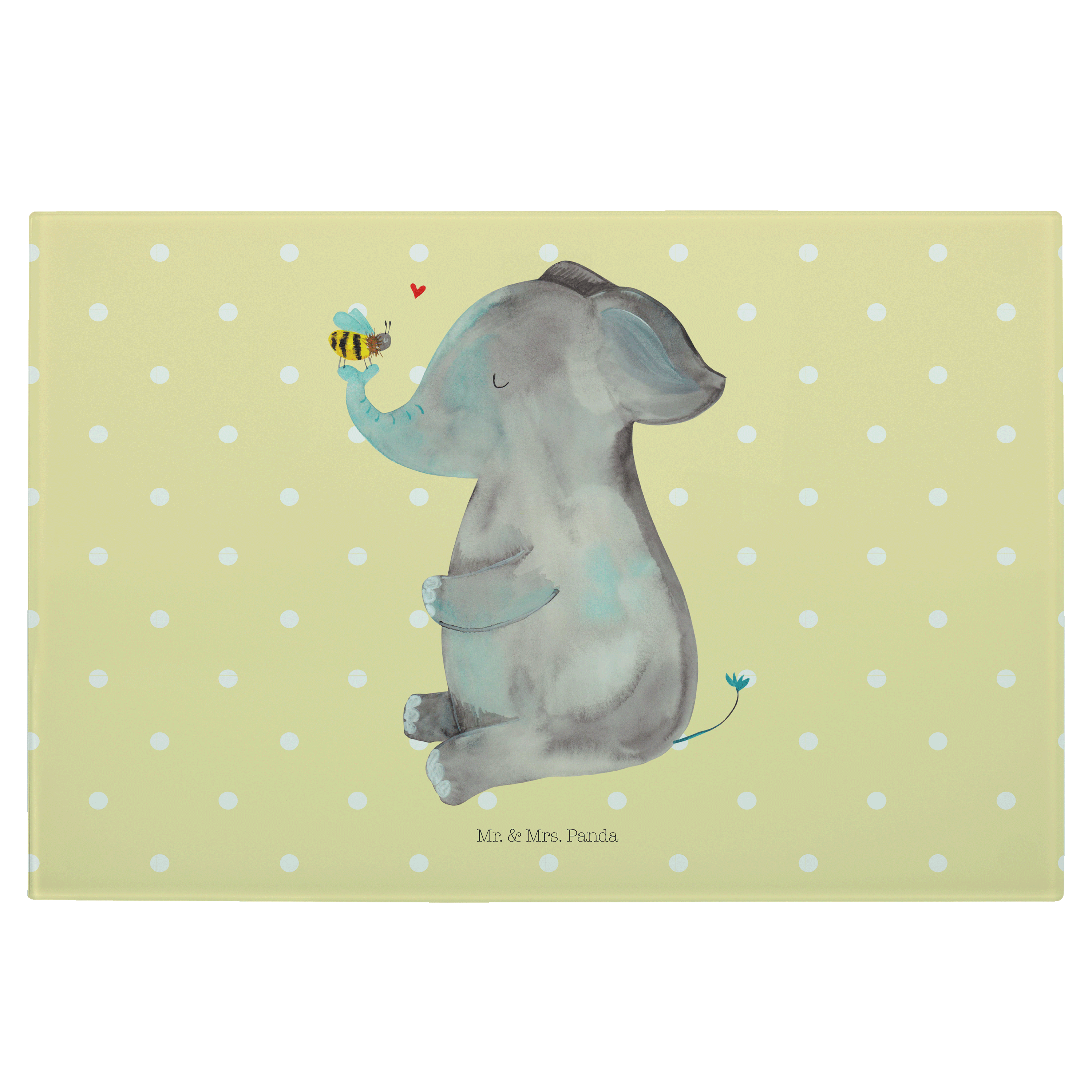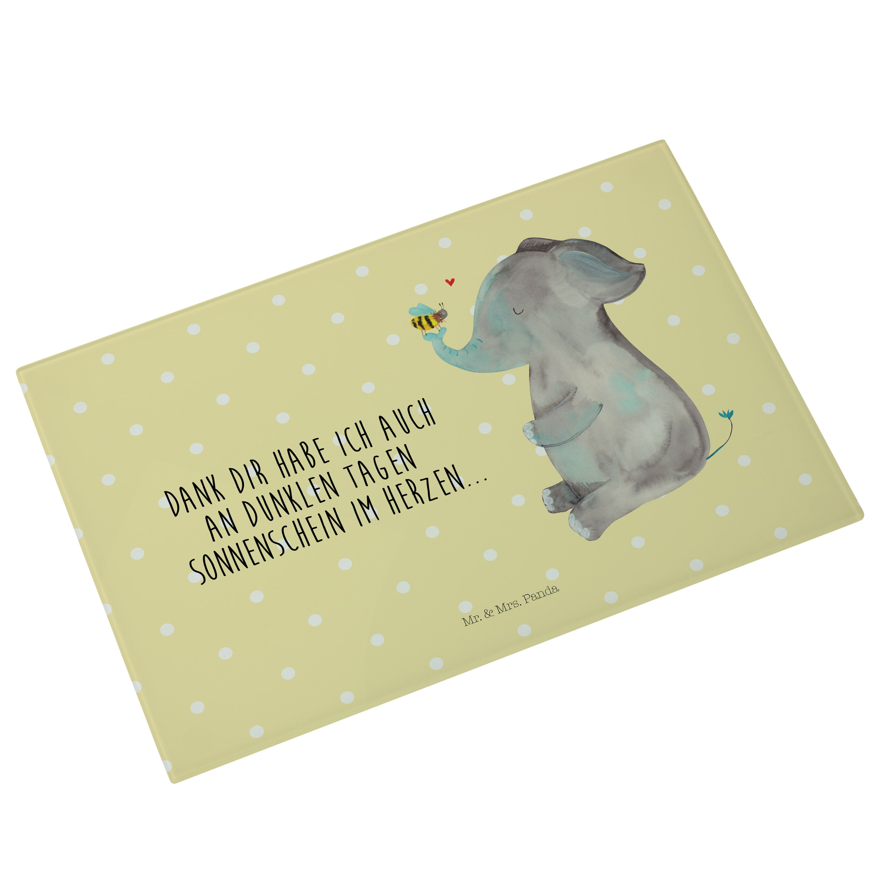 XL Glas Schneidbrett Elefant & Biene - mit Spruch - Weiß