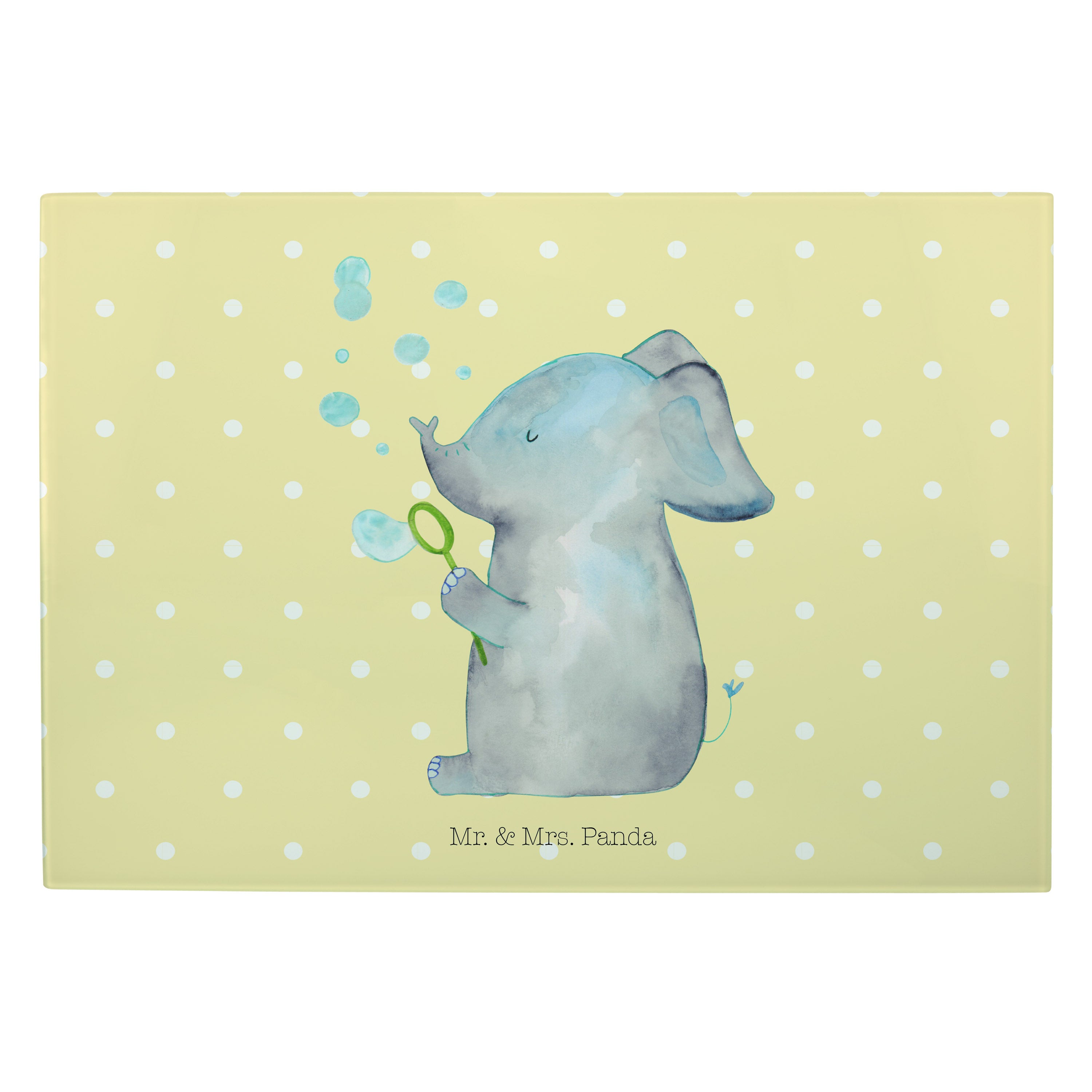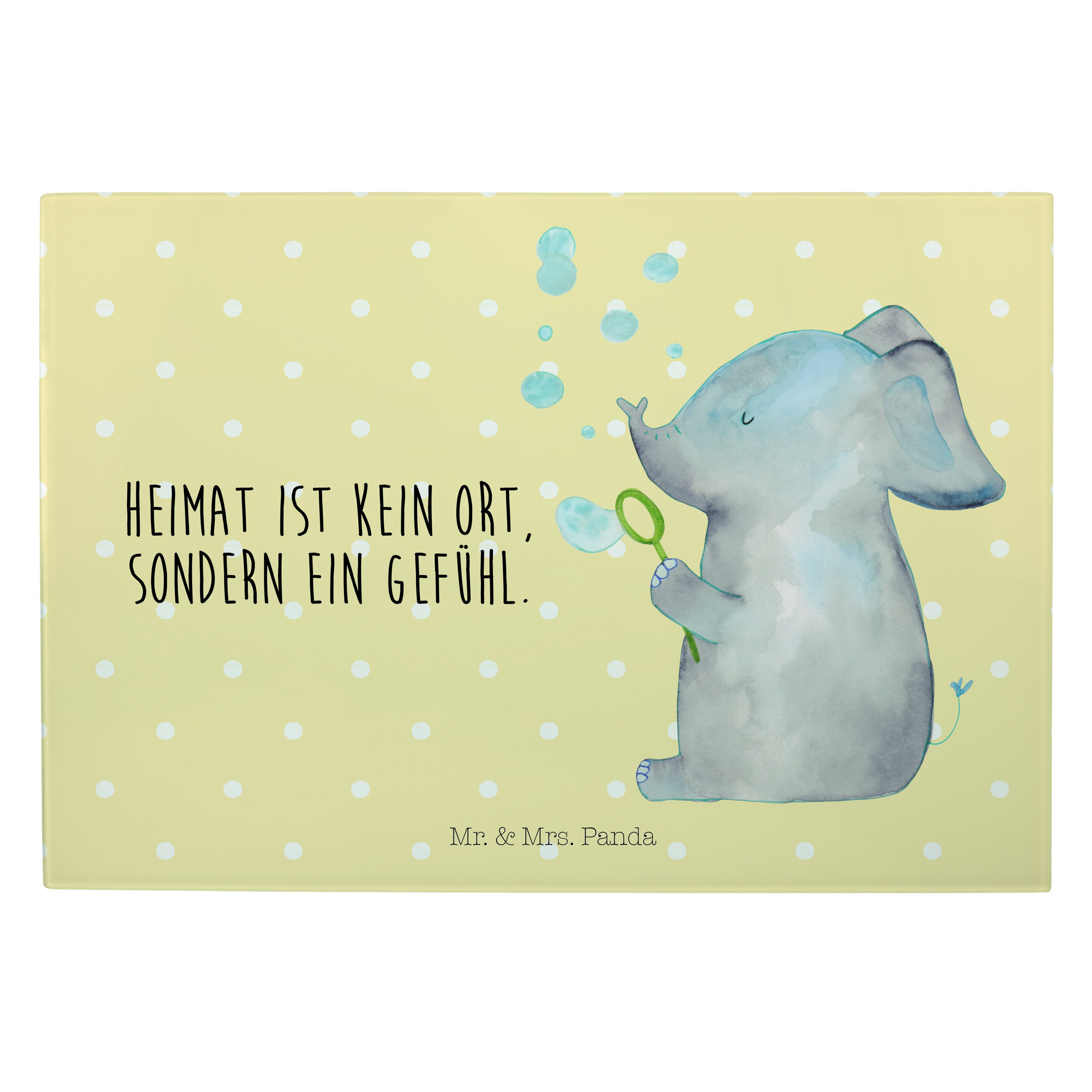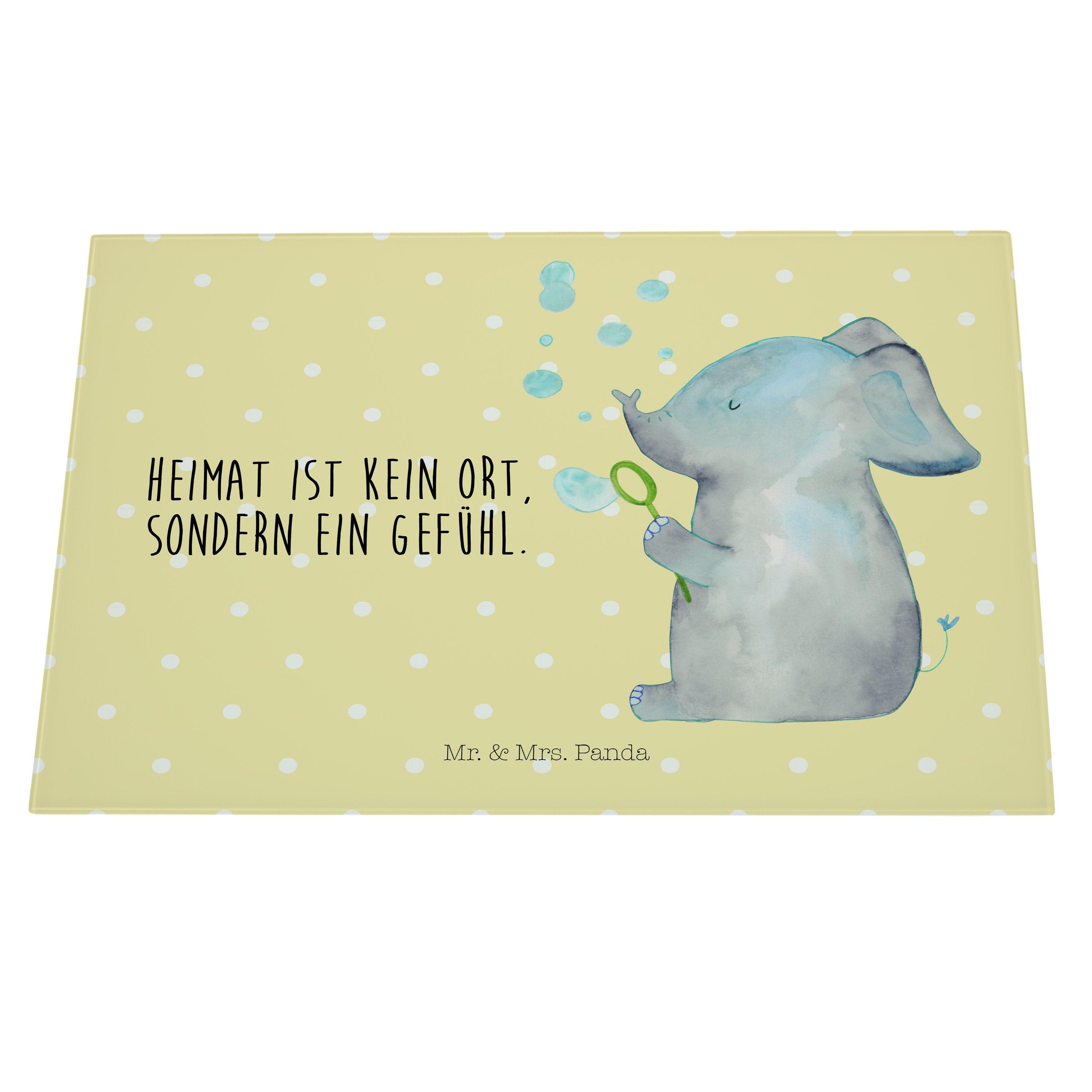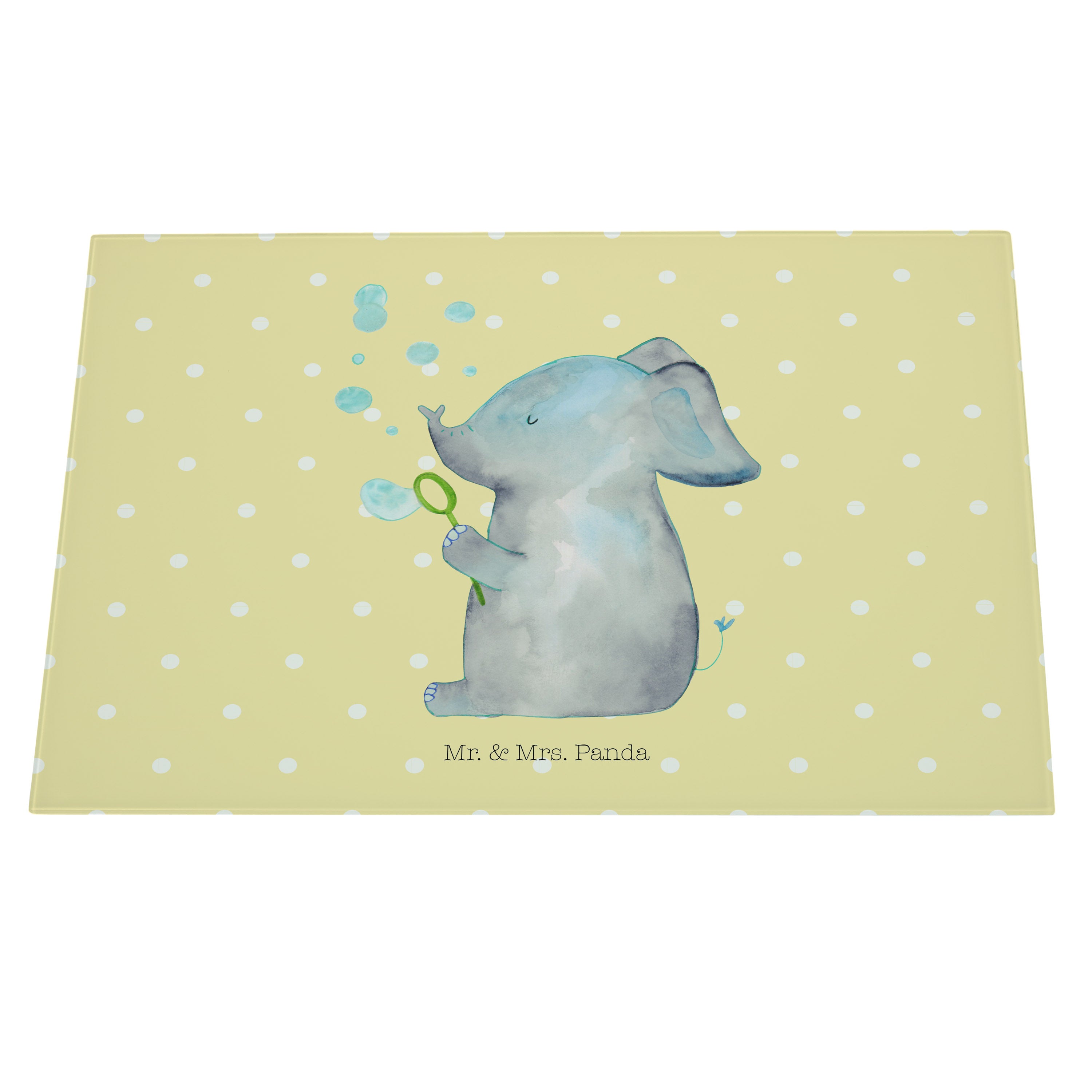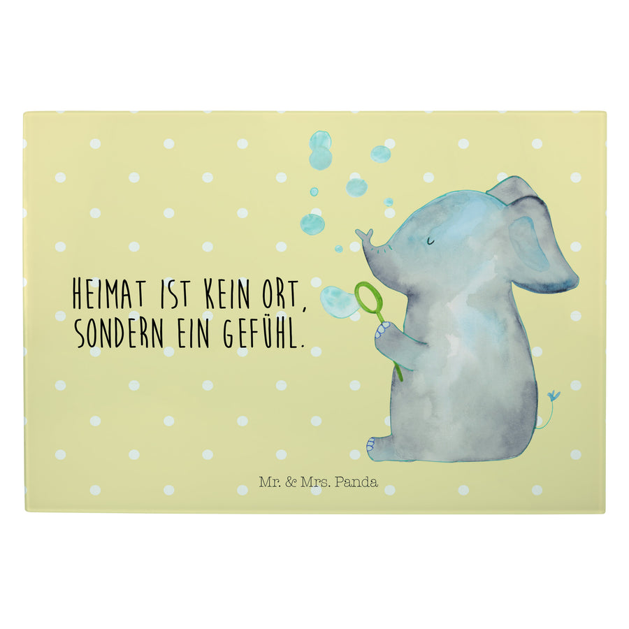XL Glas Schneidbrett Elefant Seifenblasen - mit Spruch - Gelb Pastell