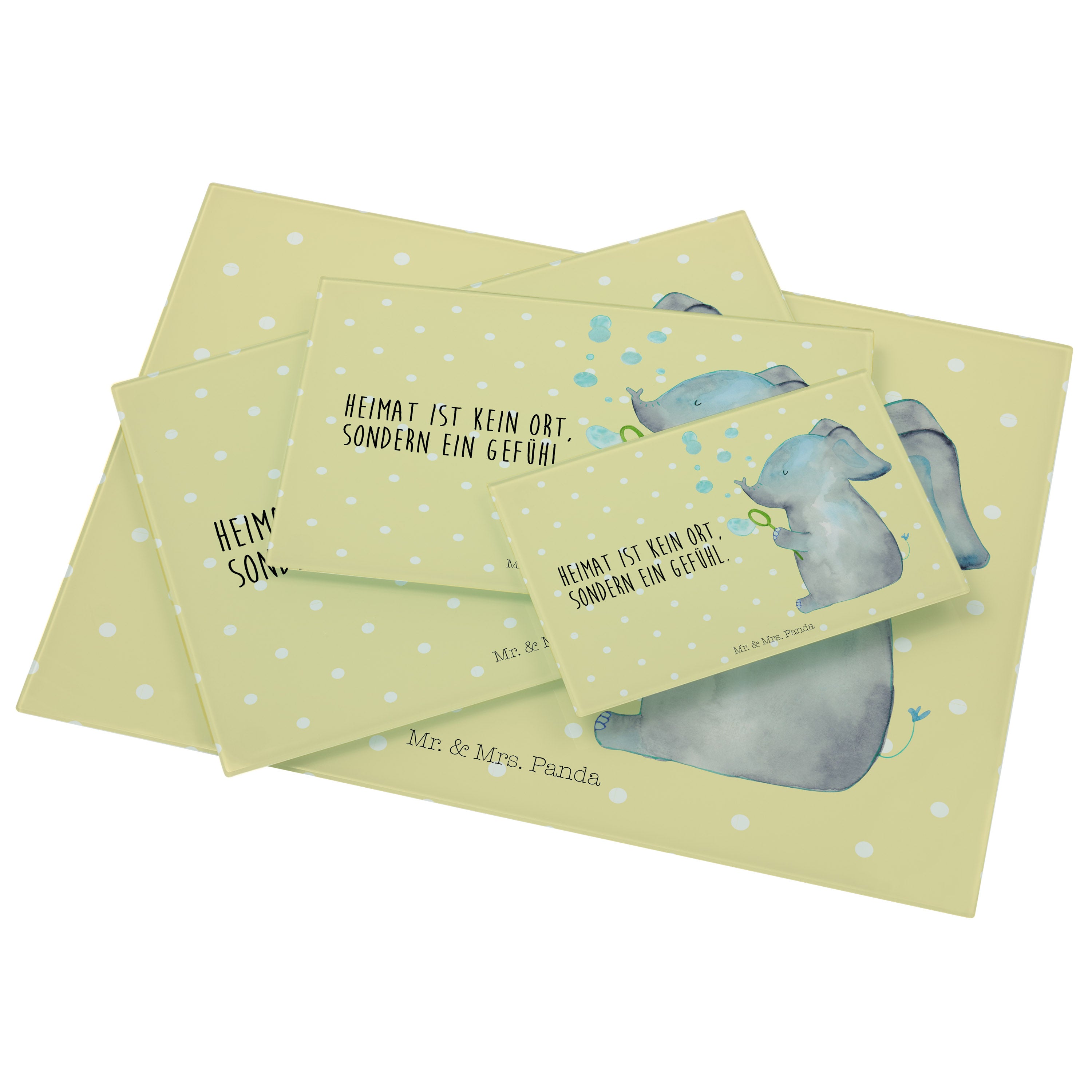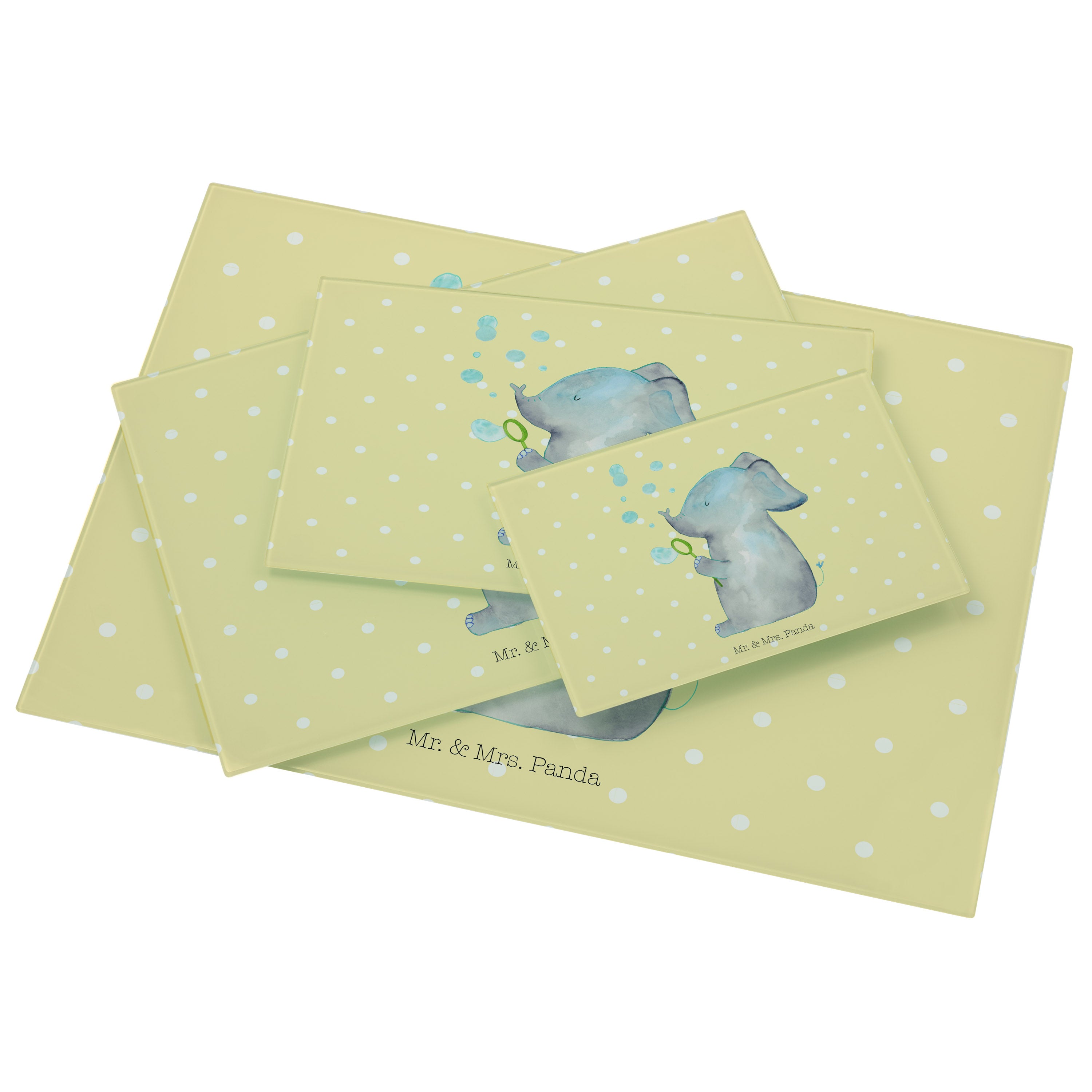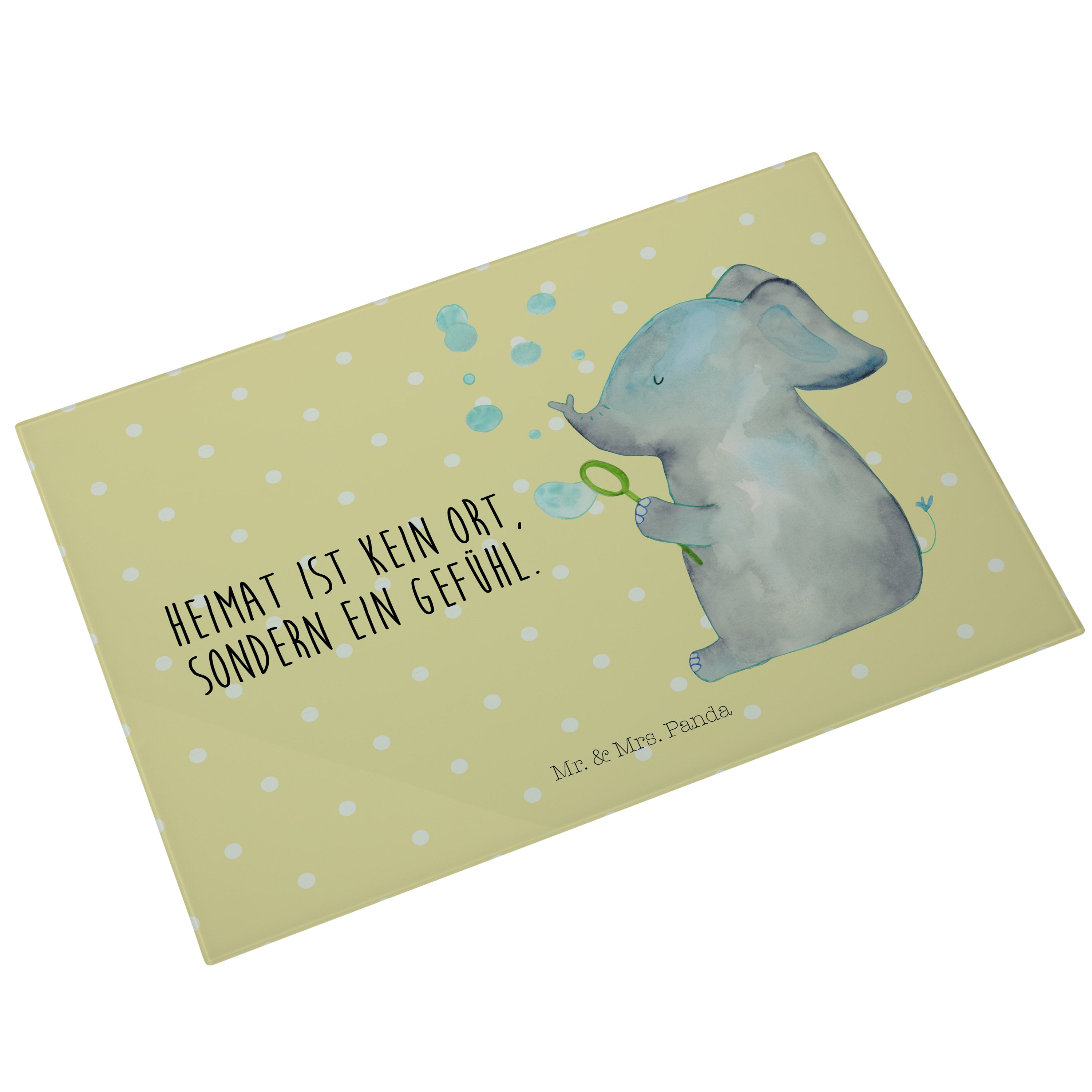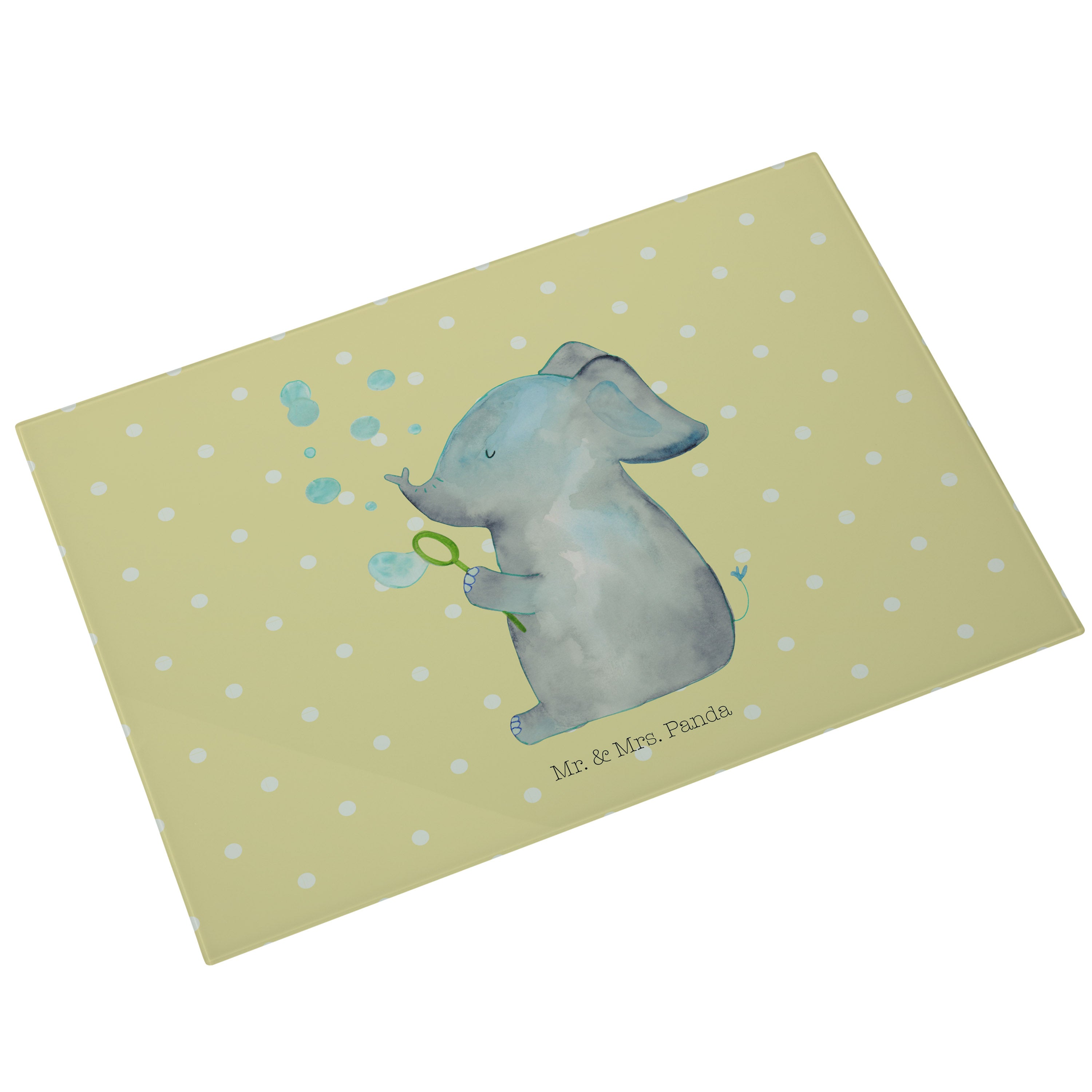 XL Glas Schneidbrett Elefant Seifenblasen - mit Spruch - Gelb Pastell