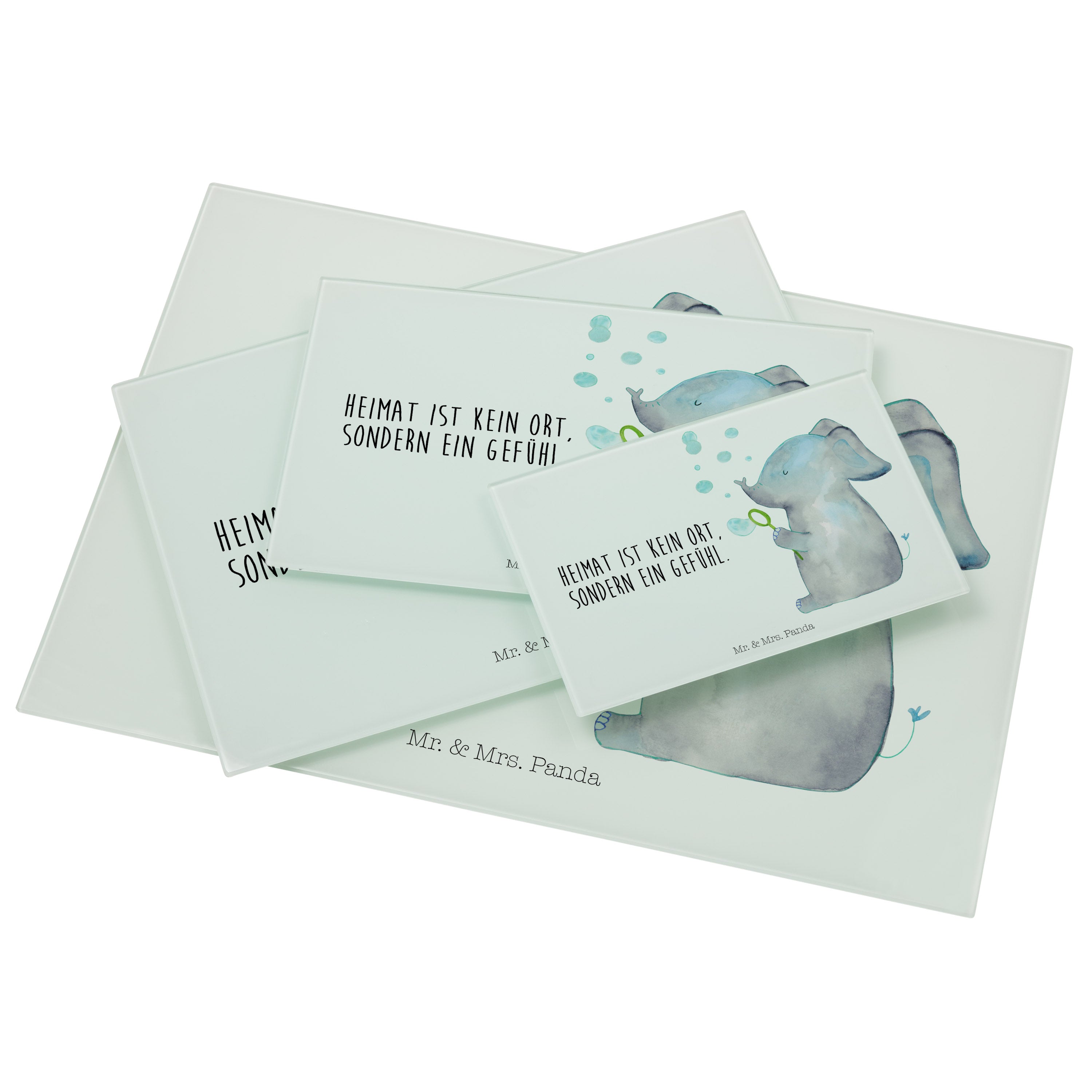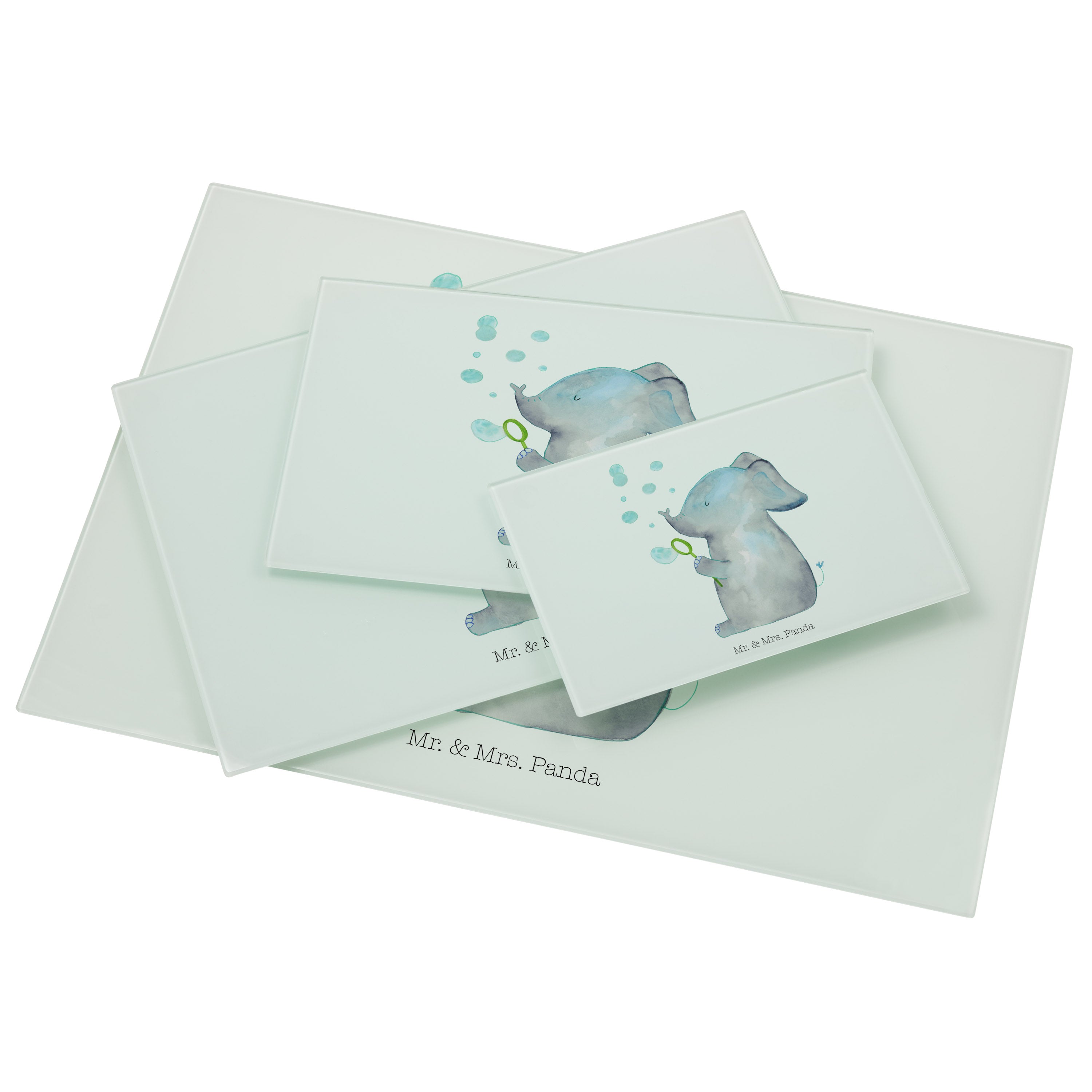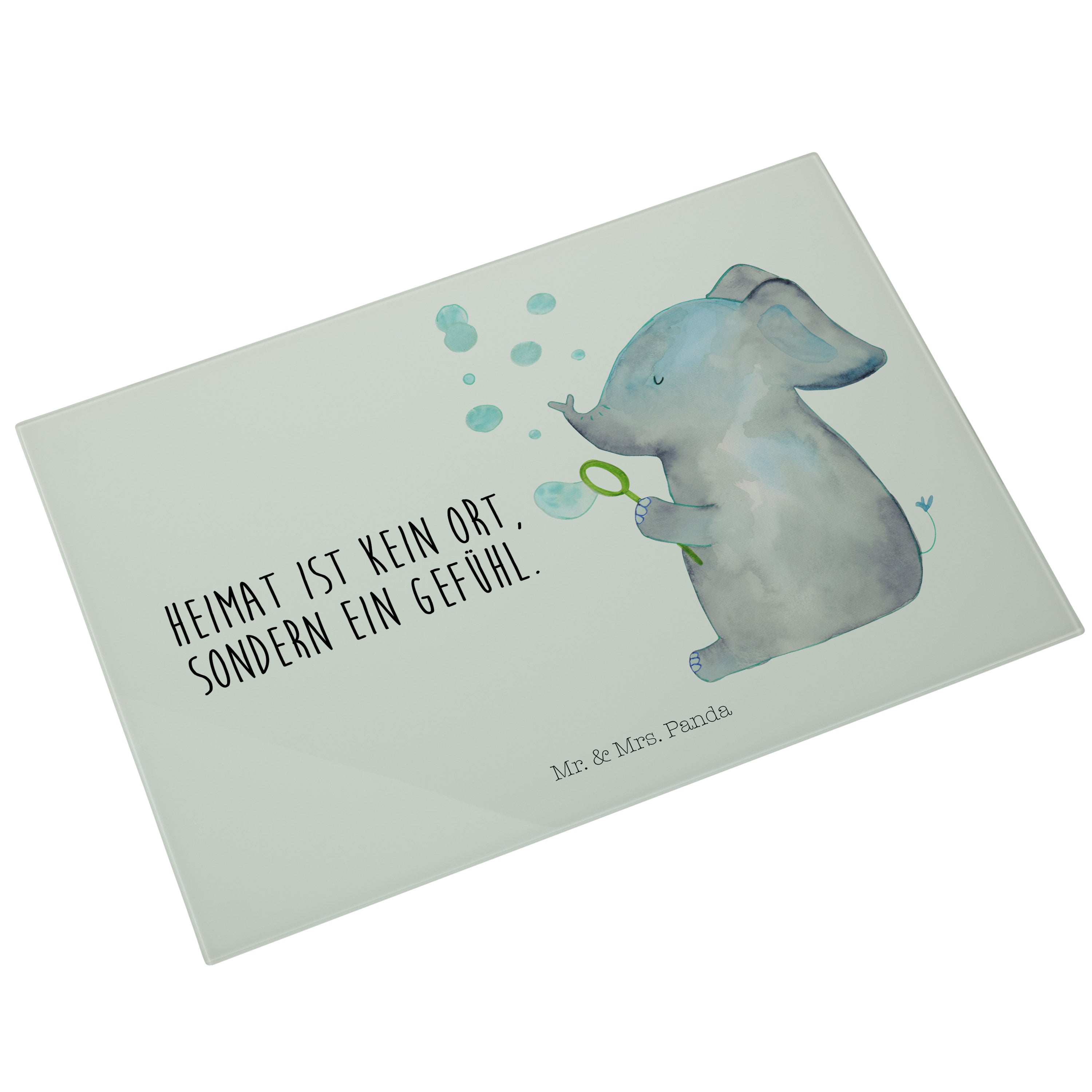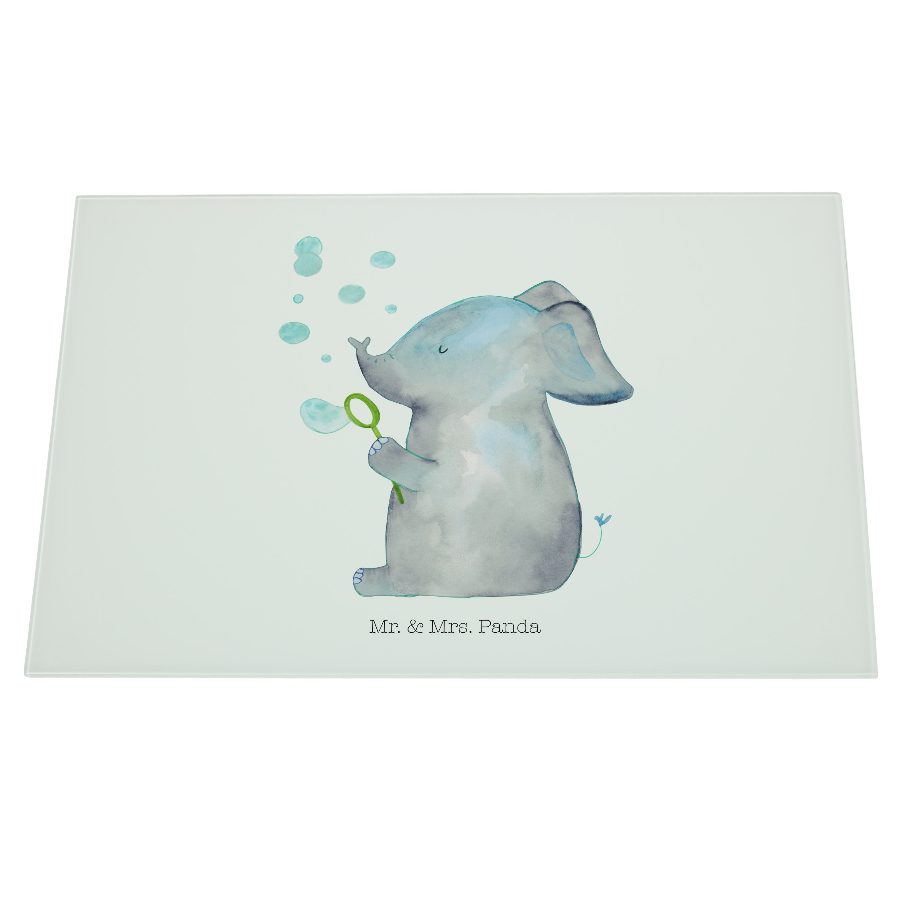 XL Glas Schneidbrett Elefant Seifenblasen - mit Spruch - Gelb Pastell