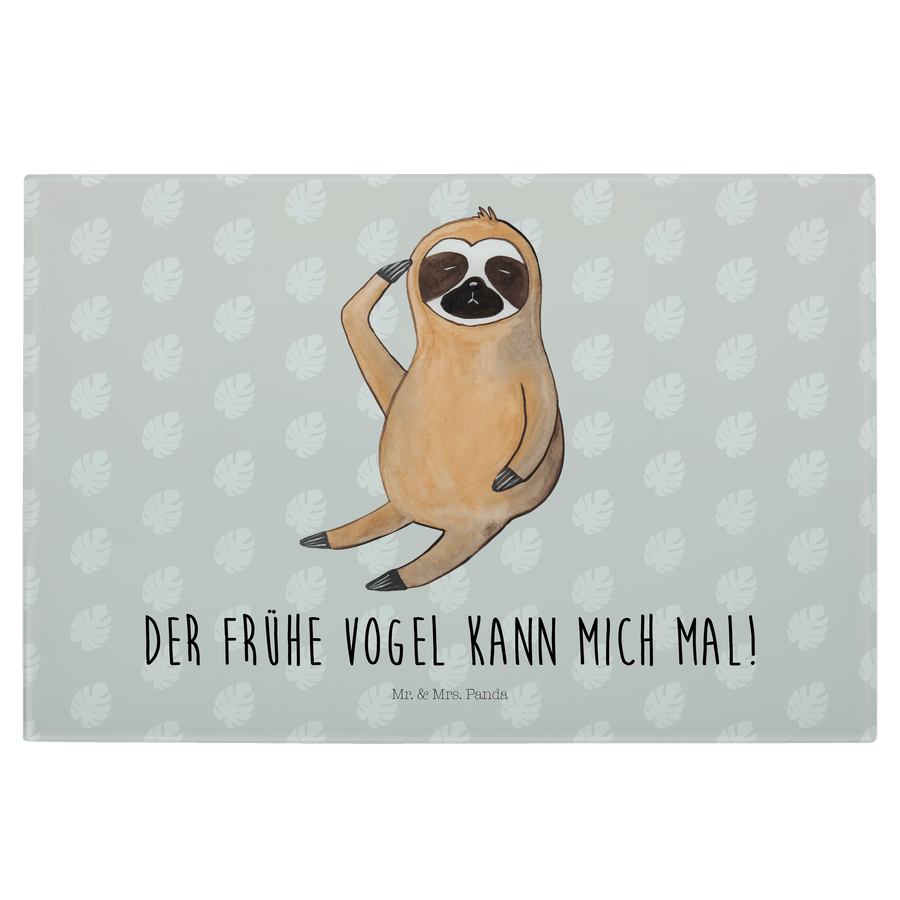 XL Glas Schneidbrett Faultier Vogel zeigen - mit Spruch - Grau Pastell