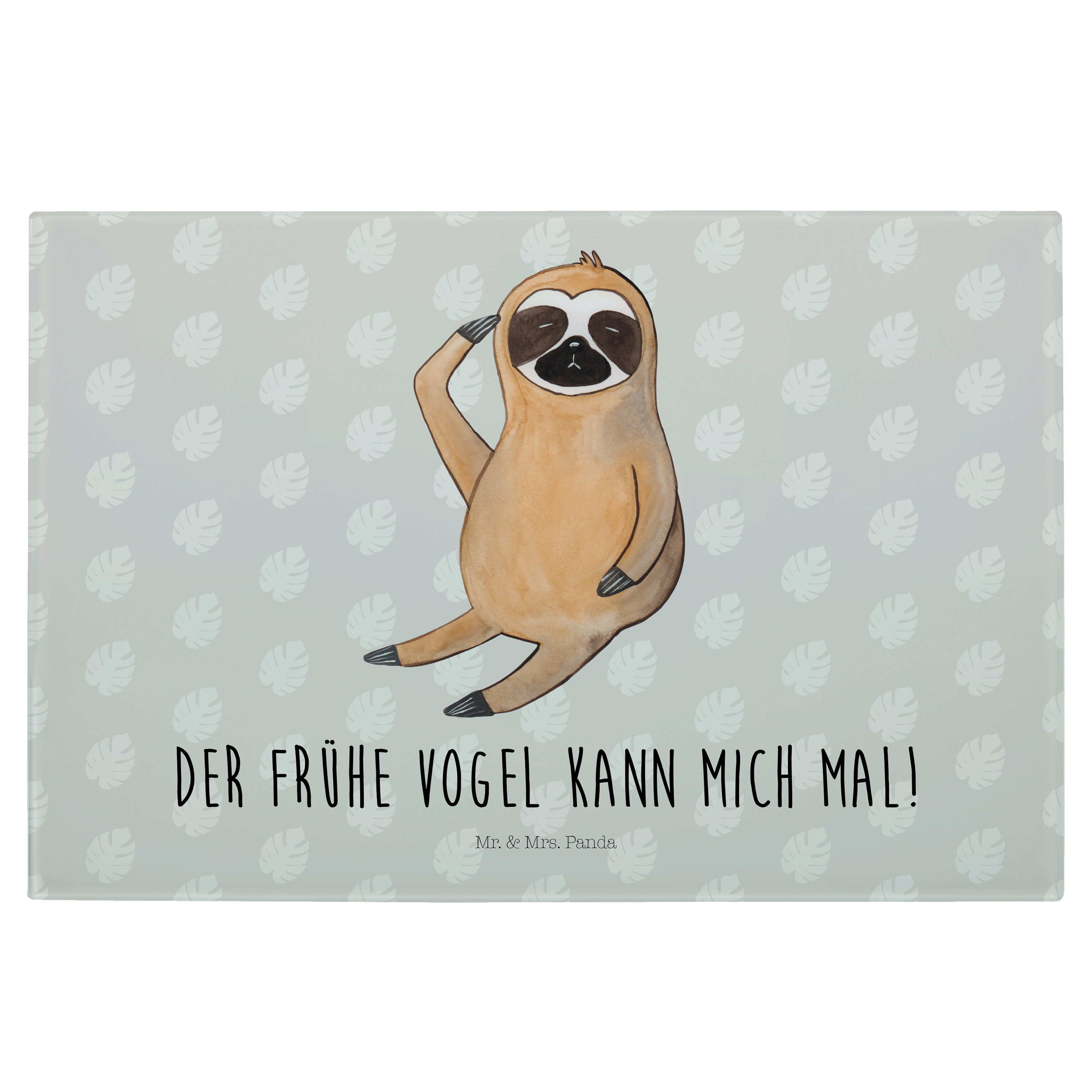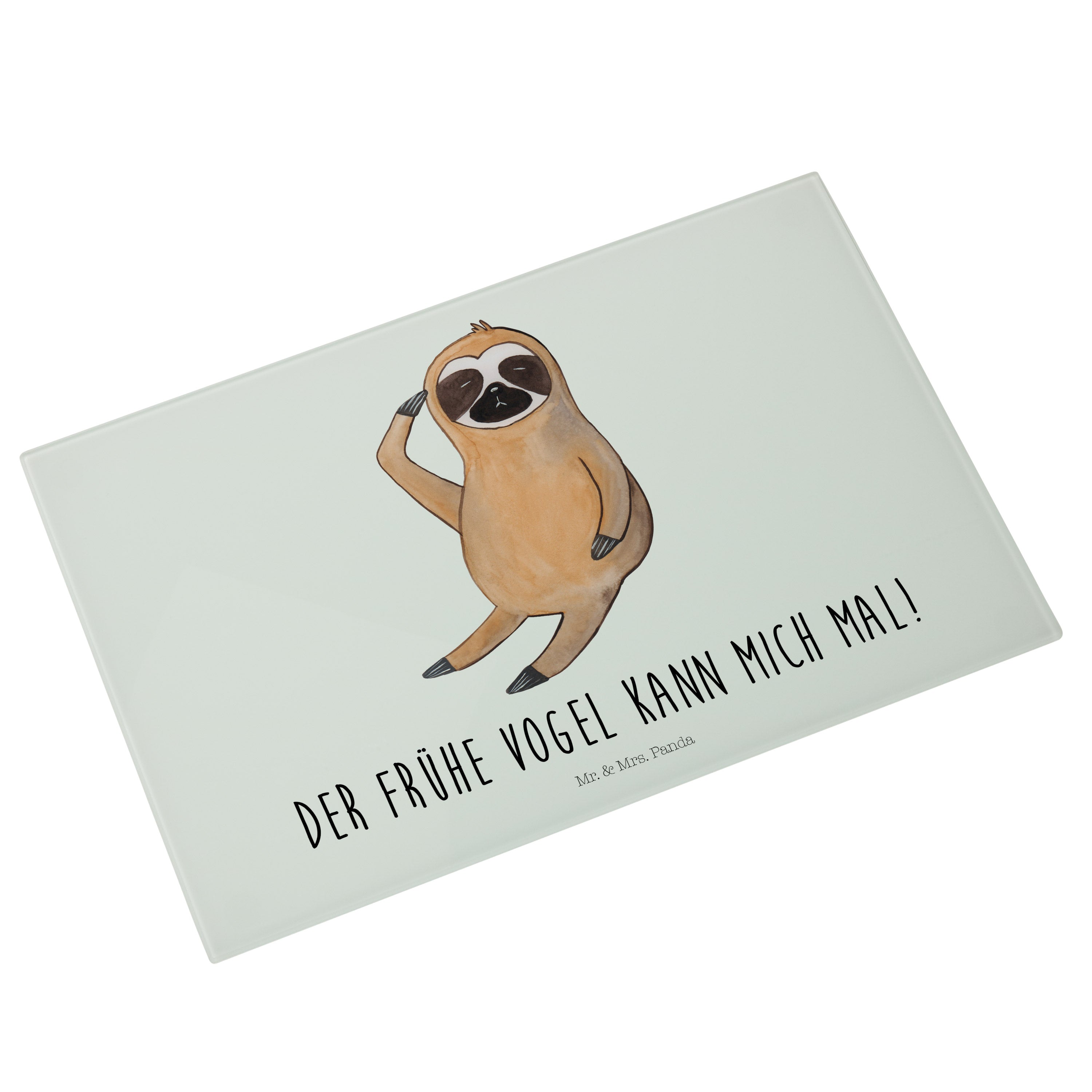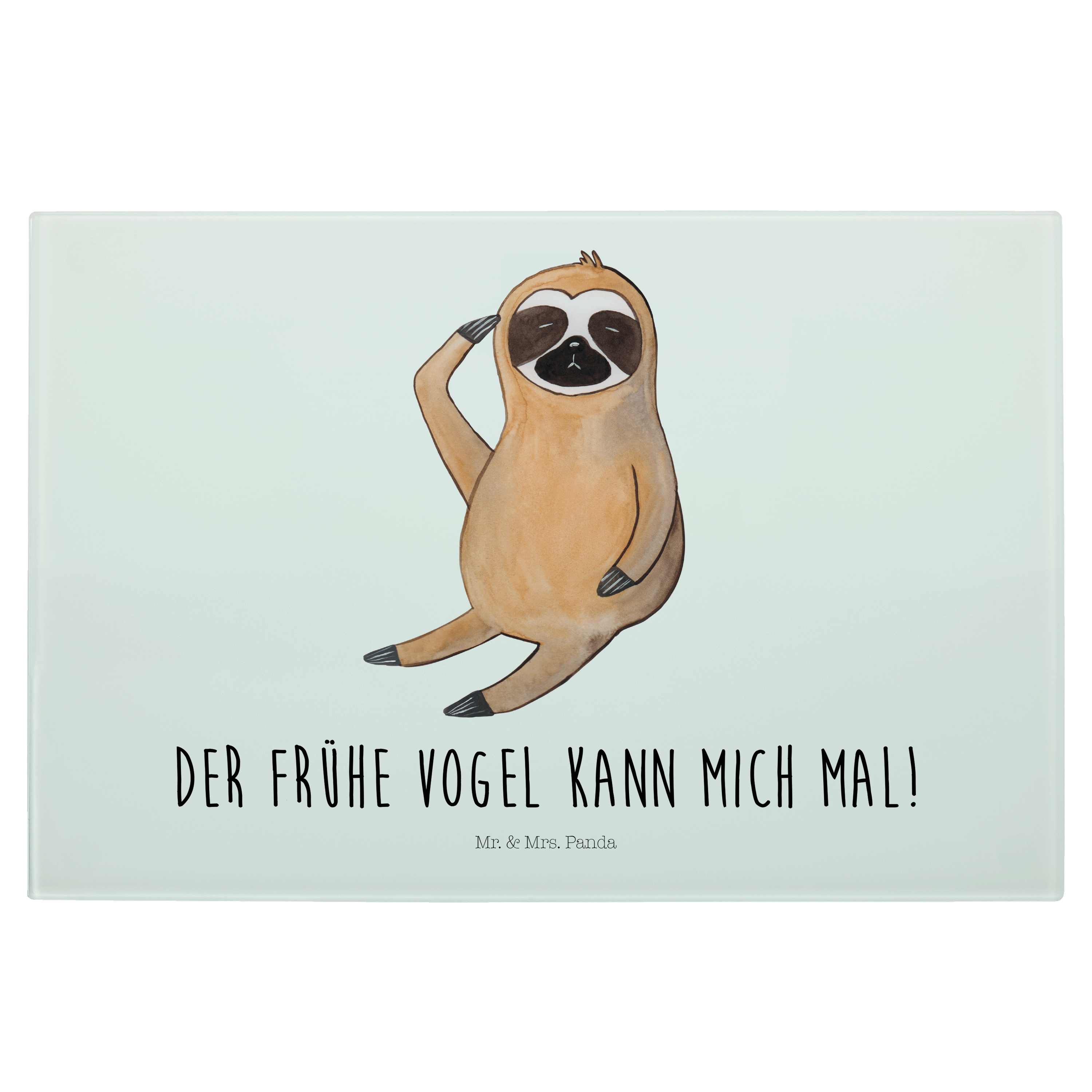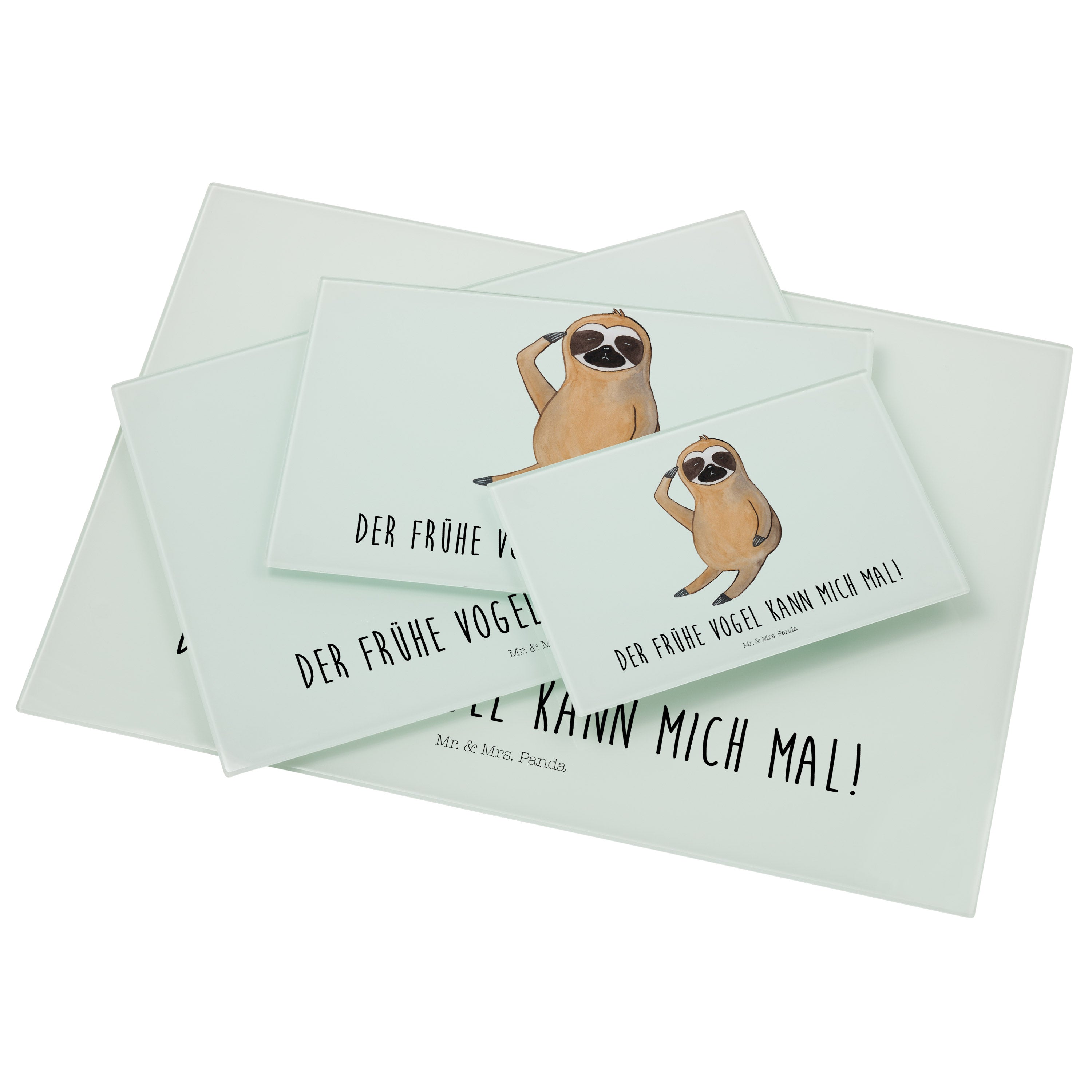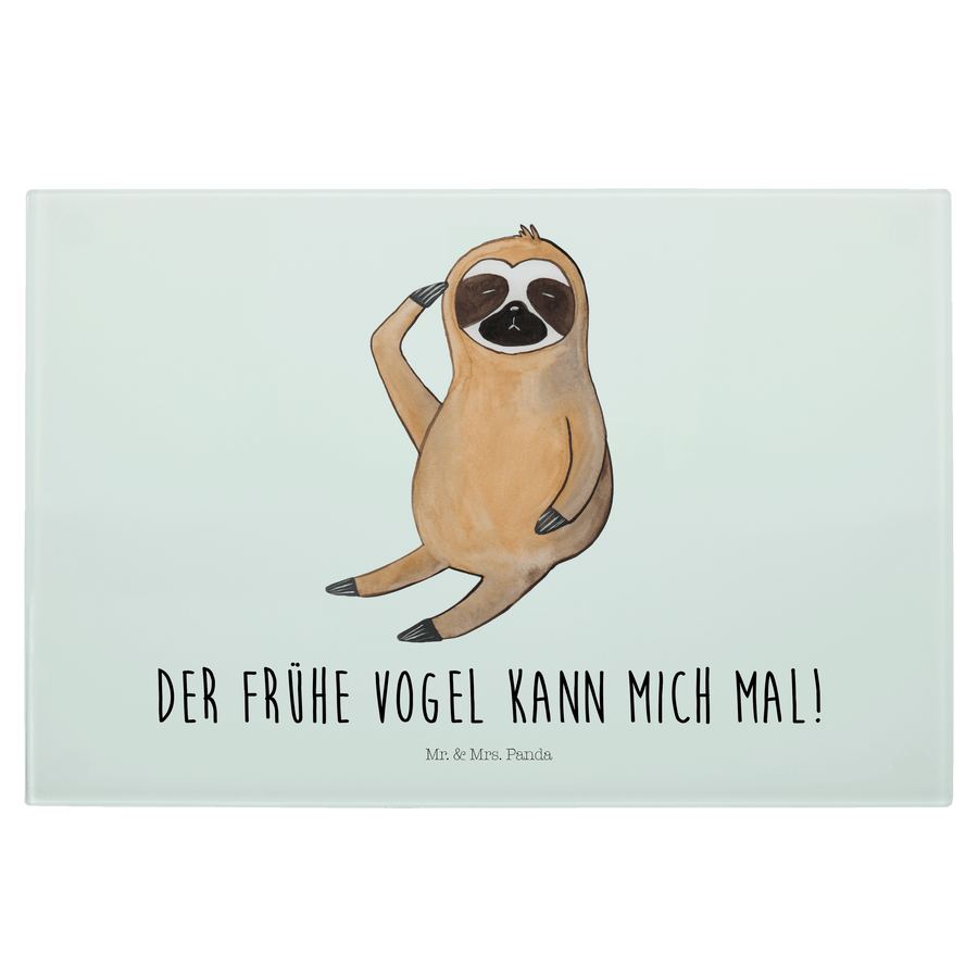 XL Glas Schneidbrett Faultier Vogel zeigen - mit Spruch - Weiß