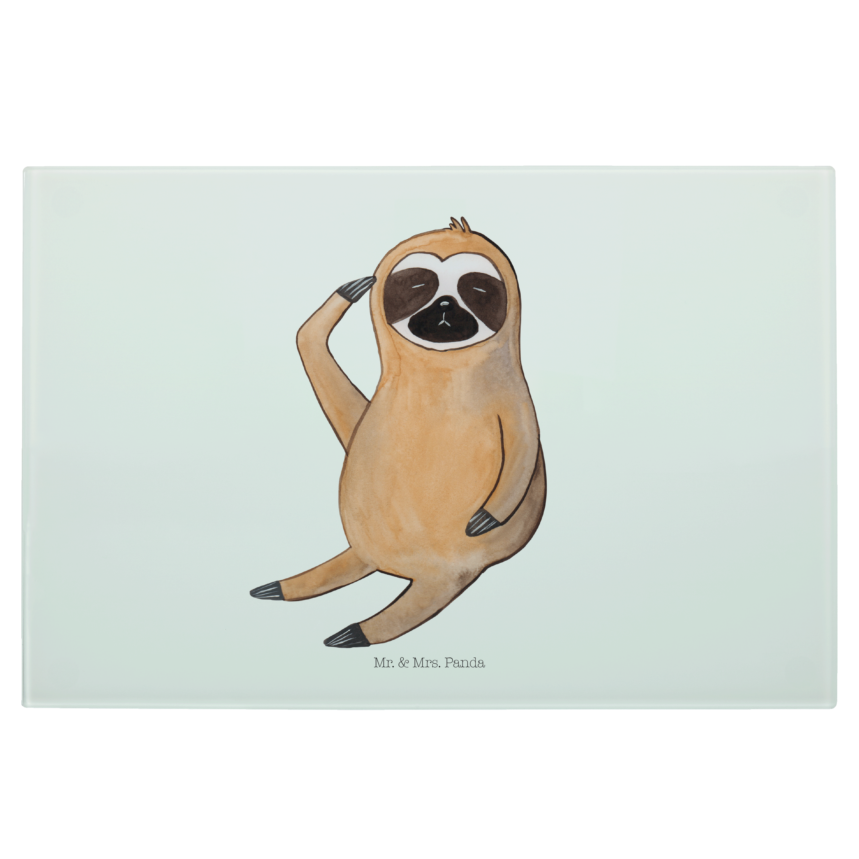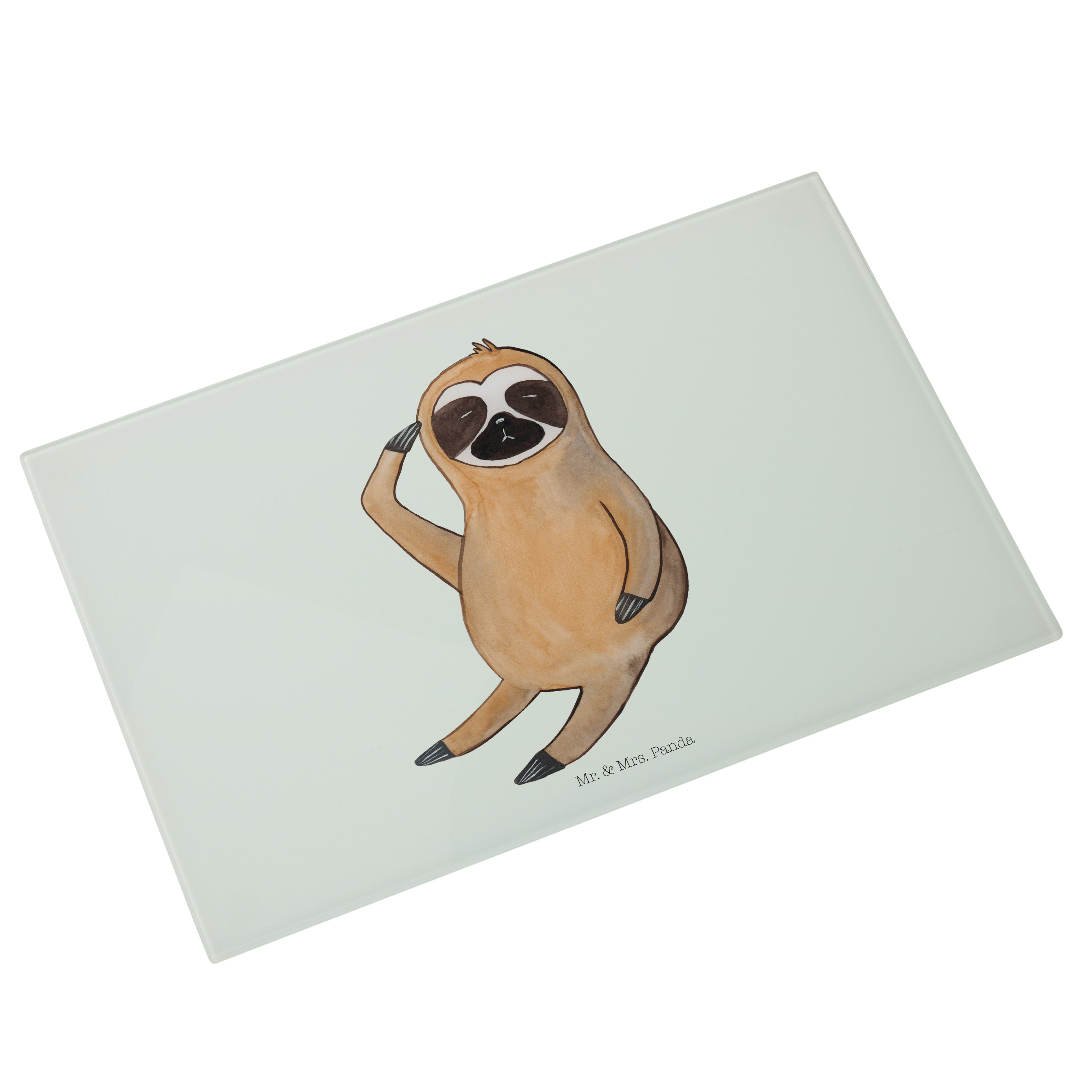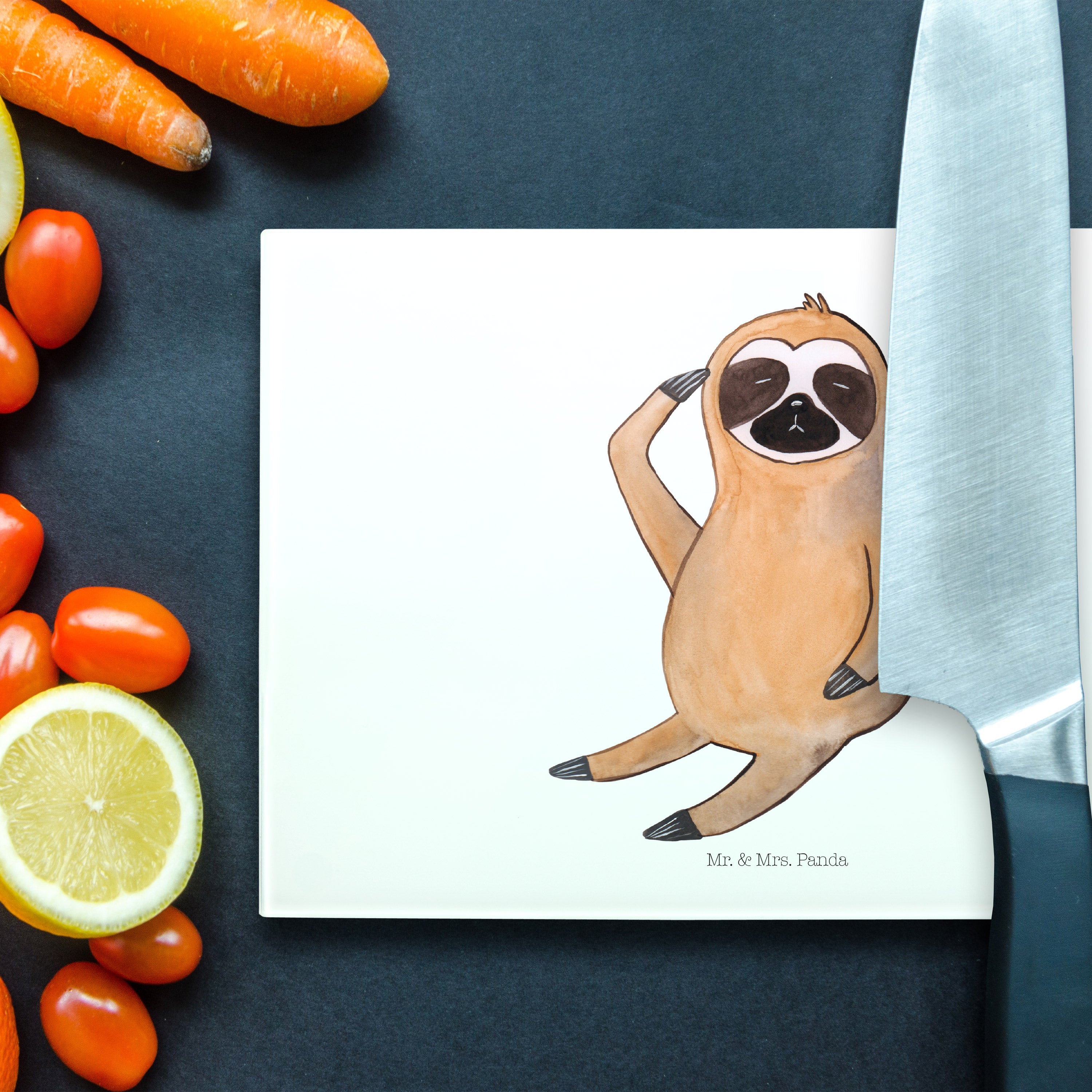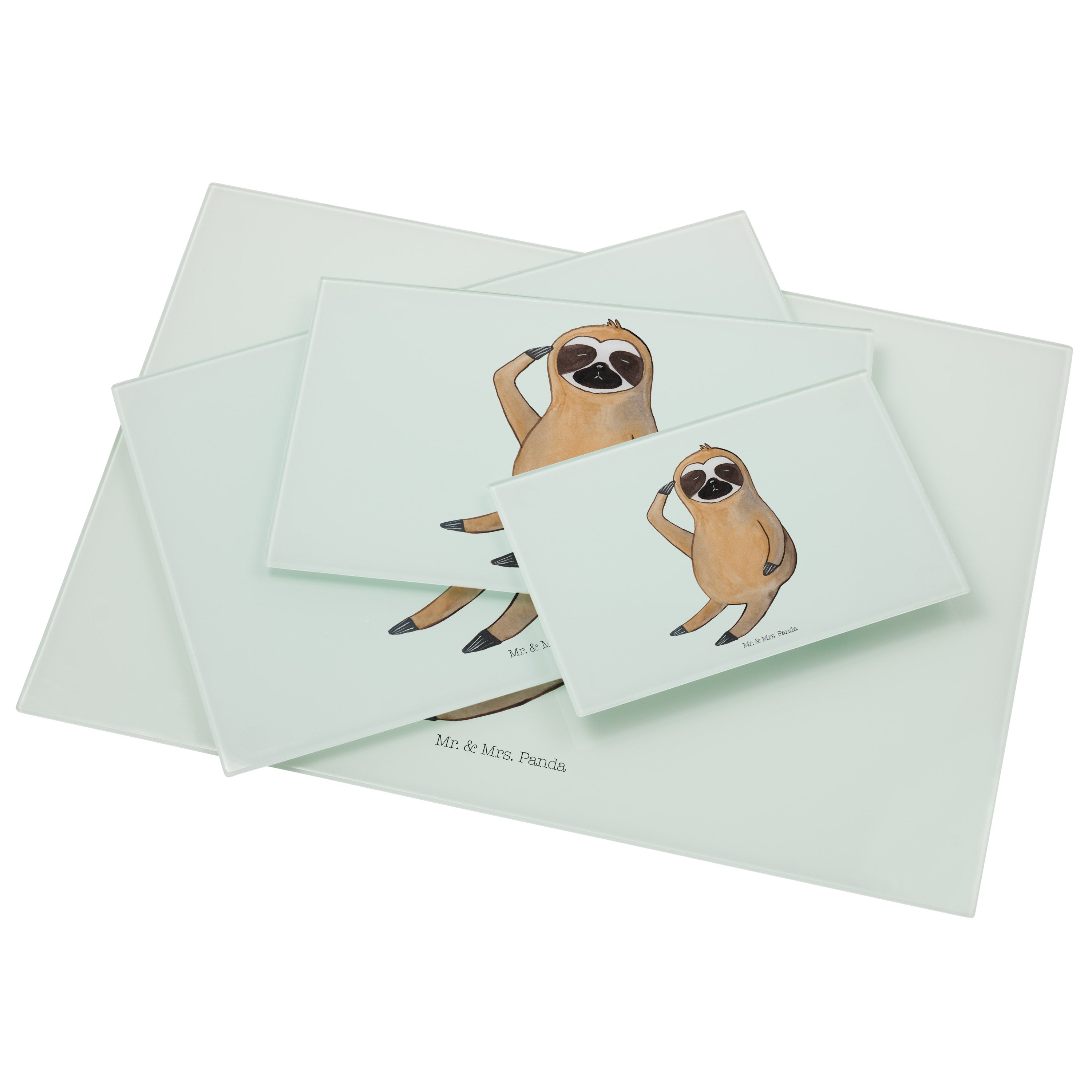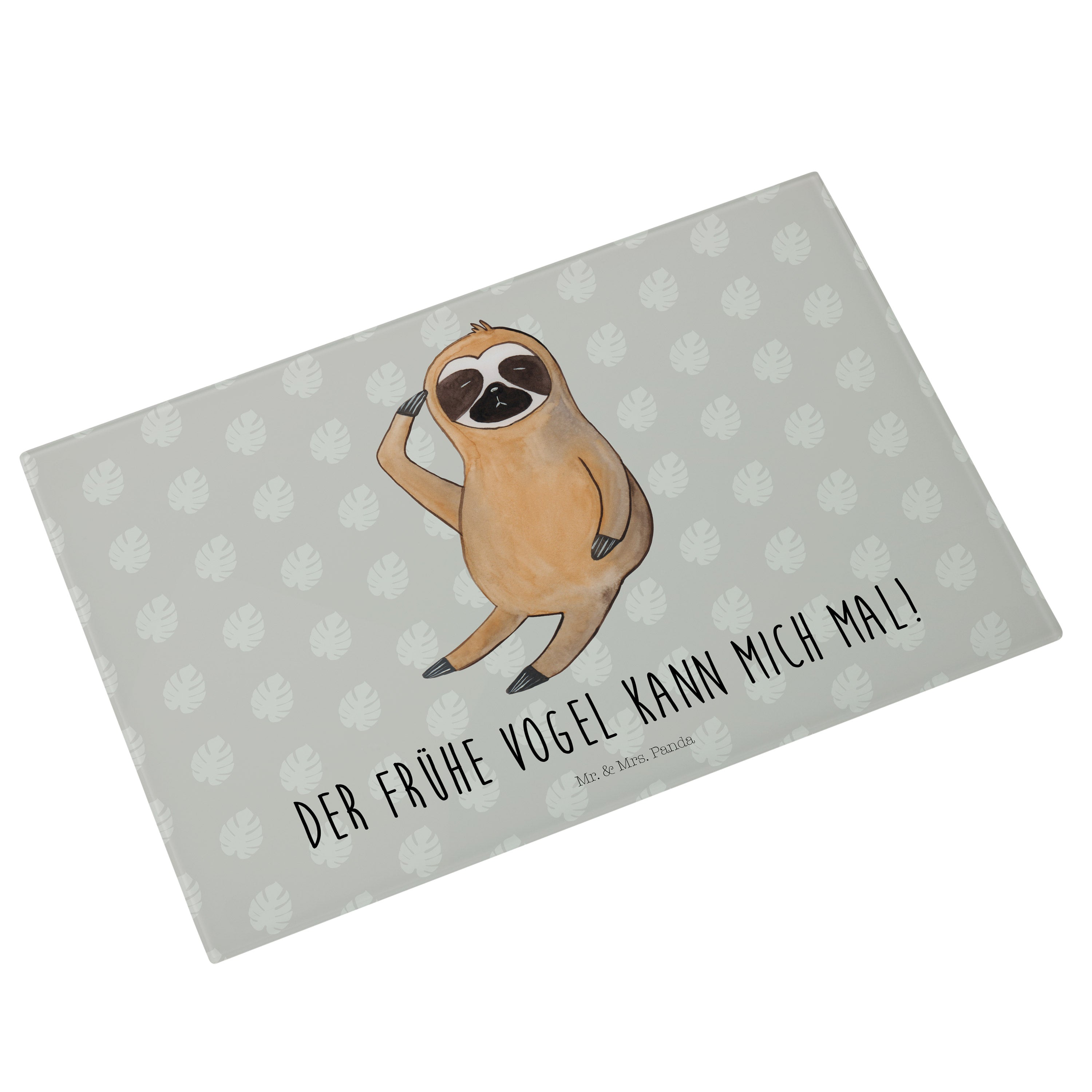 XL Glas Schneidbrett Faultier Vogel zeigen - mit Spruch - Weiß