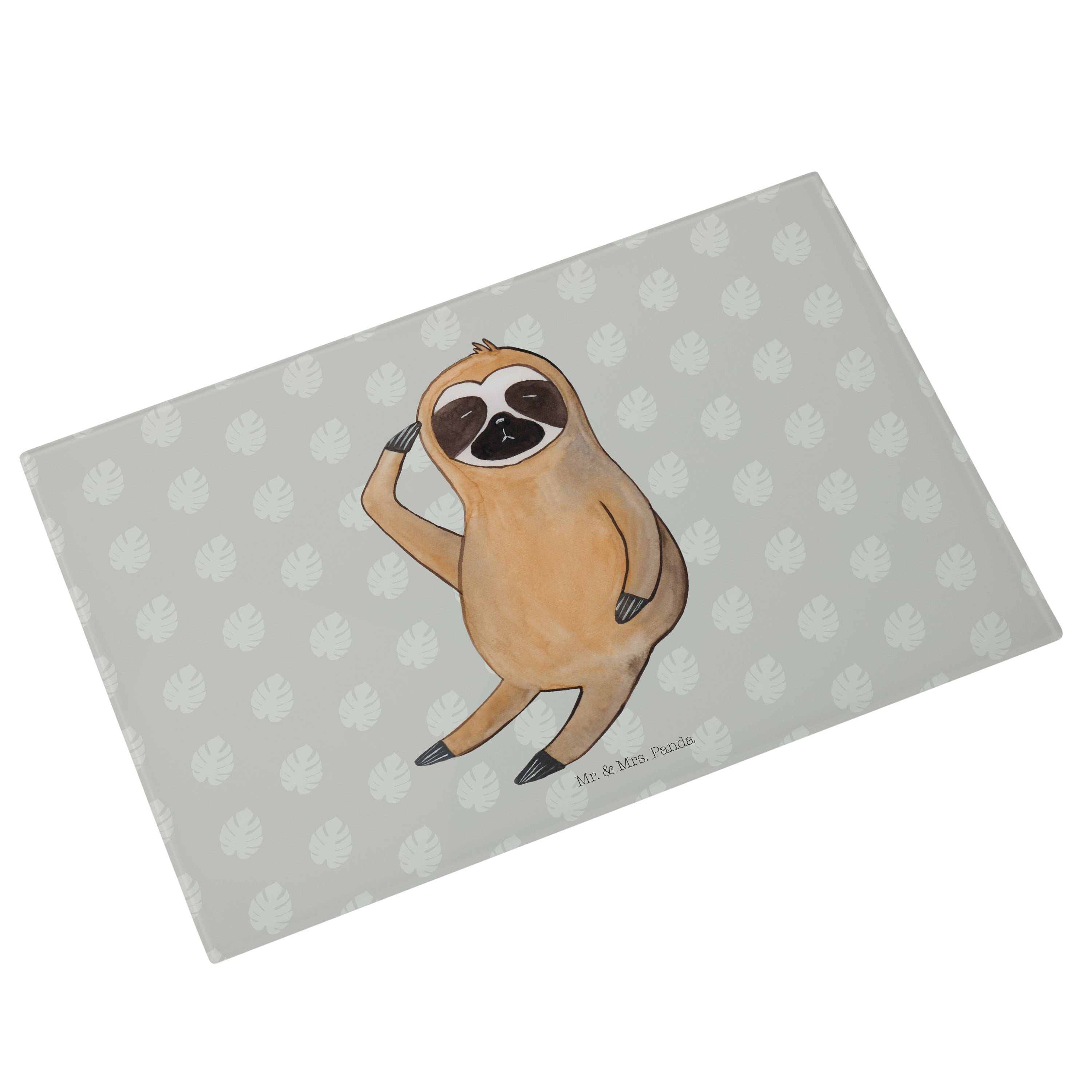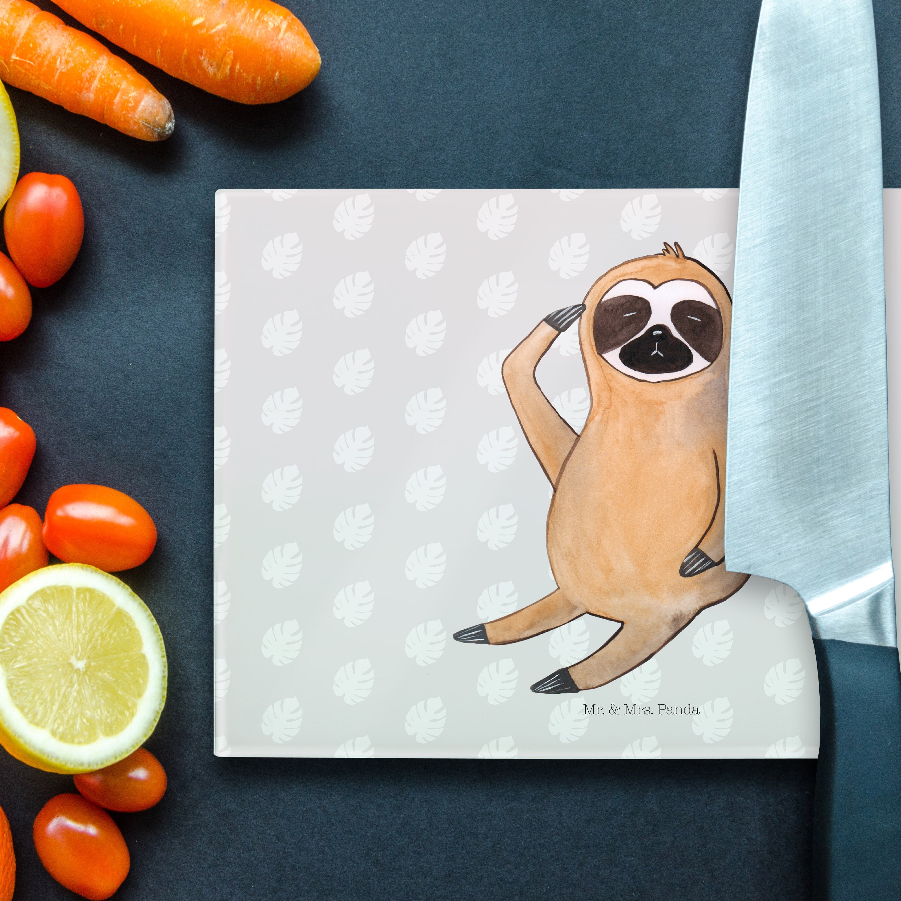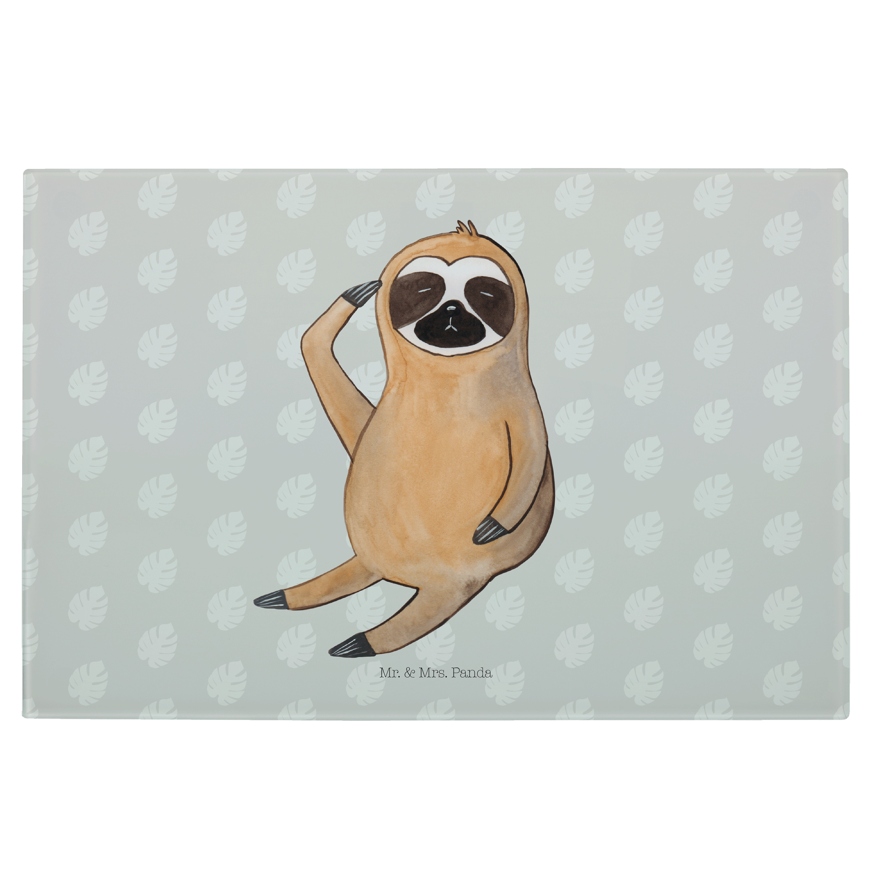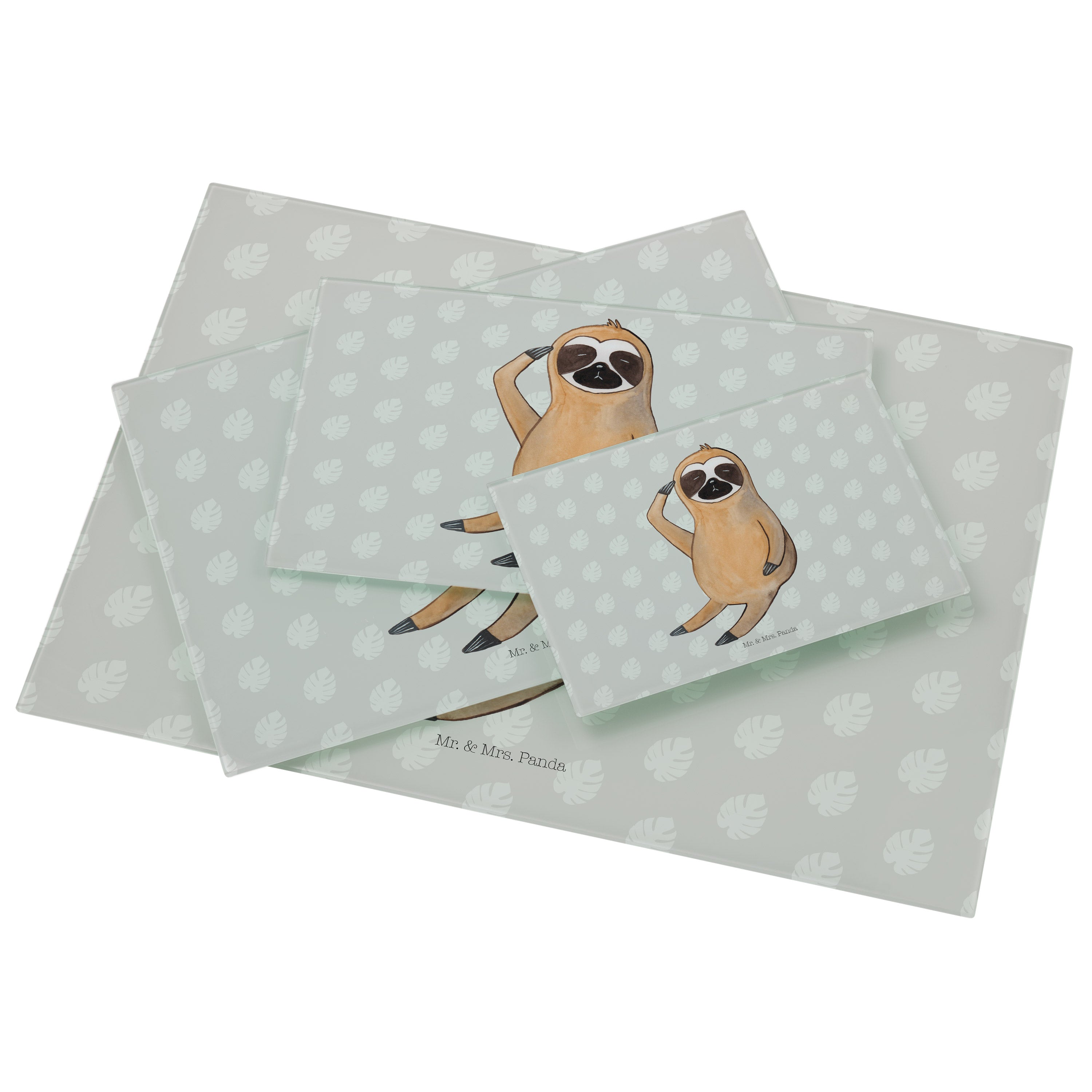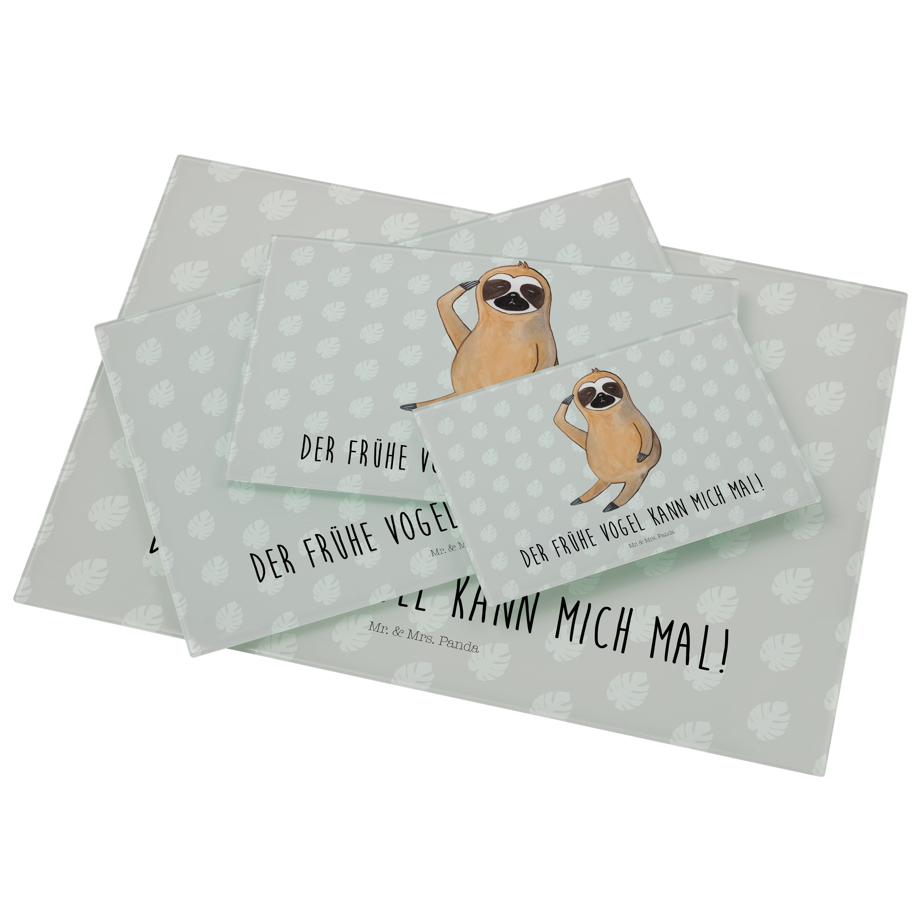 XL Glas Schneidbrett Faultier Vogel zeigen - mit Spruch - Weiß