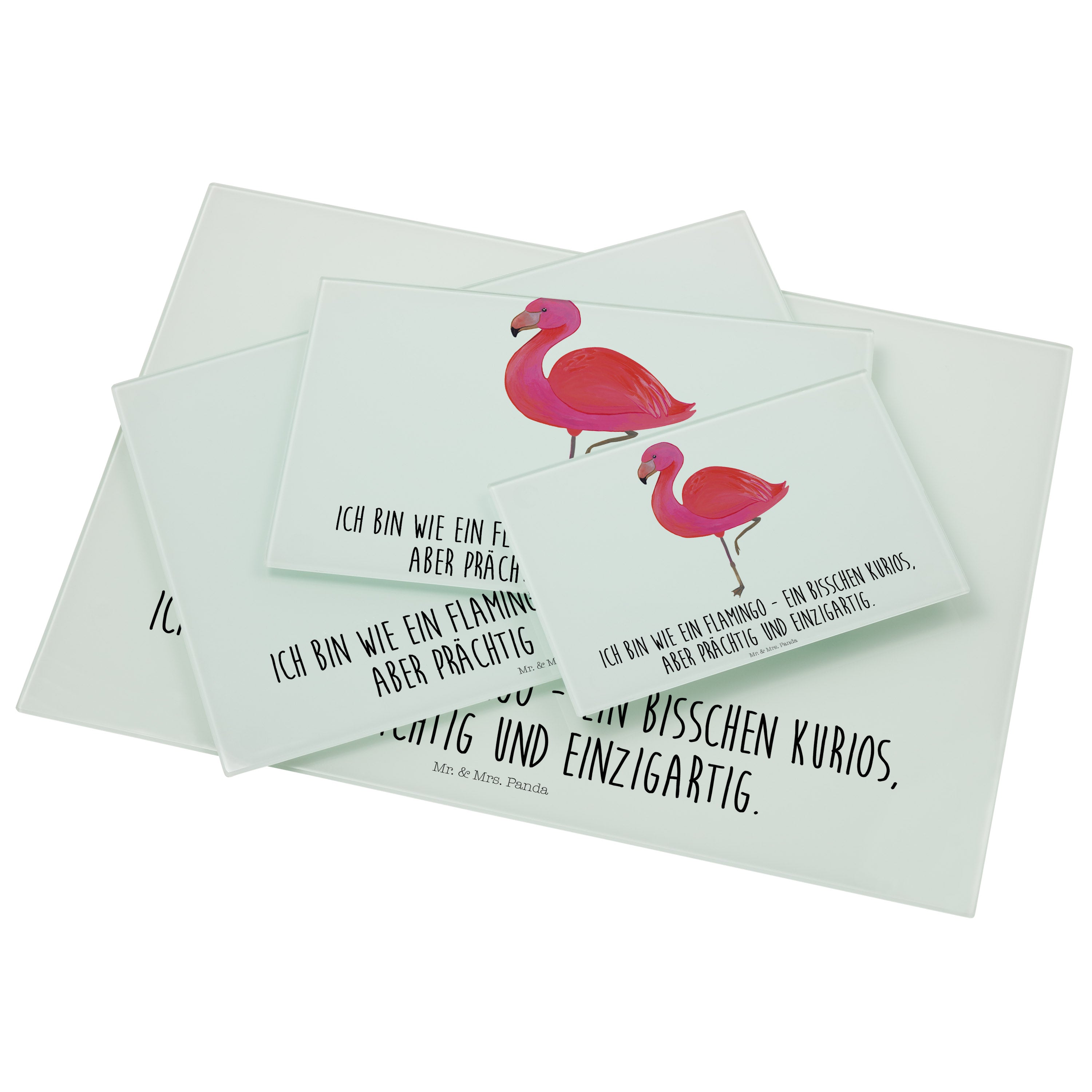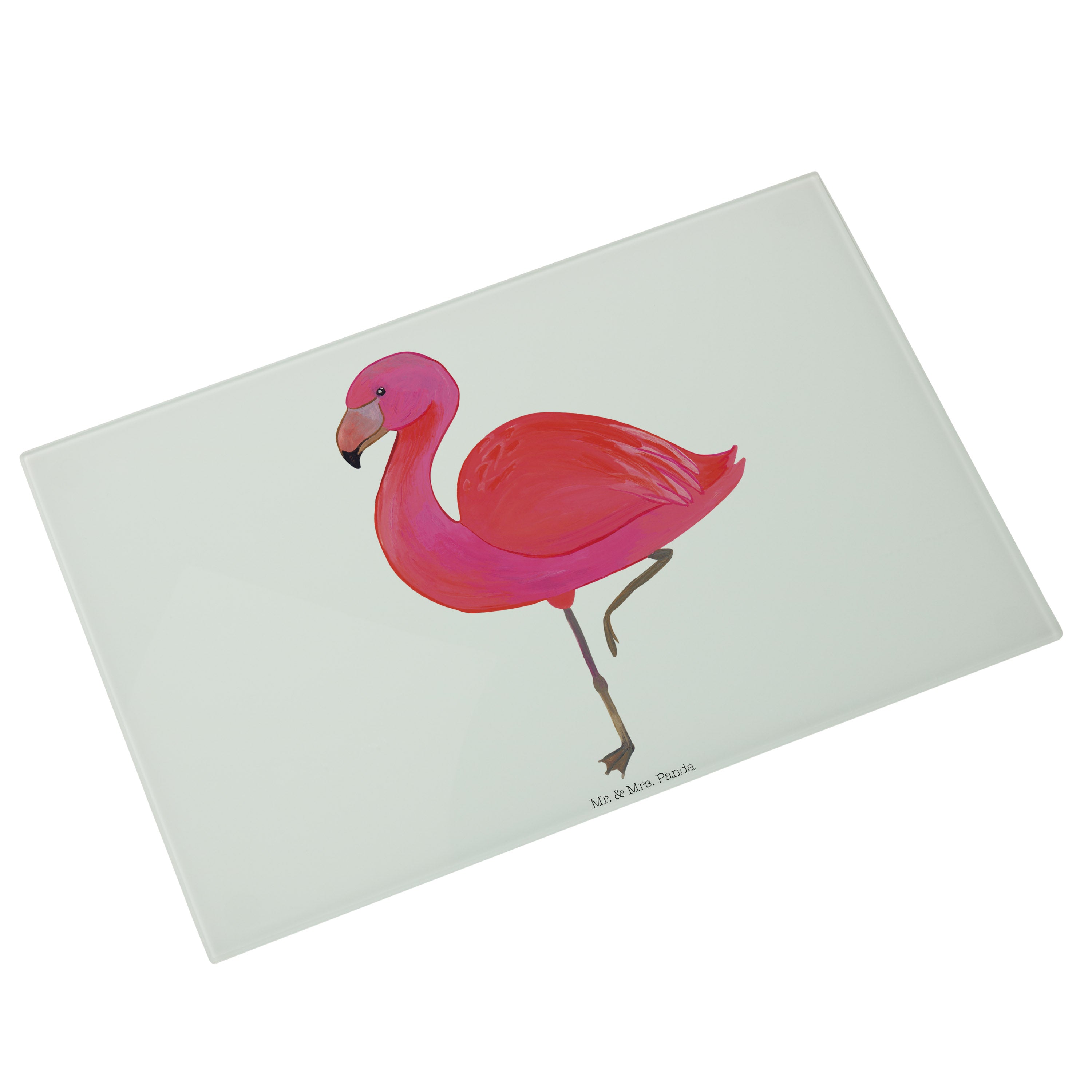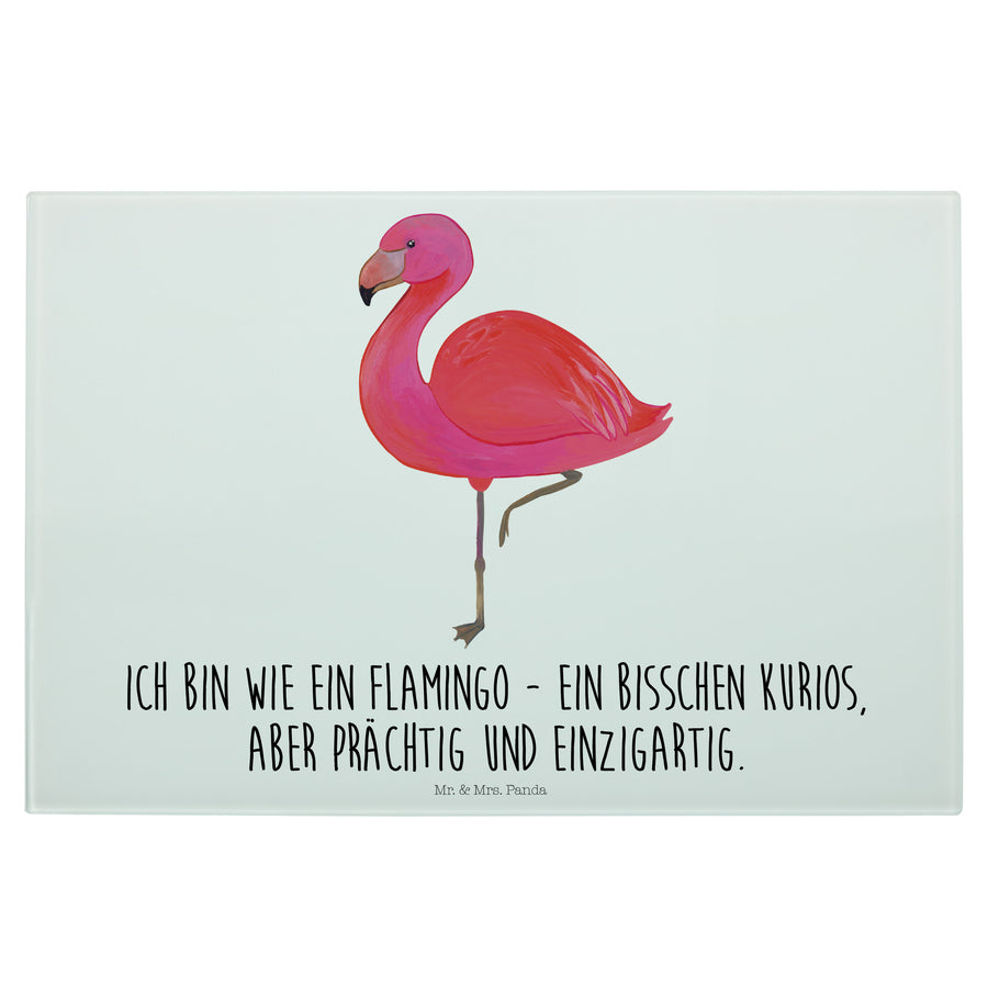 Medium Glas Schneidbrett Flamingo classic - mit Spruch - Weiß