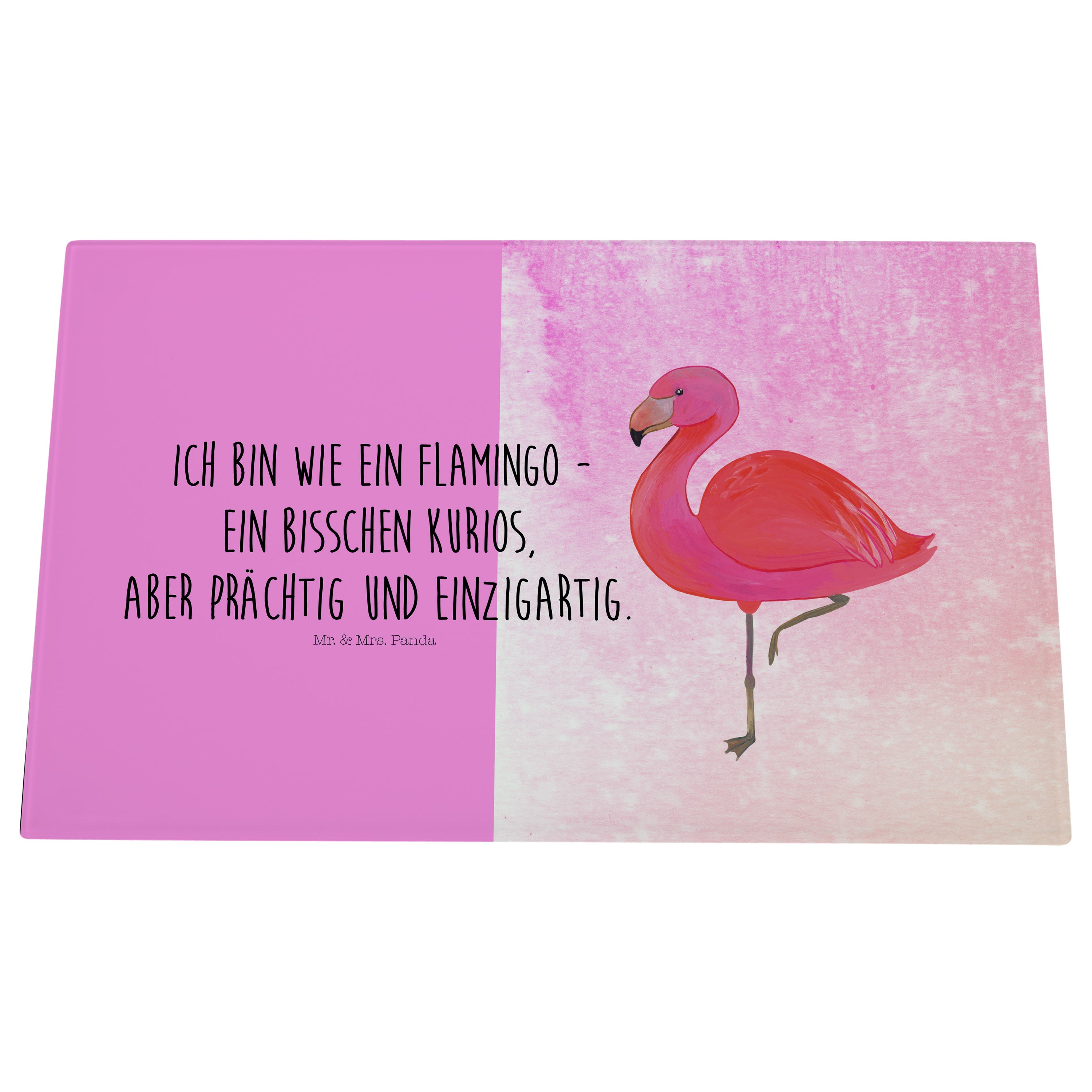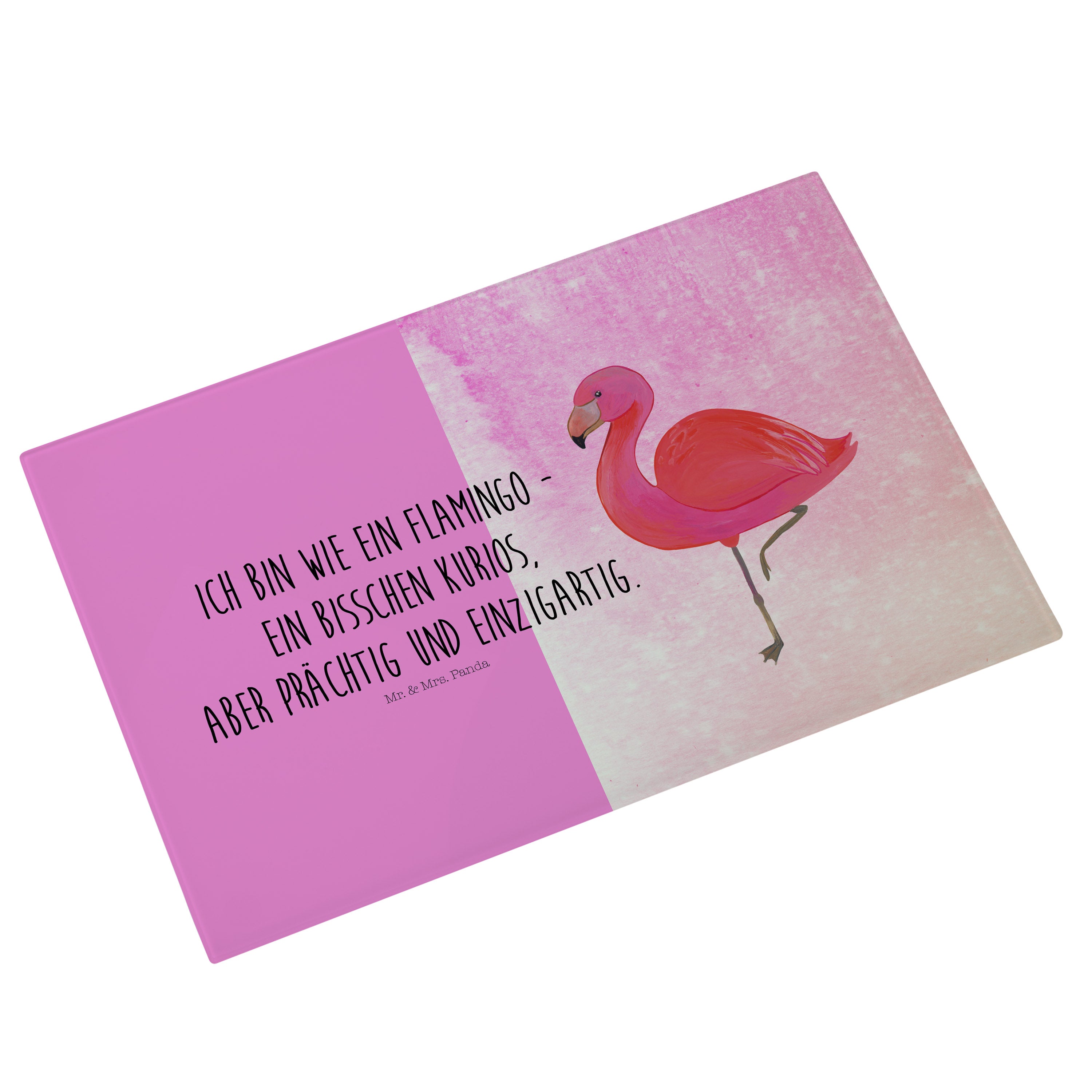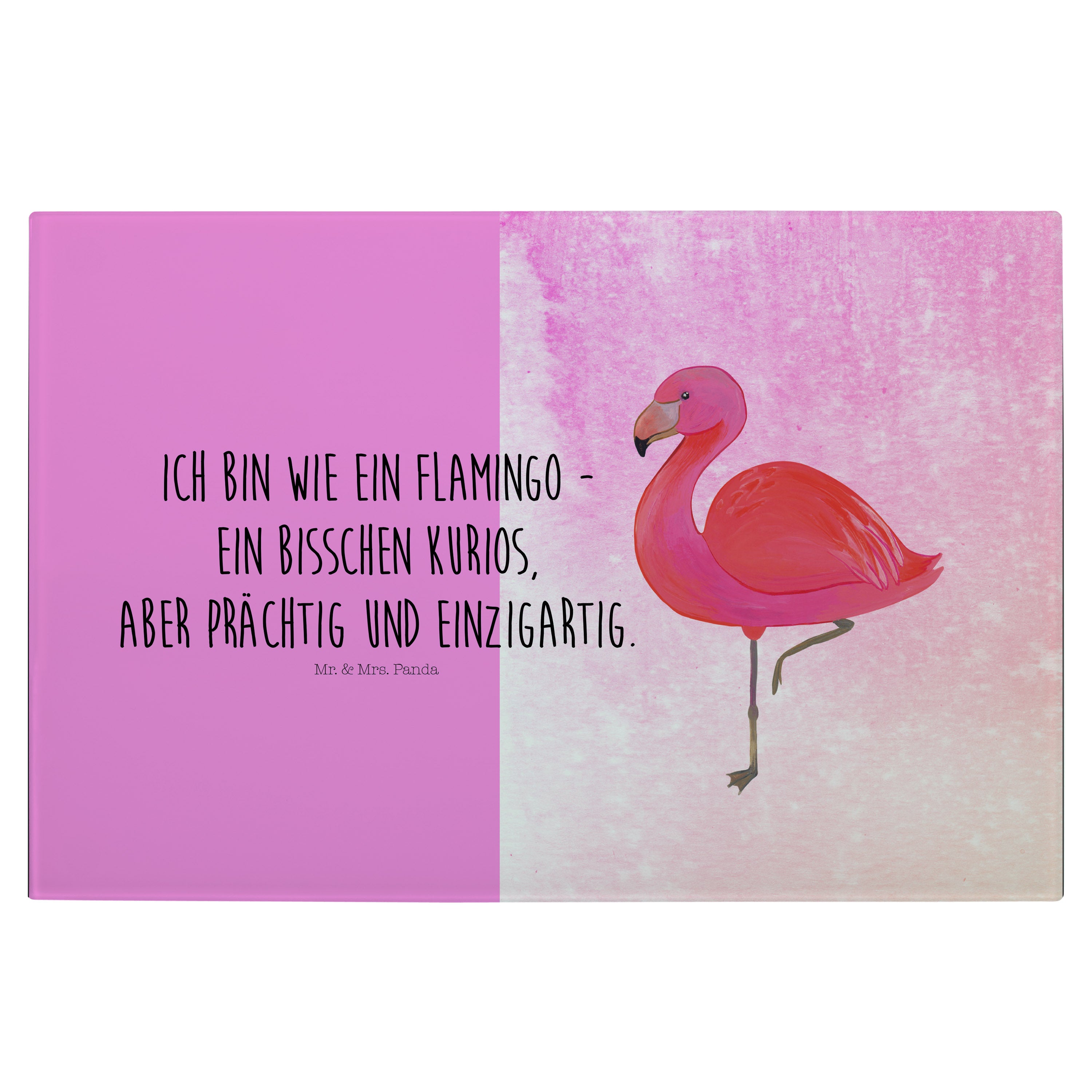 Medium Glas Schneidbrett Flamingo classic - mit Spruch - Weiß