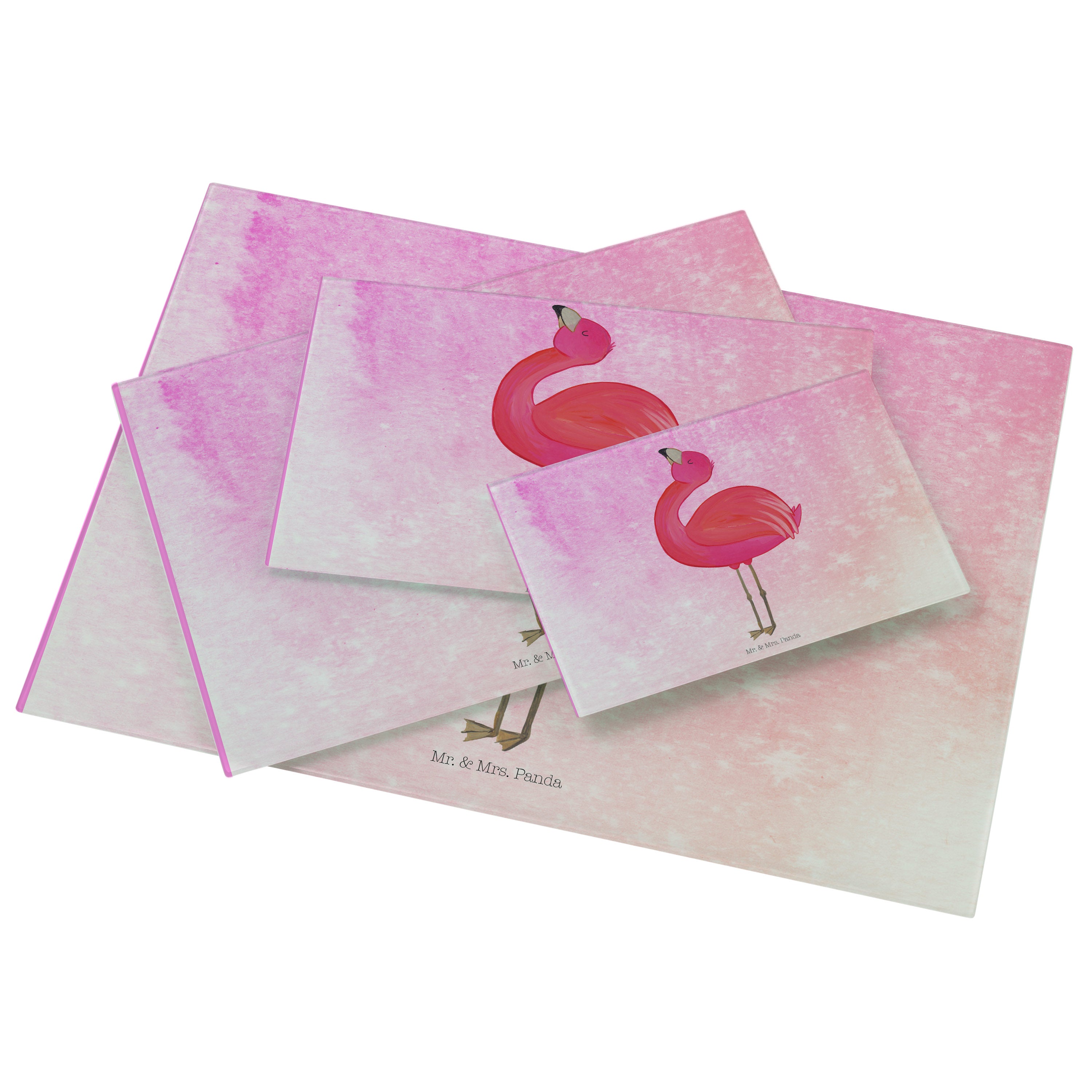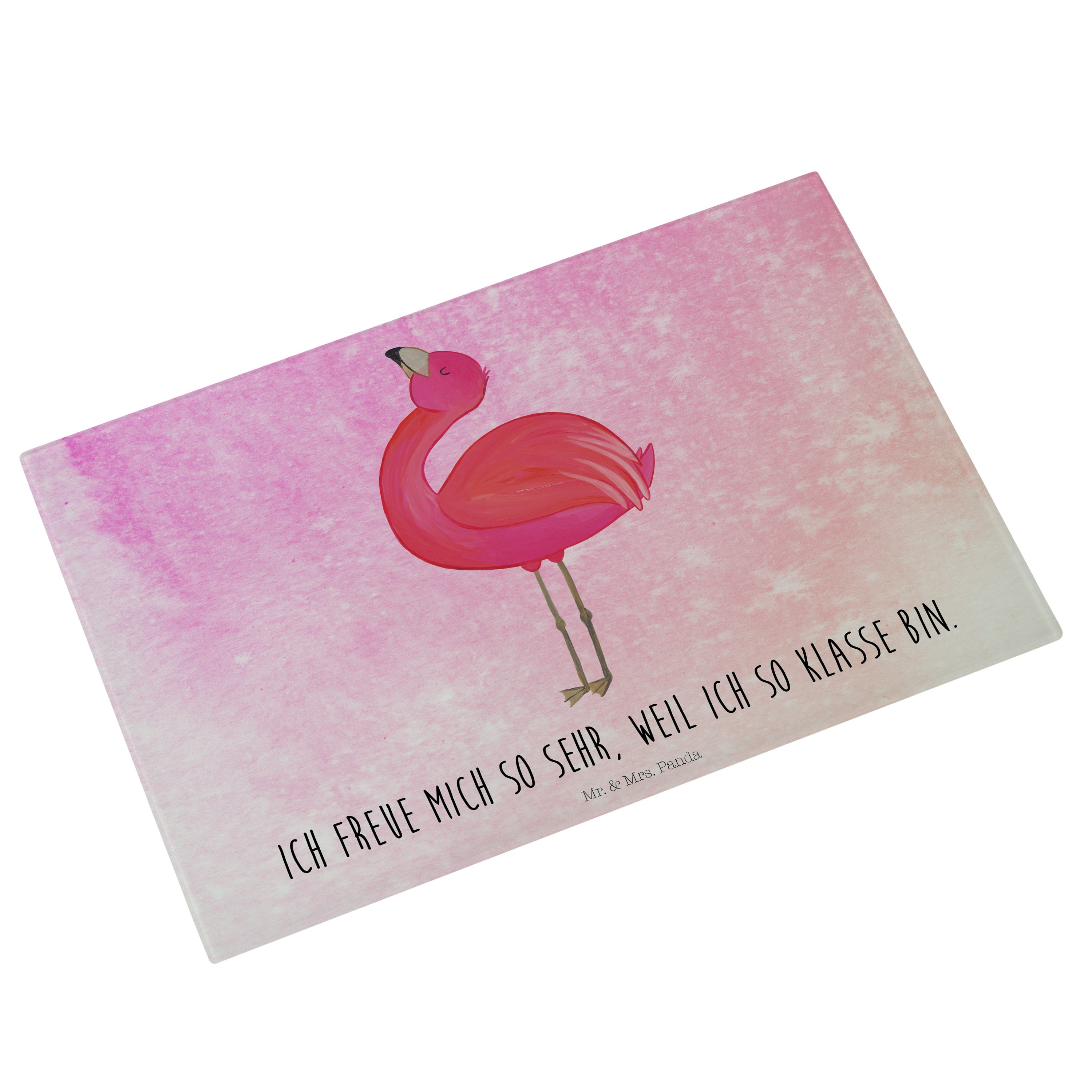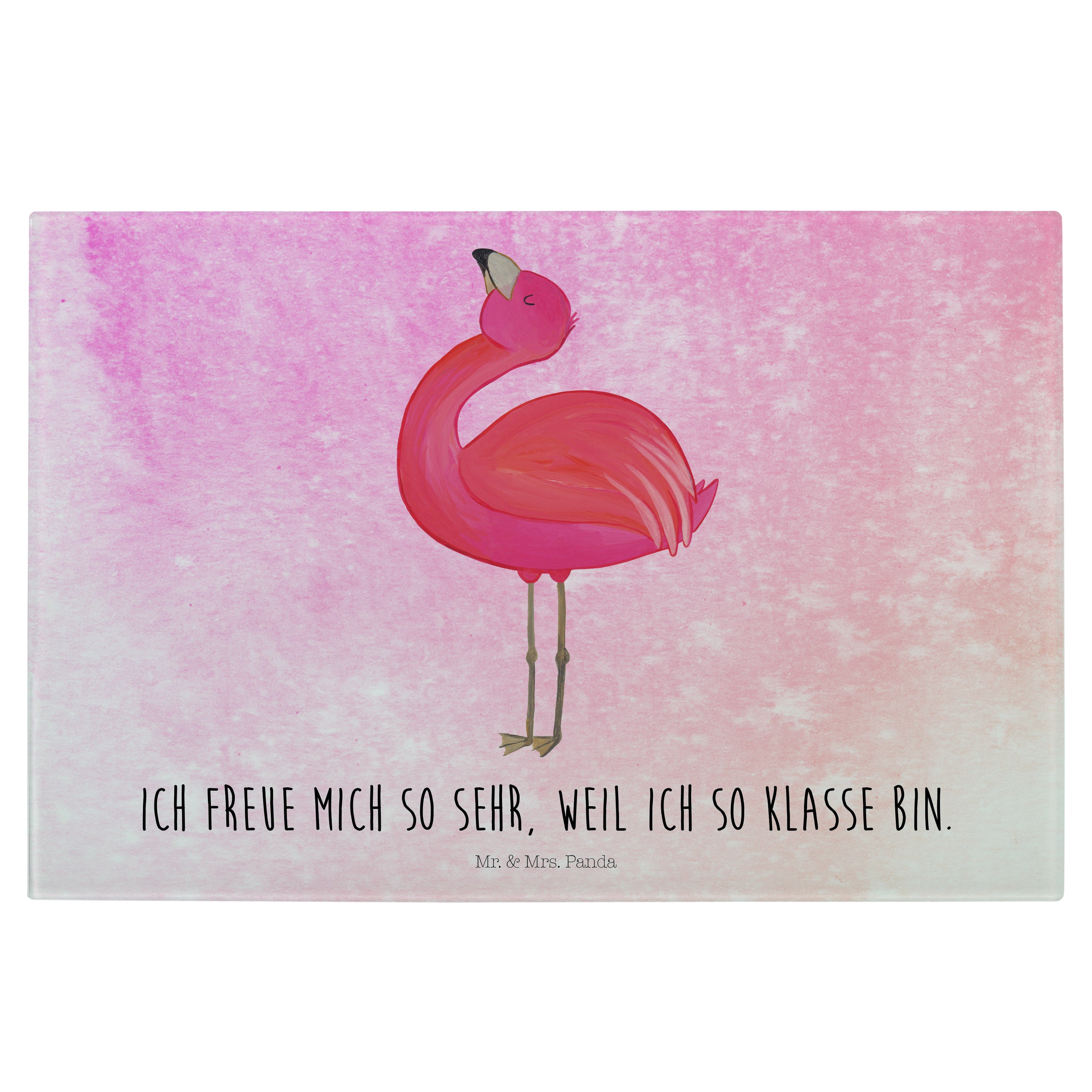 Medium Glas Schneidbrett Flamingo stolz - mit Spruch - Aquarell Pink